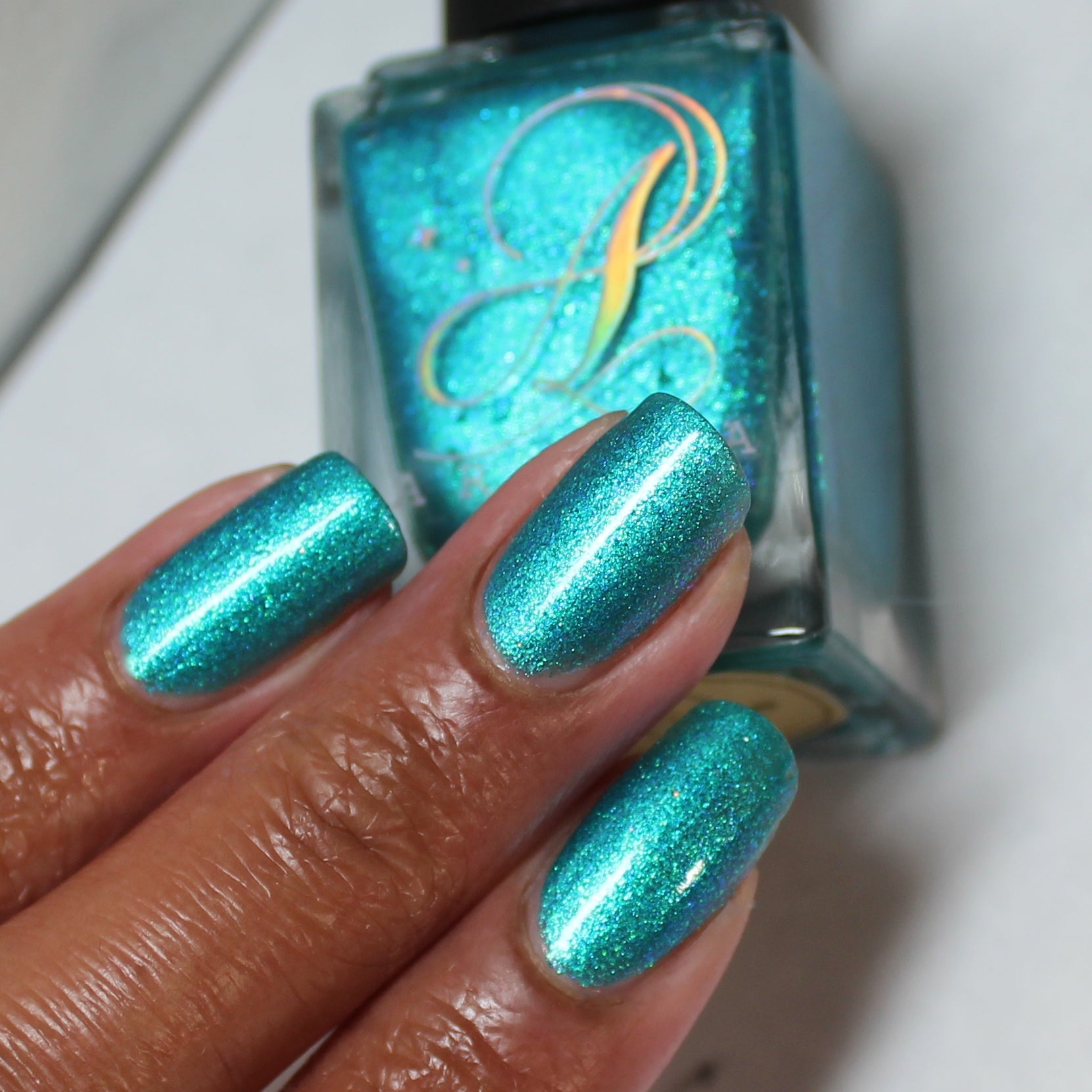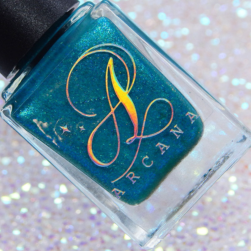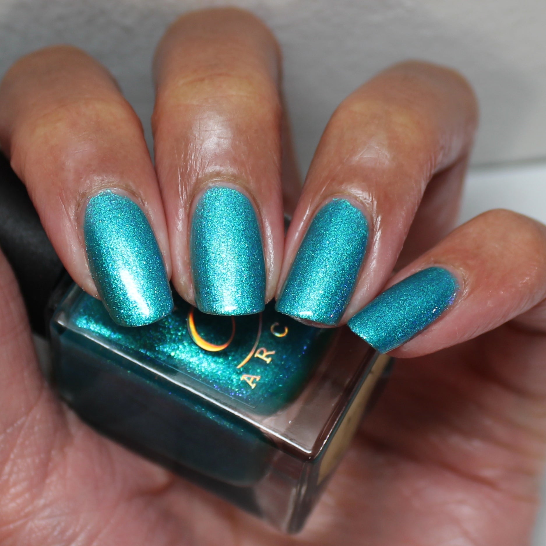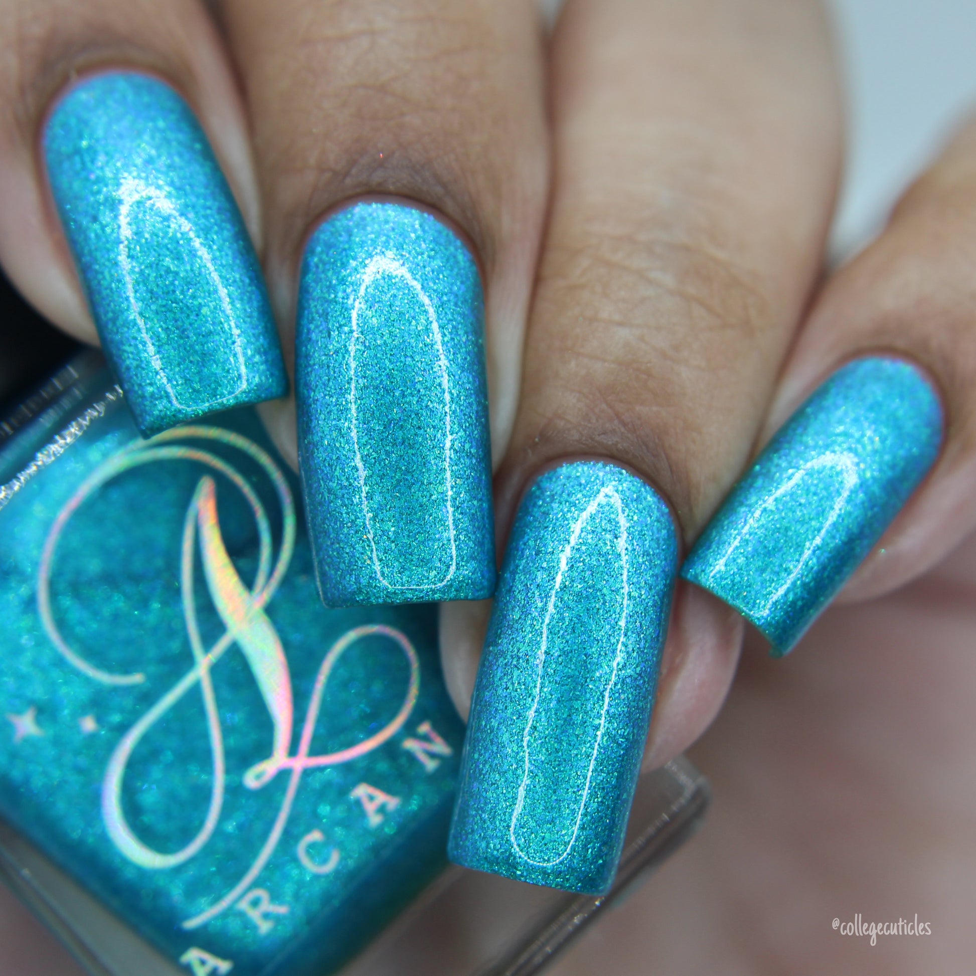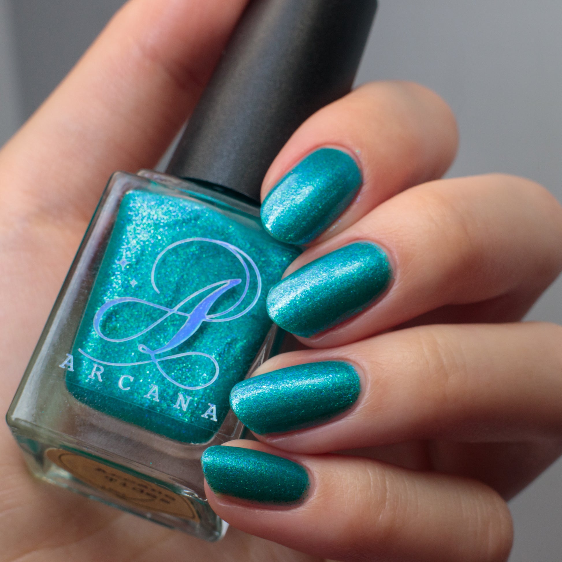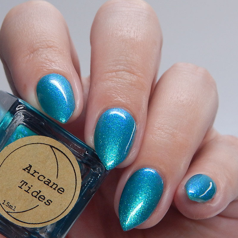 Arcane Tides is inspired by bright blue sparkling ocean water. This polish has a teal base with a teal to blue shimmer and teal metallic glitter!
