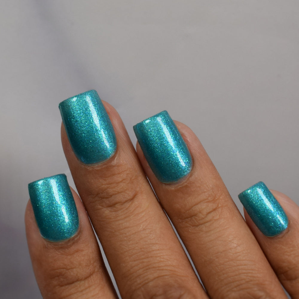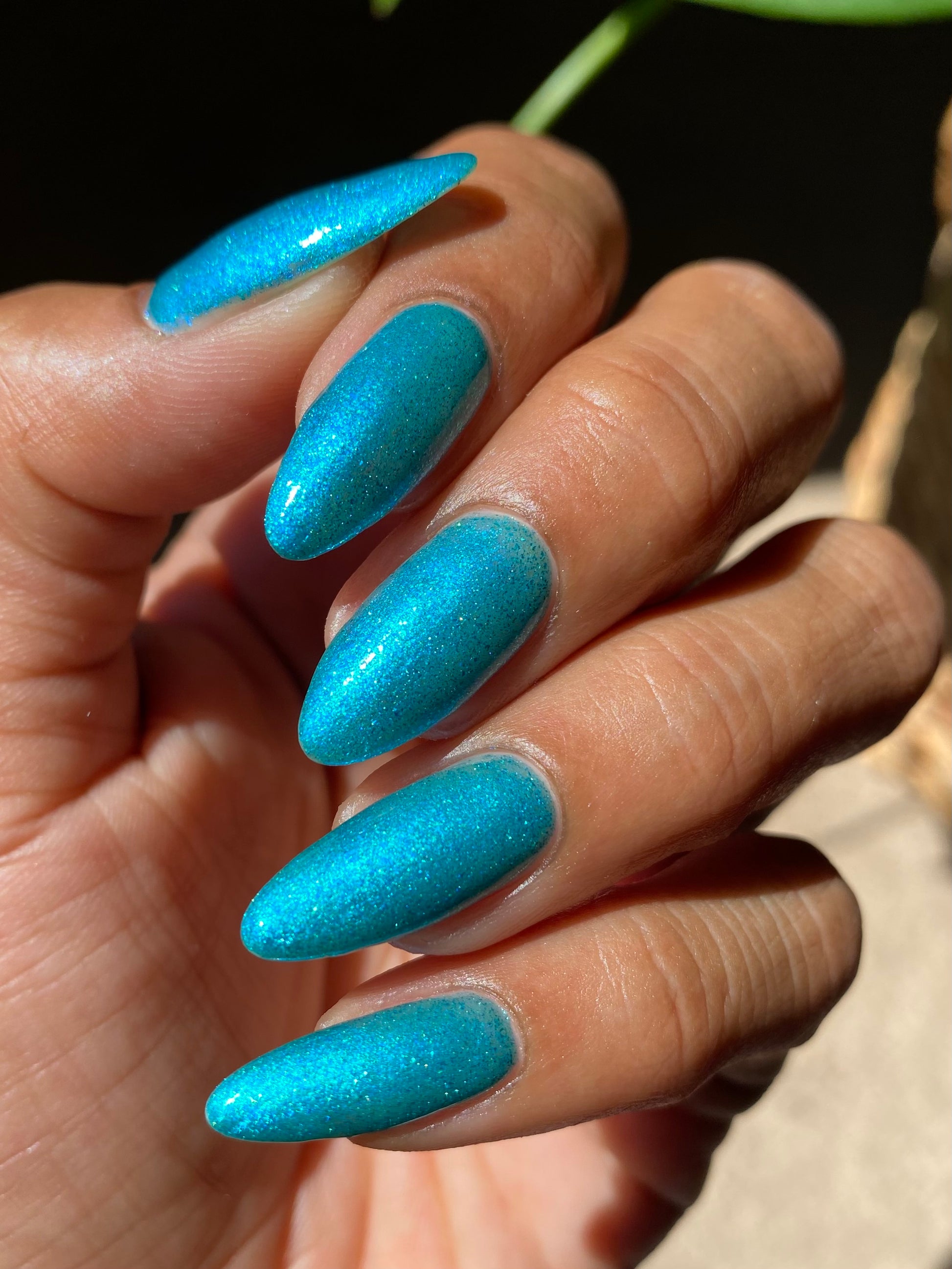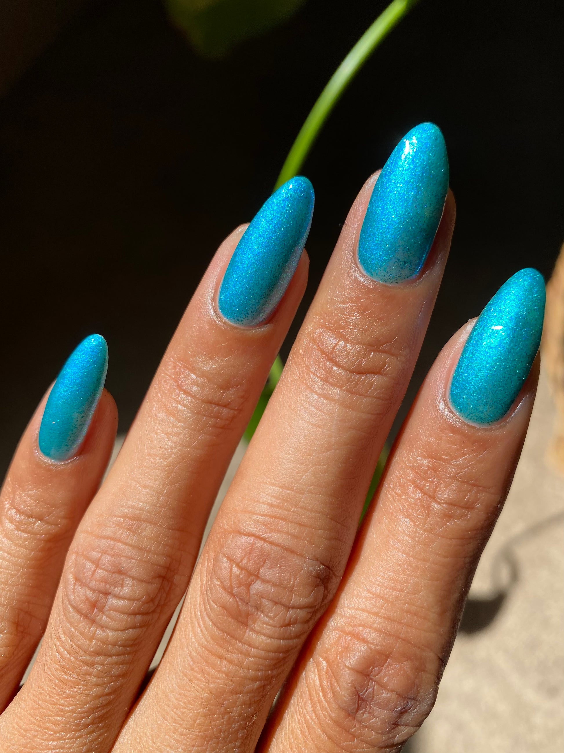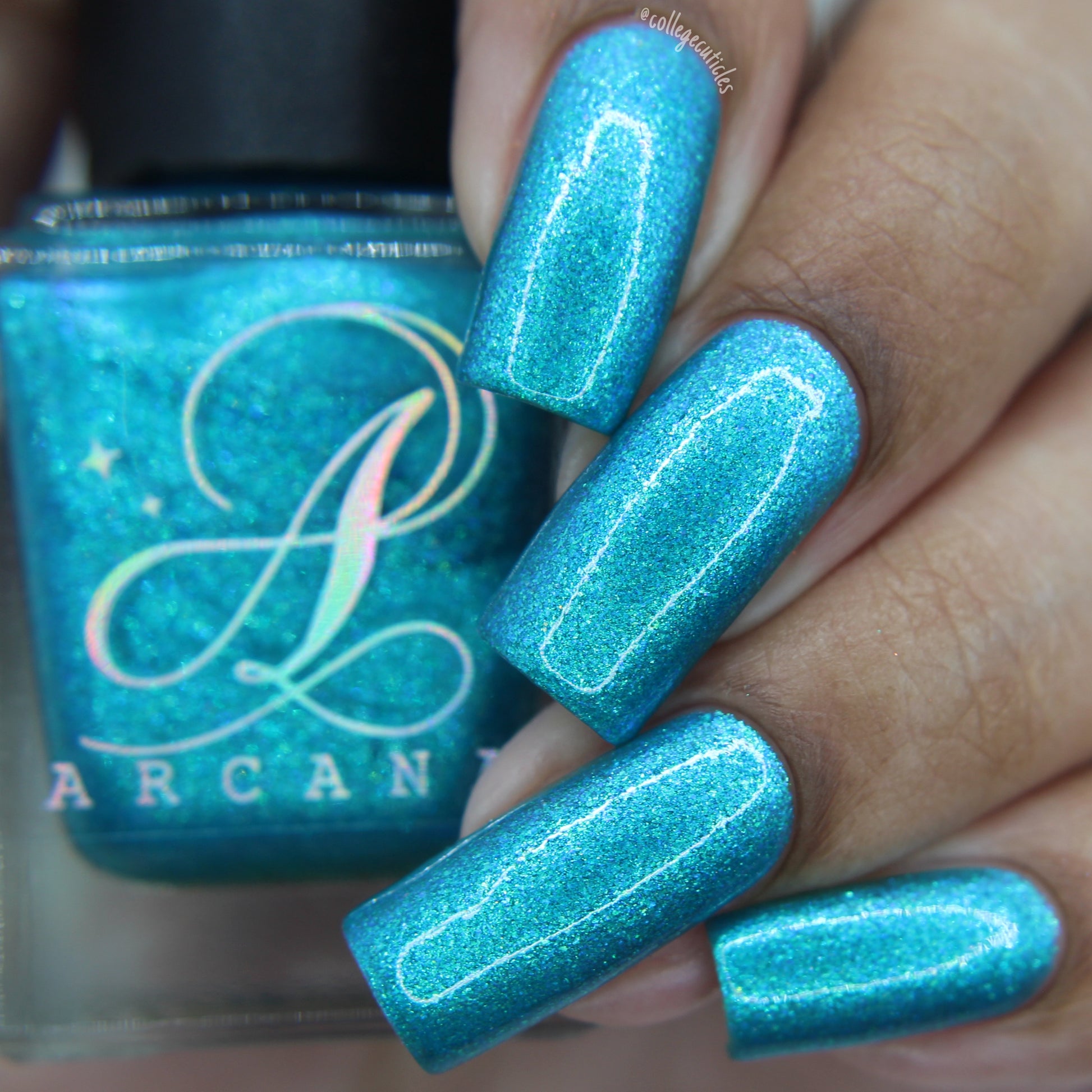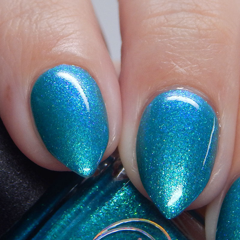Arcane Tides is inspired by bright blue sparkling ocean water. This polish has a teal base with a teal to blue shimmer and teal metallic glitter!