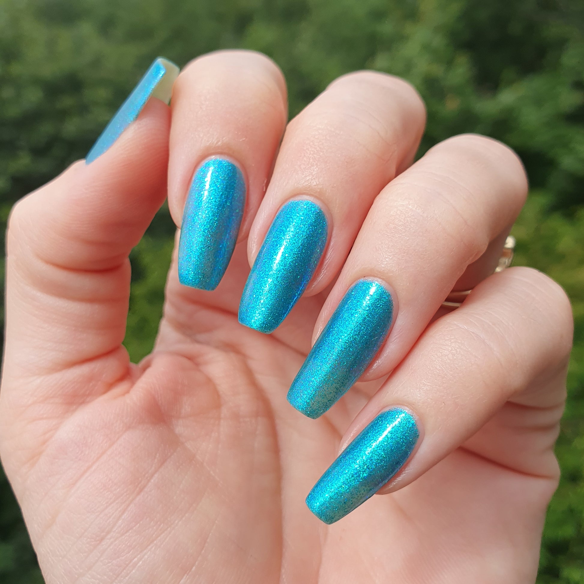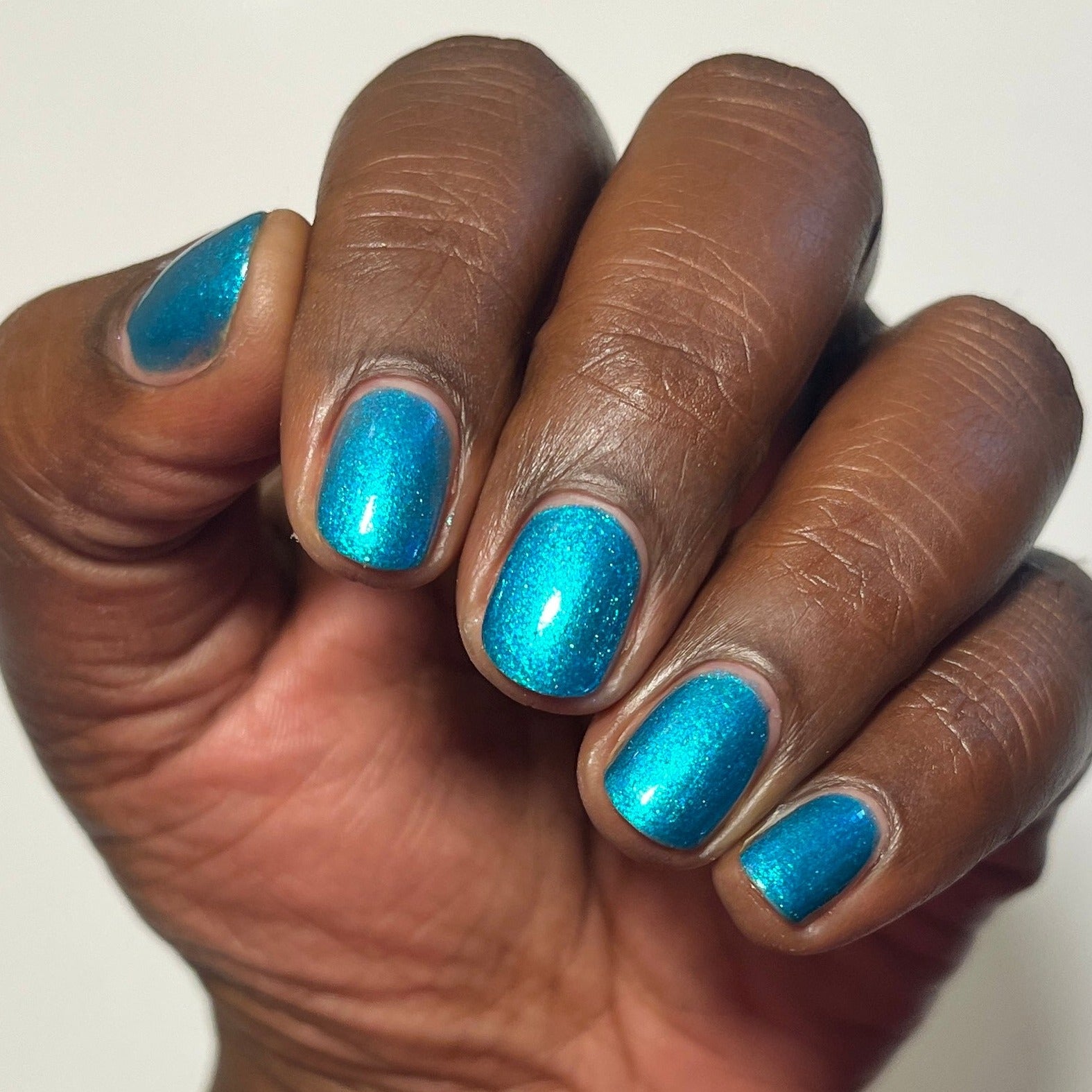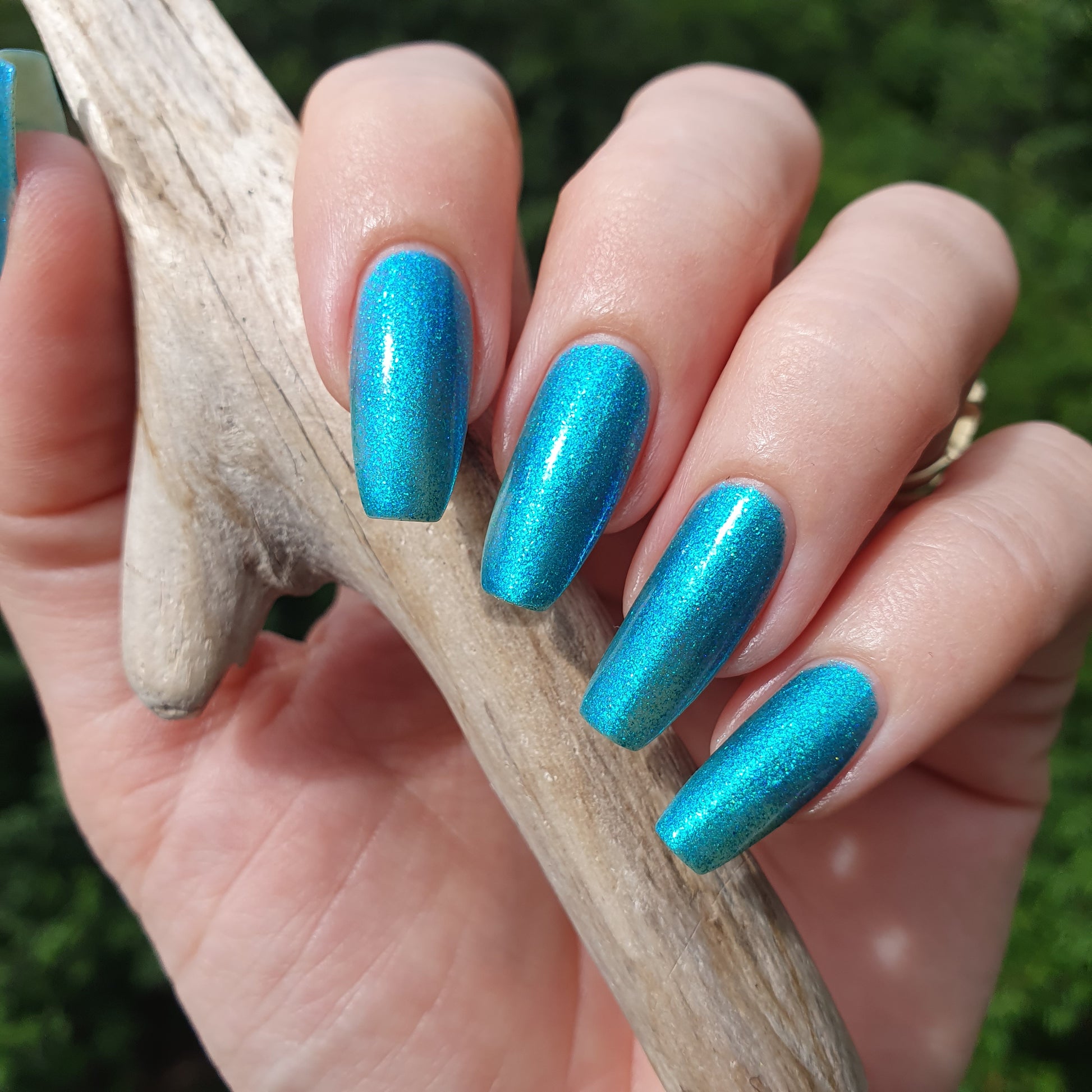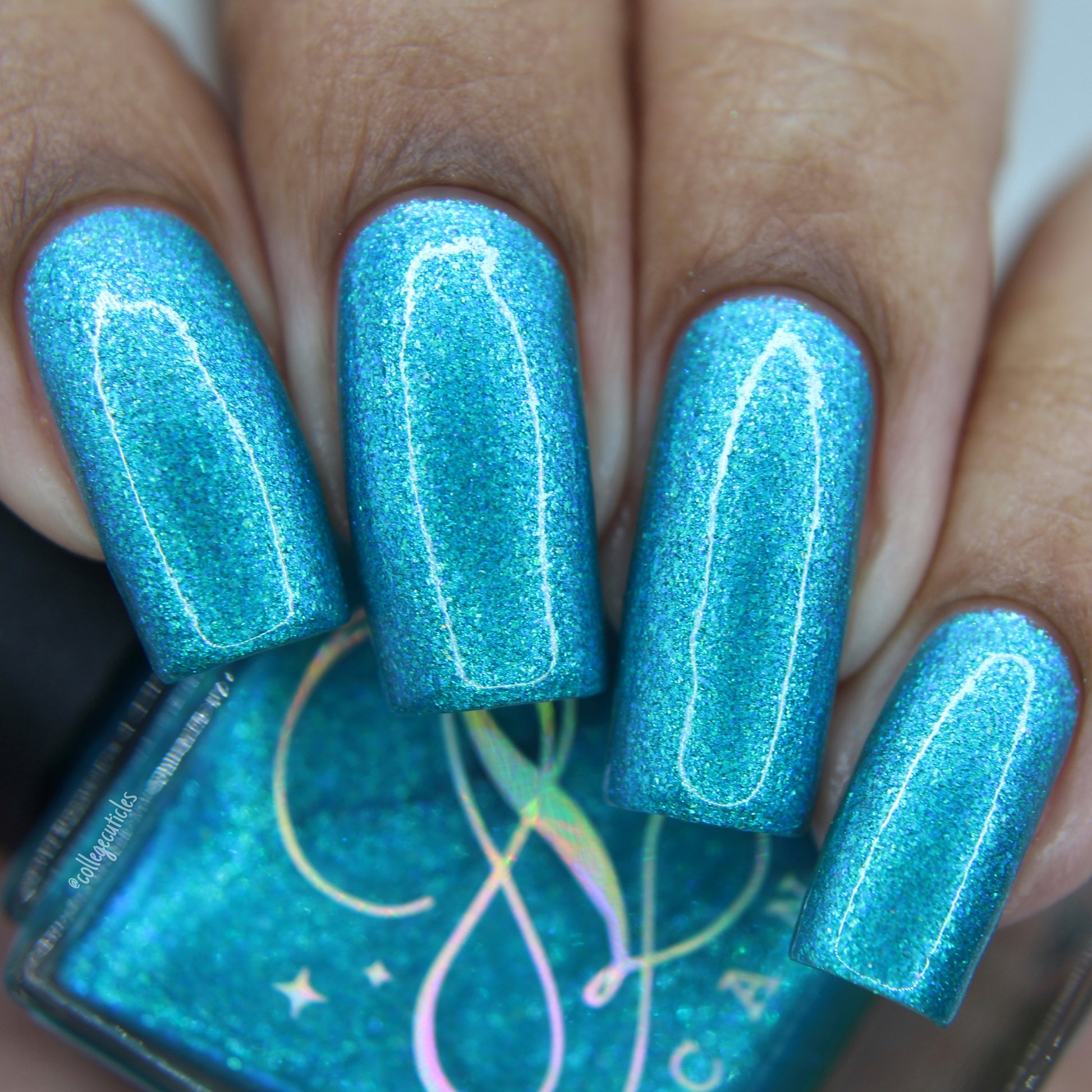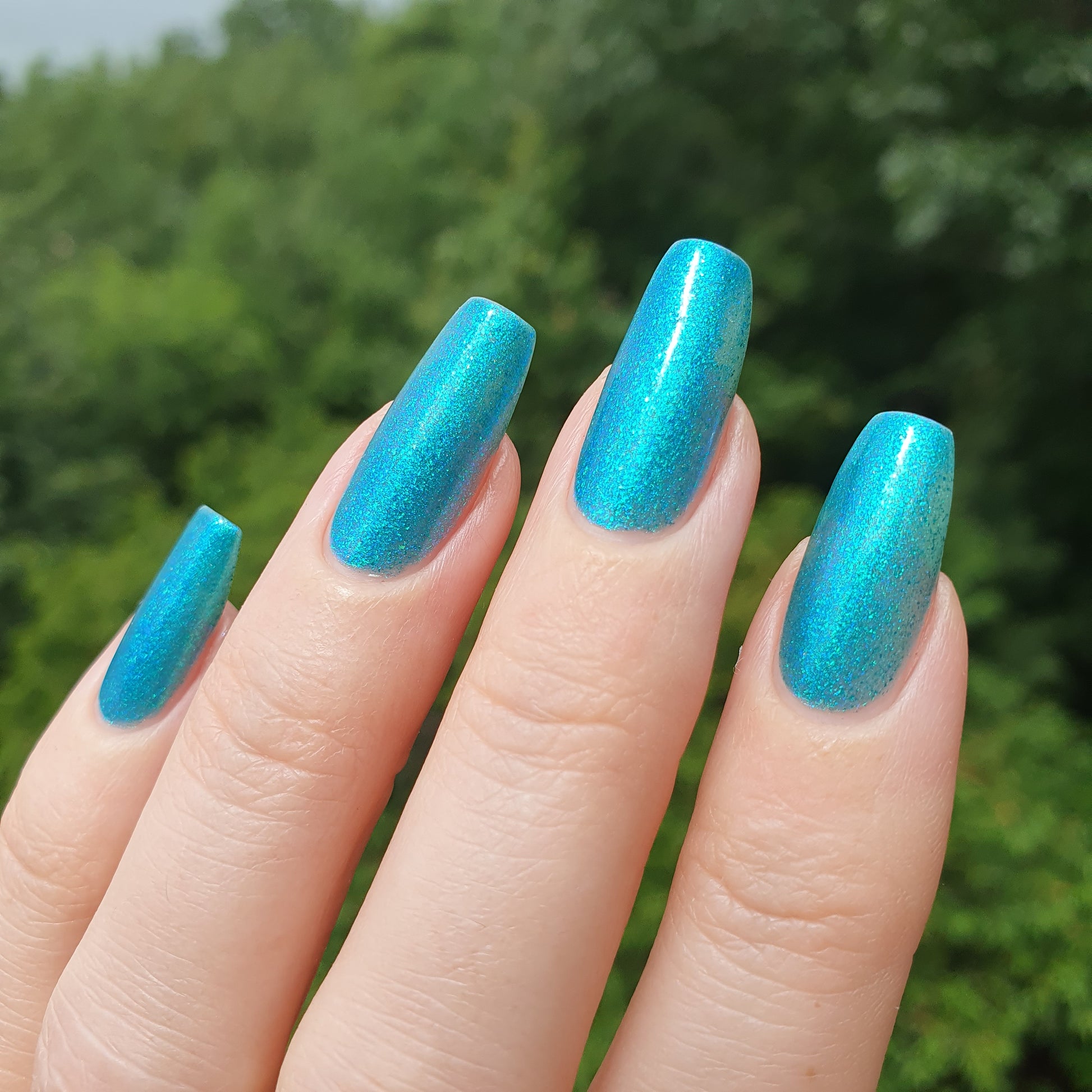 Arcane Tides is inspired by bright blue sparkling ocean water. This polish has a teal base with a teal to blue shimmer and teal metallic glitter!
