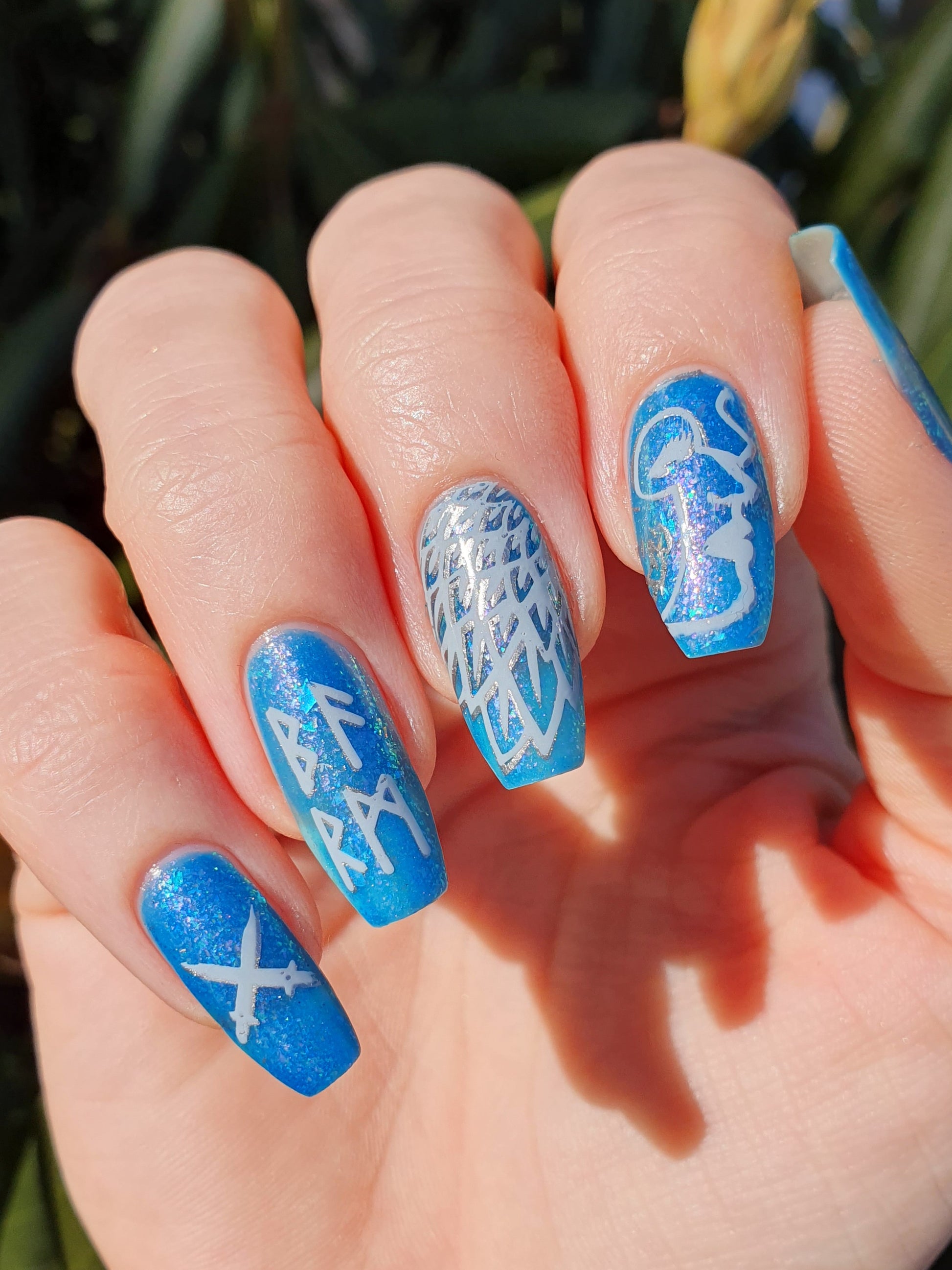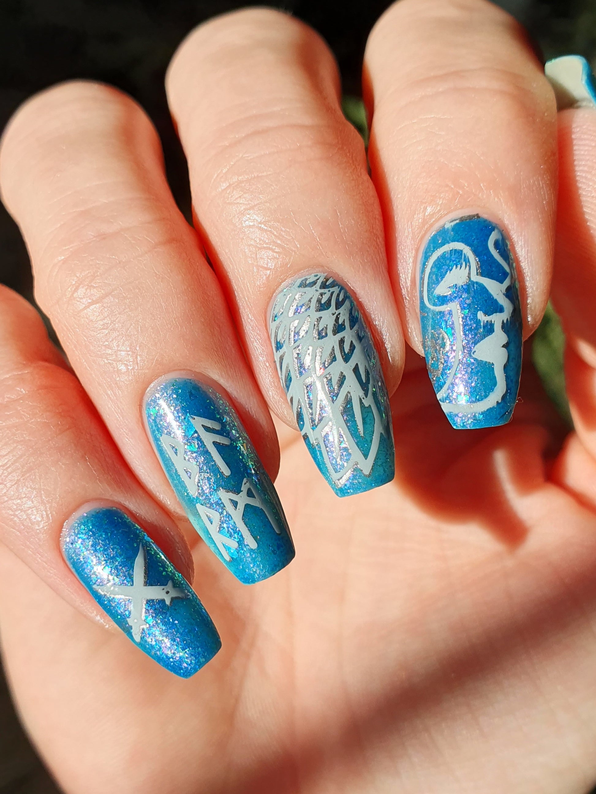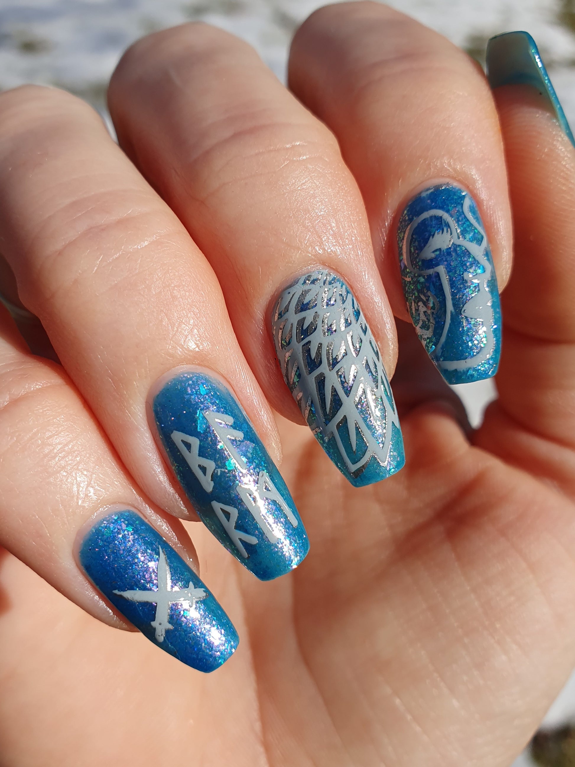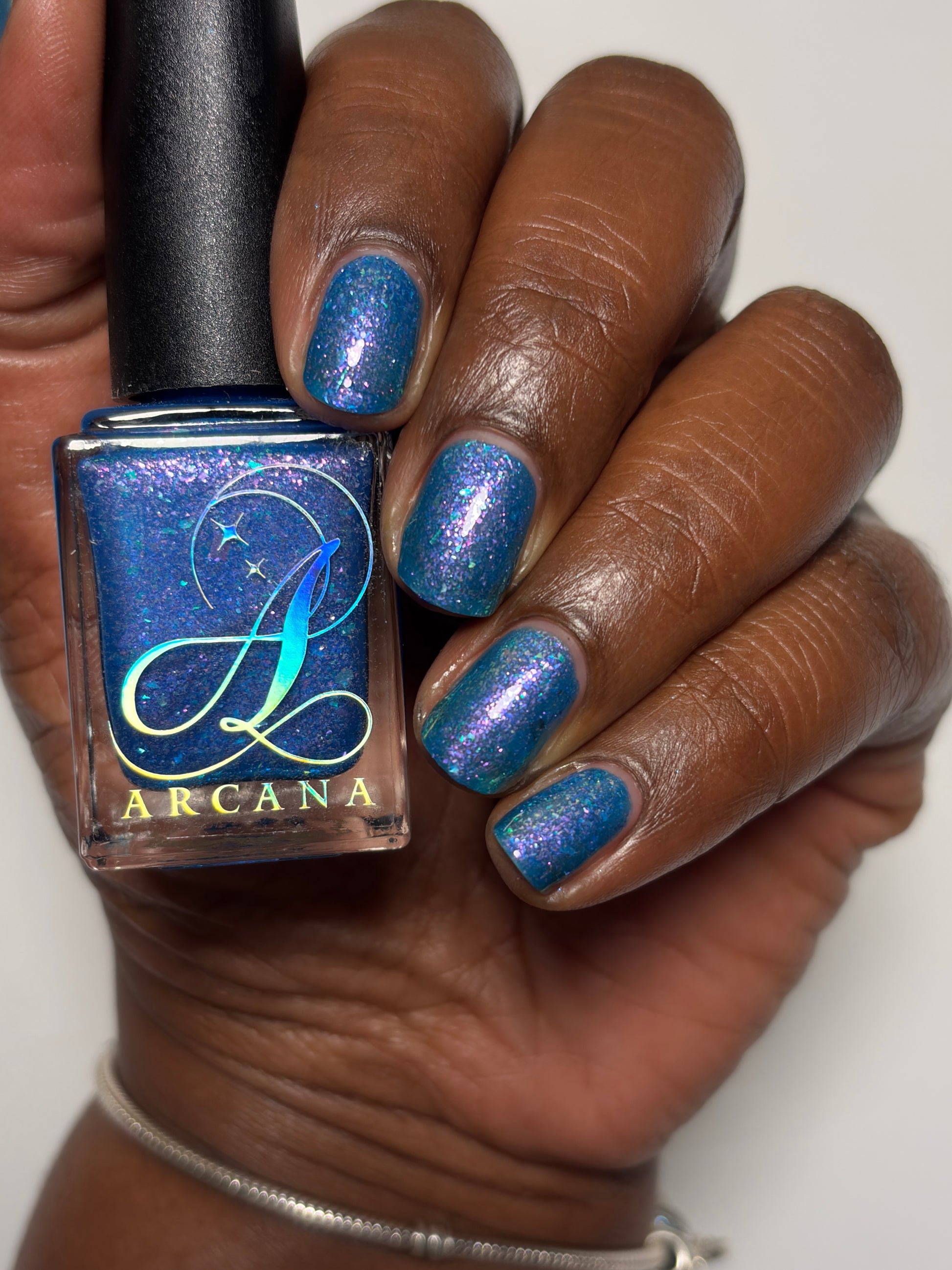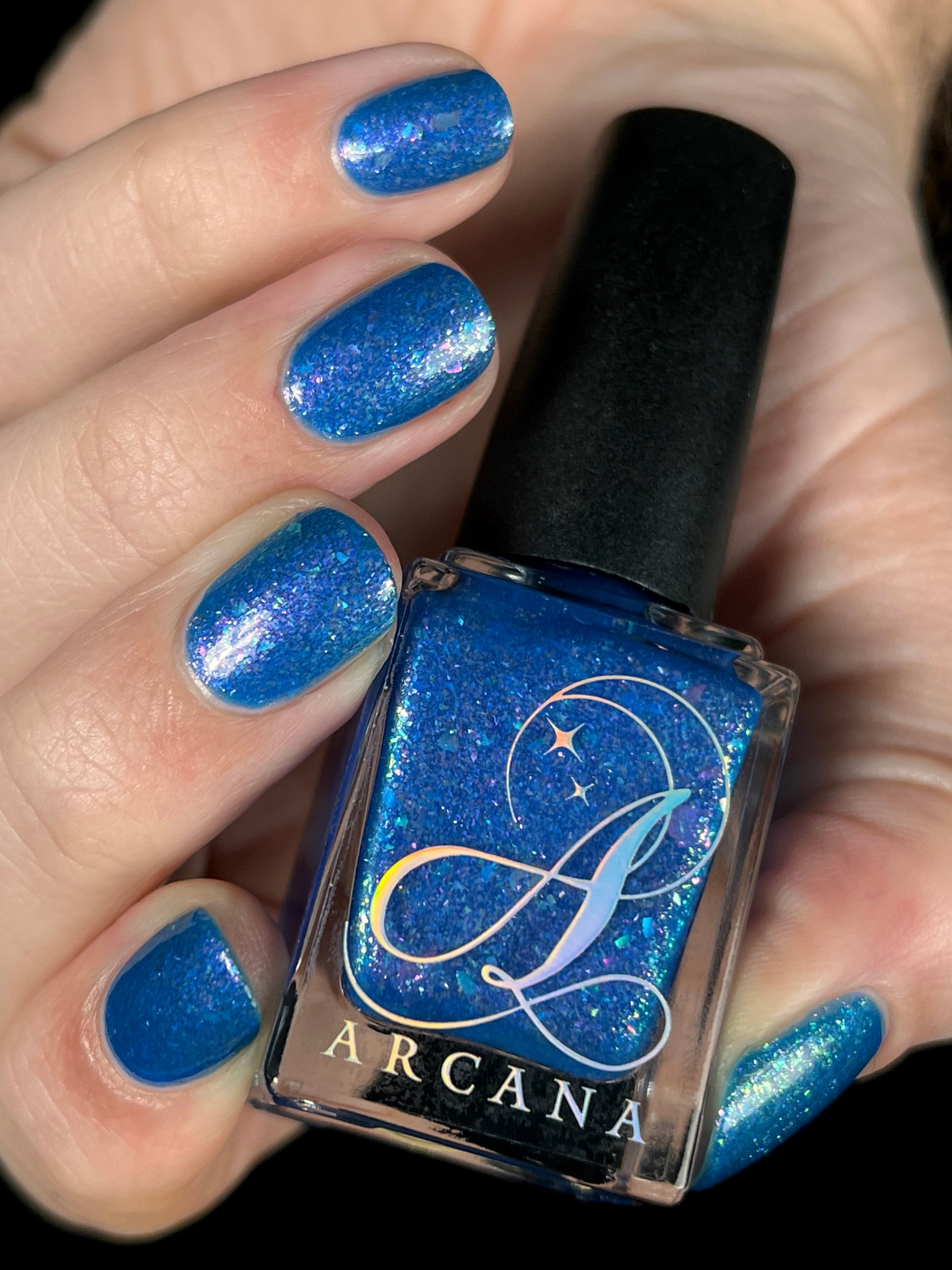 Brynhildr has a bright blue base with pink to yellow large particle shimmer and green/purple, pink/green, and silver/blue flakes. This one is a flakie bomb!