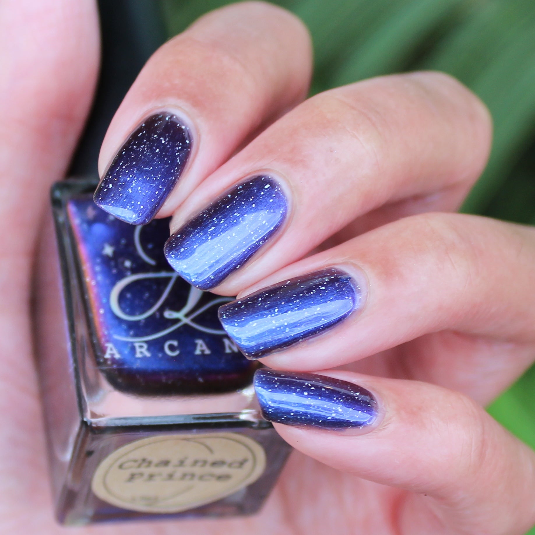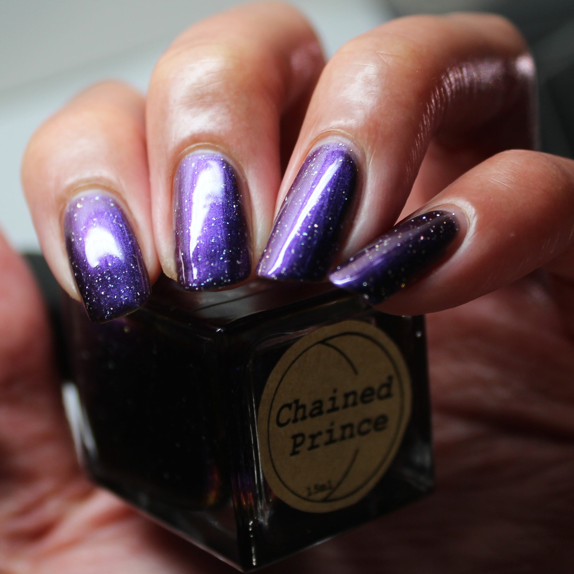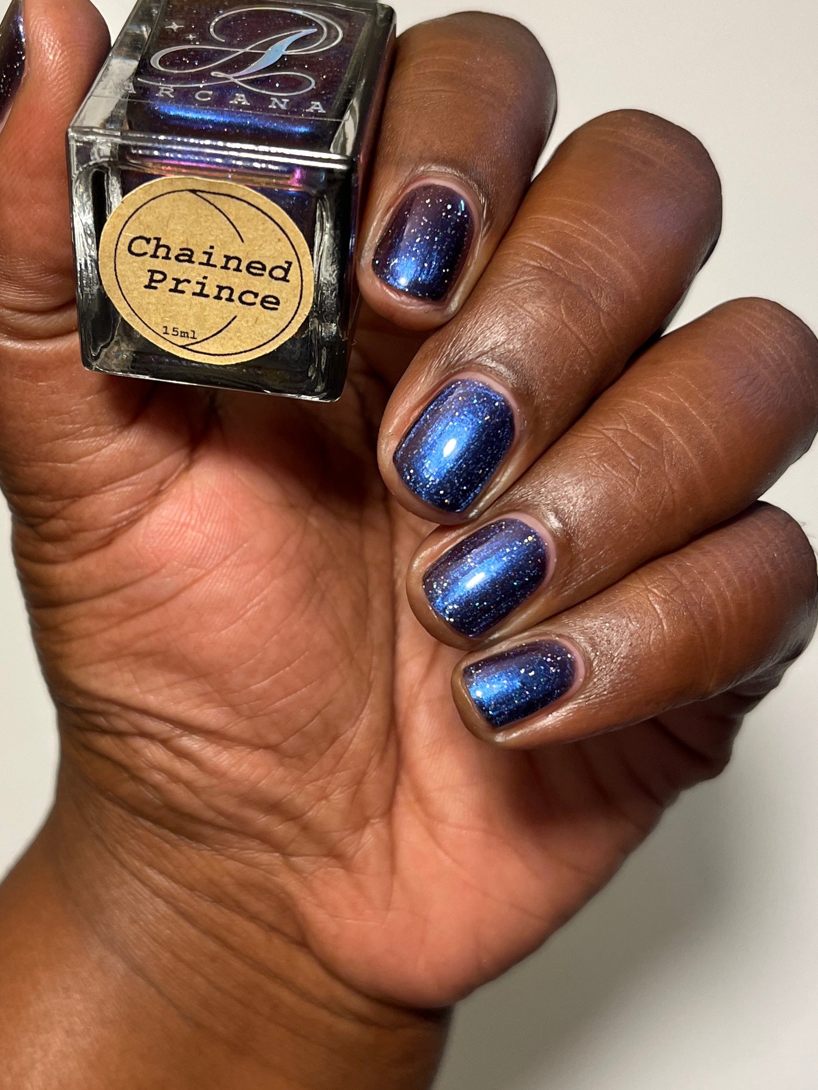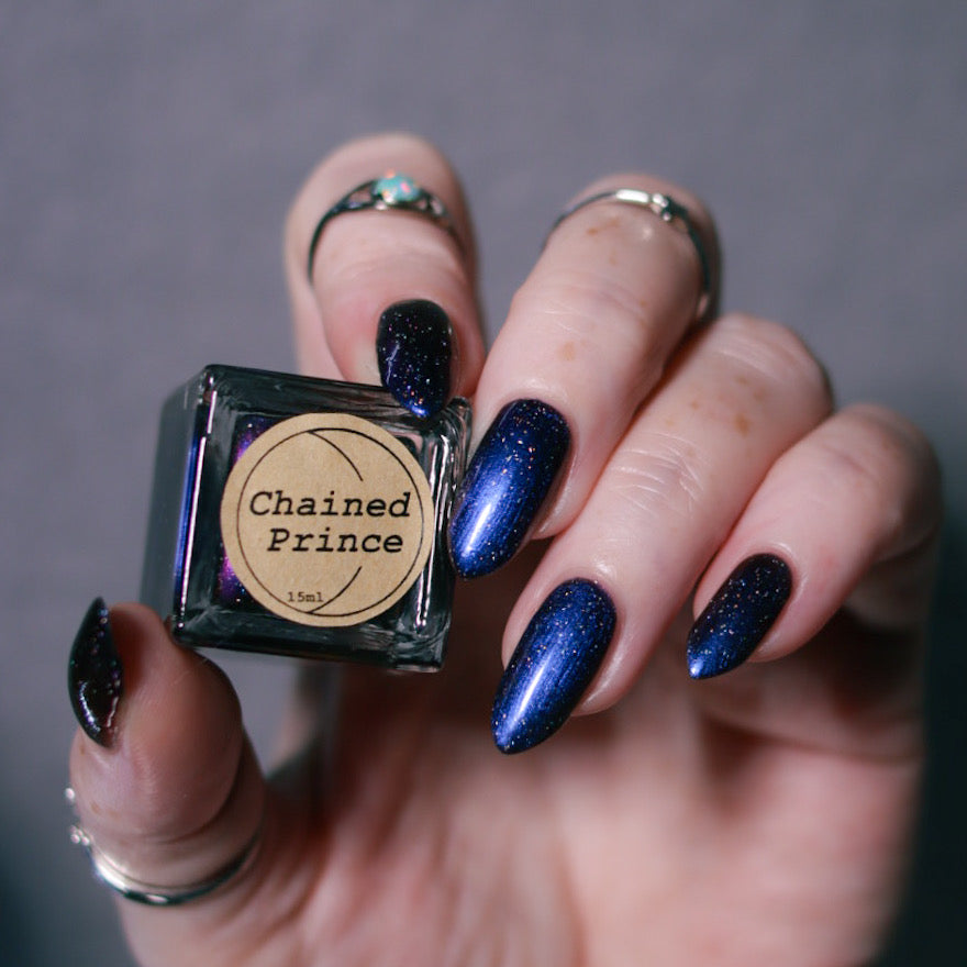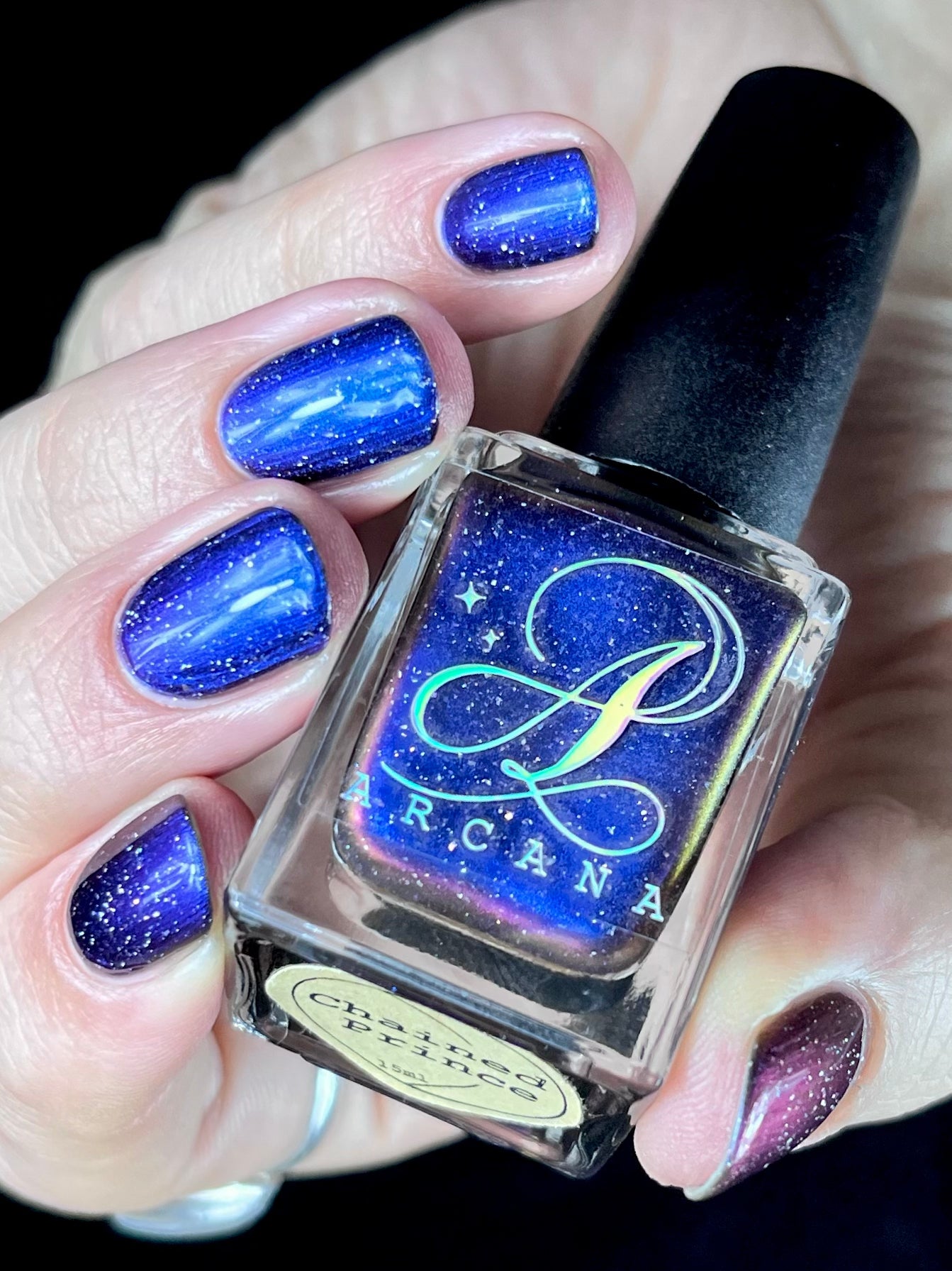 Chained Prince is a strong dark blue to purple shifting base with micro holo flakes.