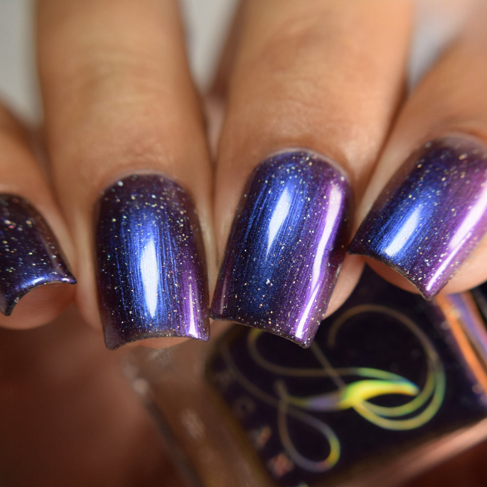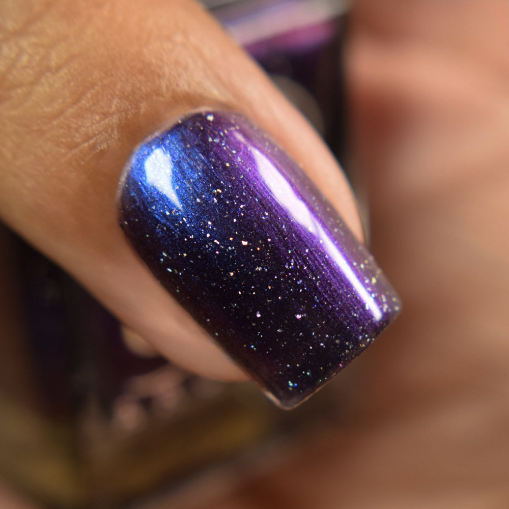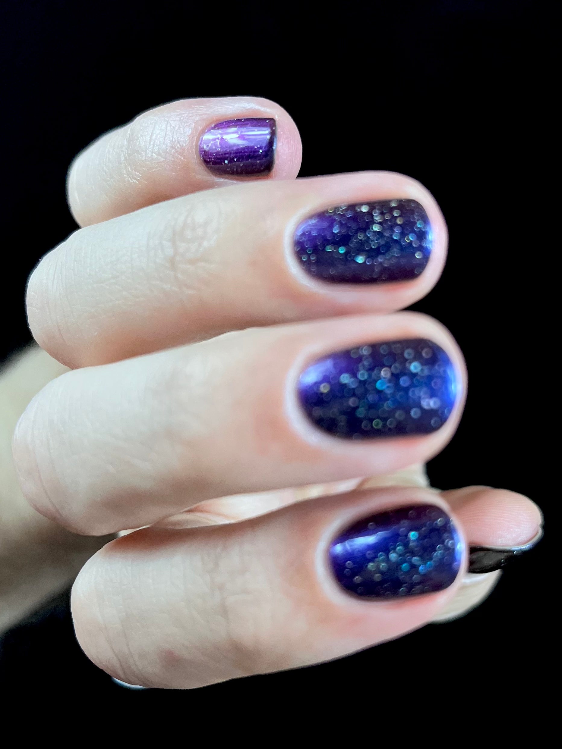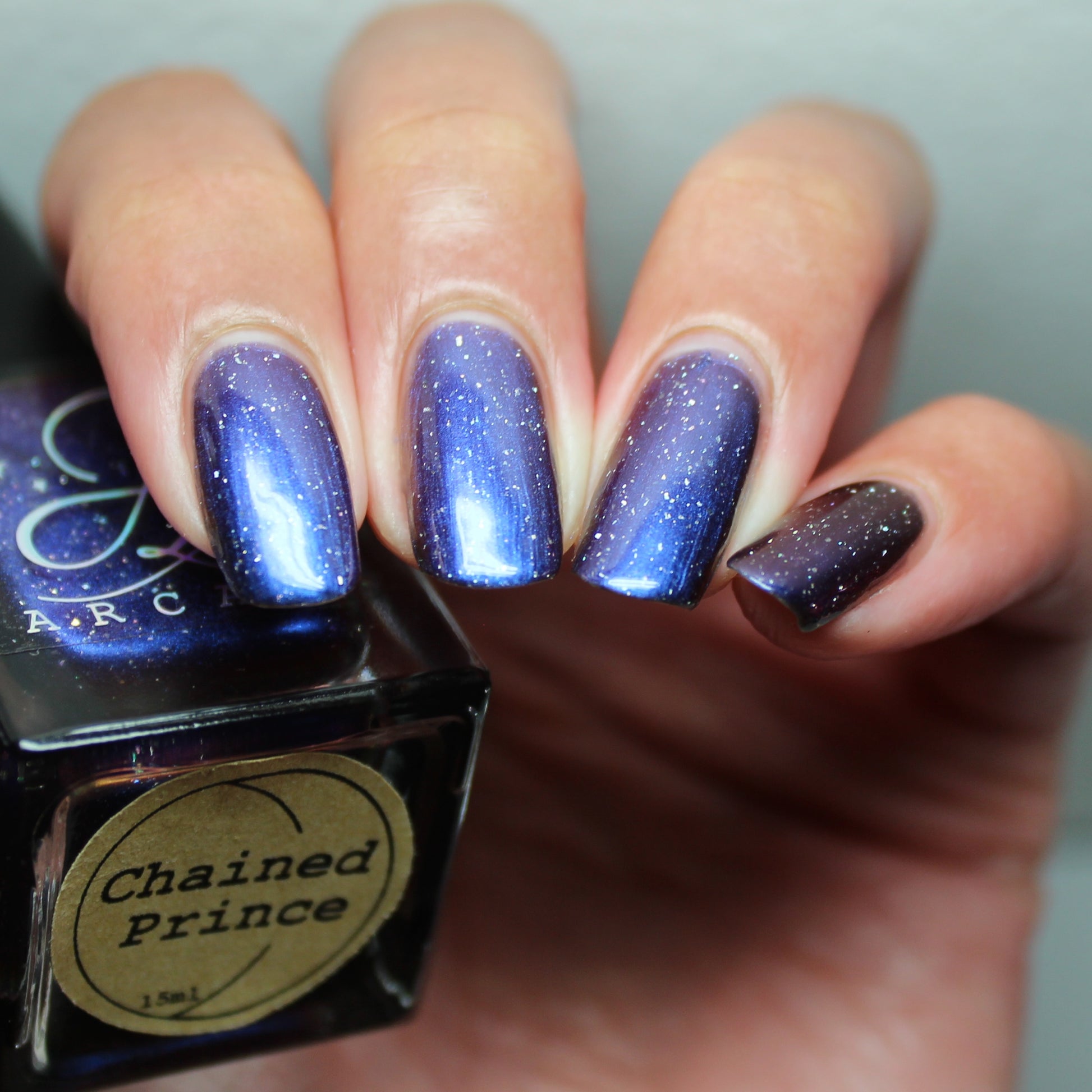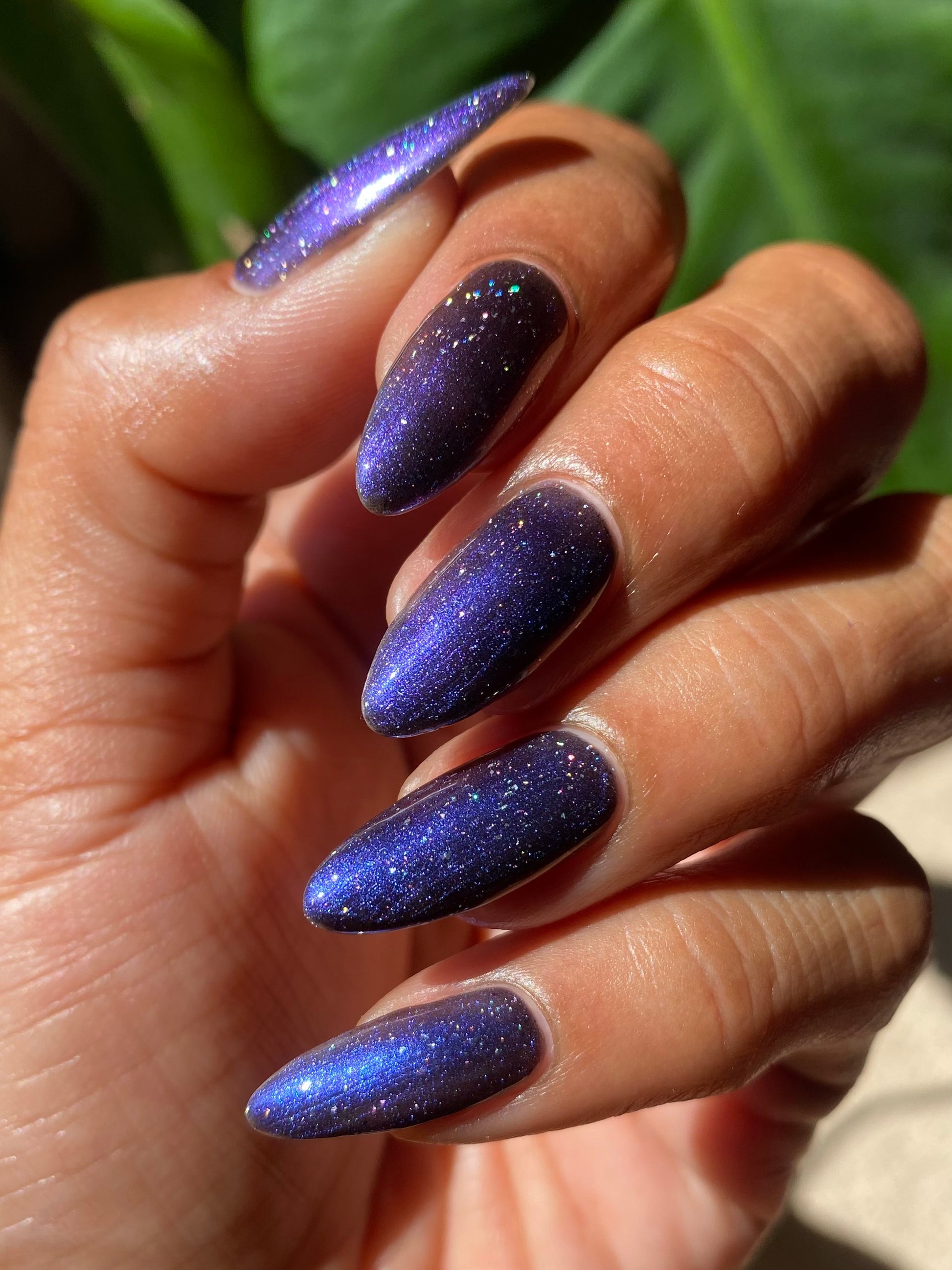 Chained Prince is a strong dark blue to purple shifting base with micro holo flakes.