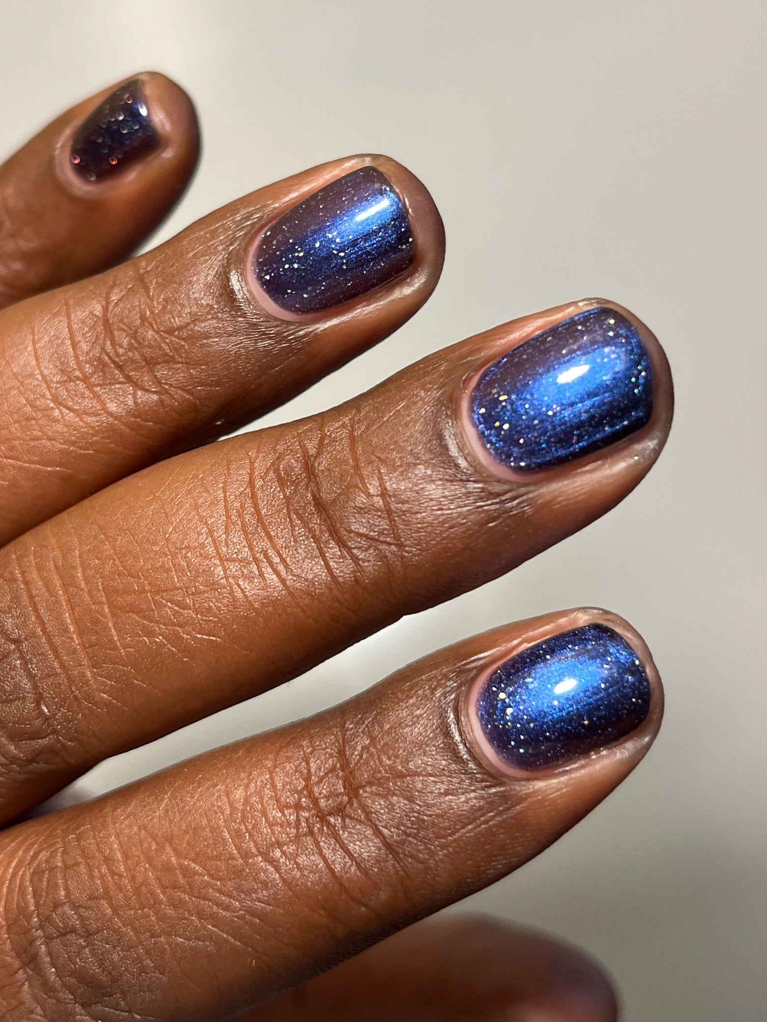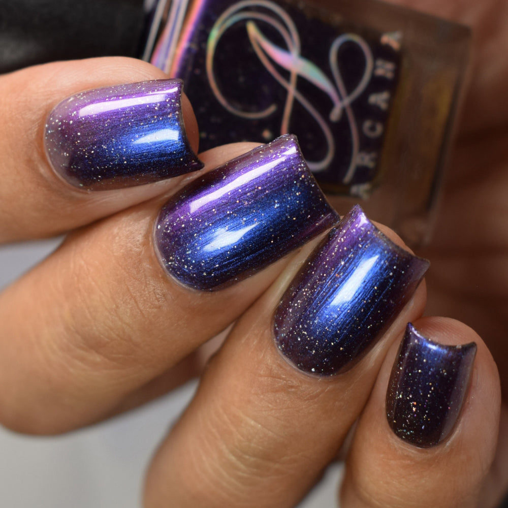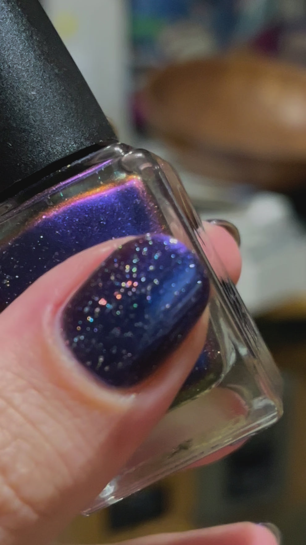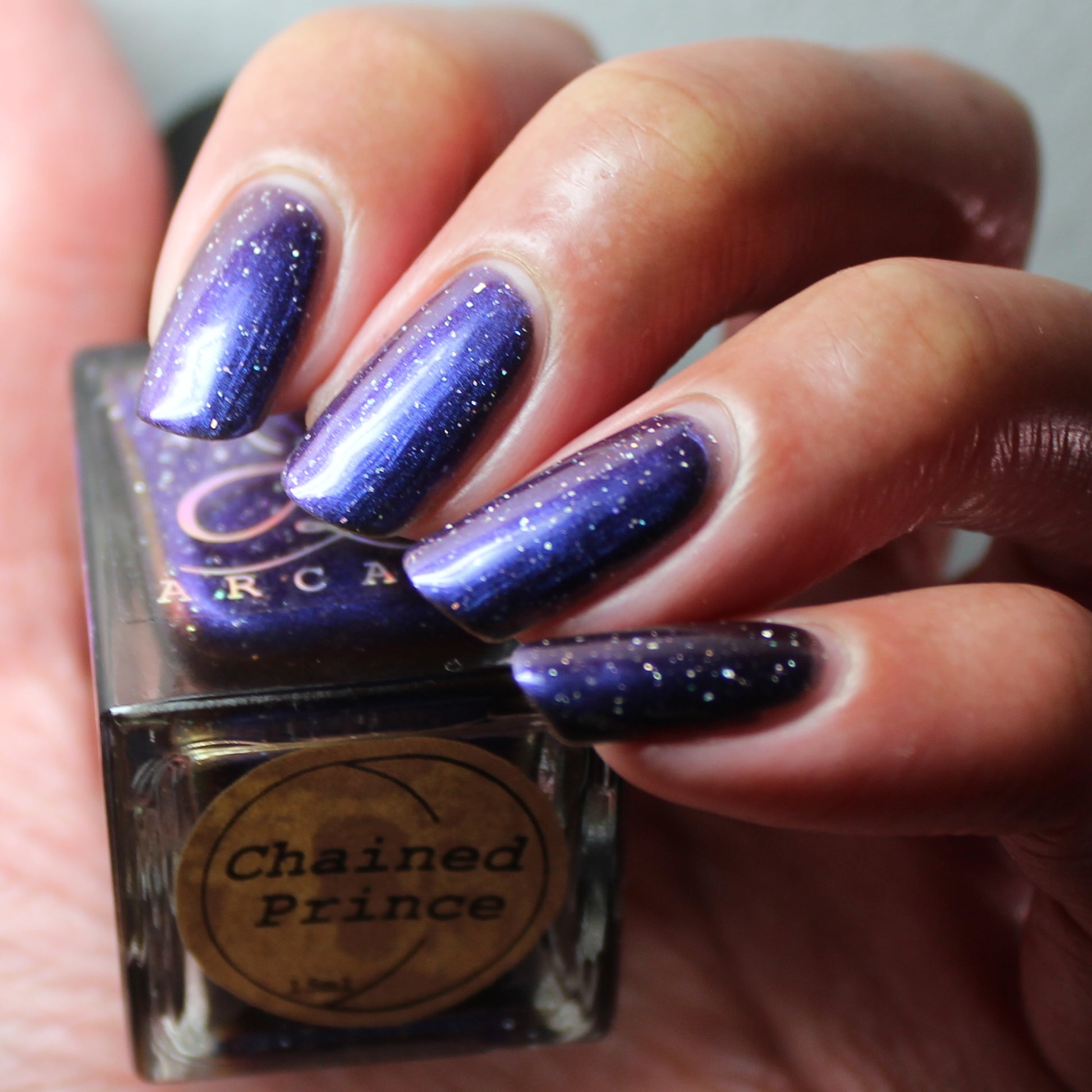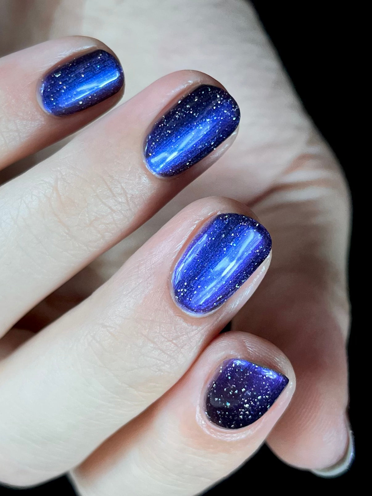 Chained Prince is a strong dark blue to purple shifting base with micro holo flakes.