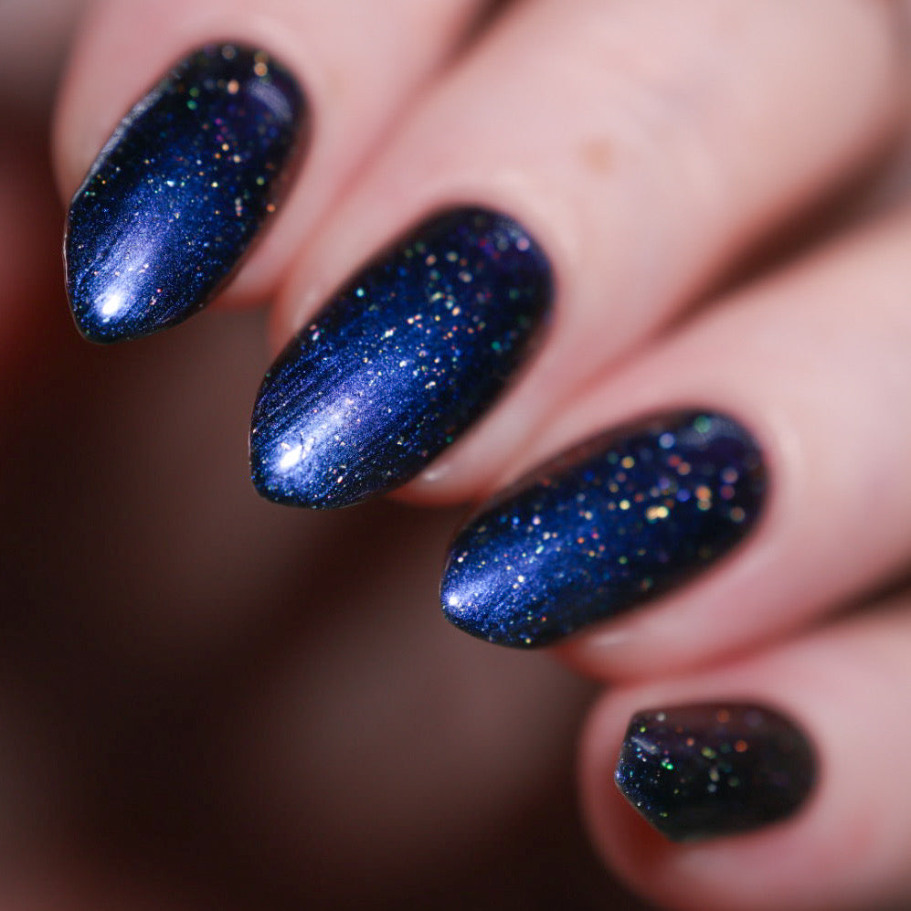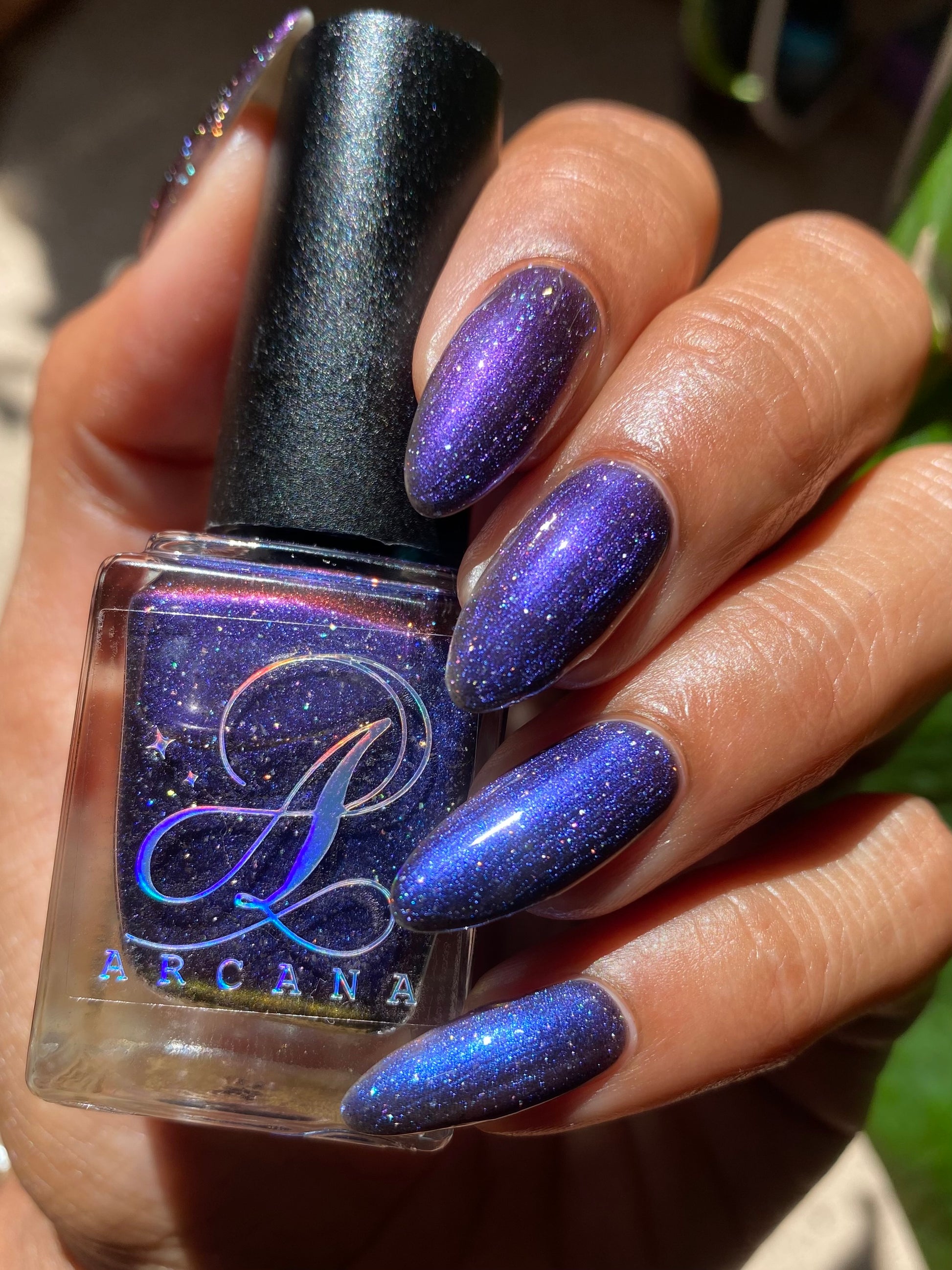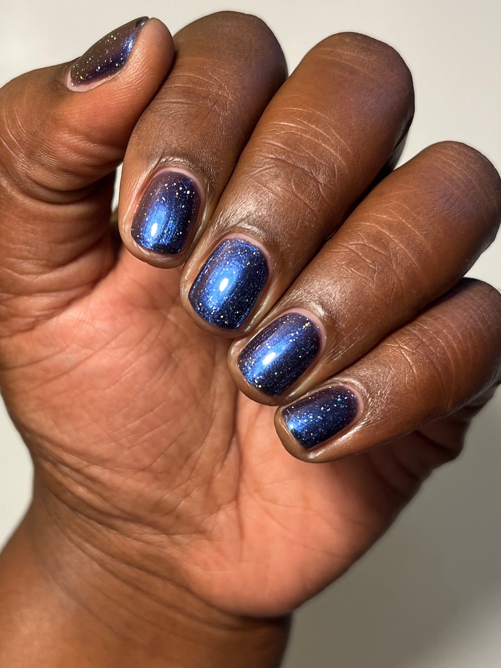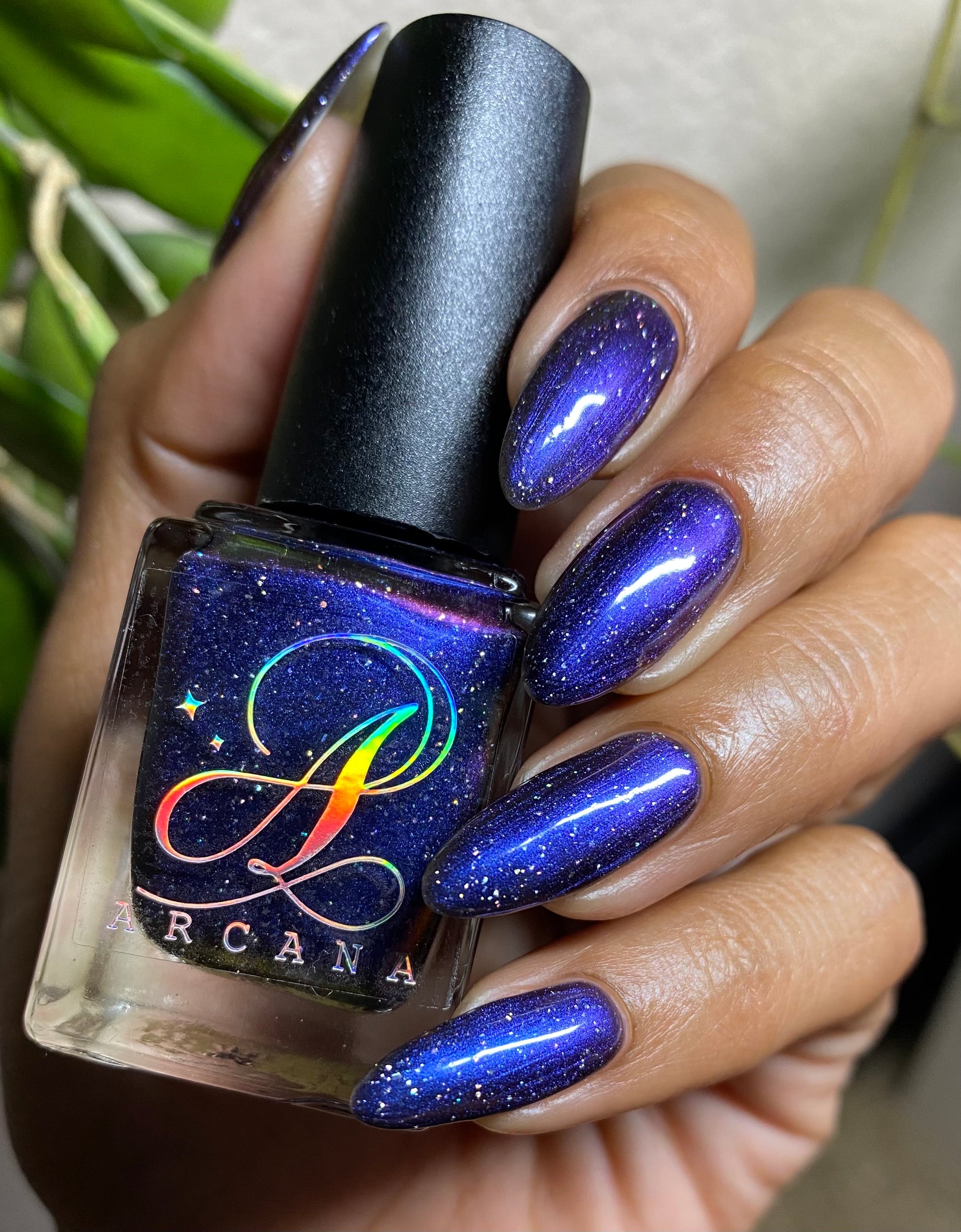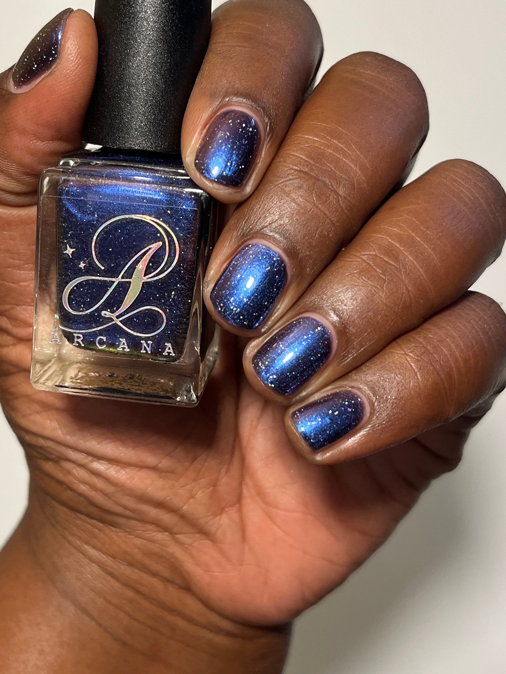 Chained Prince is a strong dark blue to purple shifting base with micro holo flakes.