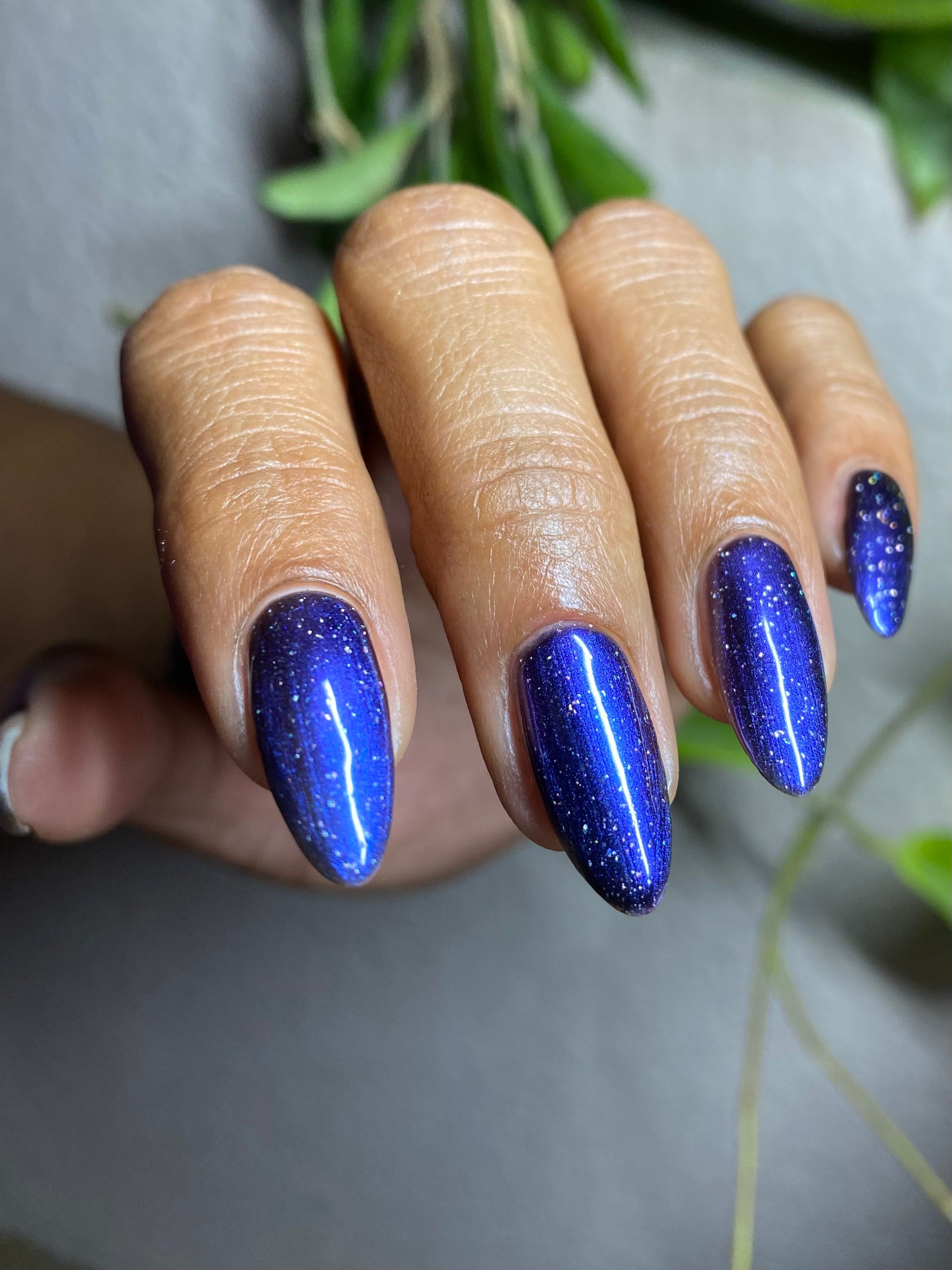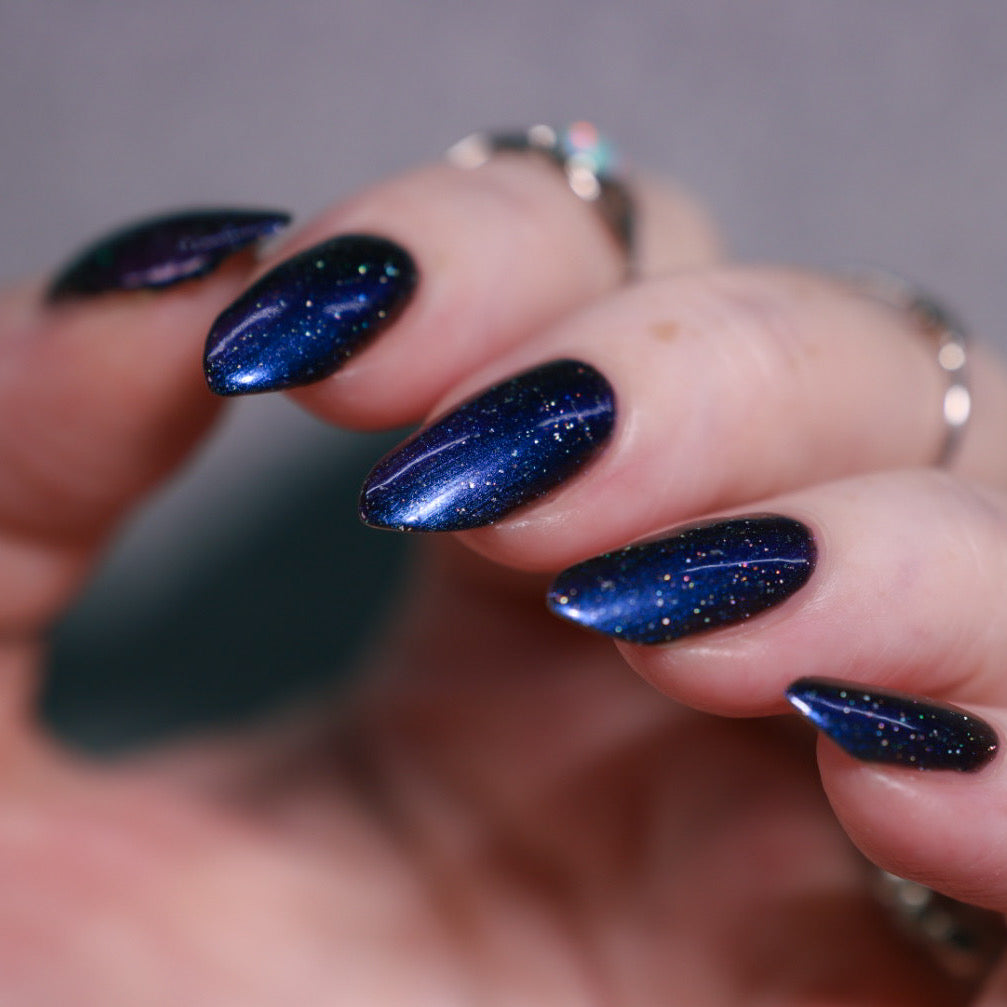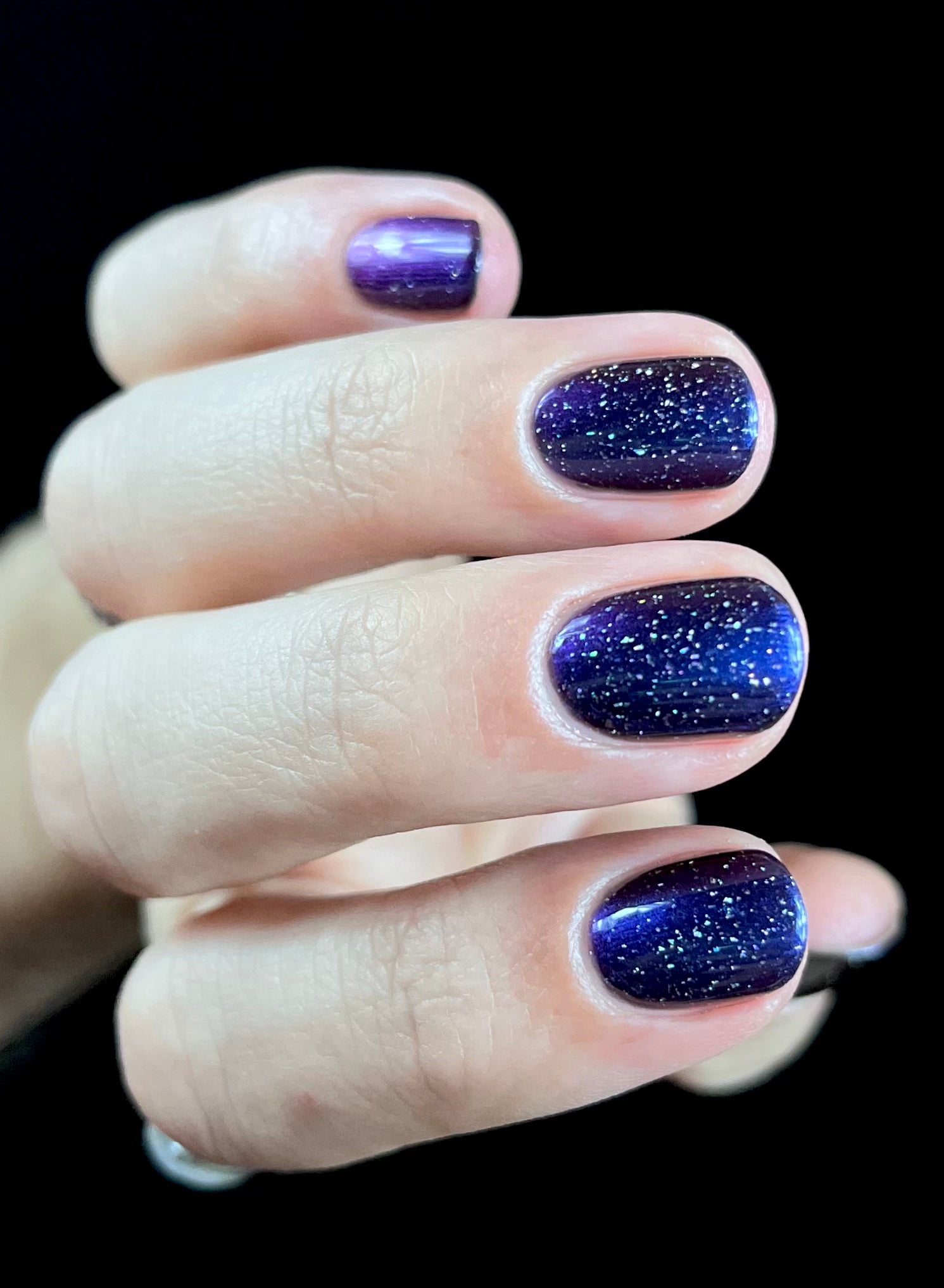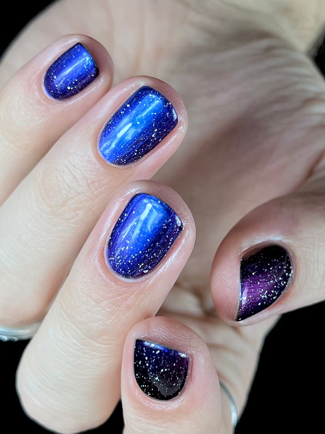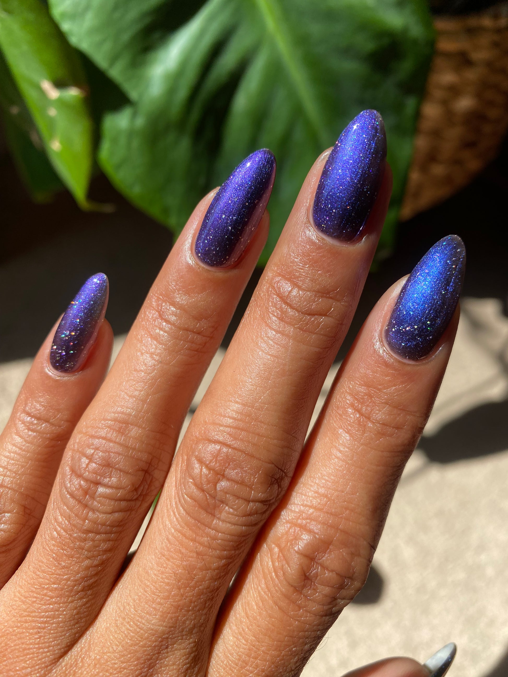 Chained Prince is a strong dark blue to purple shifting base with micro holo flakes.