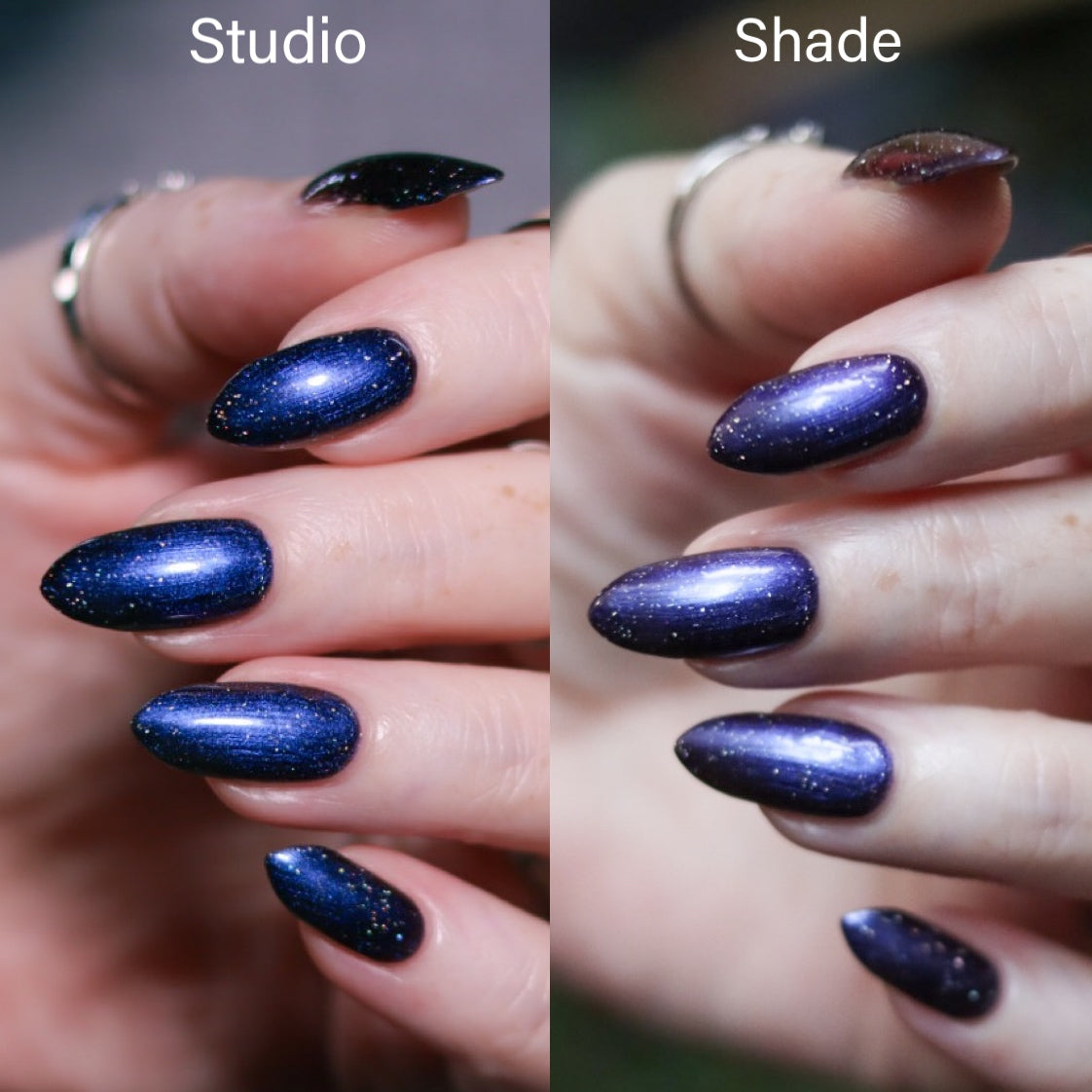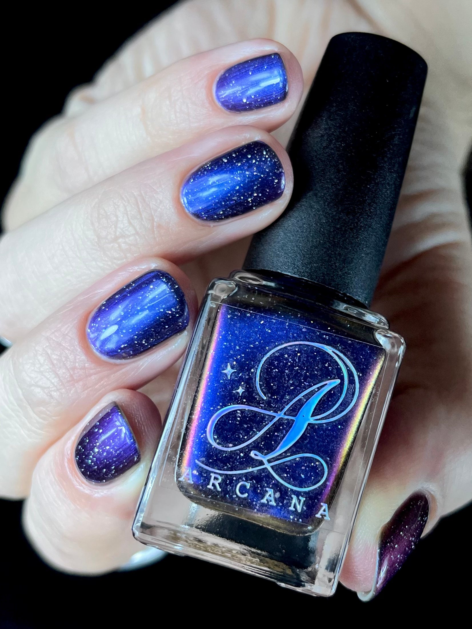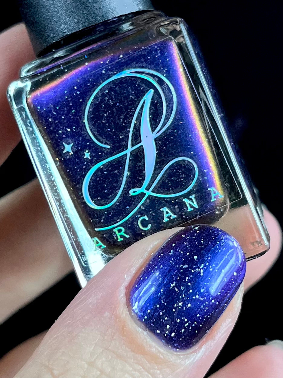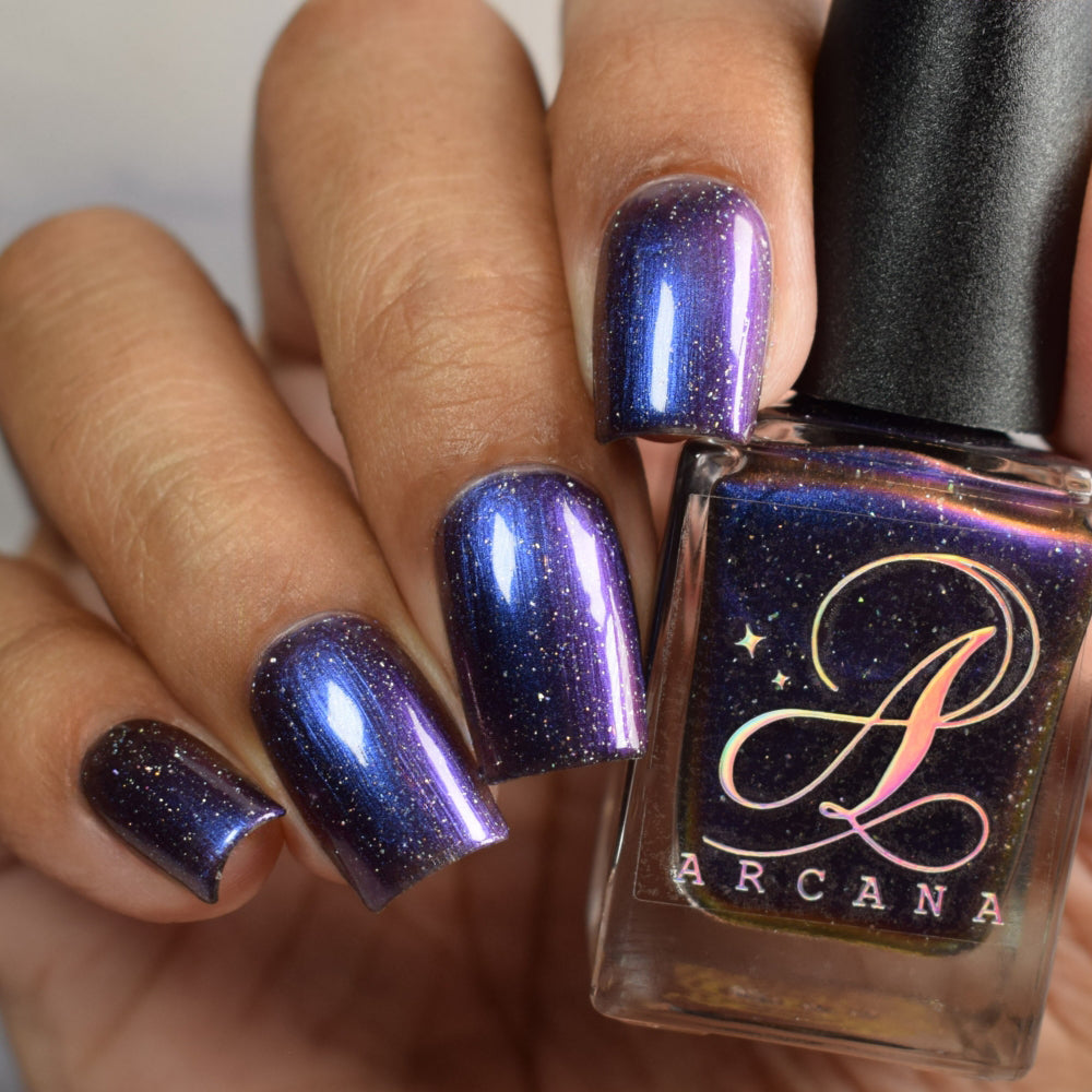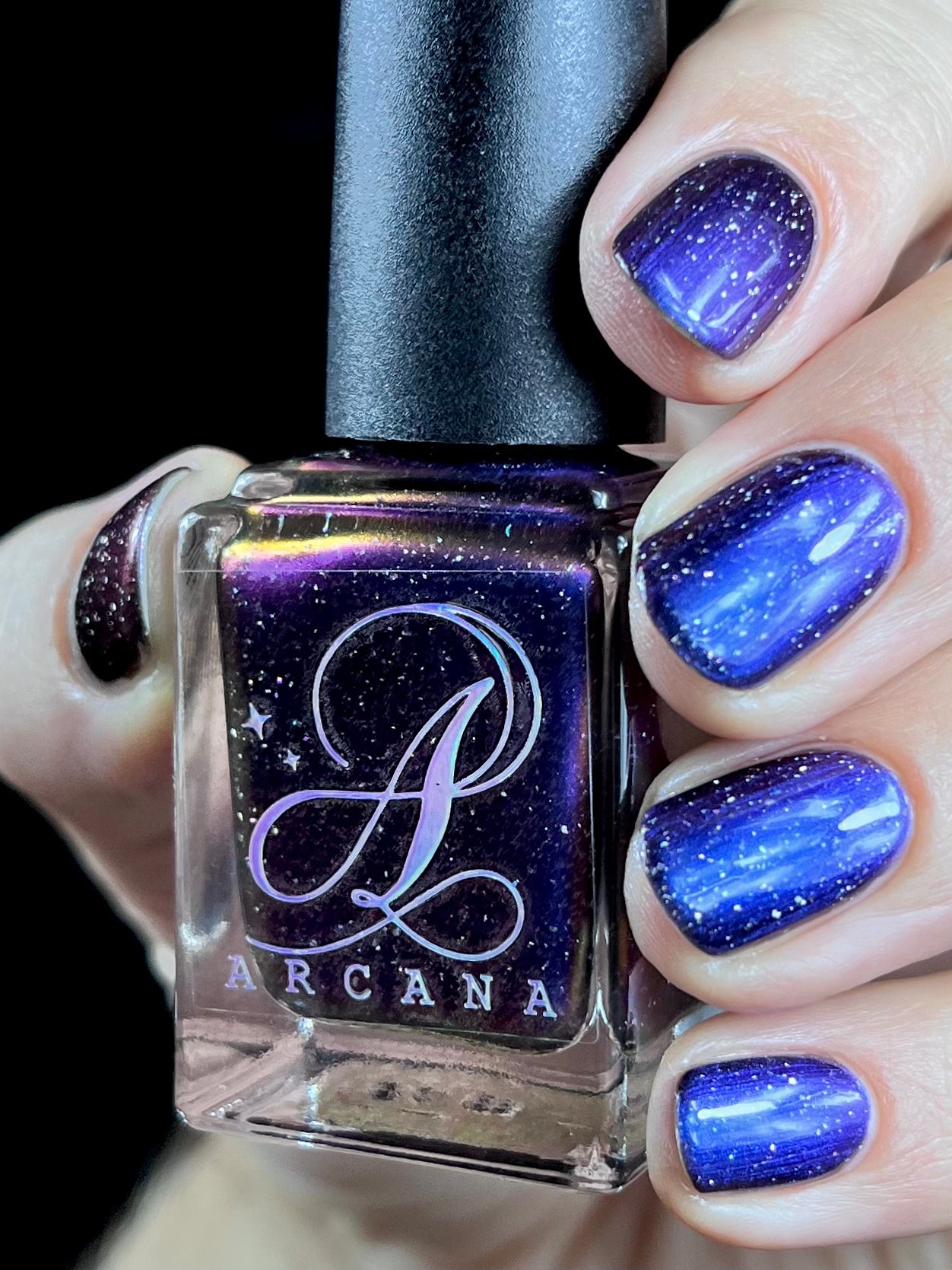 Chained Prince is a strong dark blue to purple shifting base with micro holo flakes.