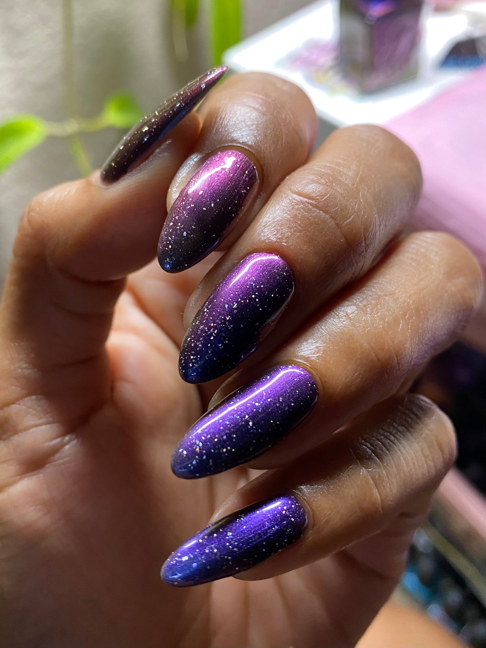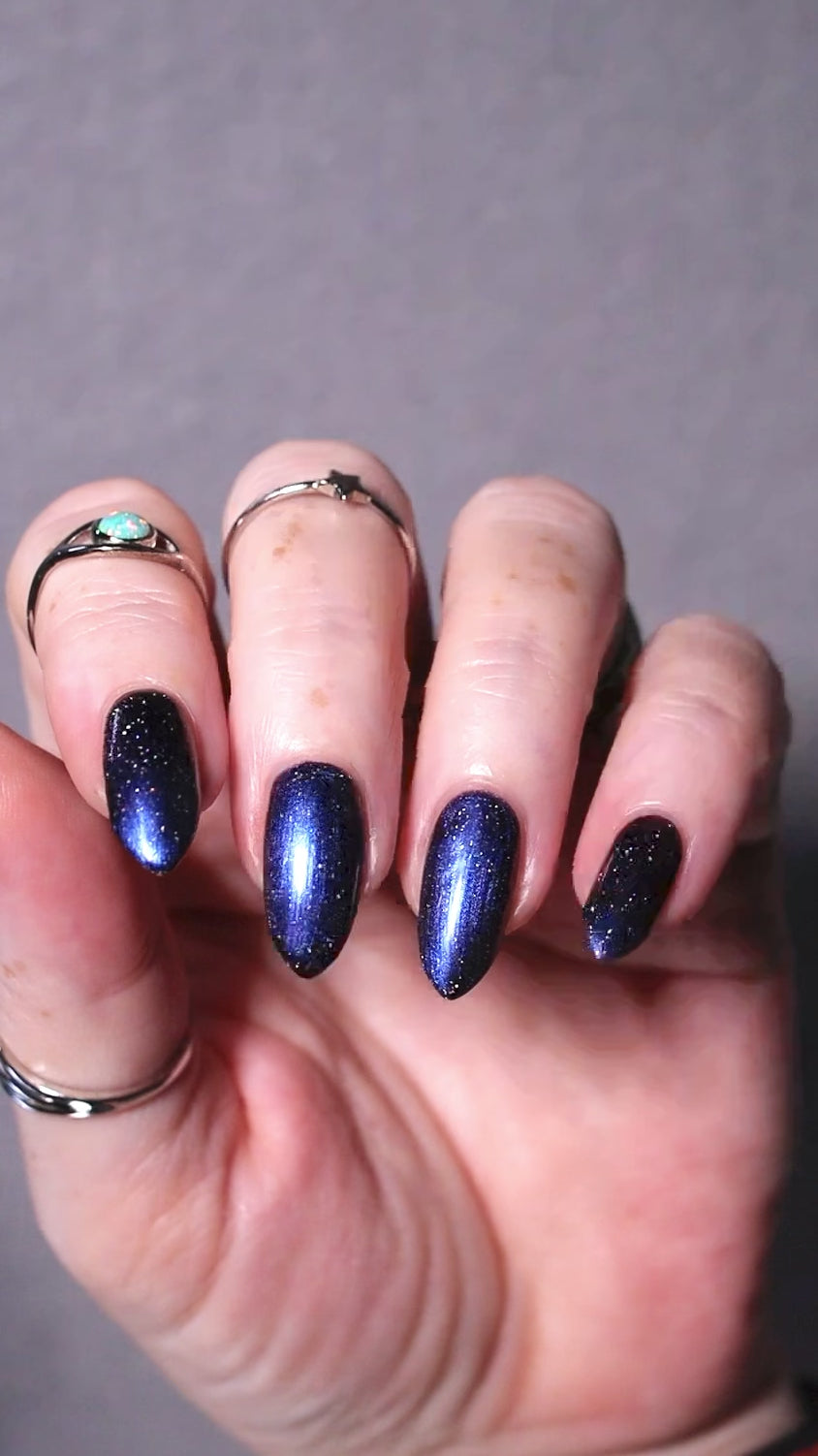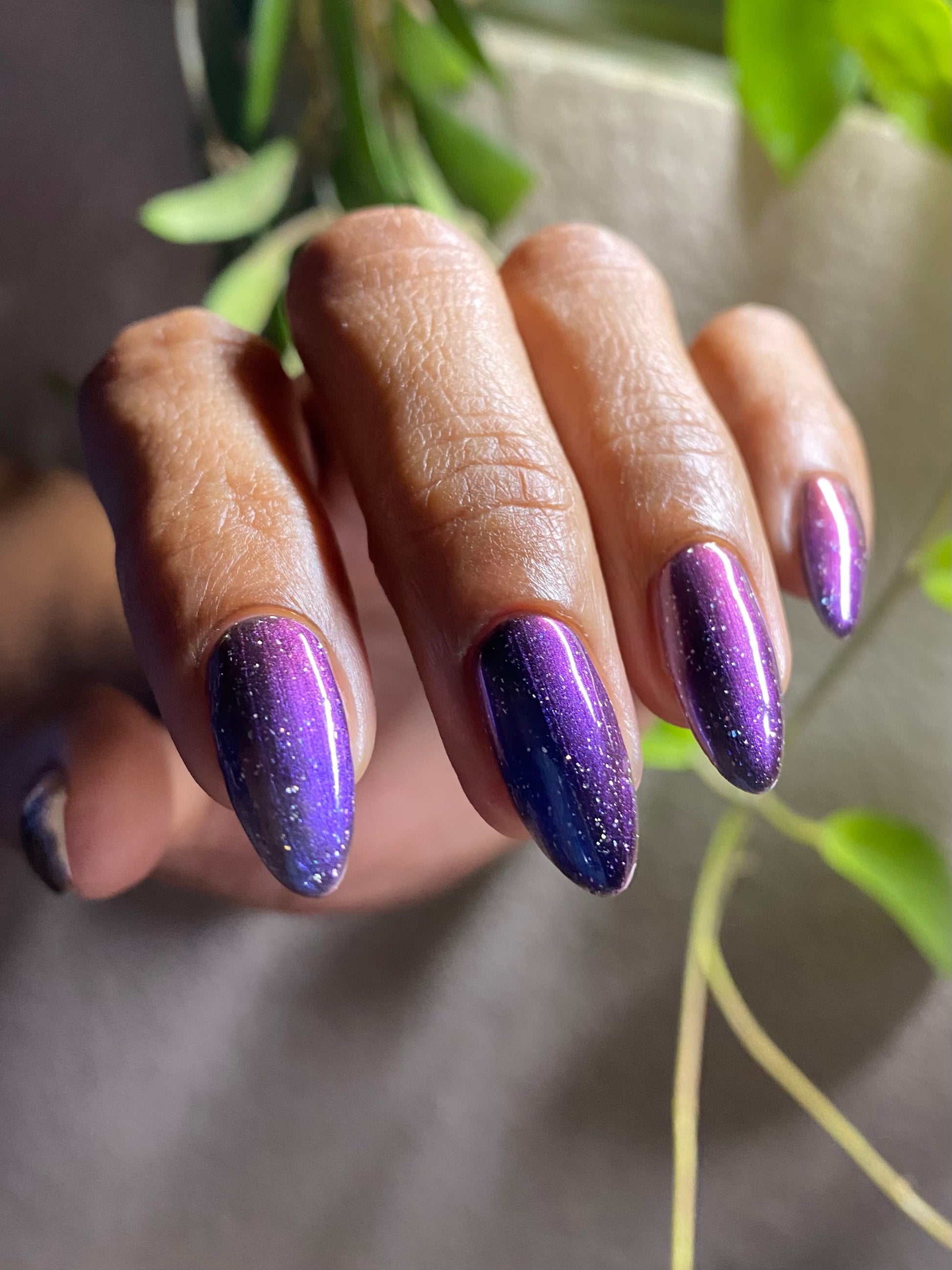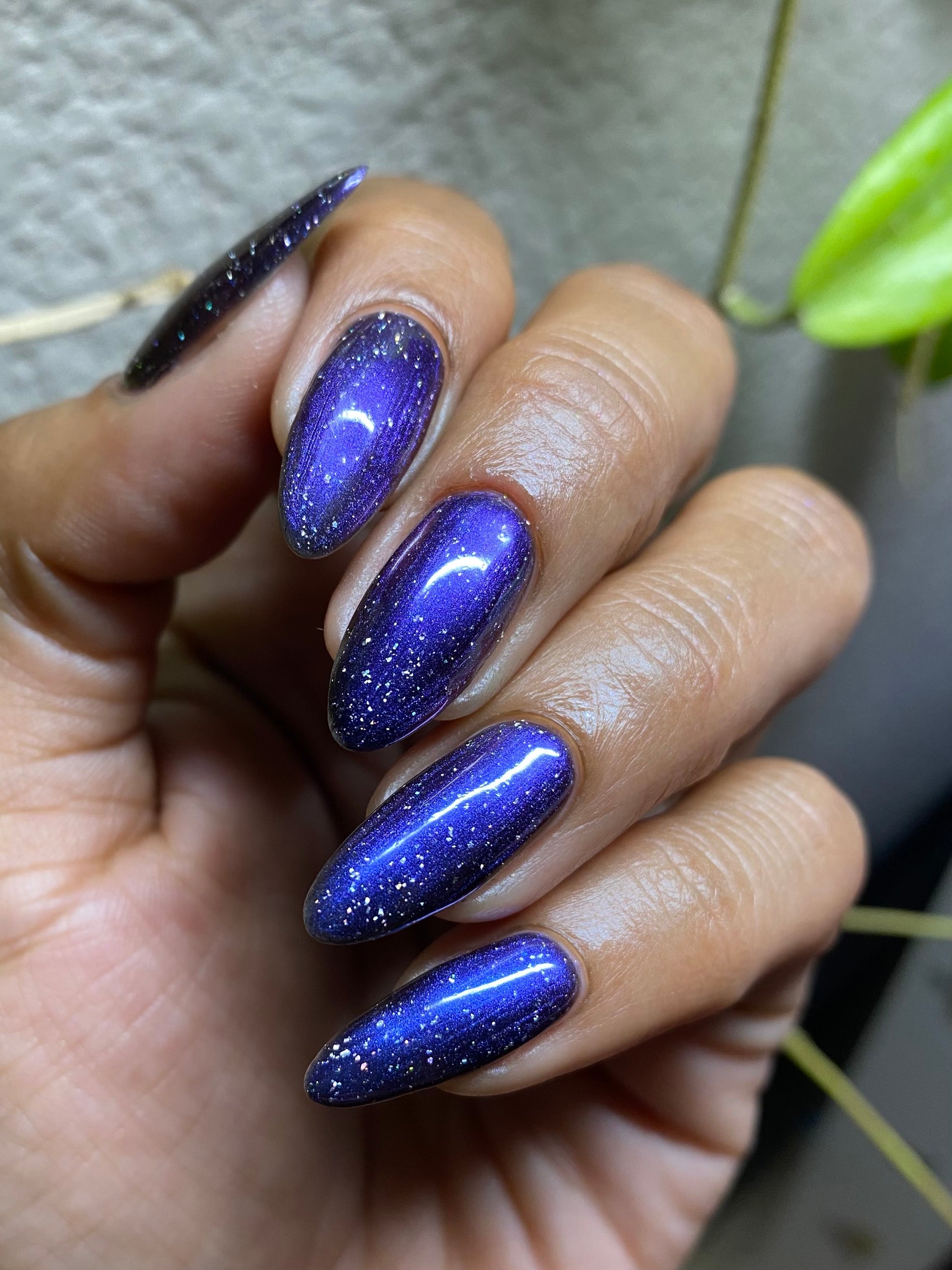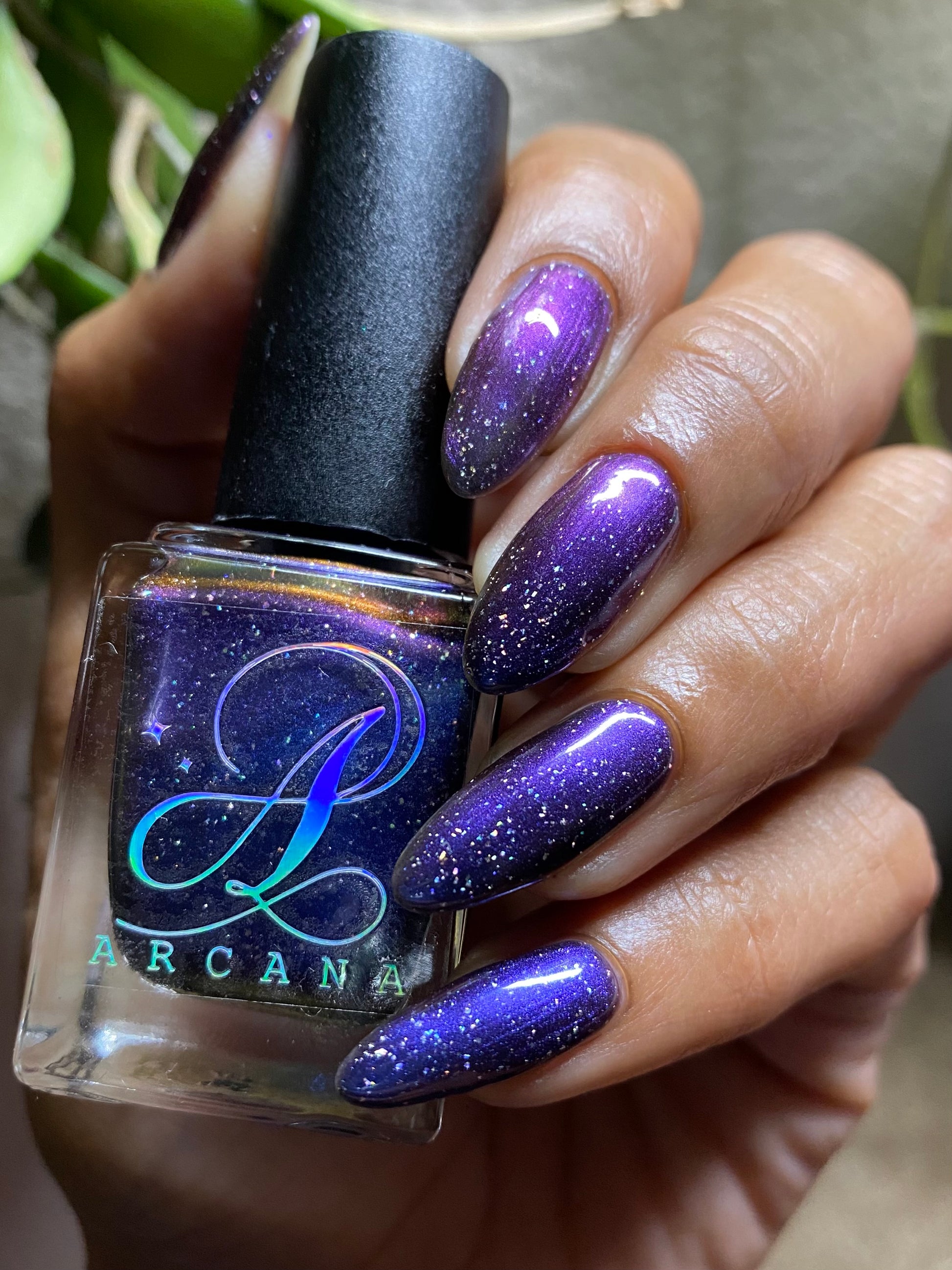 Chained Prince is a strong dark blue to purple shifting base with micro holo flakes.