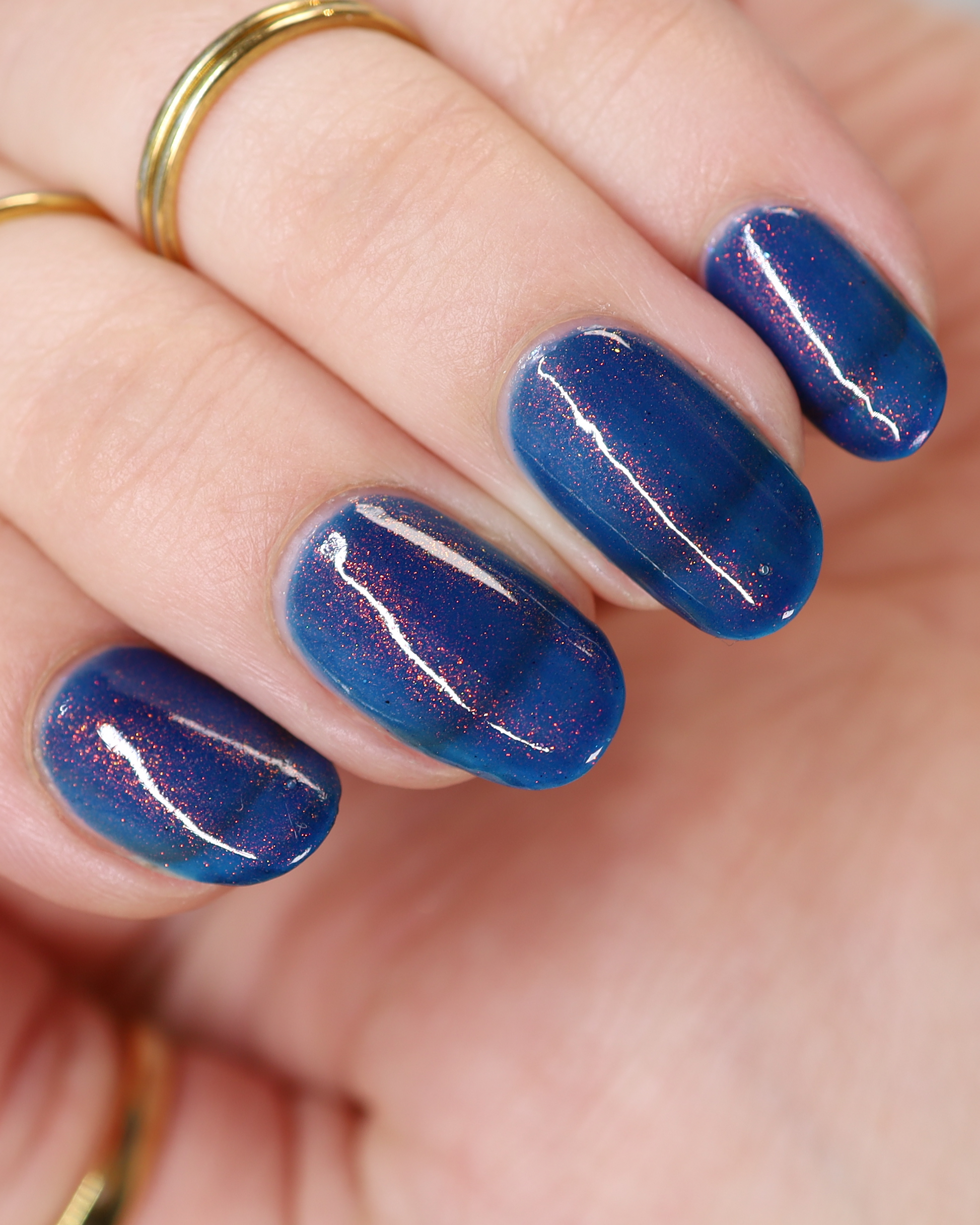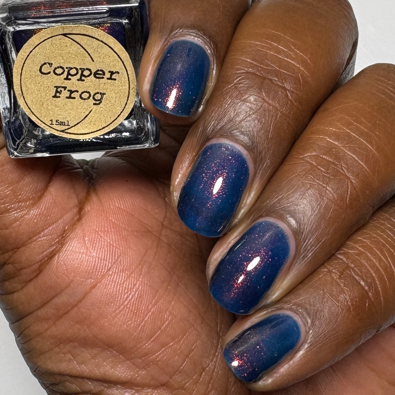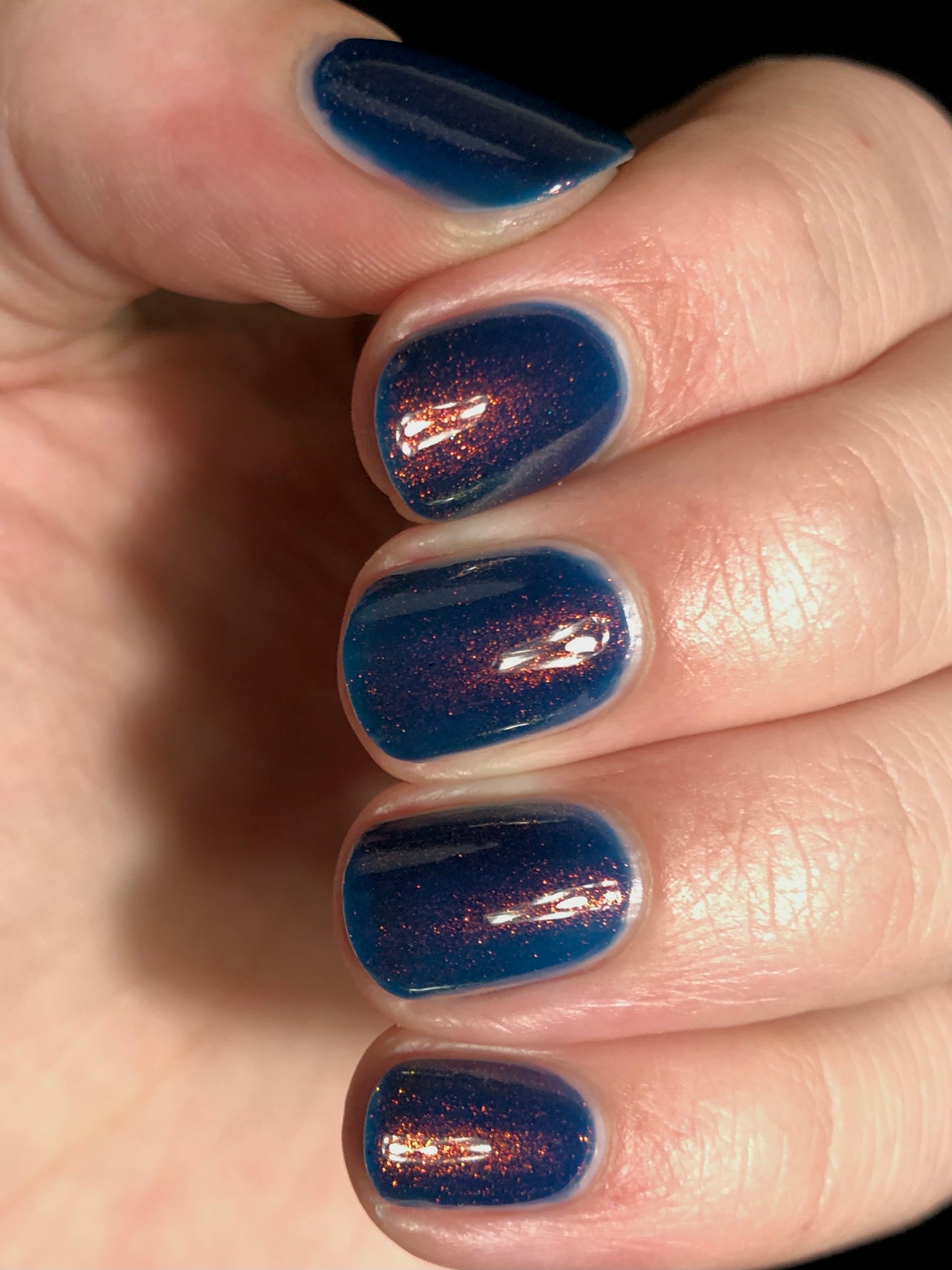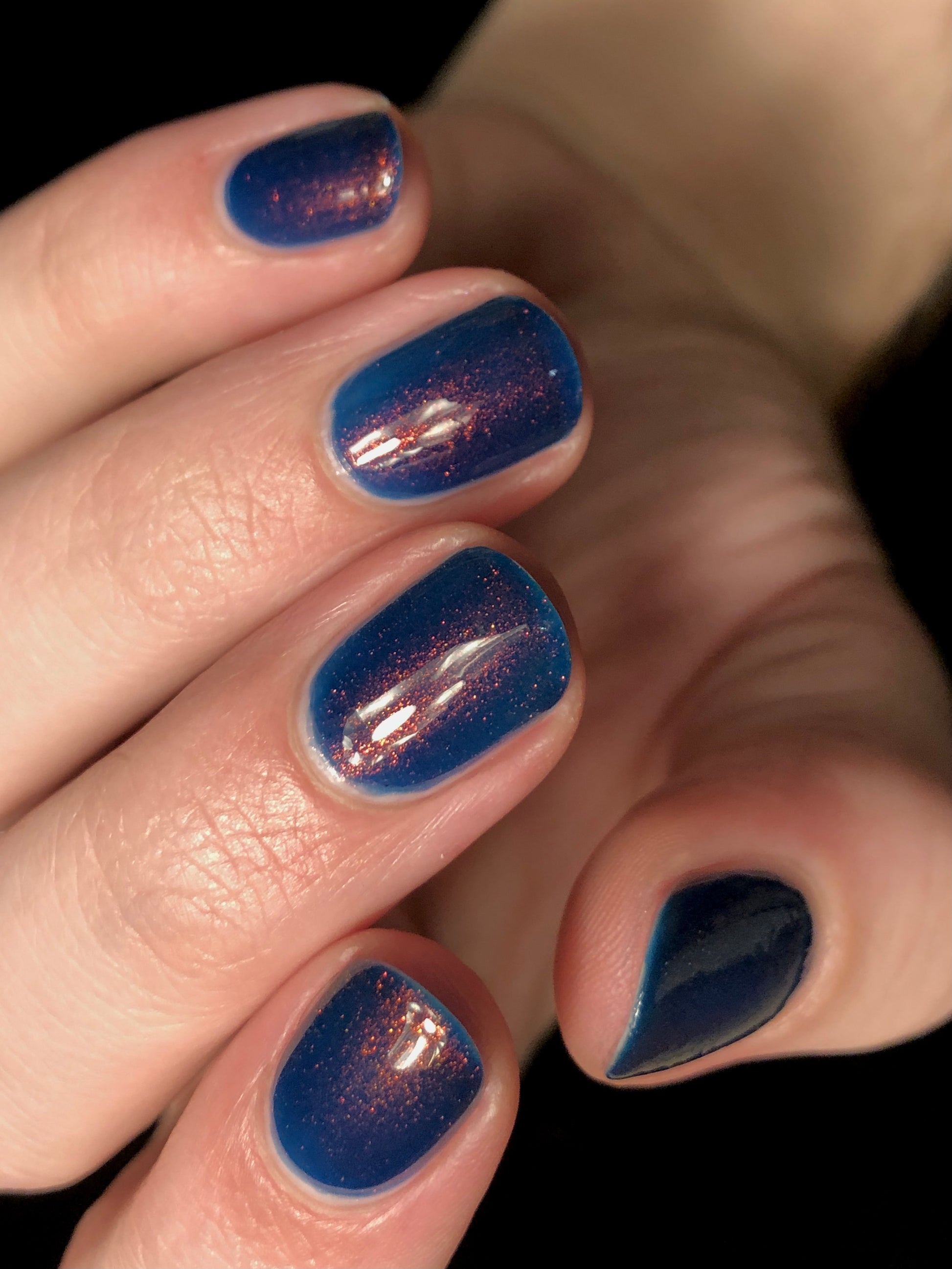 Copper Frog is a sibling to Golden Toad! This polish has a denim blue jelly base with copper to gold shimmer.