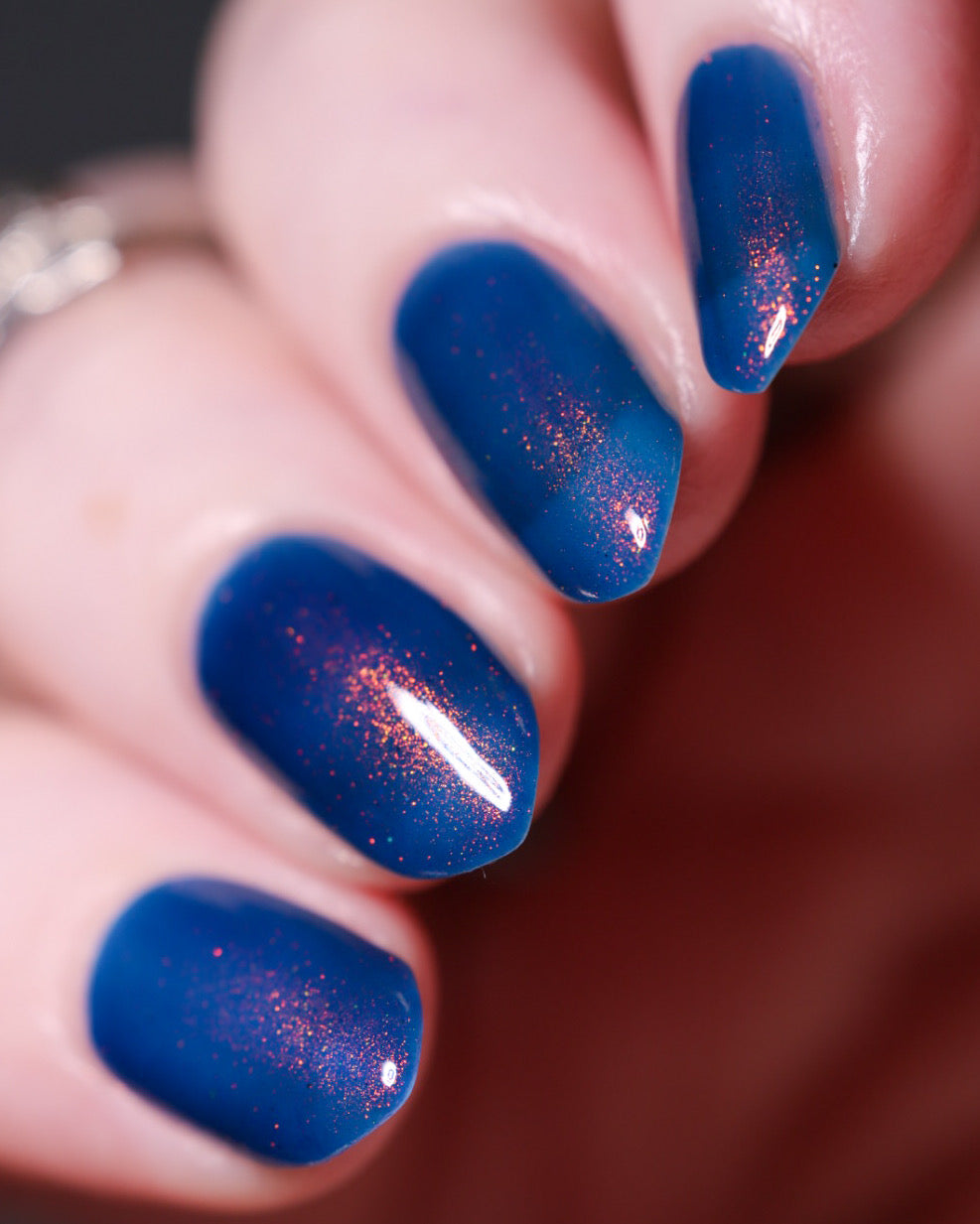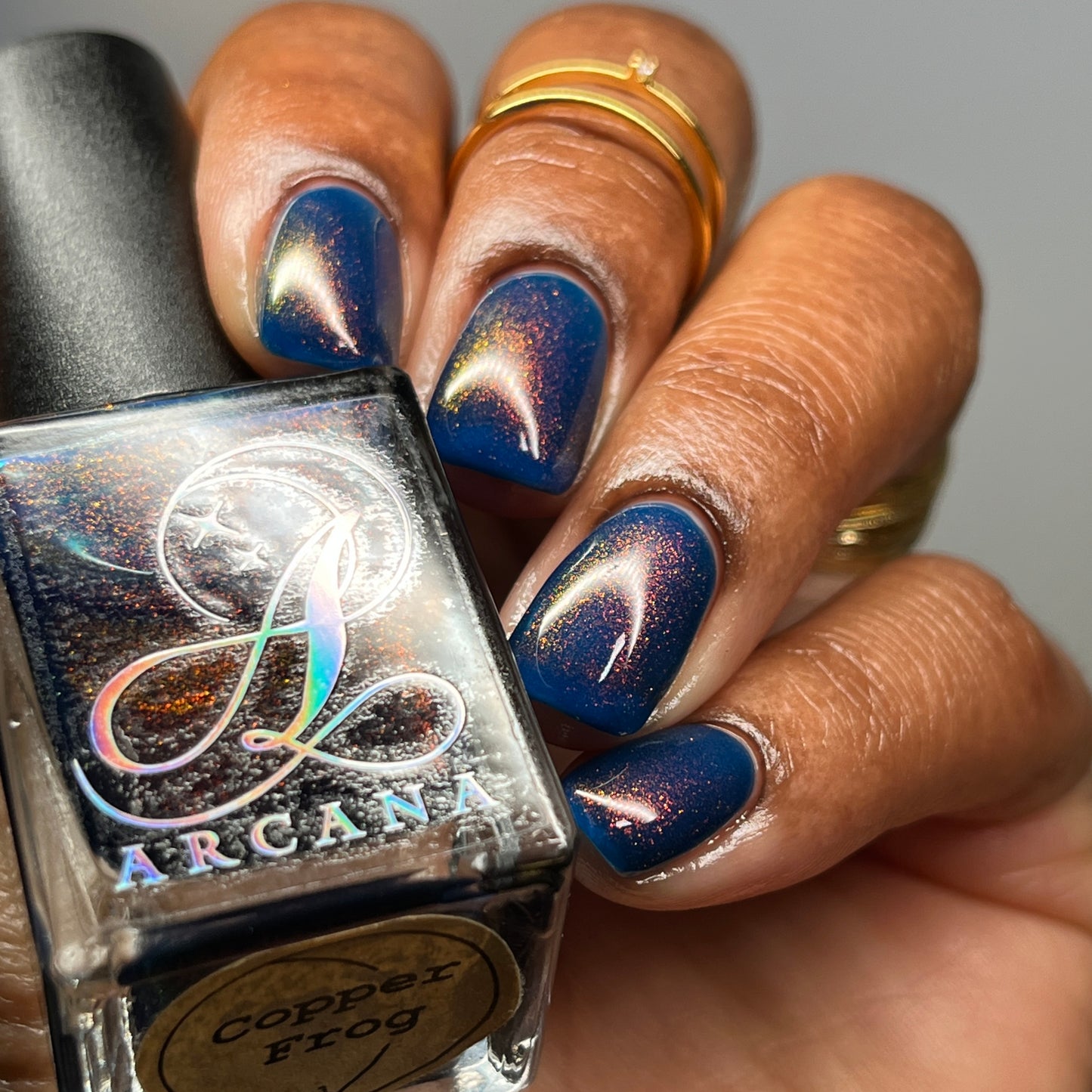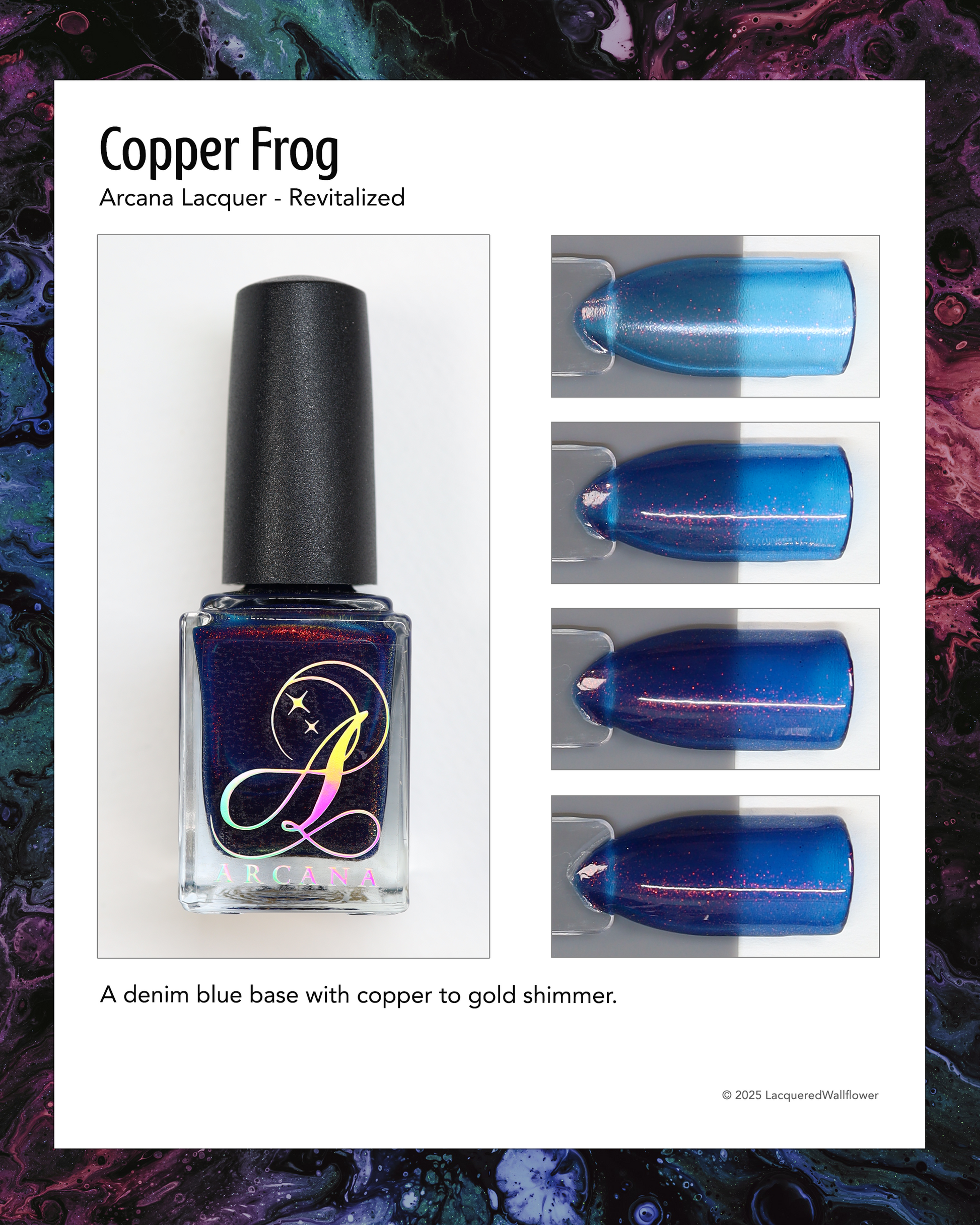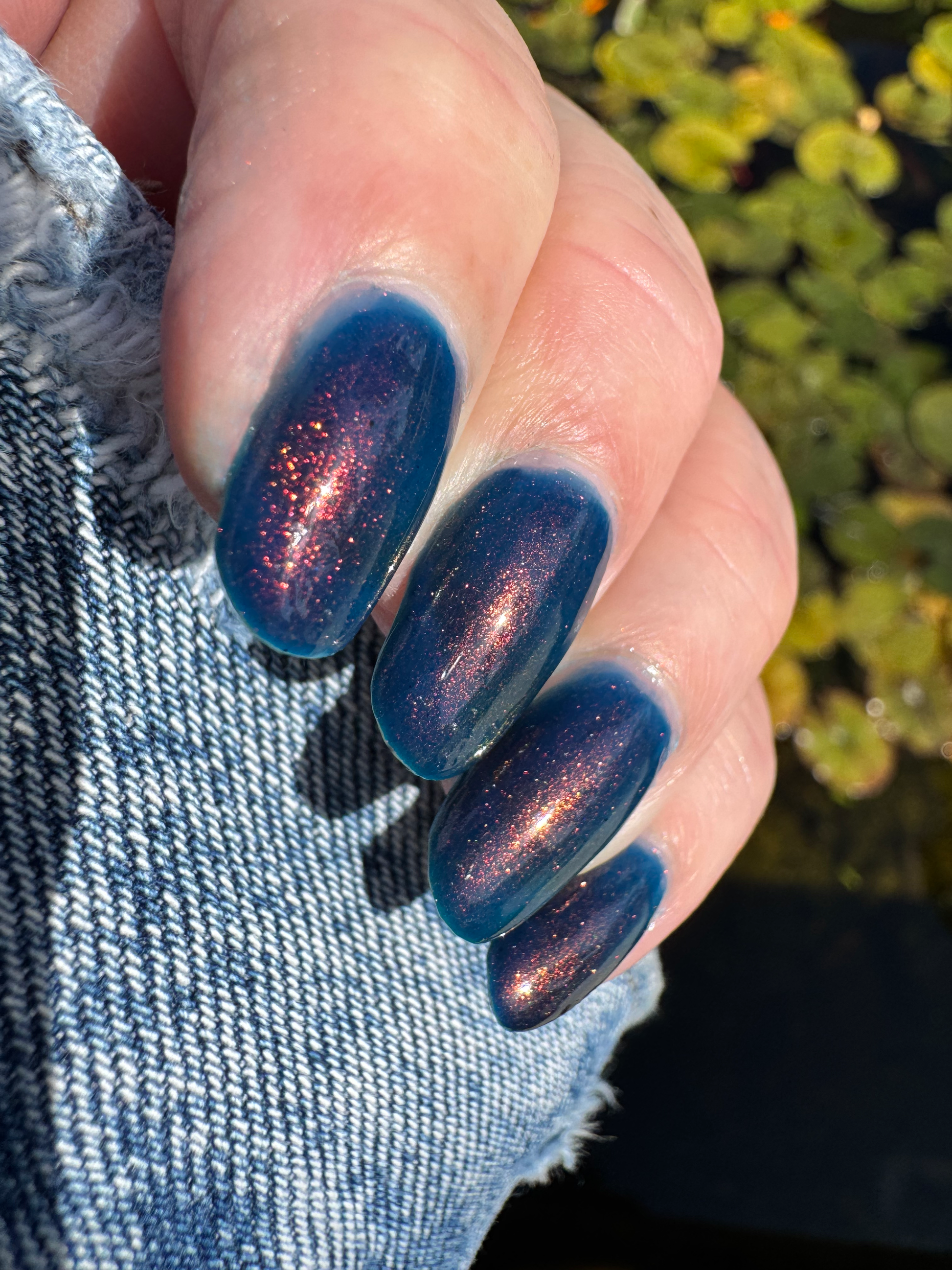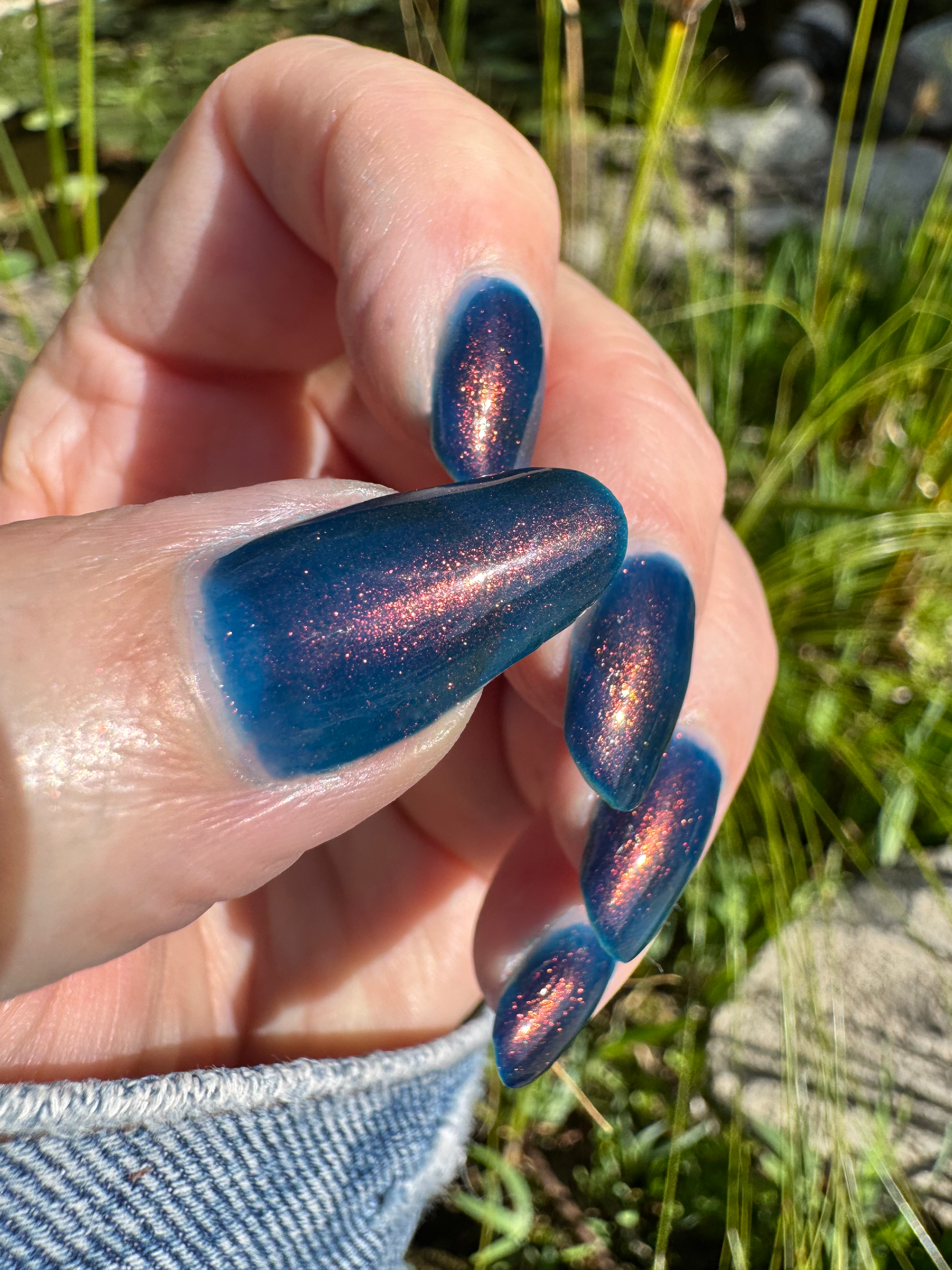 Copper Frog is a sibling to Golden Toad! This polish has a denim blue jelly base with copper to gold shimmer.