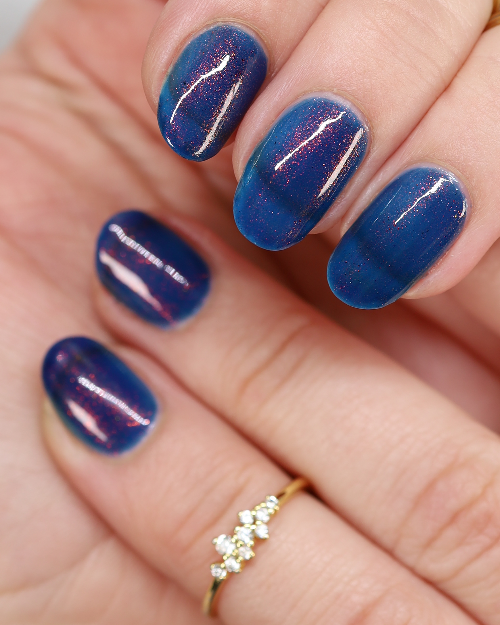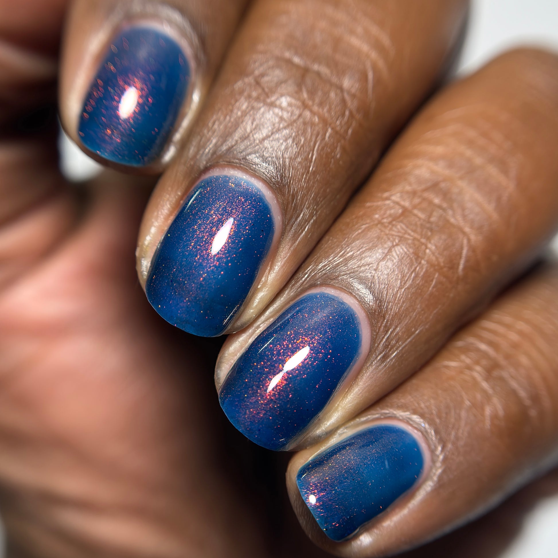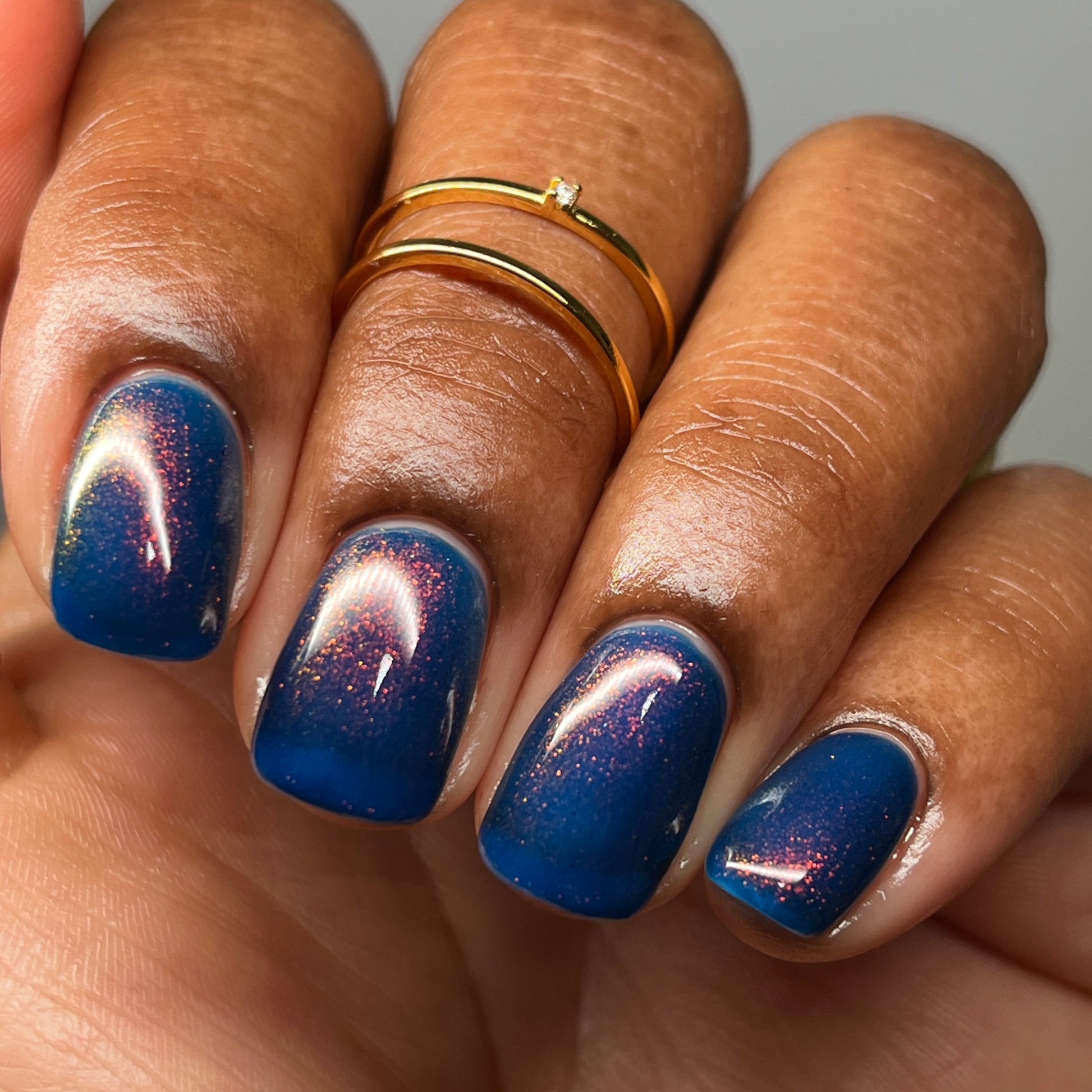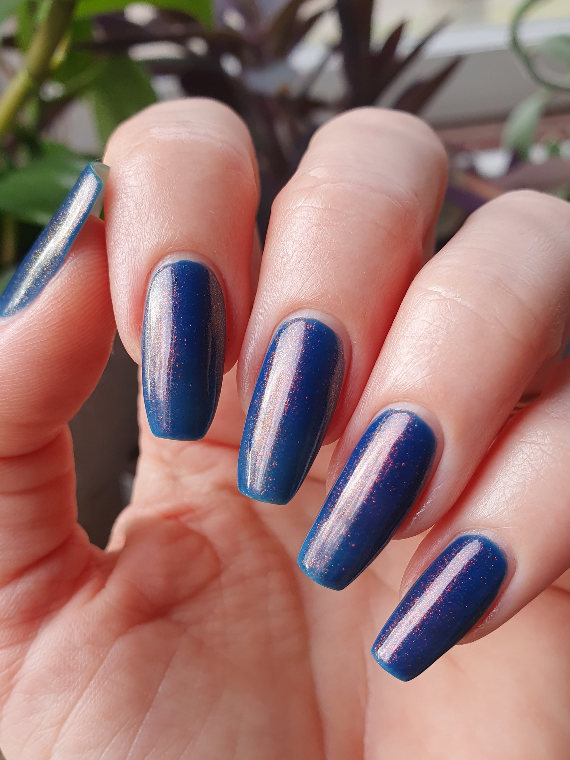 Copper Frog is a sibling to Golden Toad! This polish has a denim blue jelly base with copper to gold shimmer.