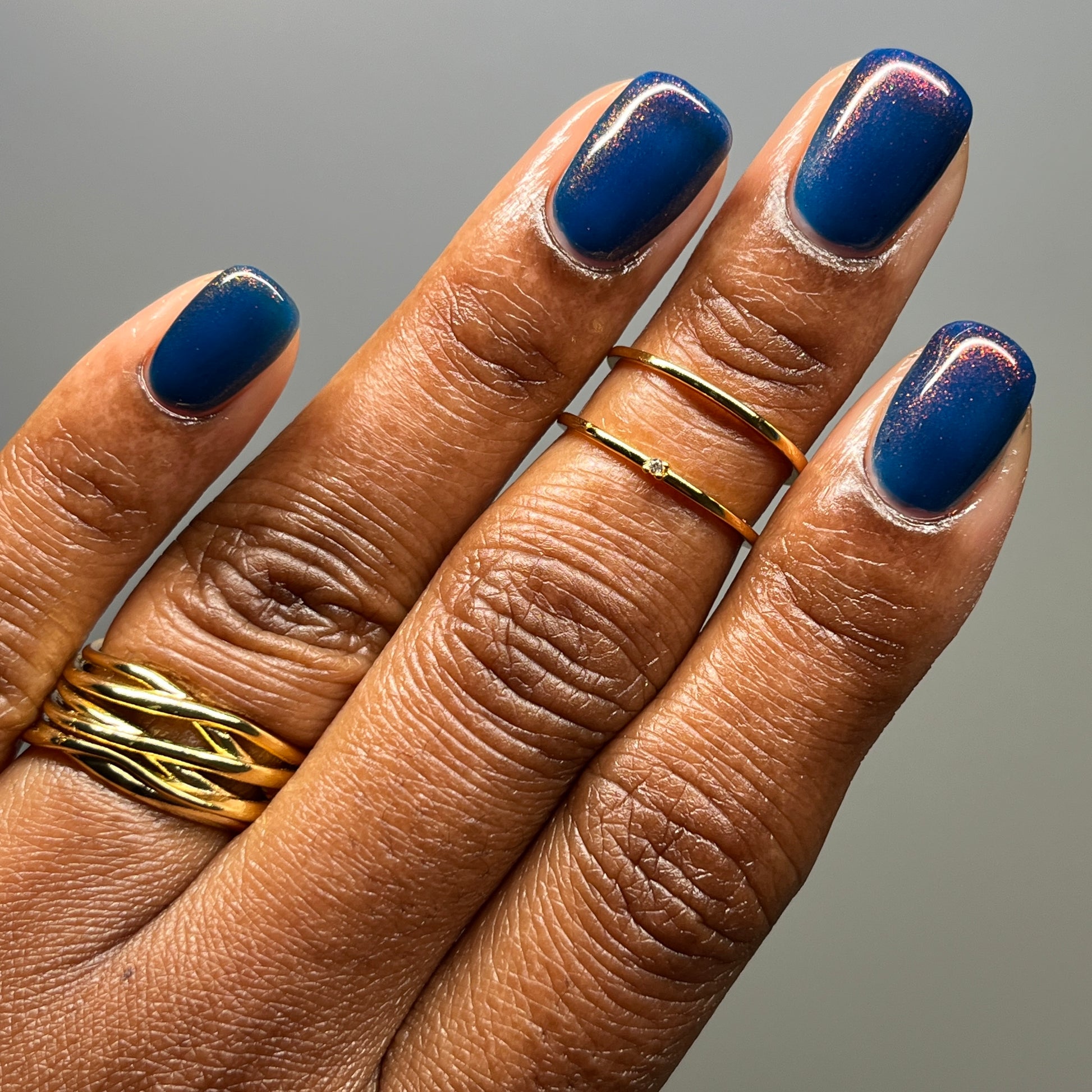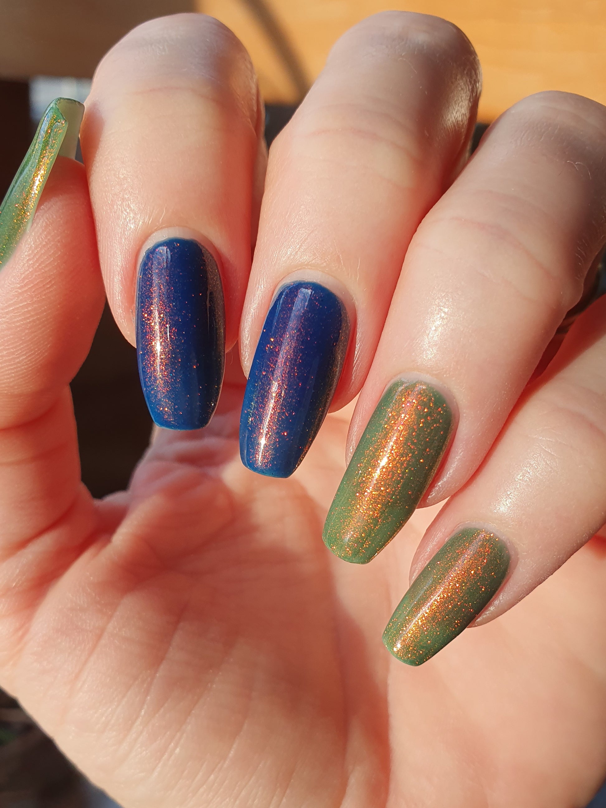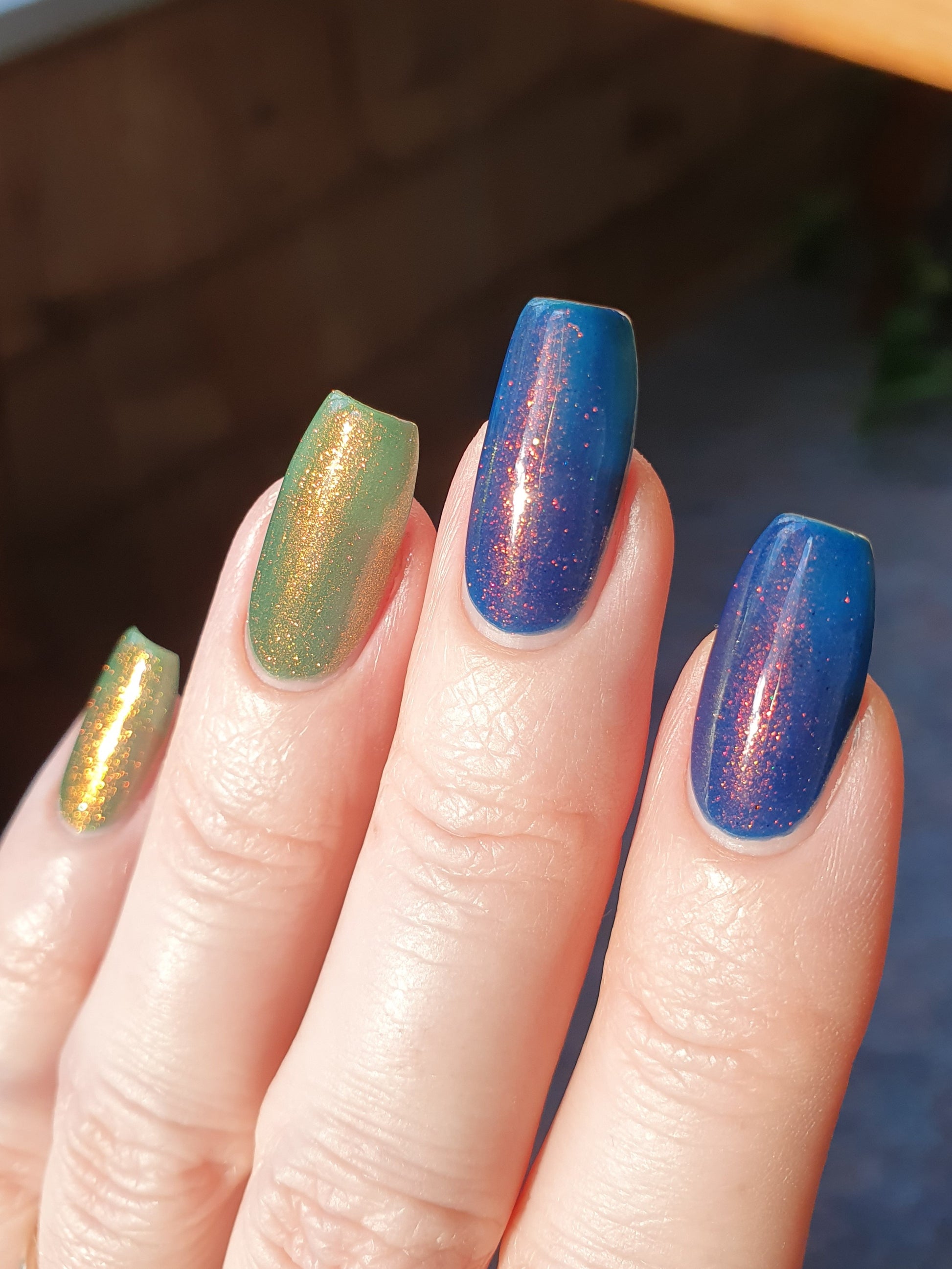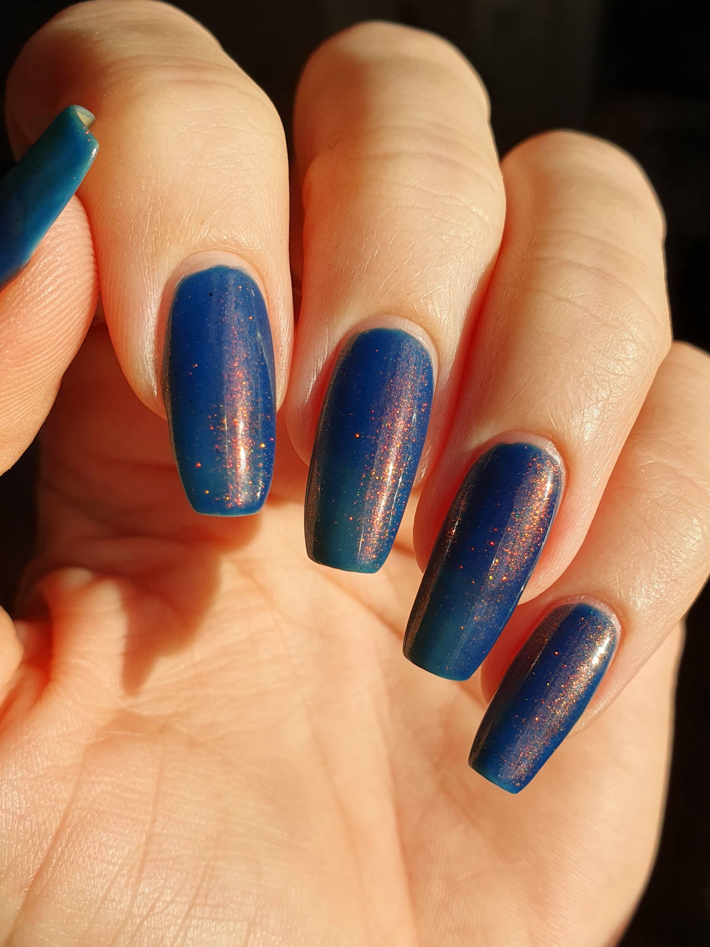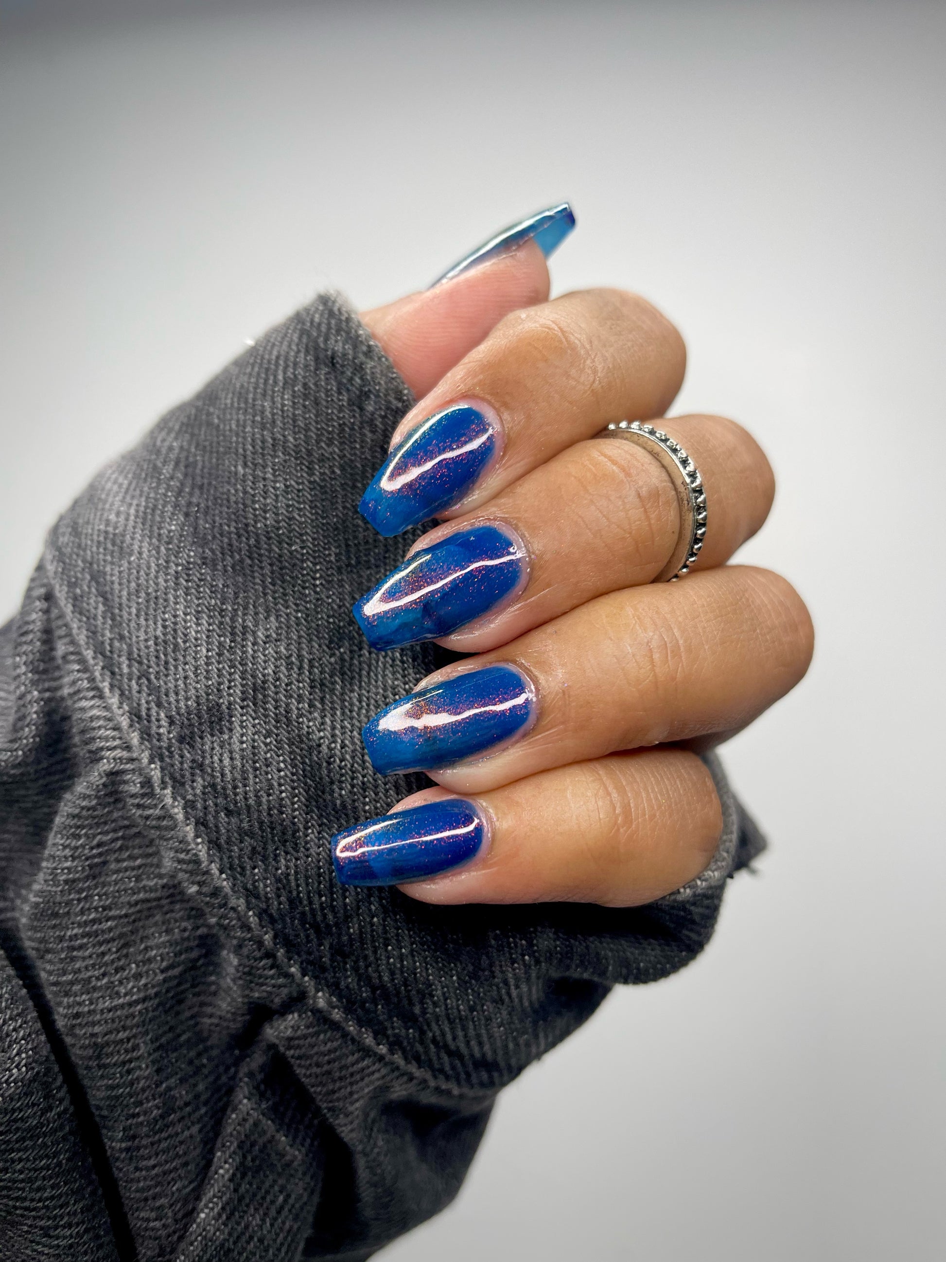 Copper Frog is a sibling to Golden Toad! This polish has a denim blue jelly base with copper to gold shimmer.