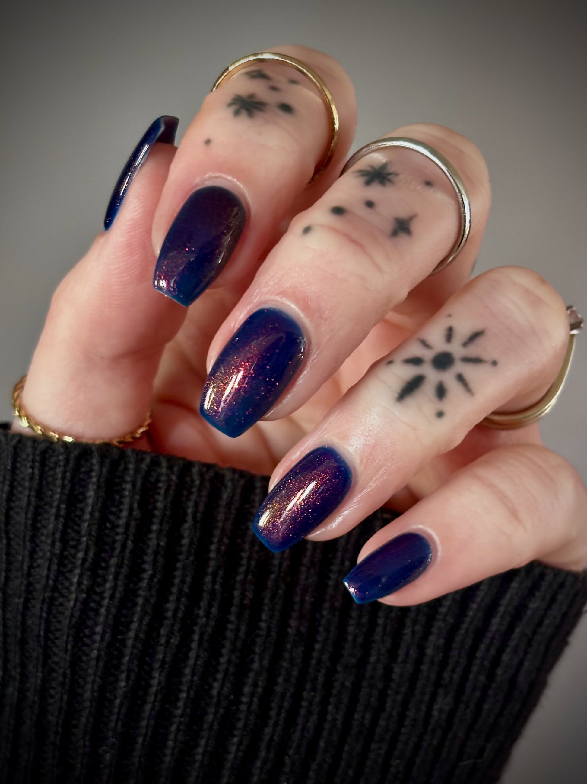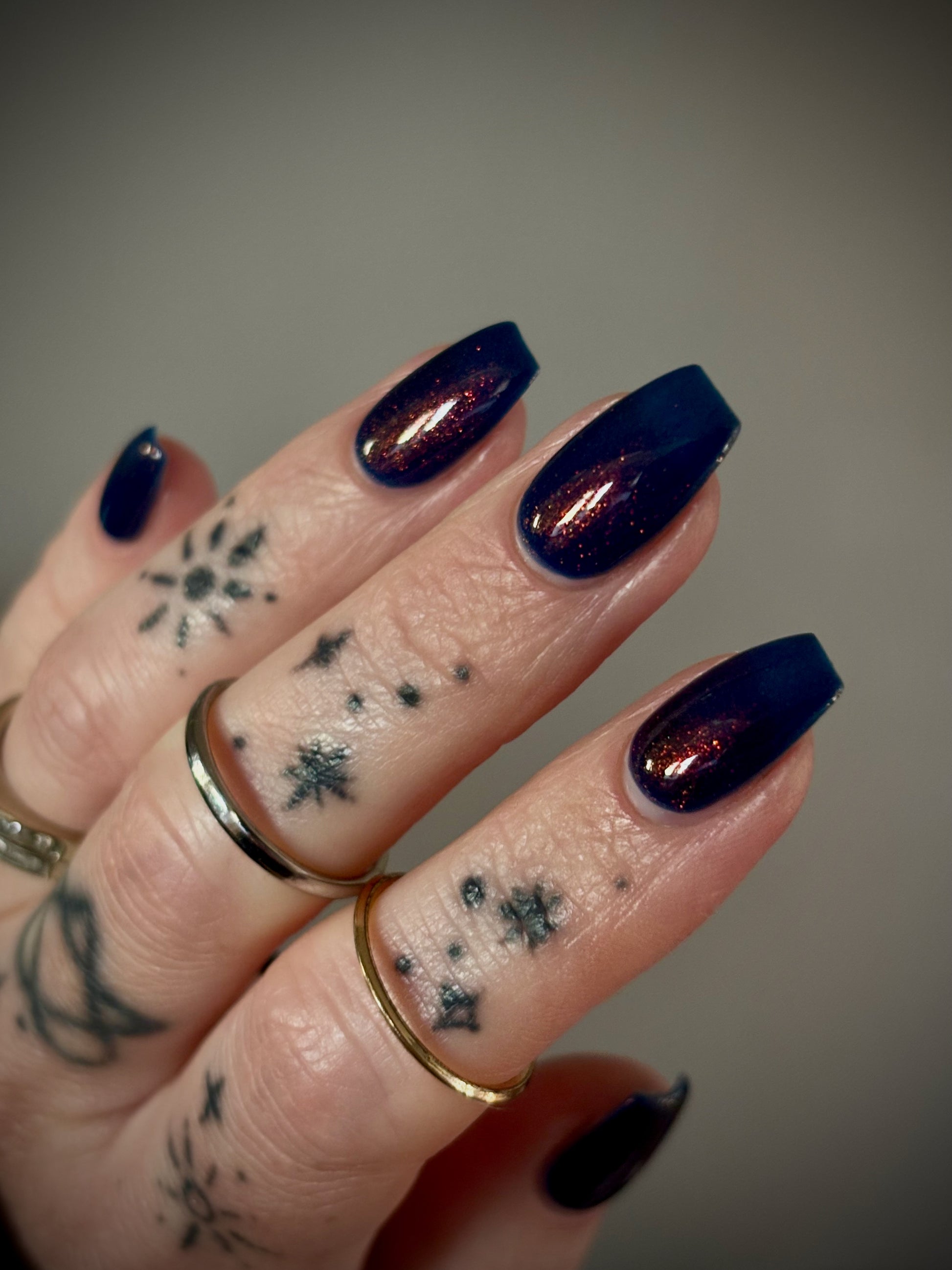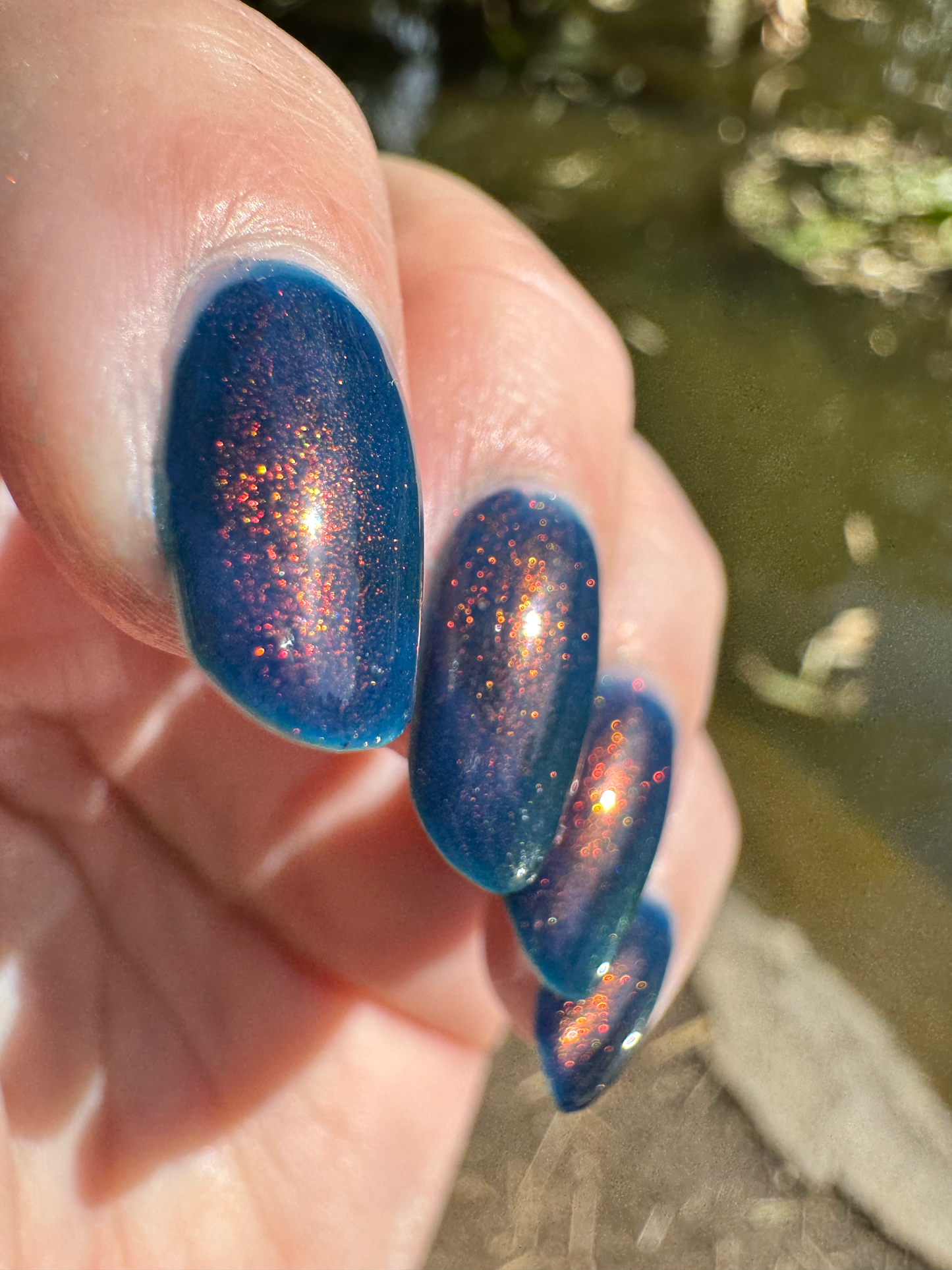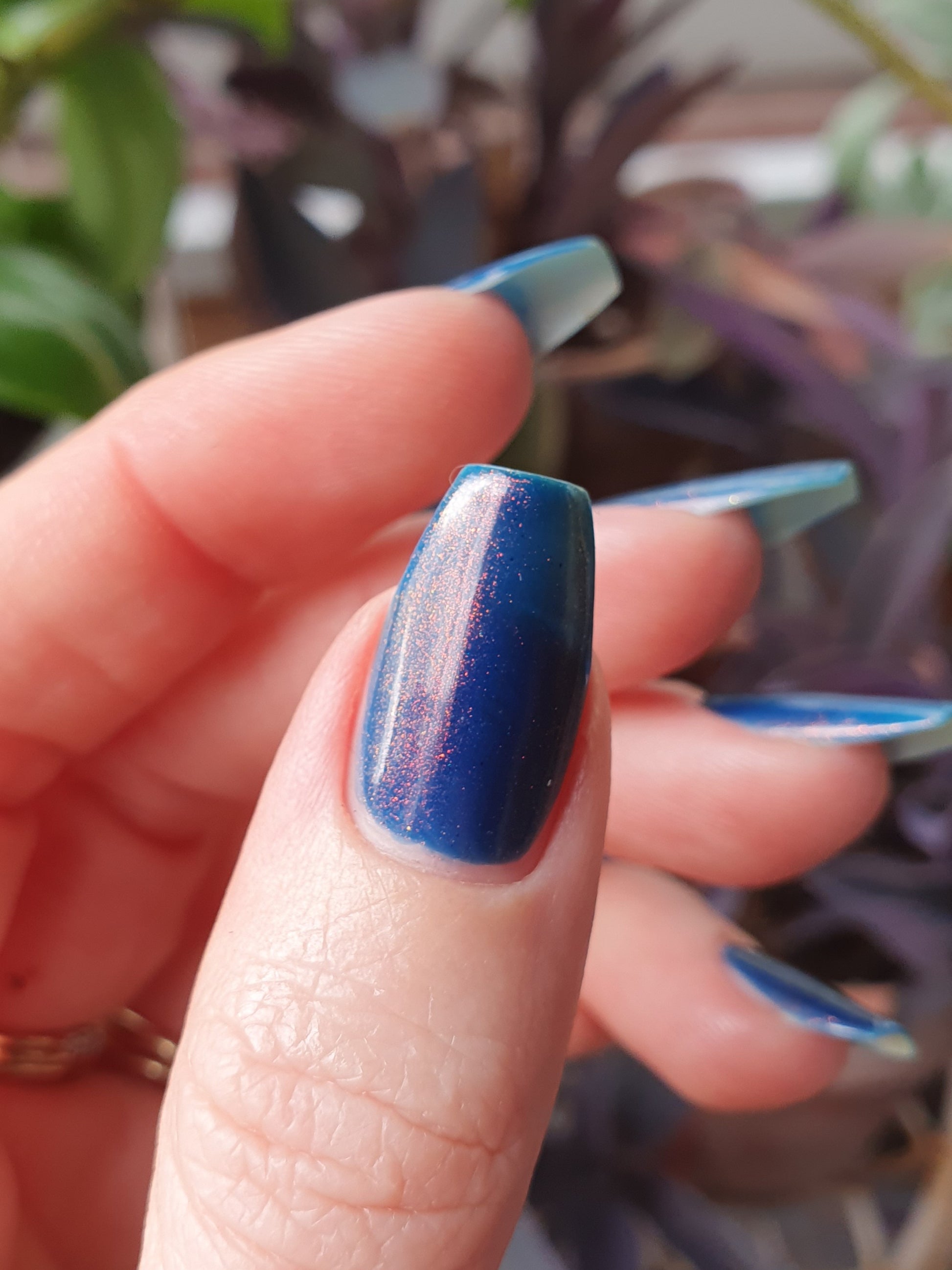 Copper Frog is a sibling to Golden Toad! This polish has a denim blue jelly base with copper to gold shimmer.
