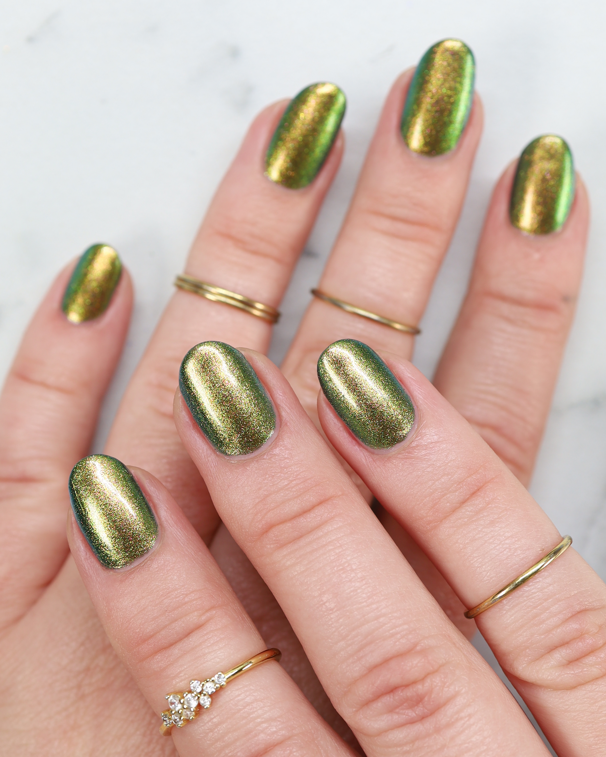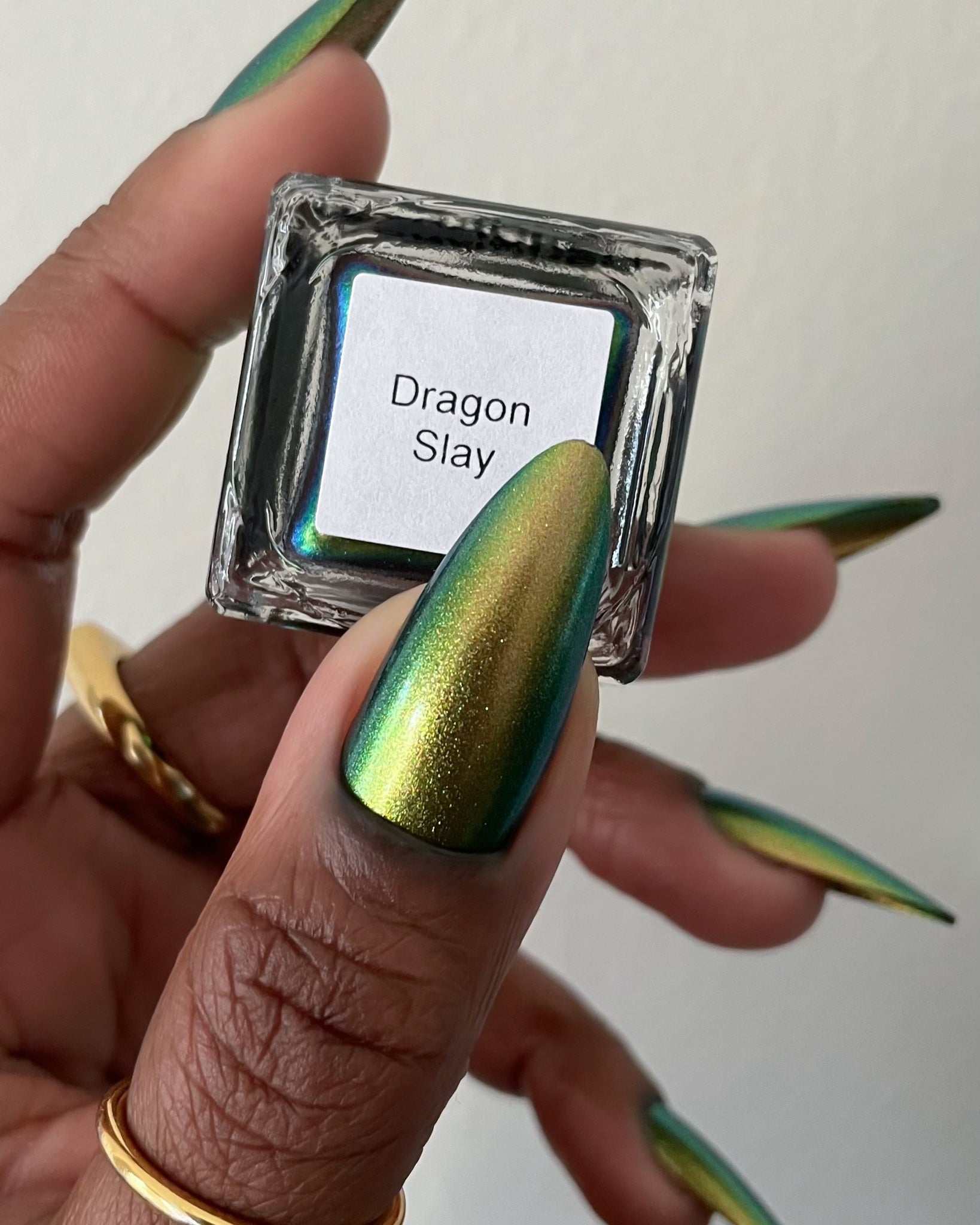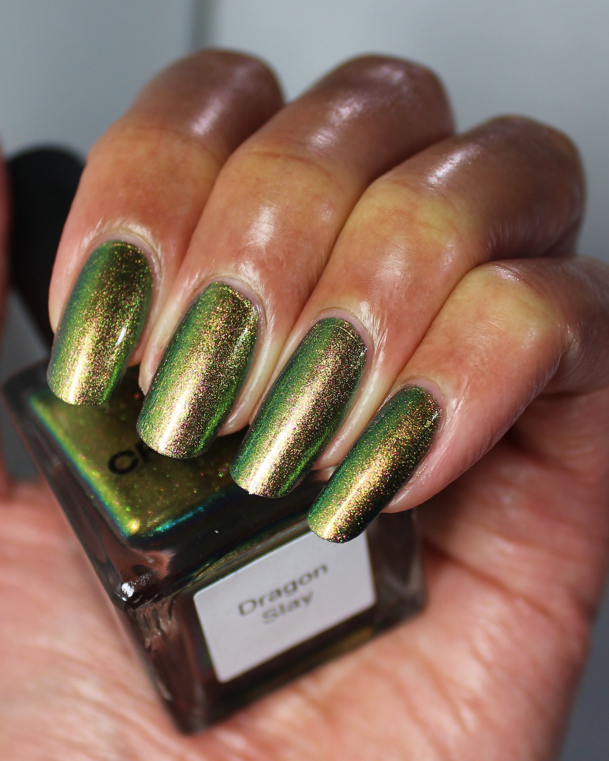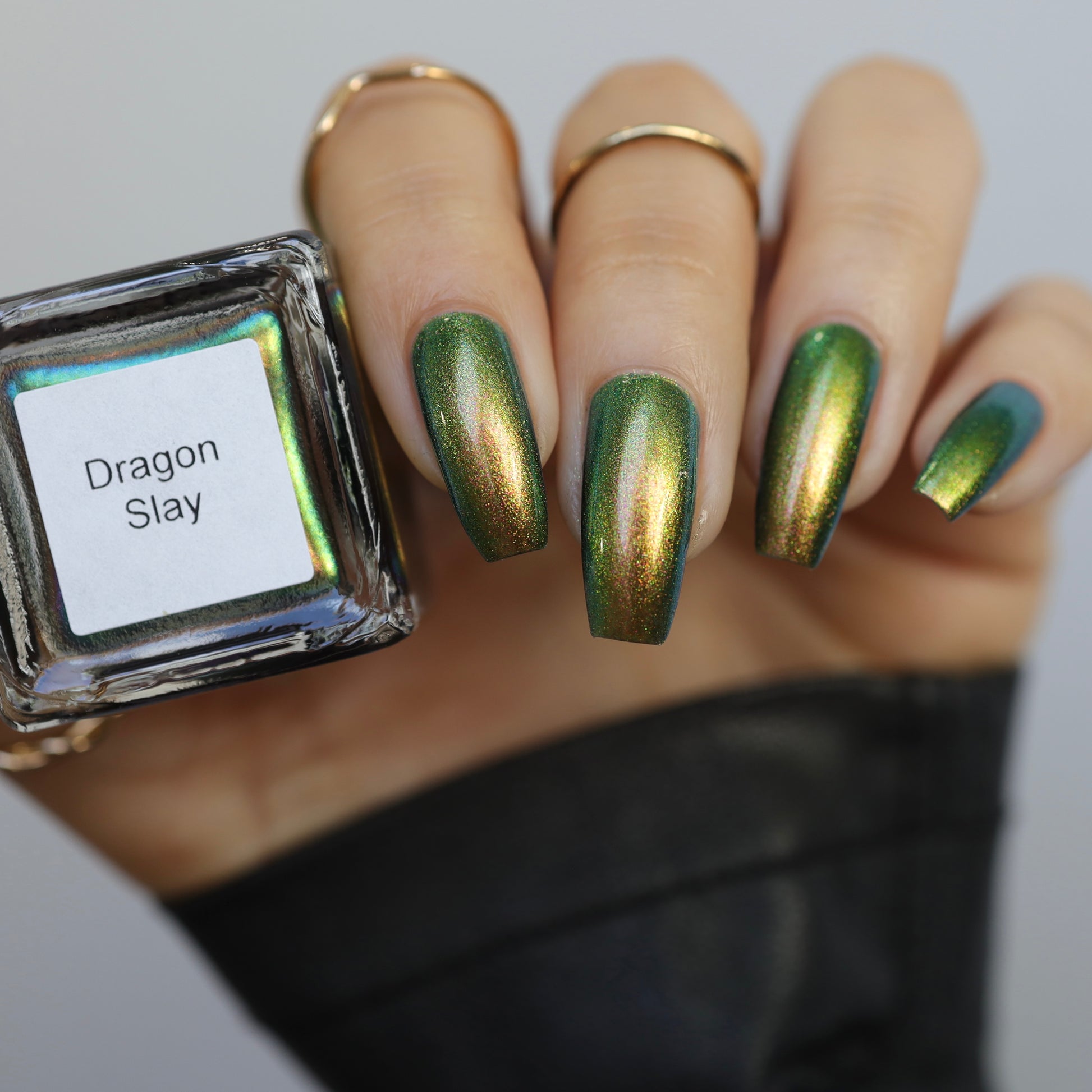 Dragon Slay is a multichrome polish that shifts from green to gold!