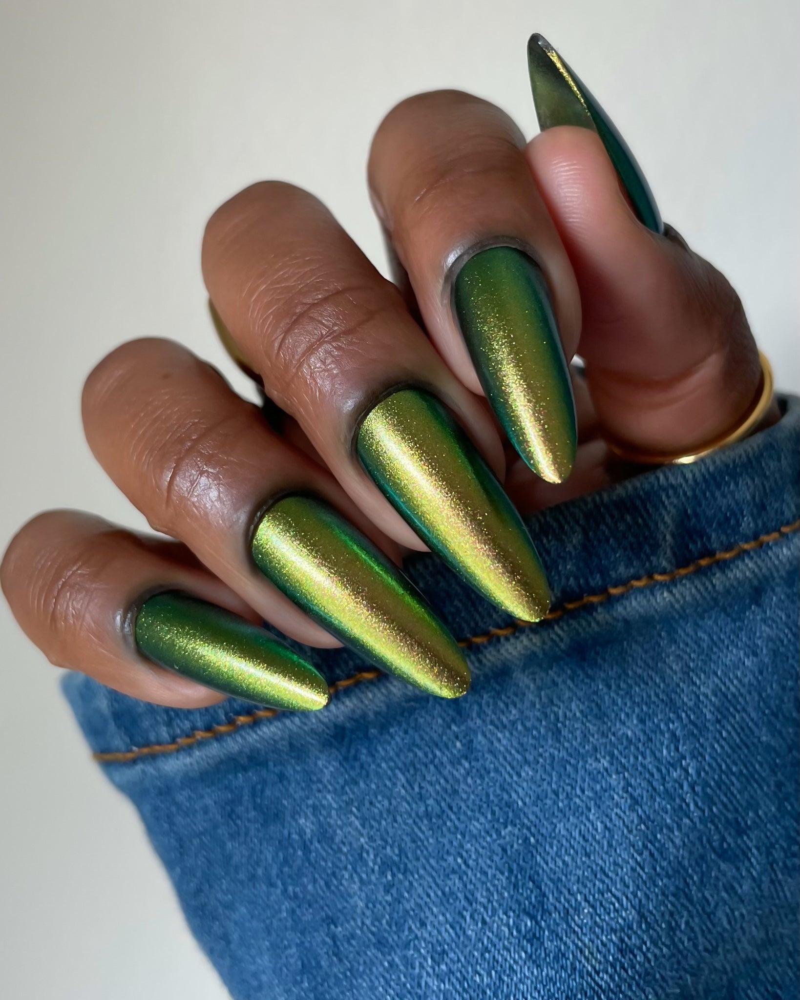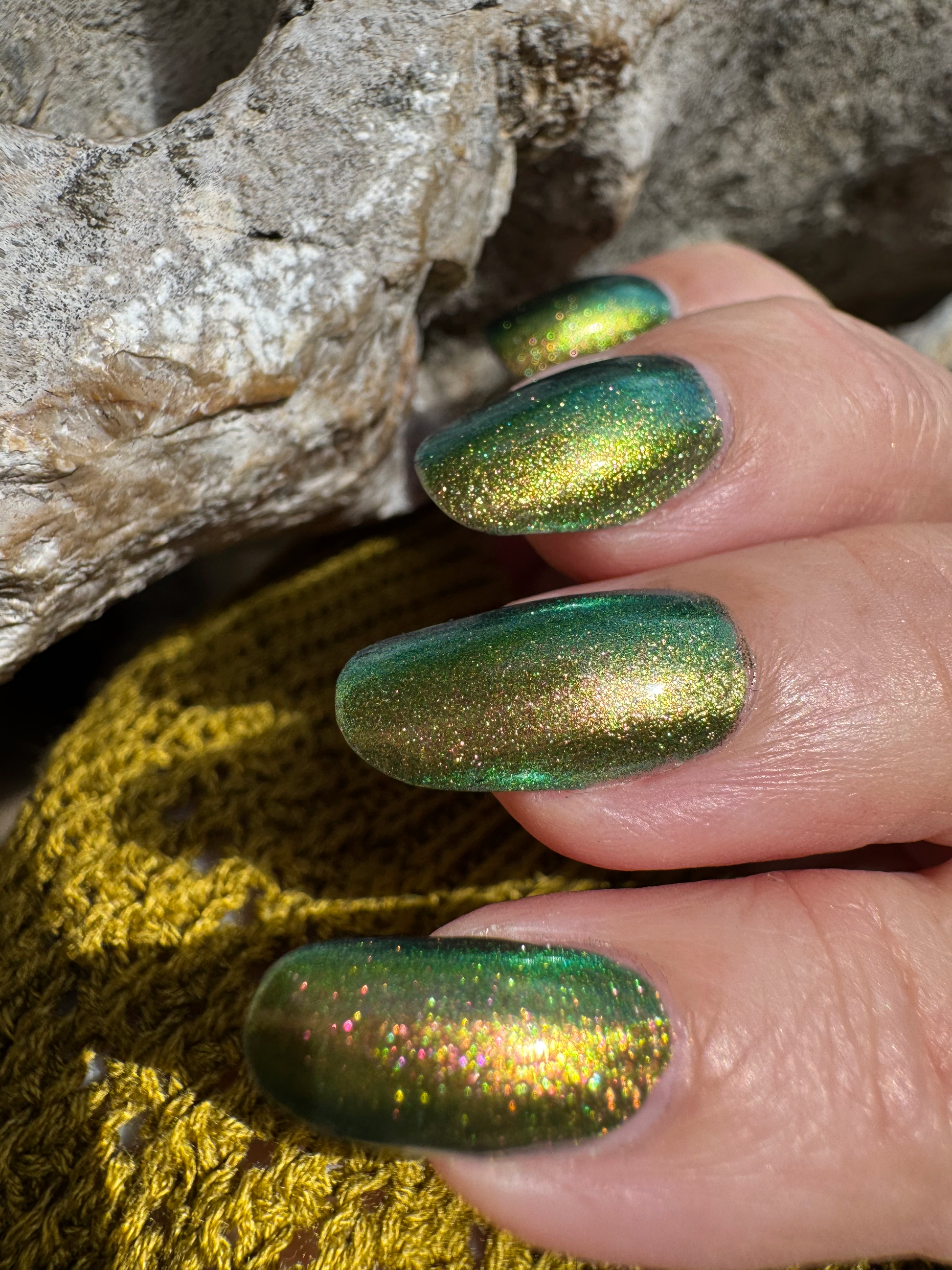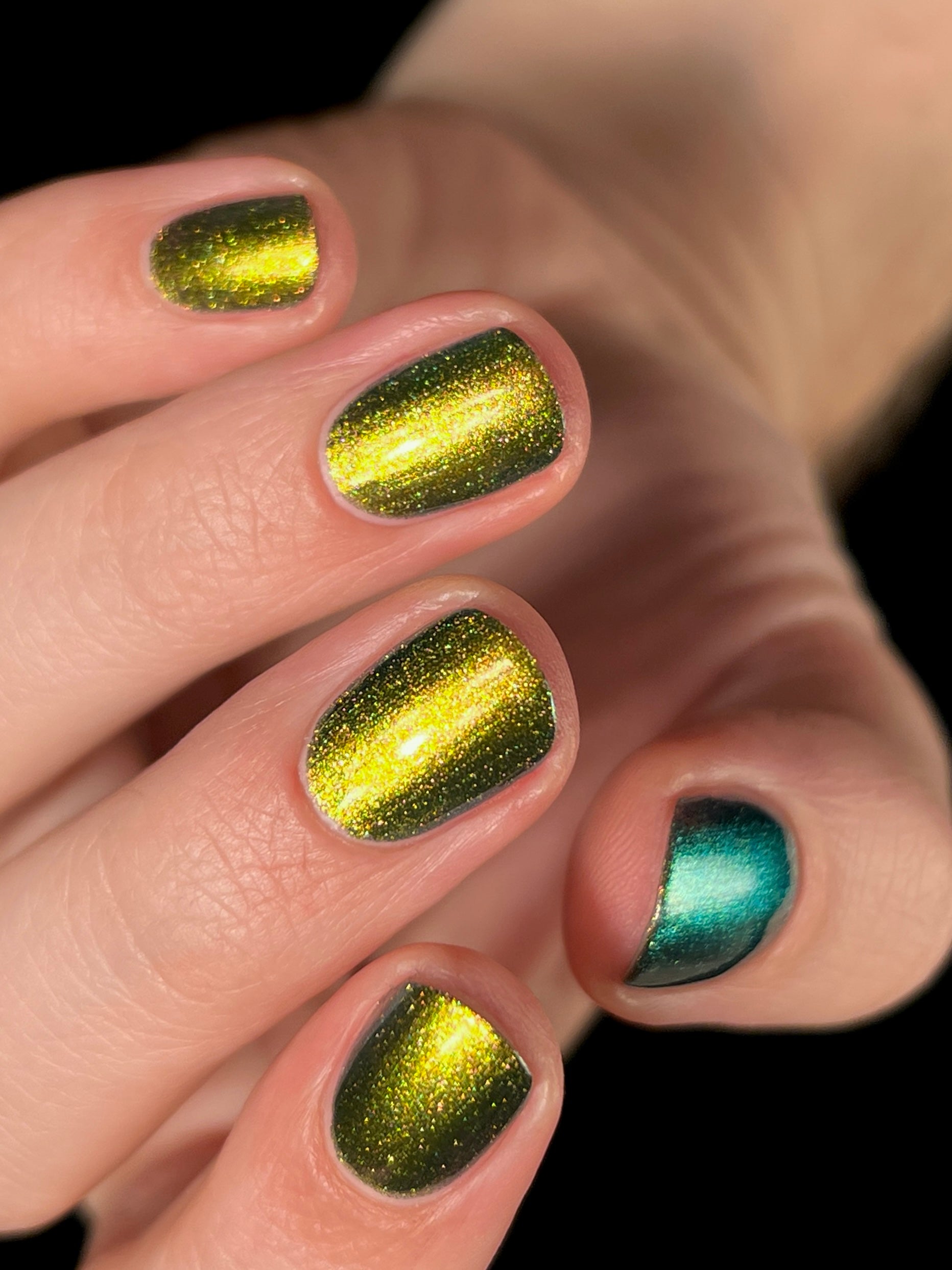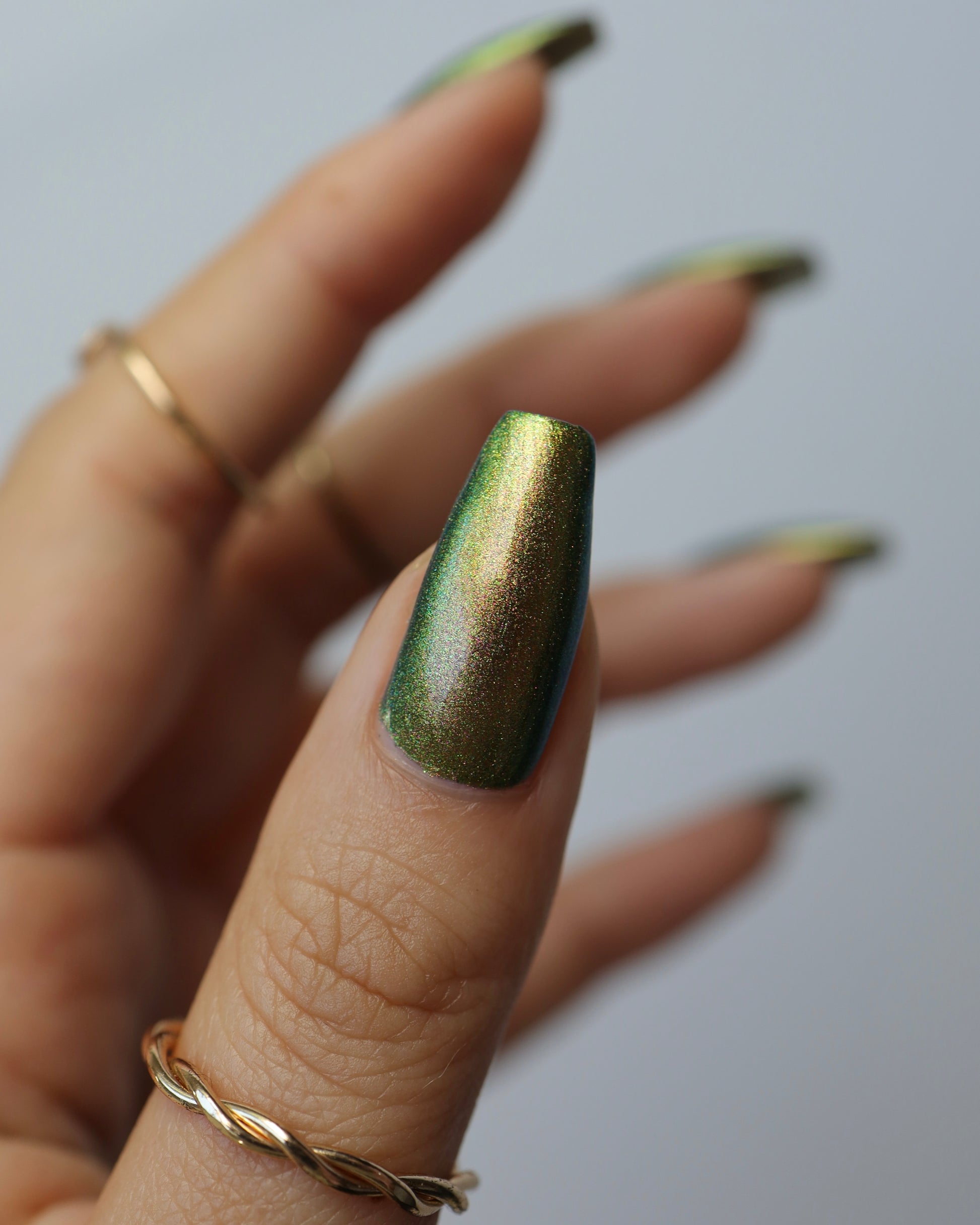 Dragon Slay is a multichrome polish that shifts from green to gold!