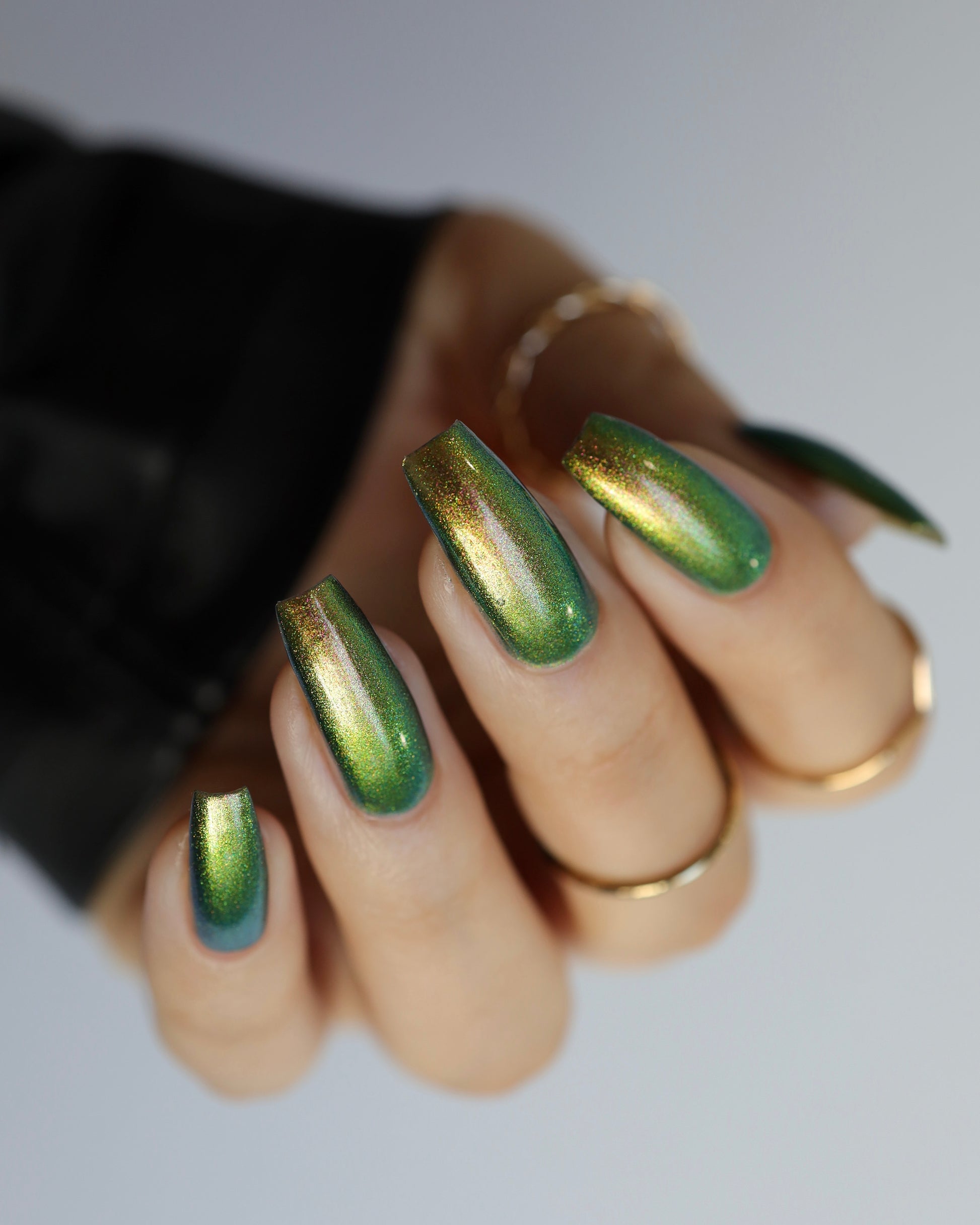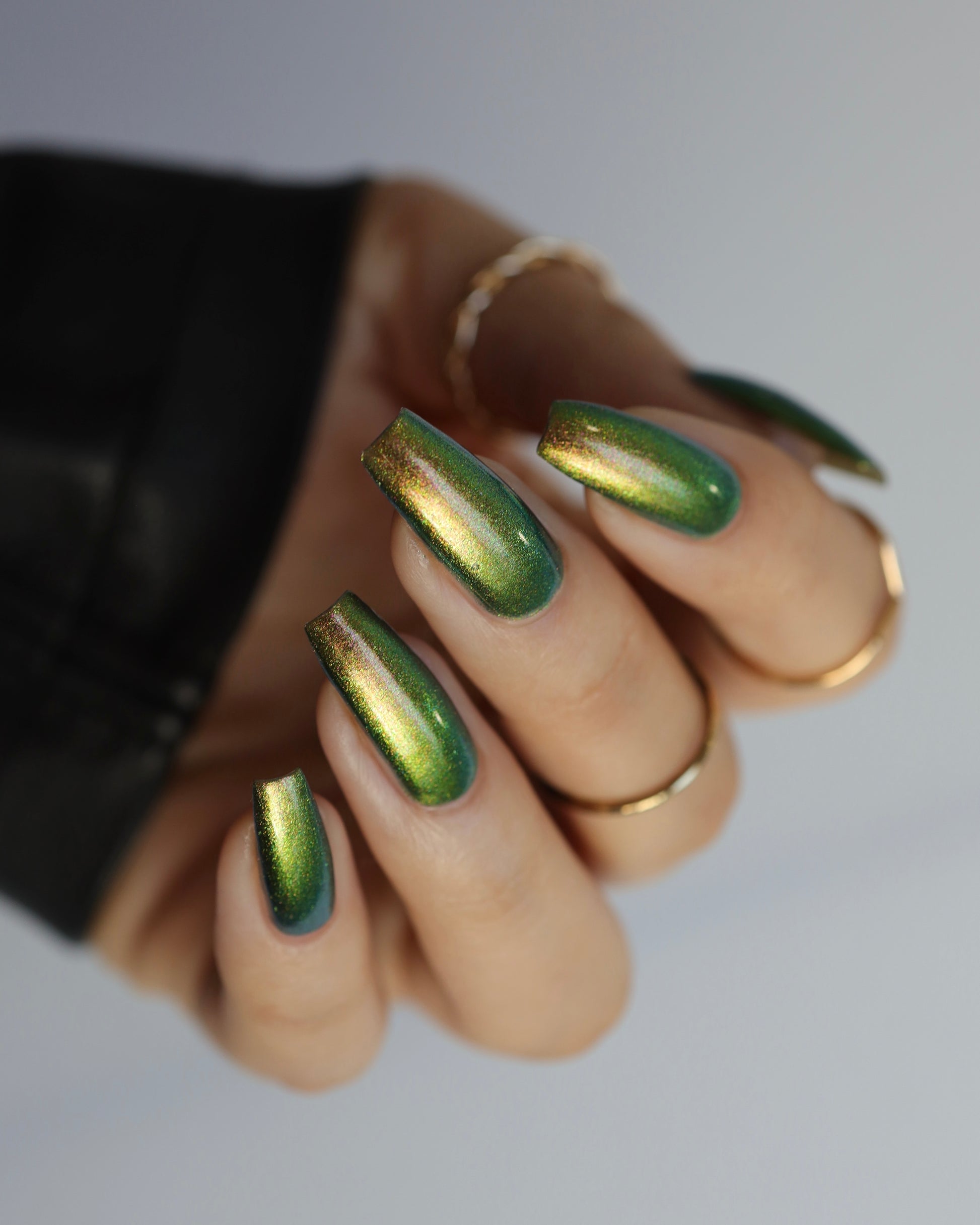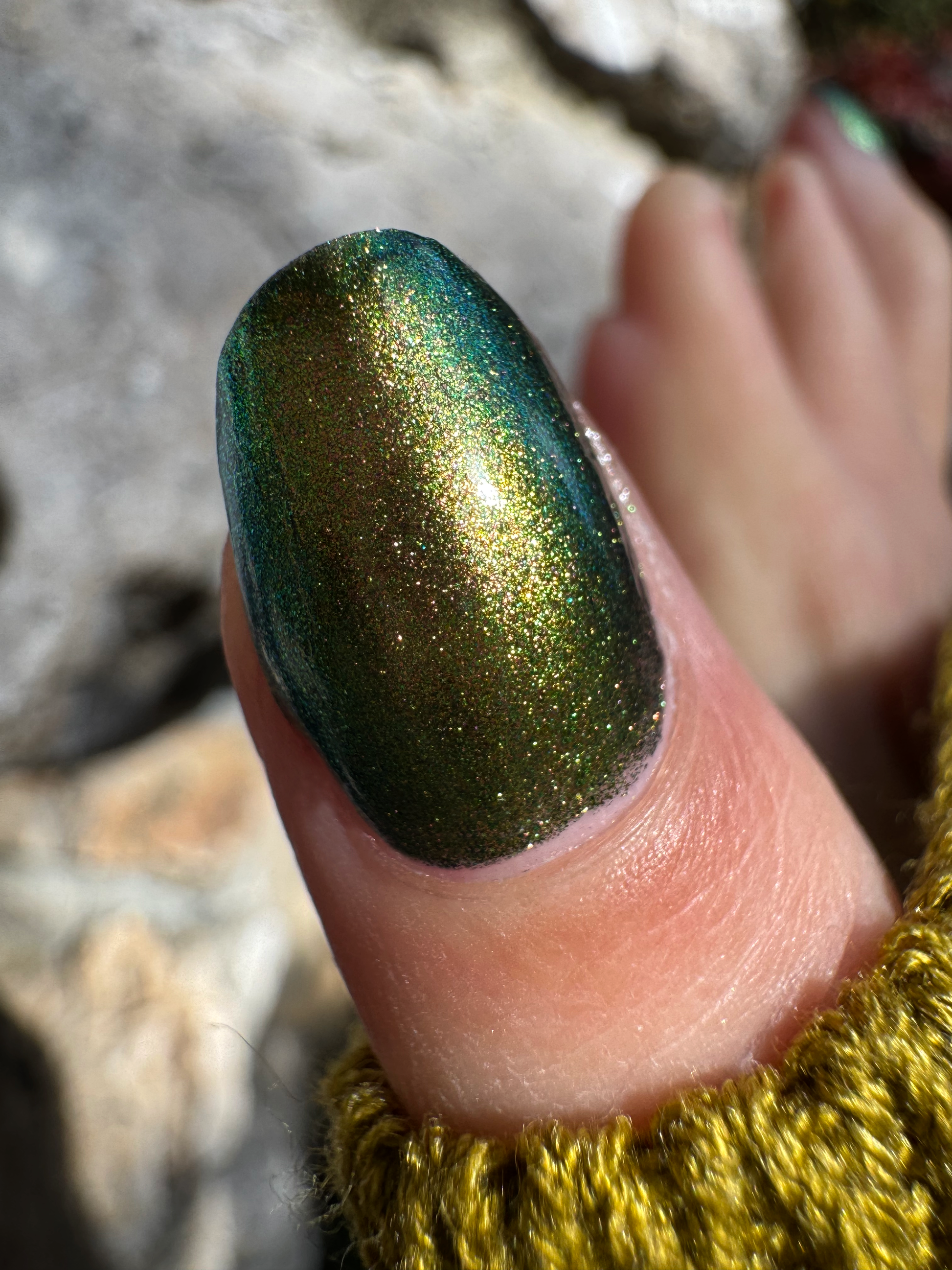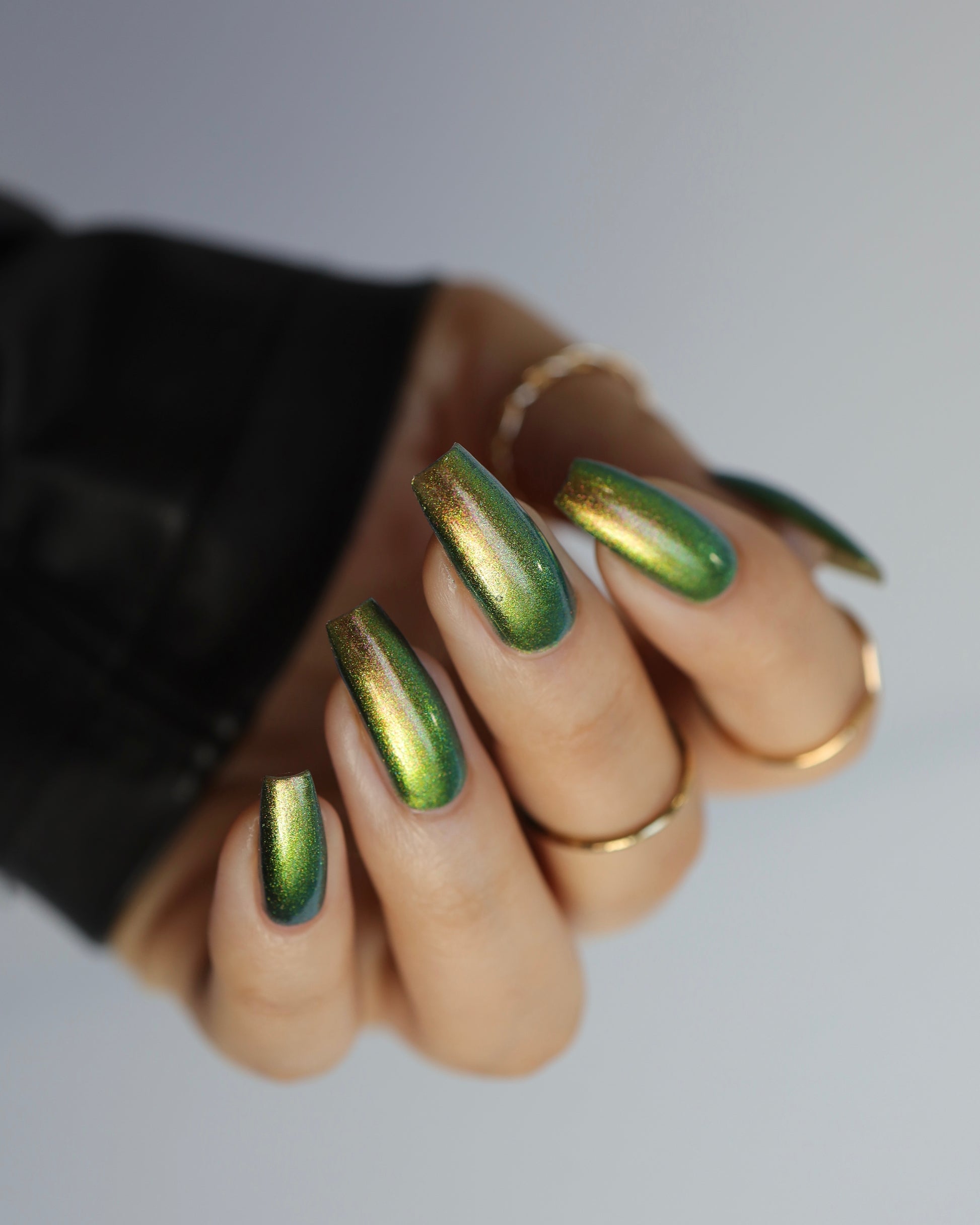 Dragon Slay is a multichrome polish that shifts from green to gold!