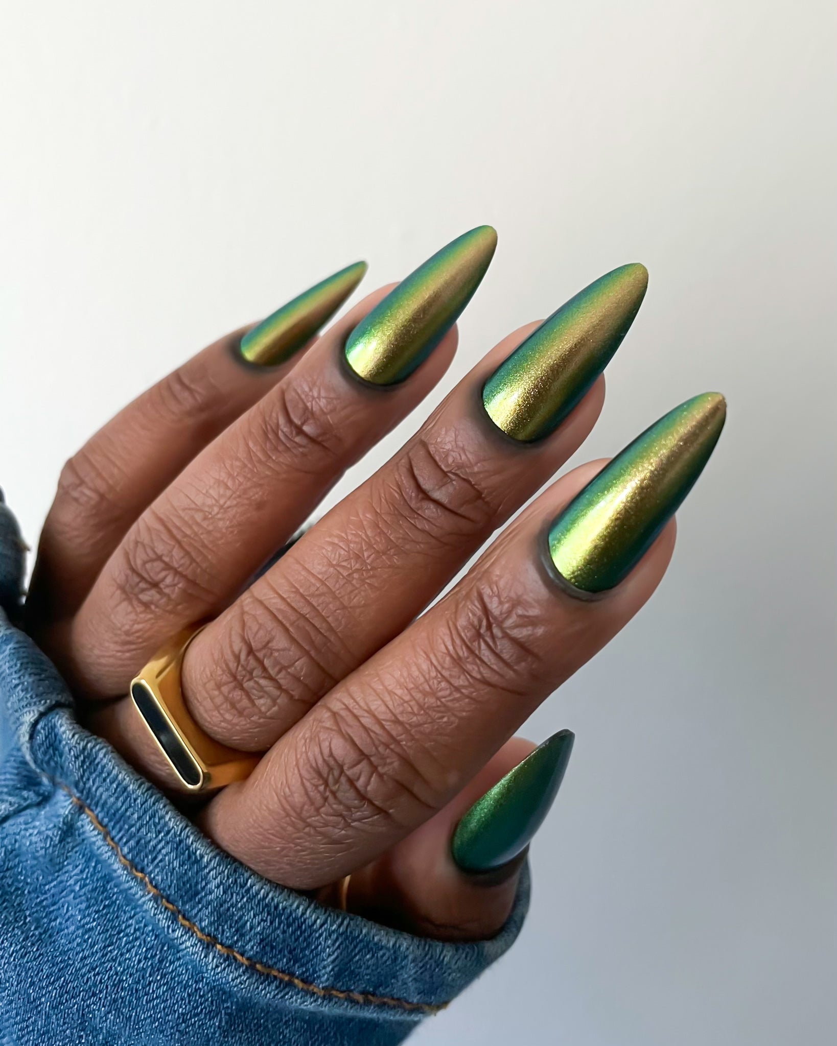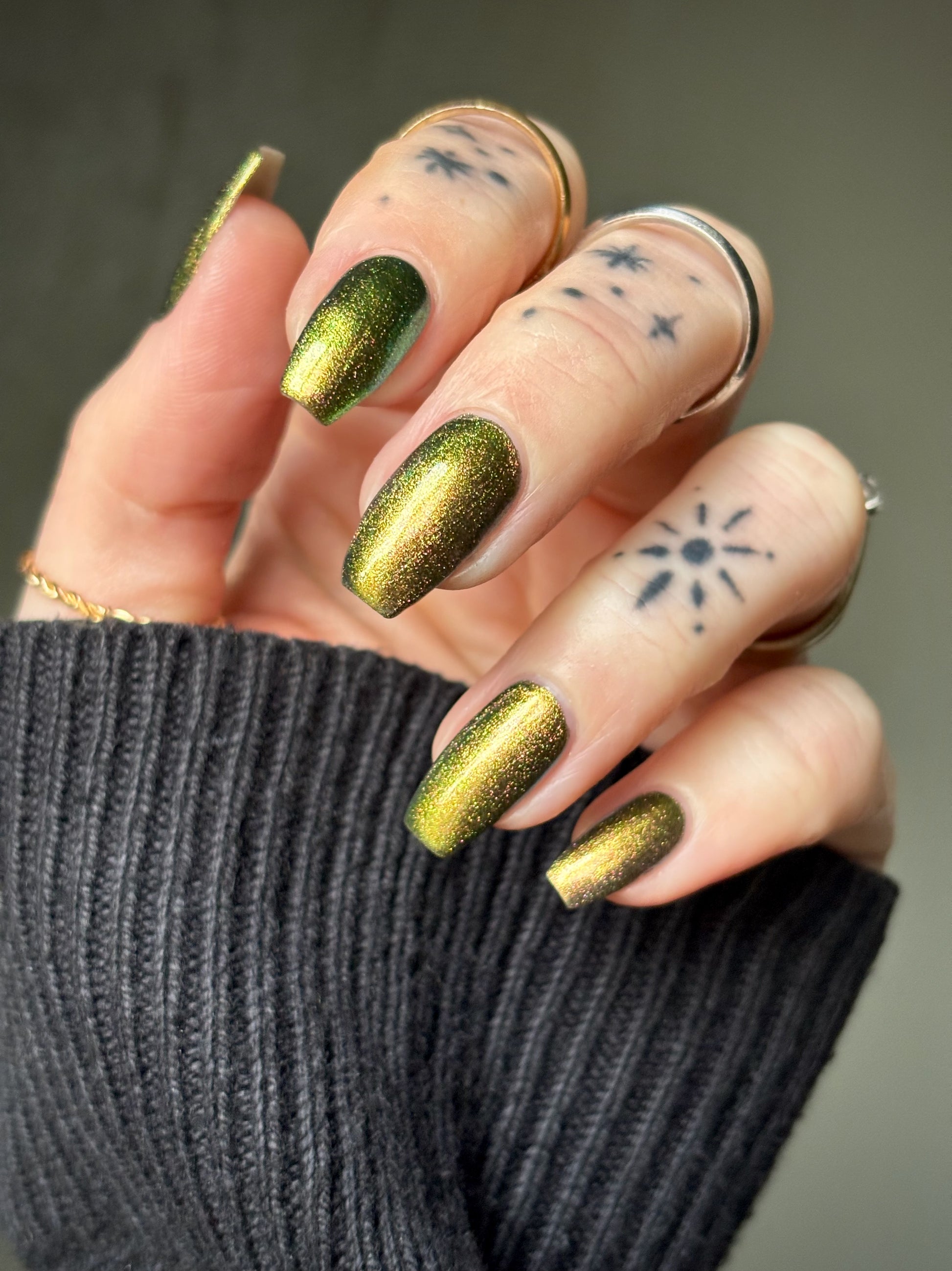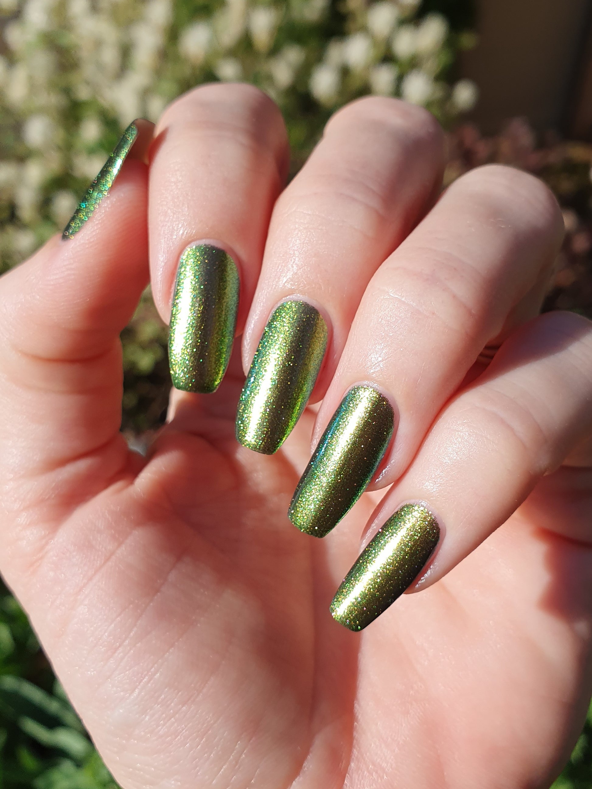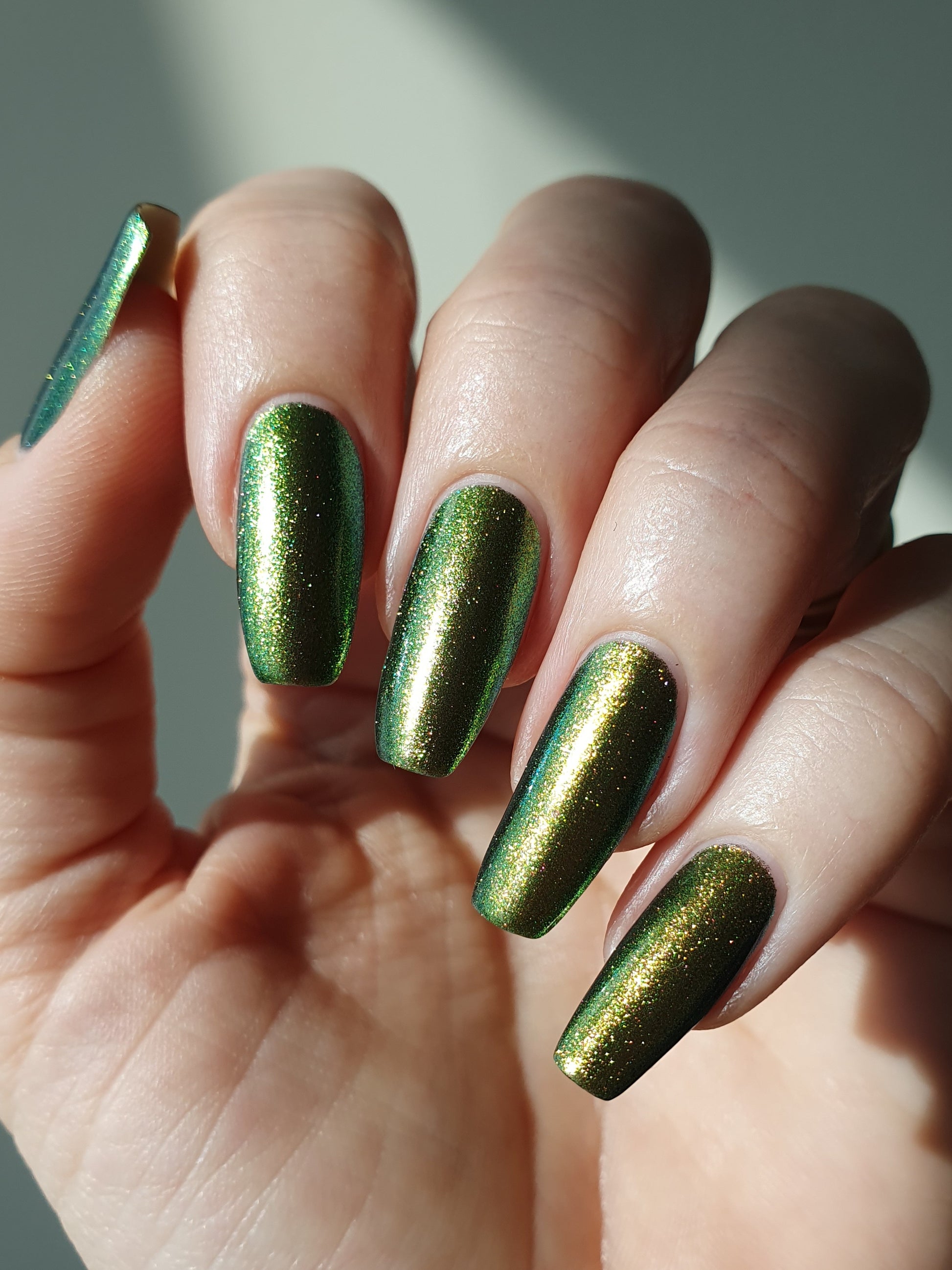 Dragon Slay is a multichrome polish that shifts from green to gold!
