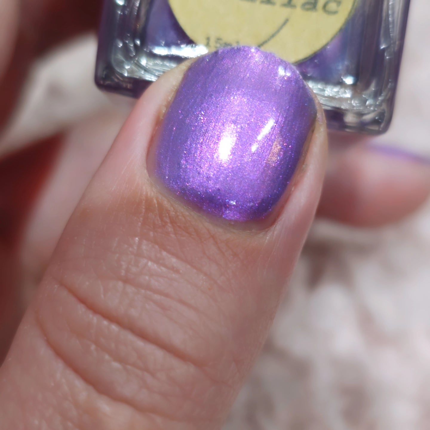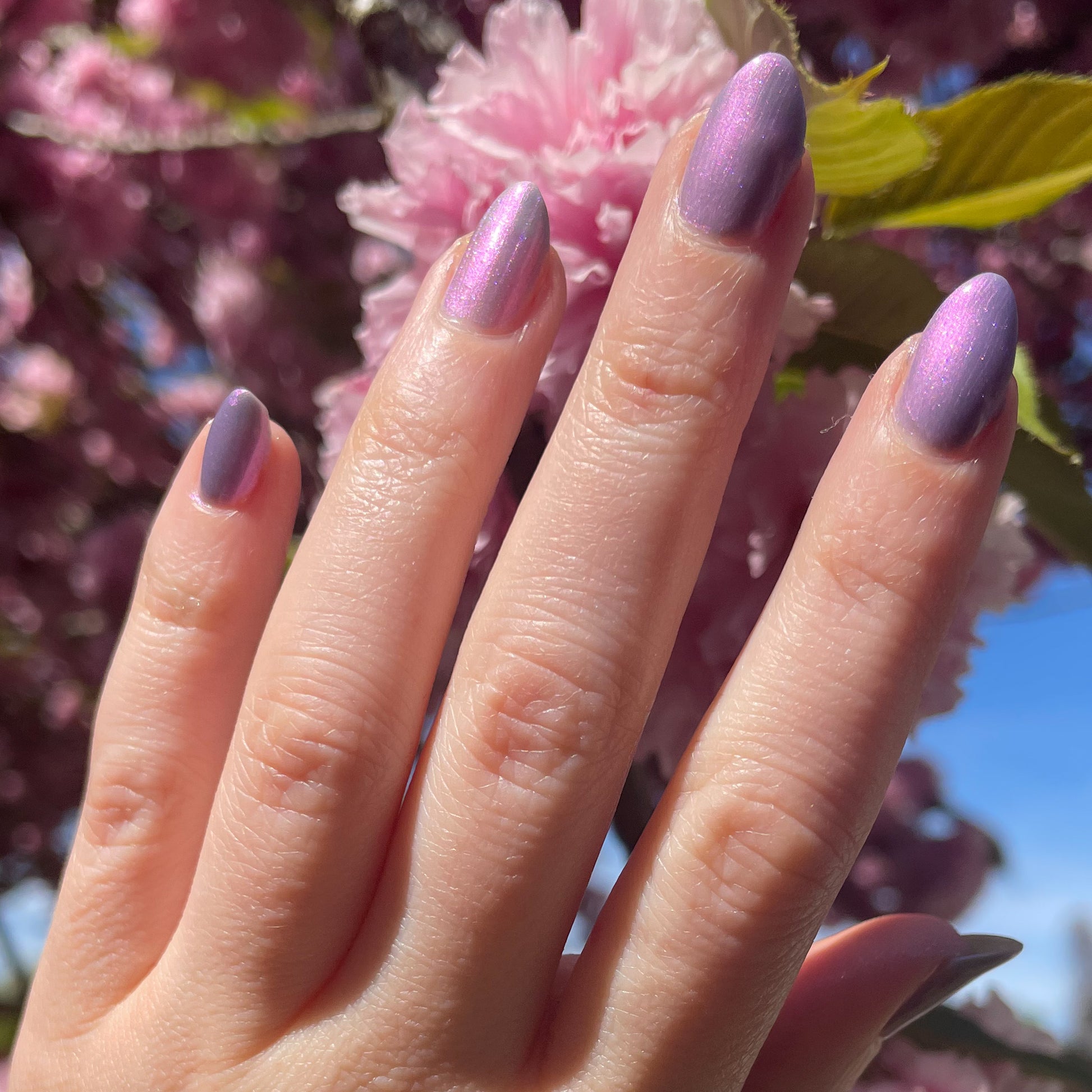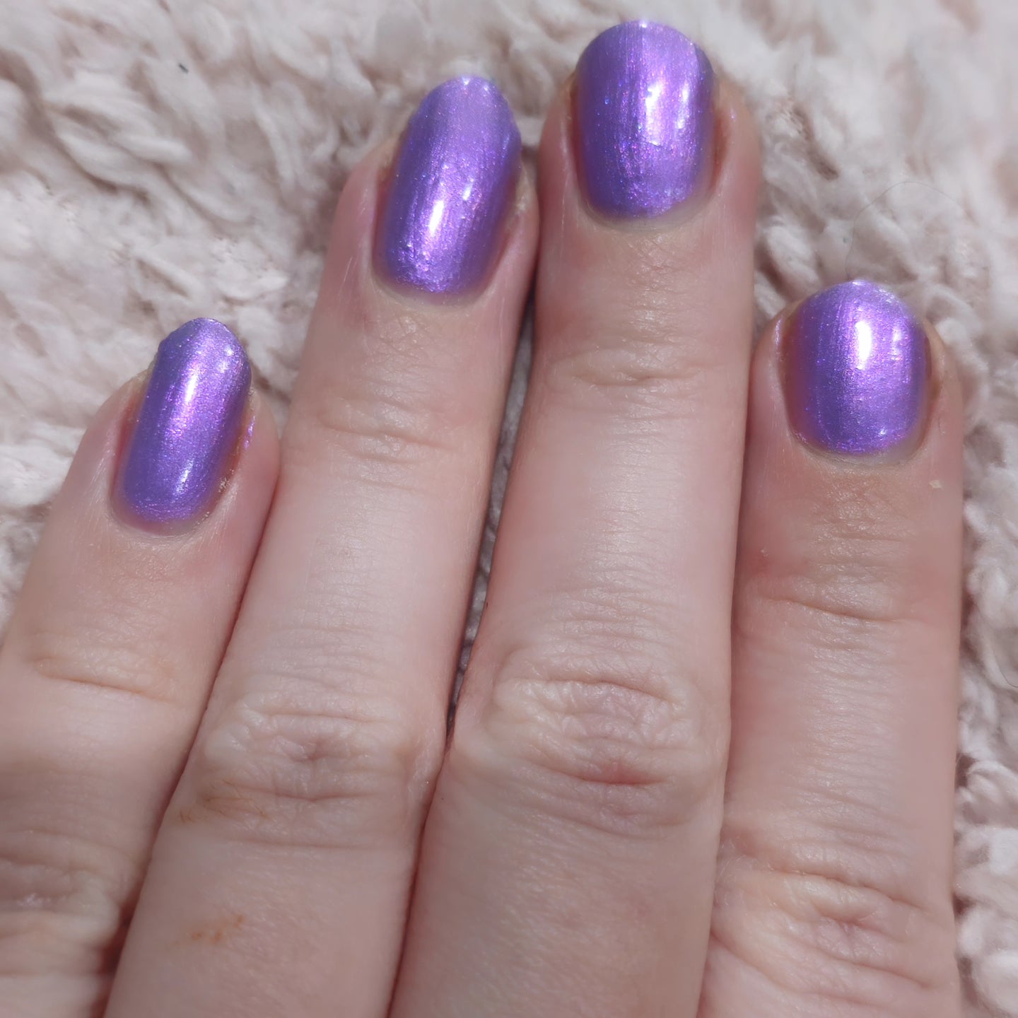 Fields of Lilac is for the purple lovers! This polish has a pearlescent crelly base with glowing purple aurora. It goes on super smooth and glows bright in many different lighting conditions!
