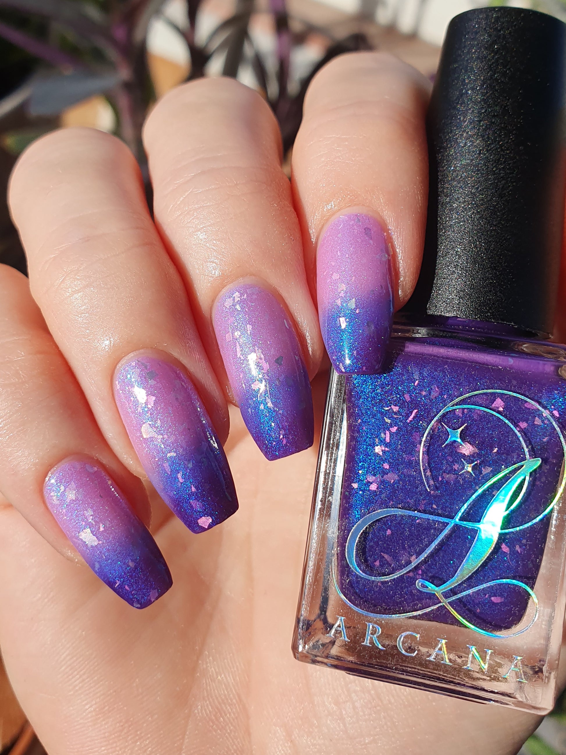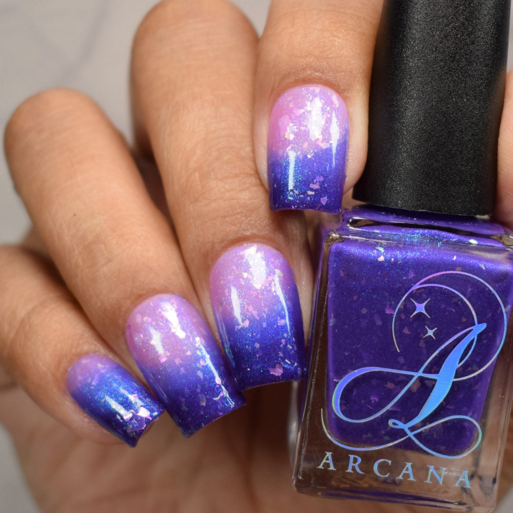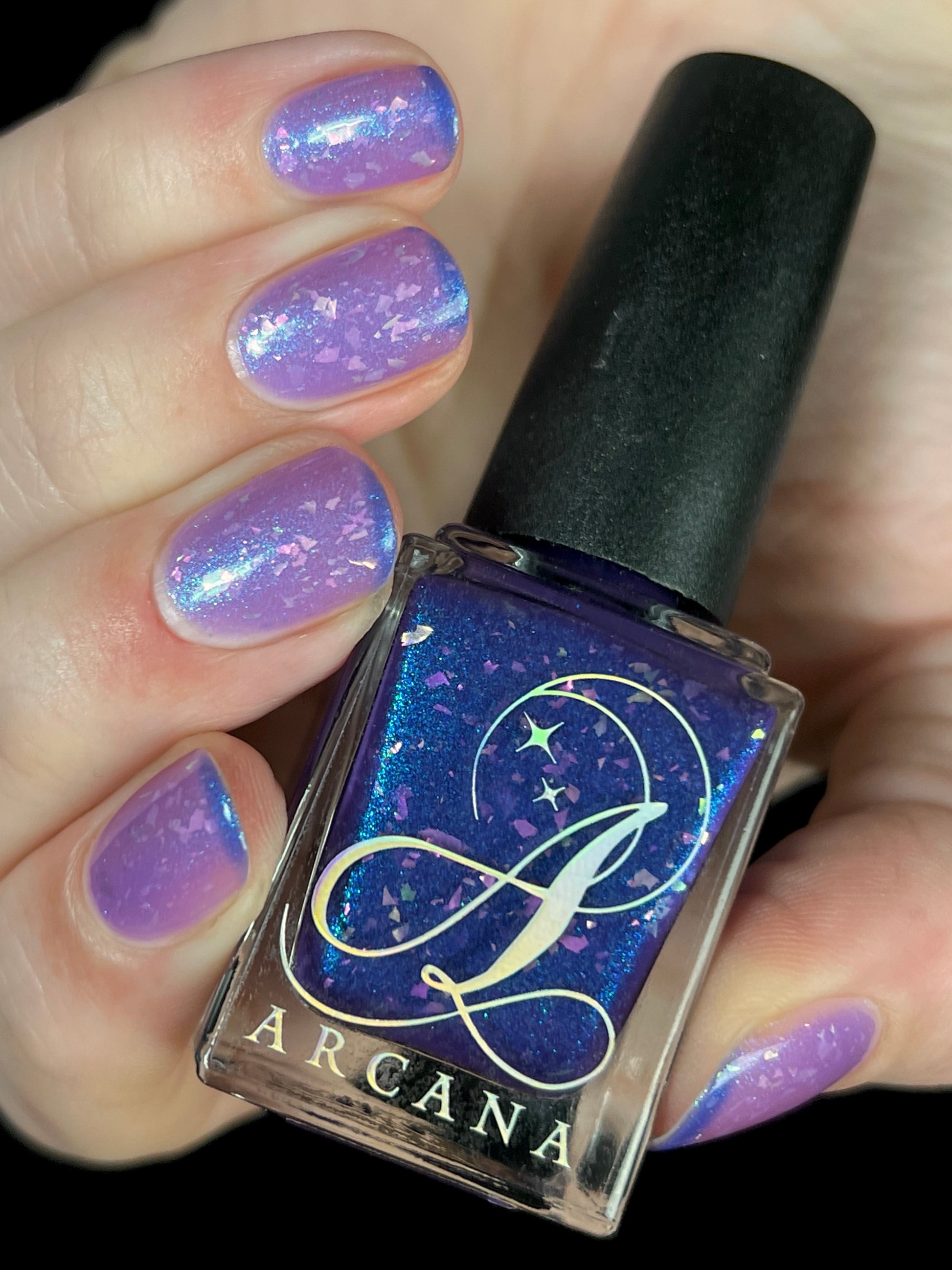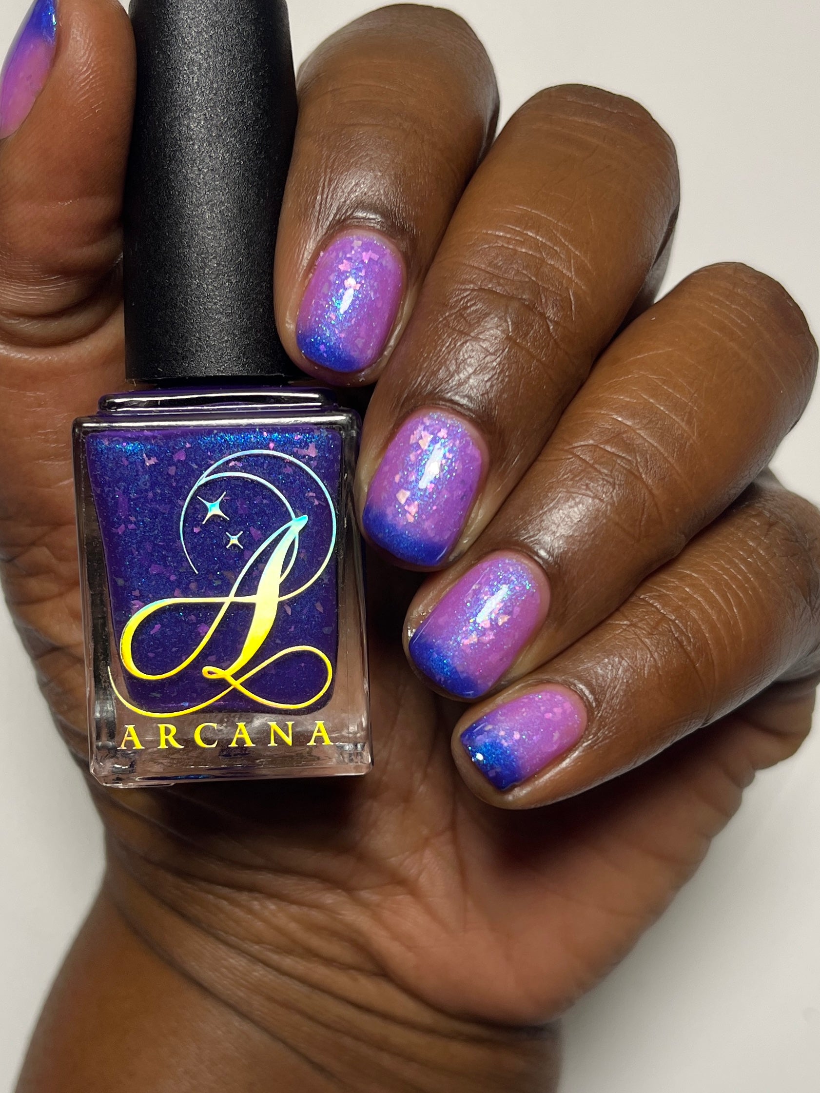 This polish is inspired by past (avian-like) and modern (more mermaid-like) sirens. The thermal effect invokes the feeling of swimming up from the depths of the sea to fly in the air.