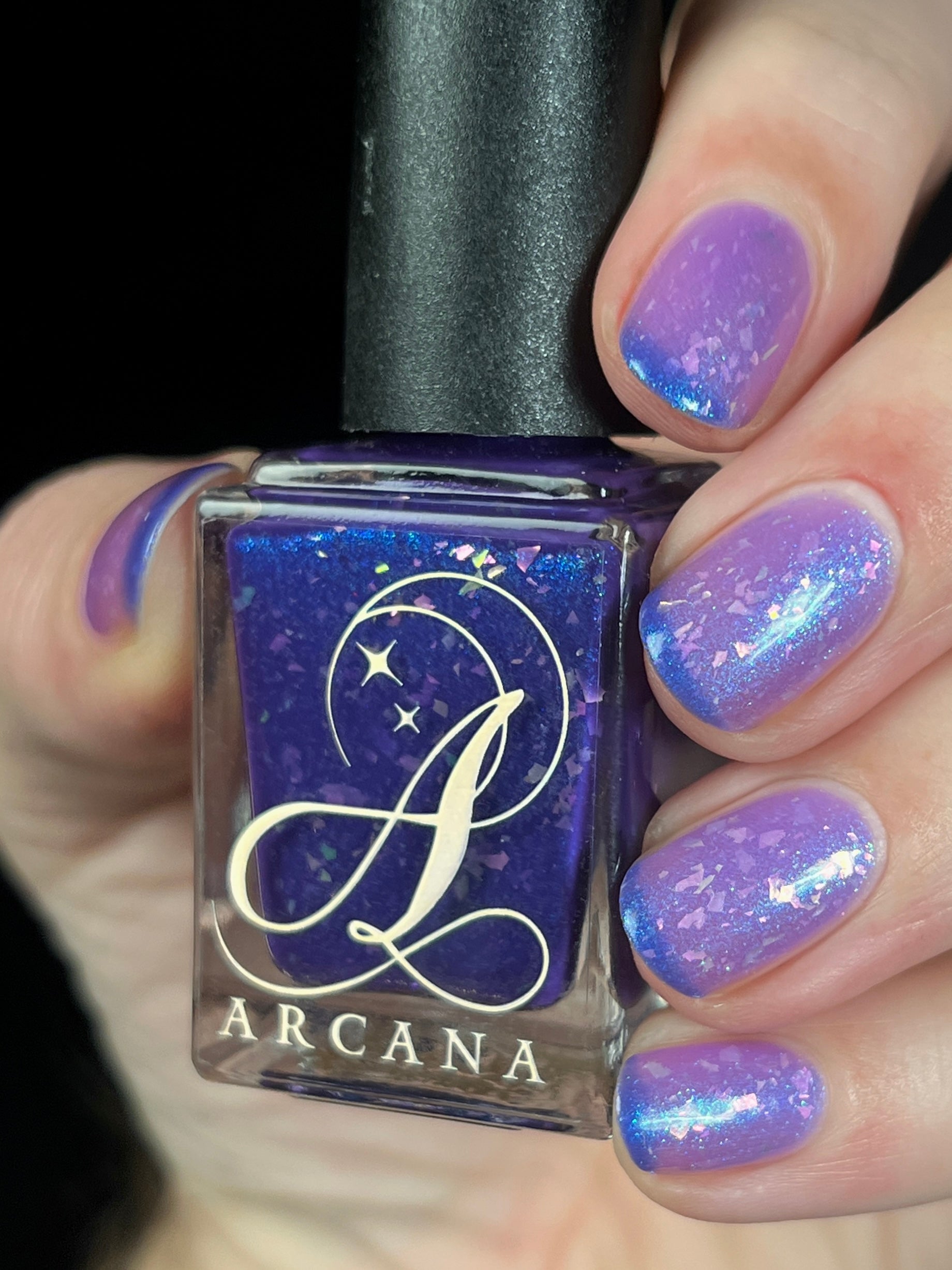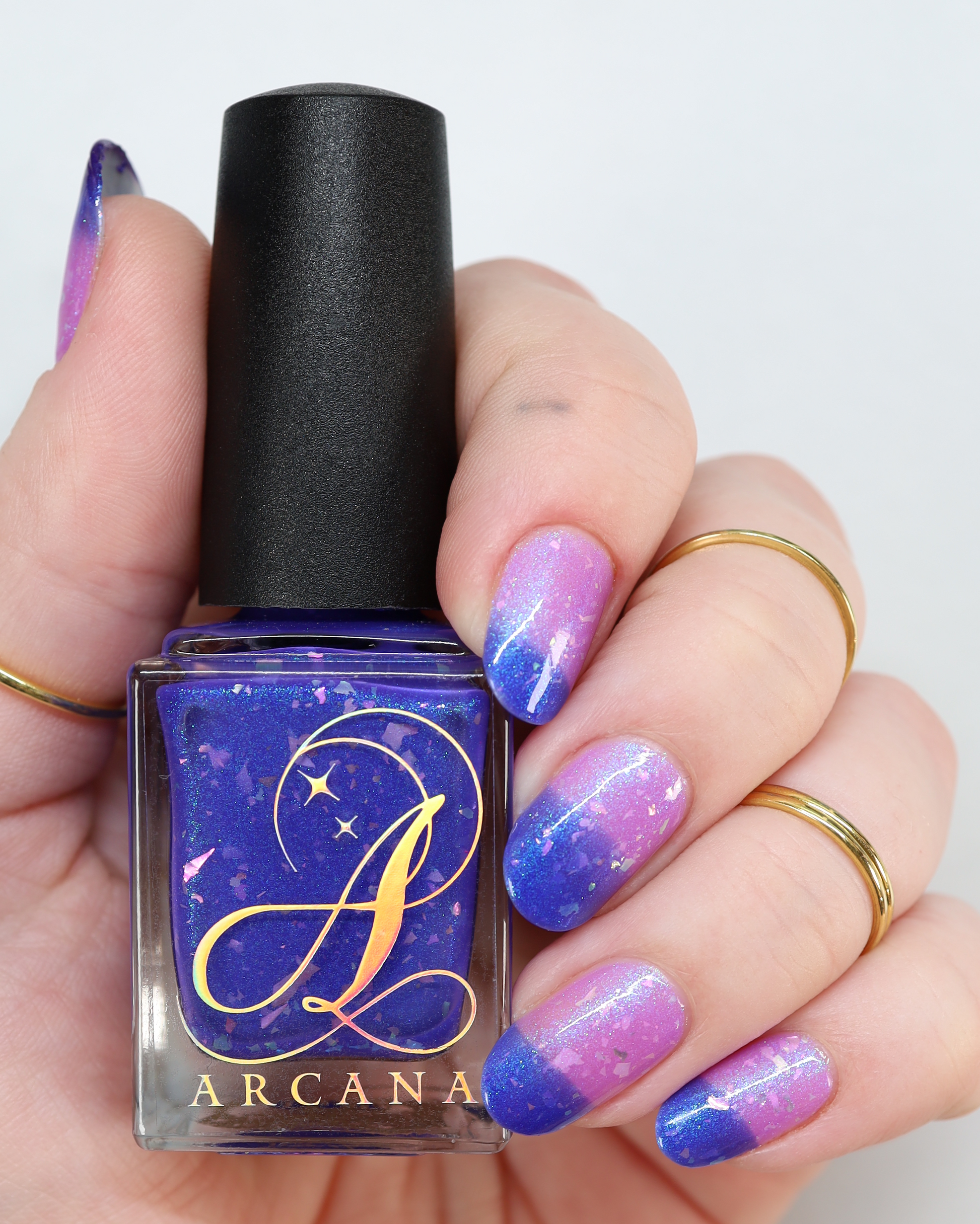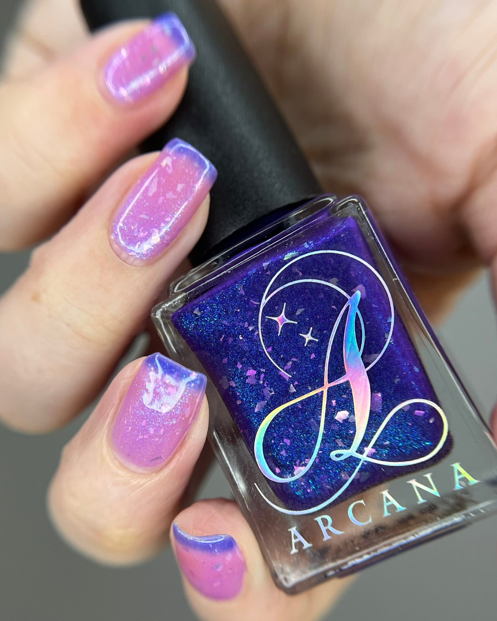 This polish is inspired by past (avian-like) and modern (more mermaid-like) sirens. The thermal effect invokes the feeling of swimming up from the depths of the sea to fly in the air.