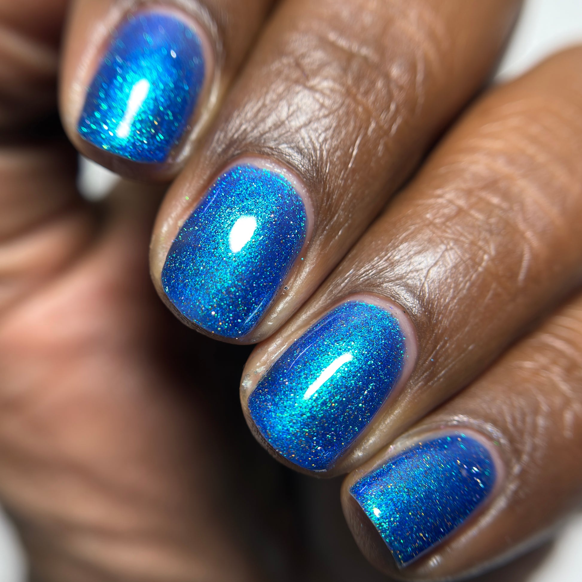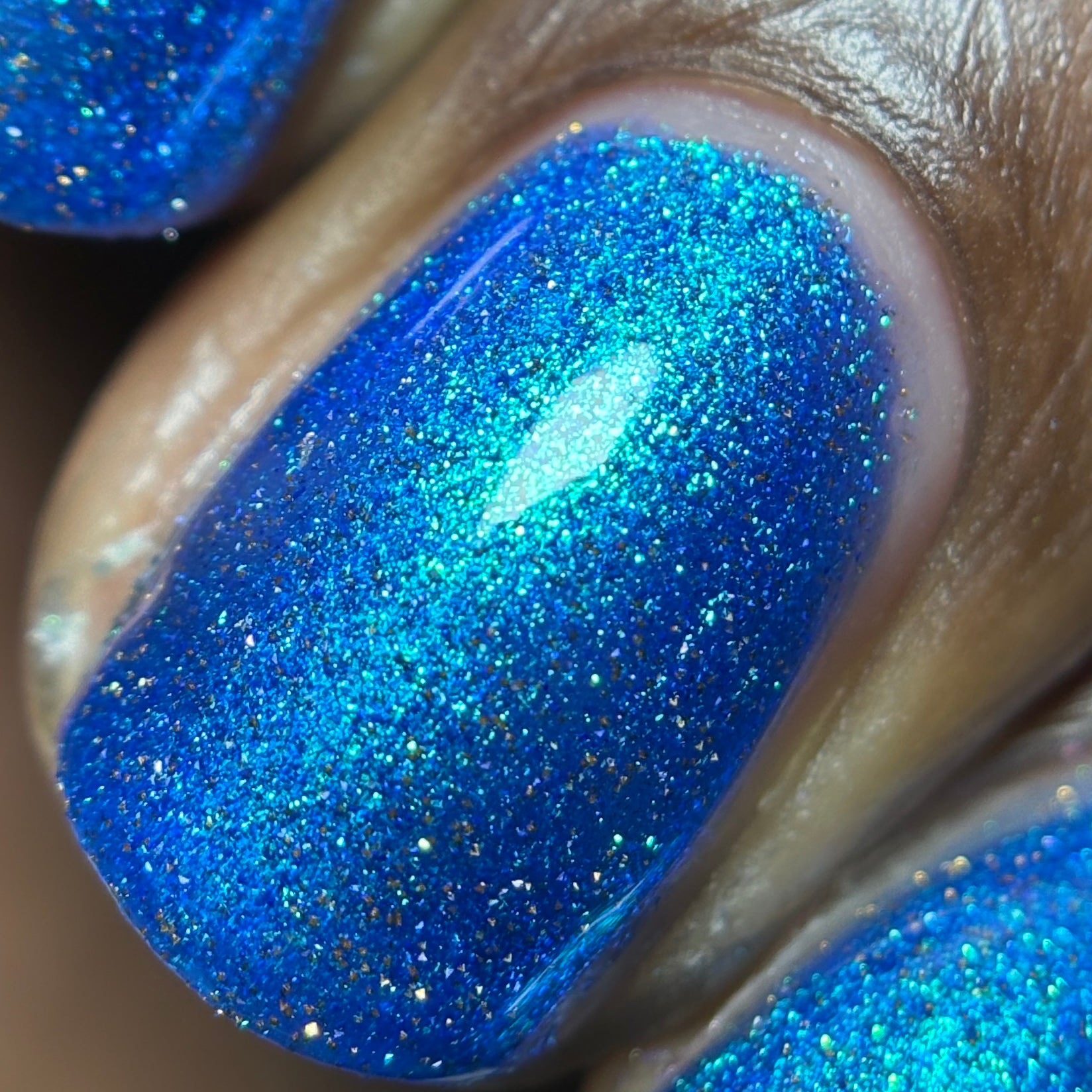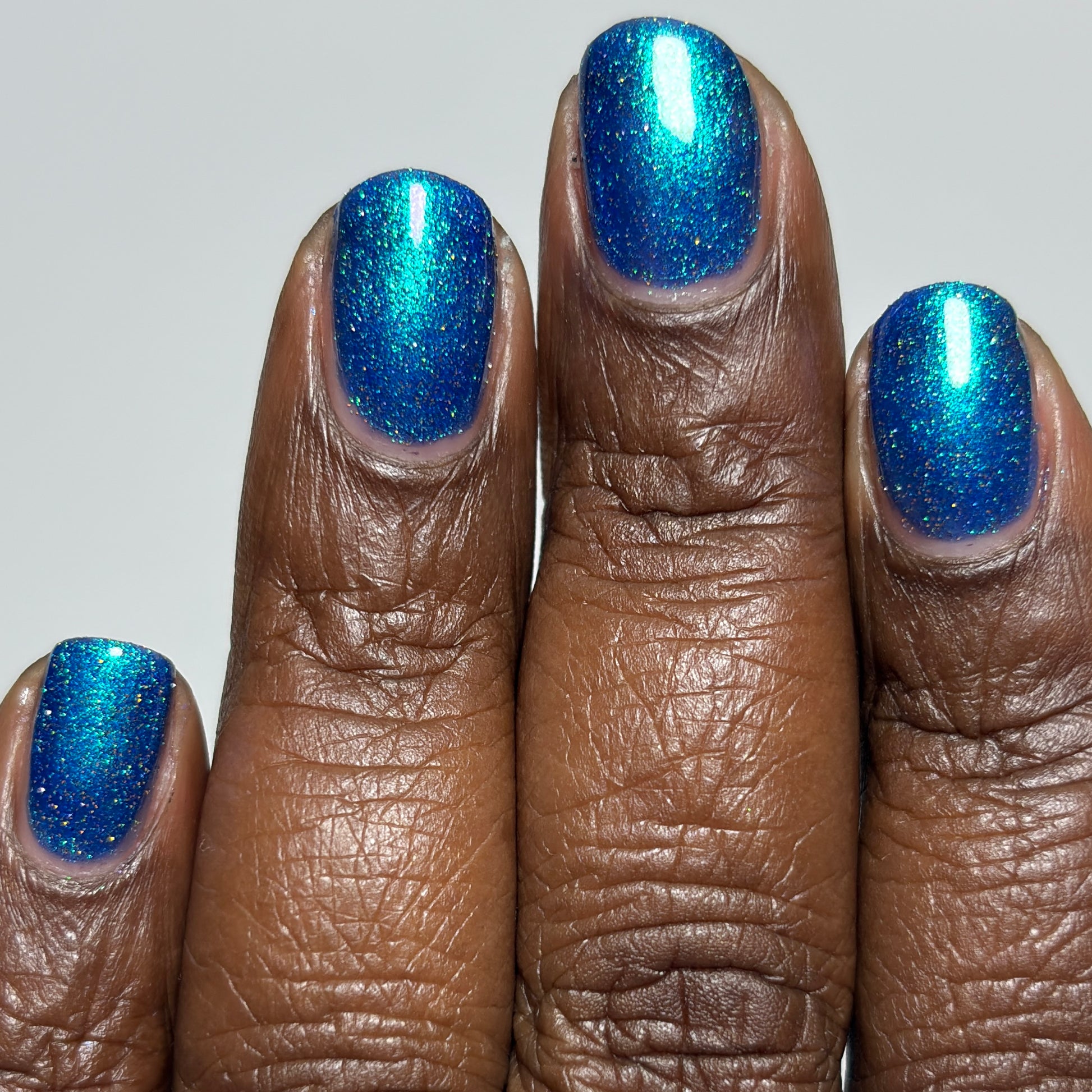 Heart of the Ocean has a deep royal blue jelly base with green/teal shimmer and bronze reflective glitter!