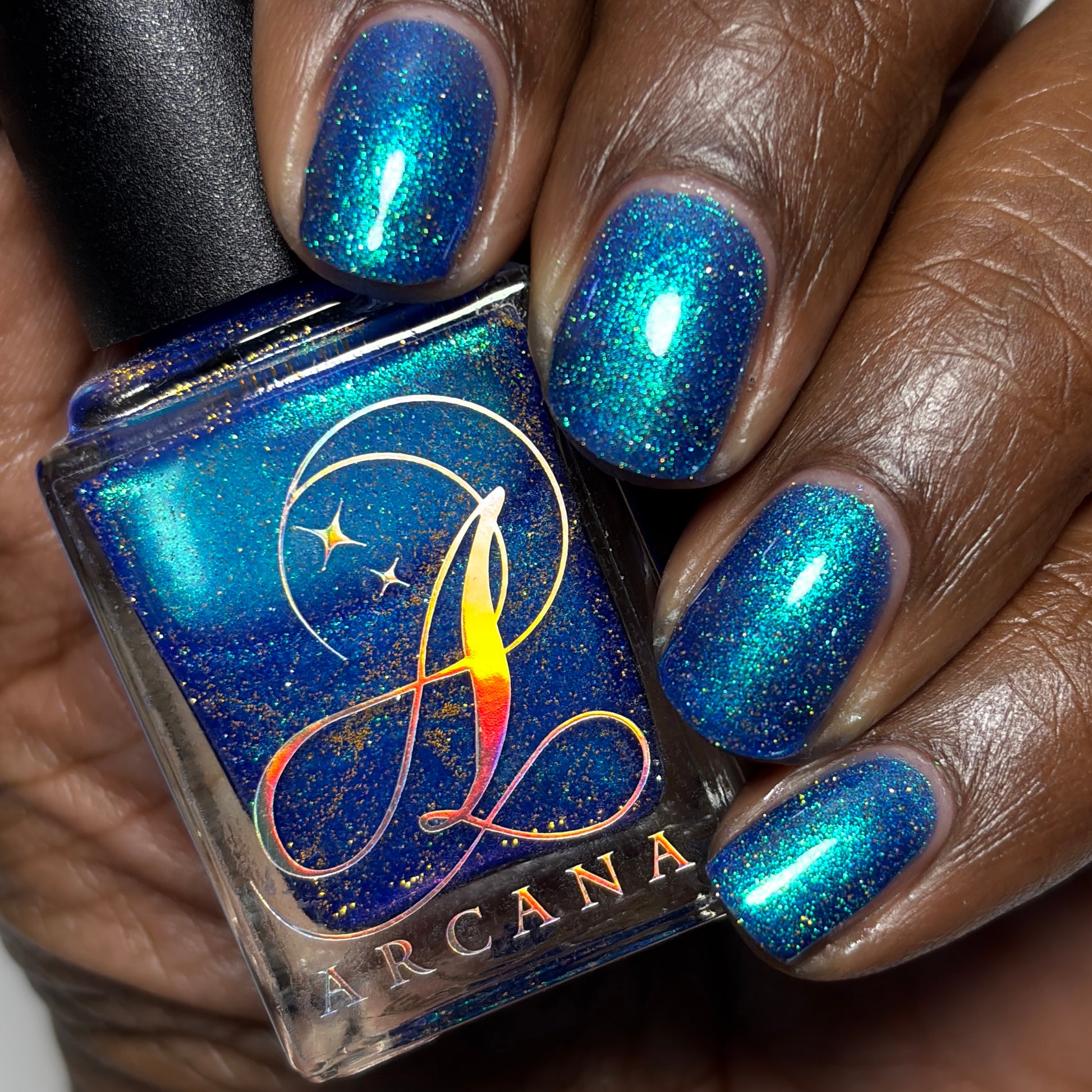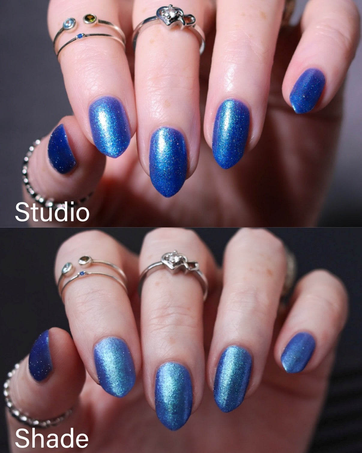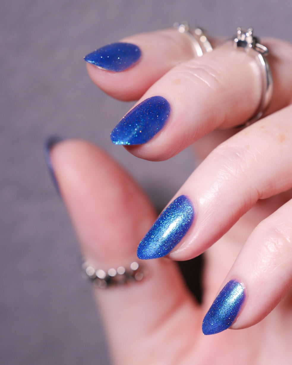 Heart of the Ocean has a deep royal blue jelly base with green/teal shimmer and bronze reflective glitter!