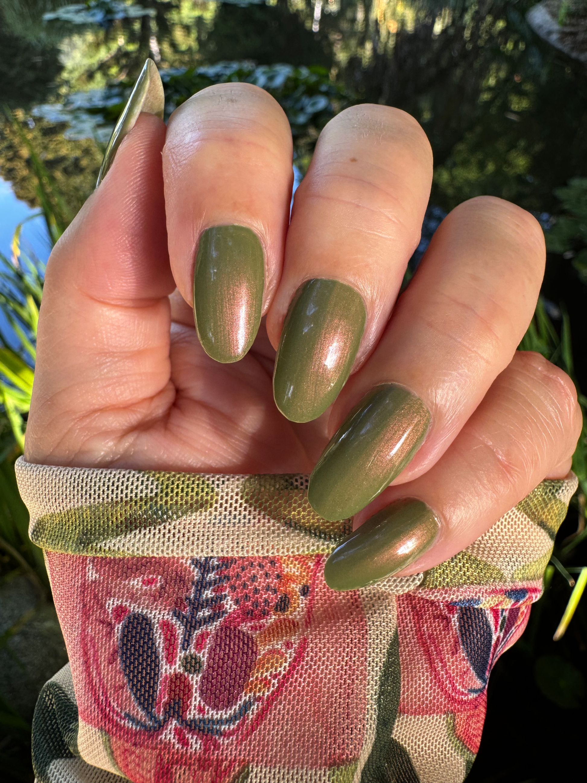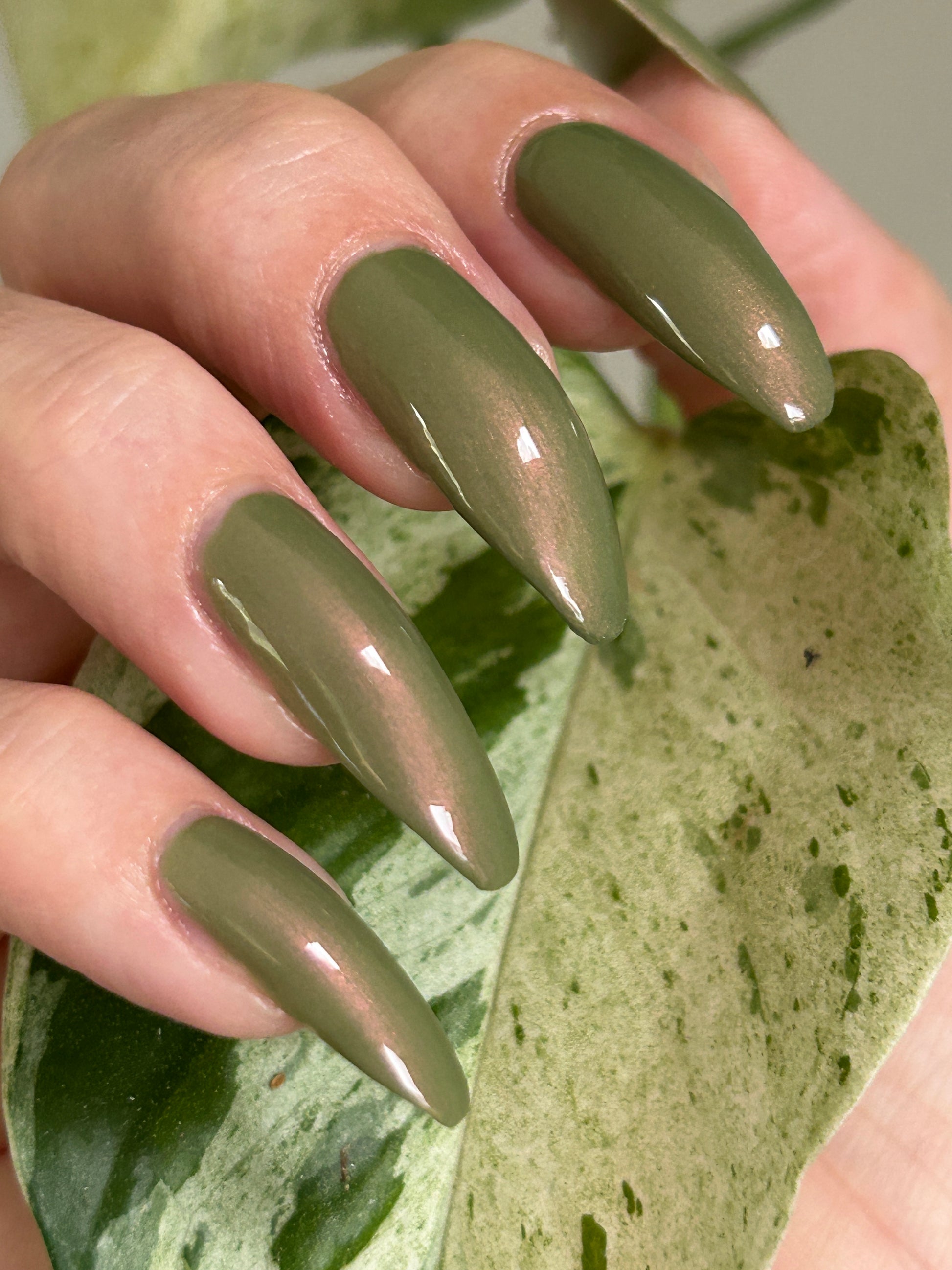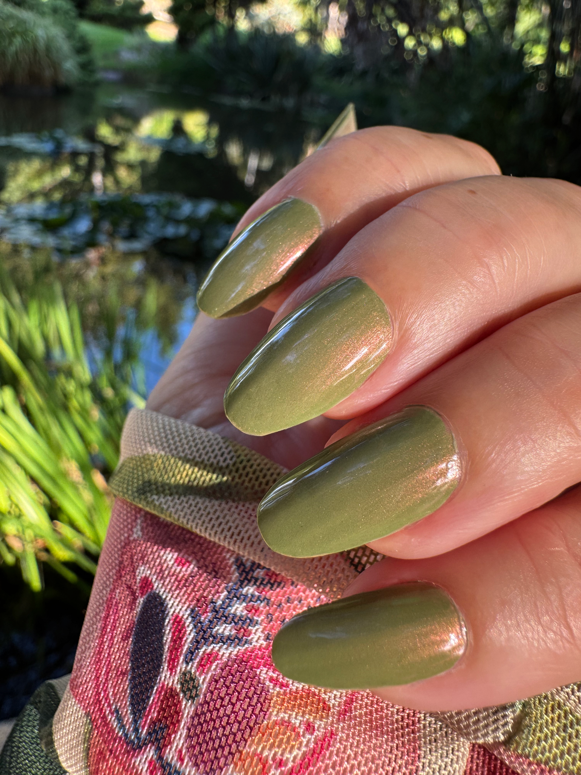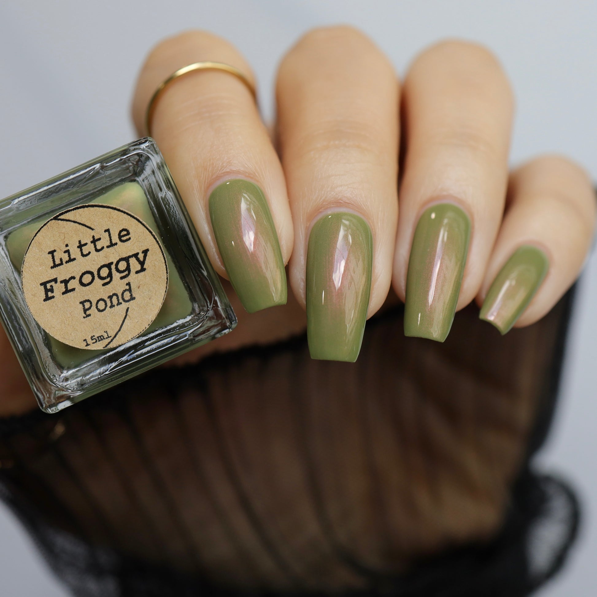 This polish is inspired by late summertime strolls near an algea-covered pond with the sound of frogs filling the air.