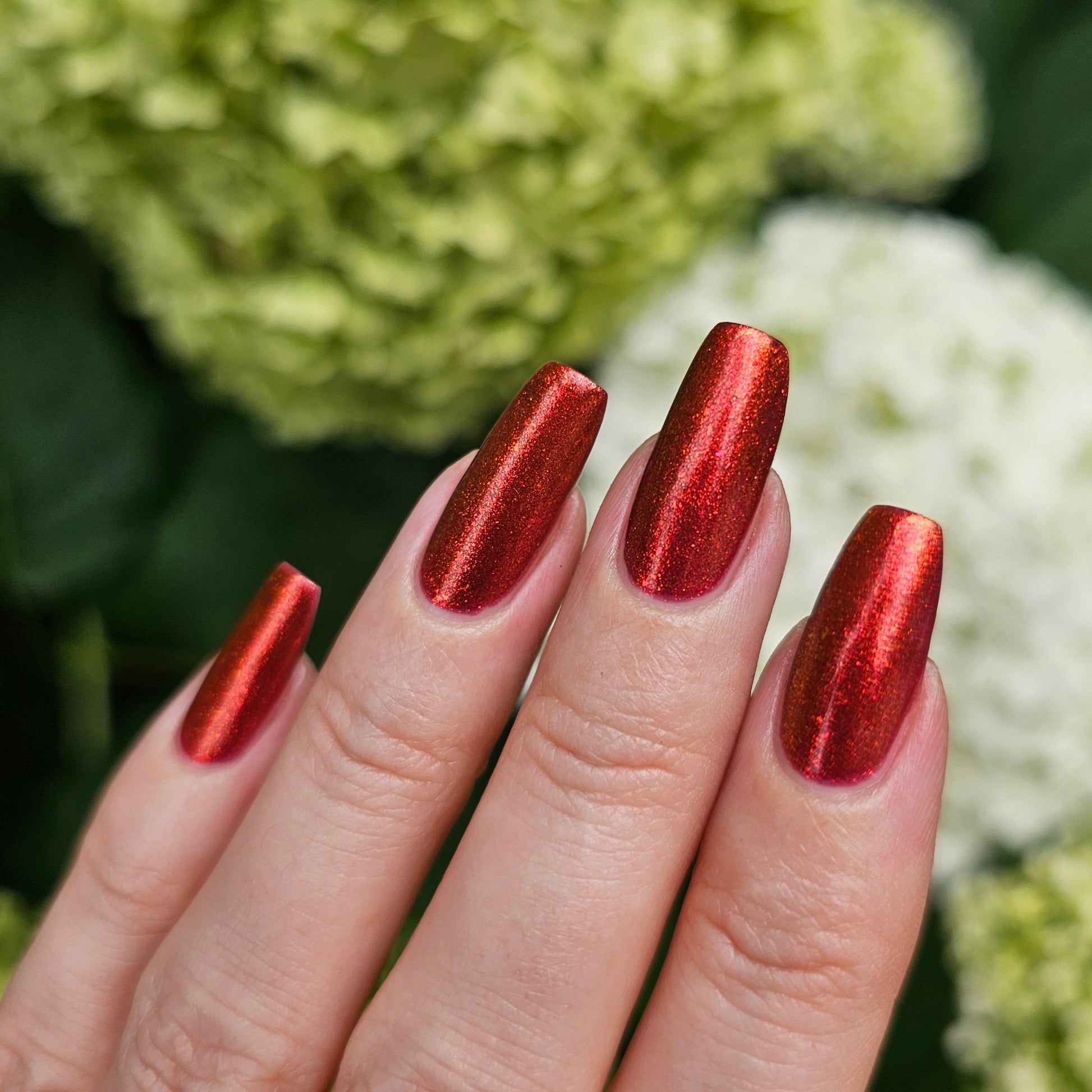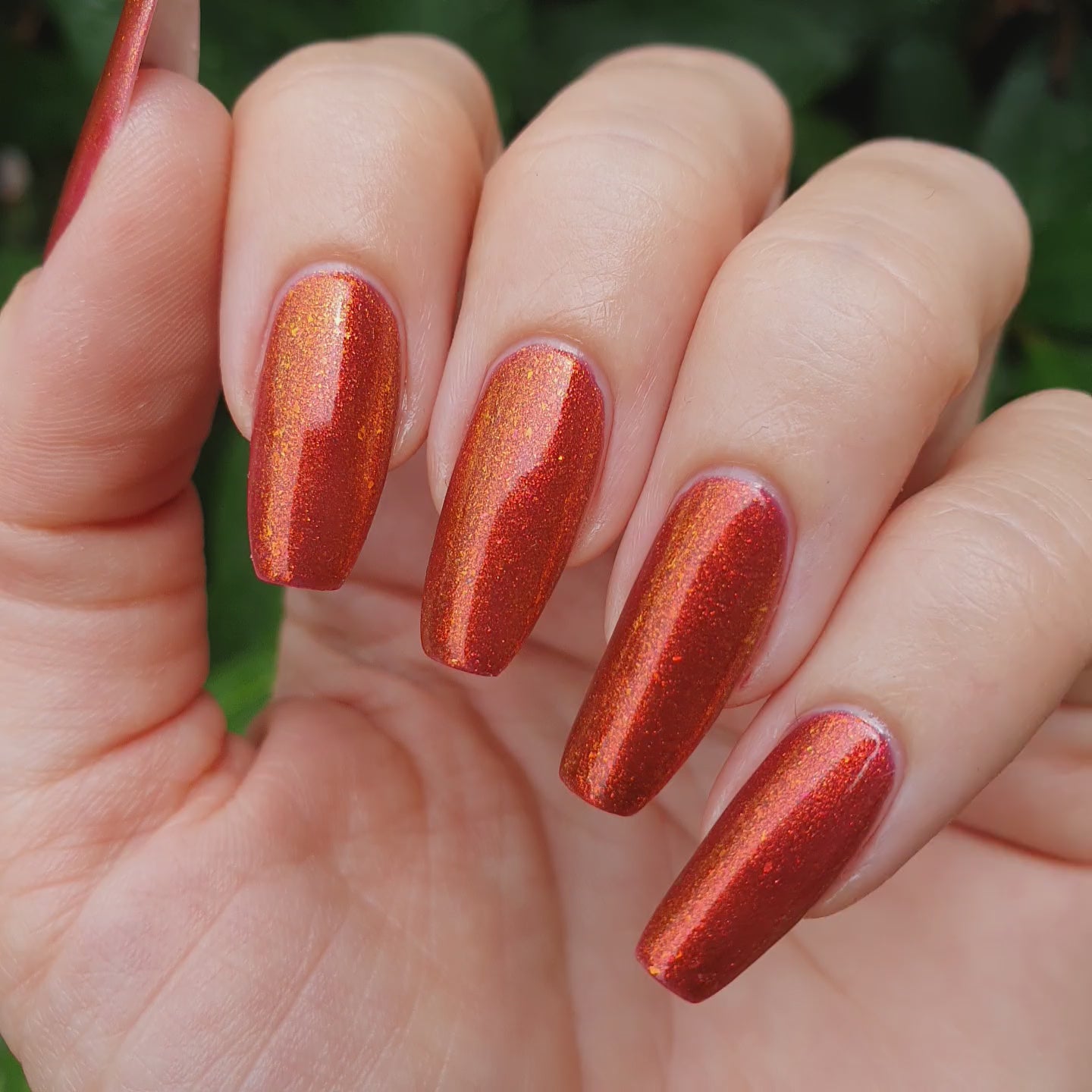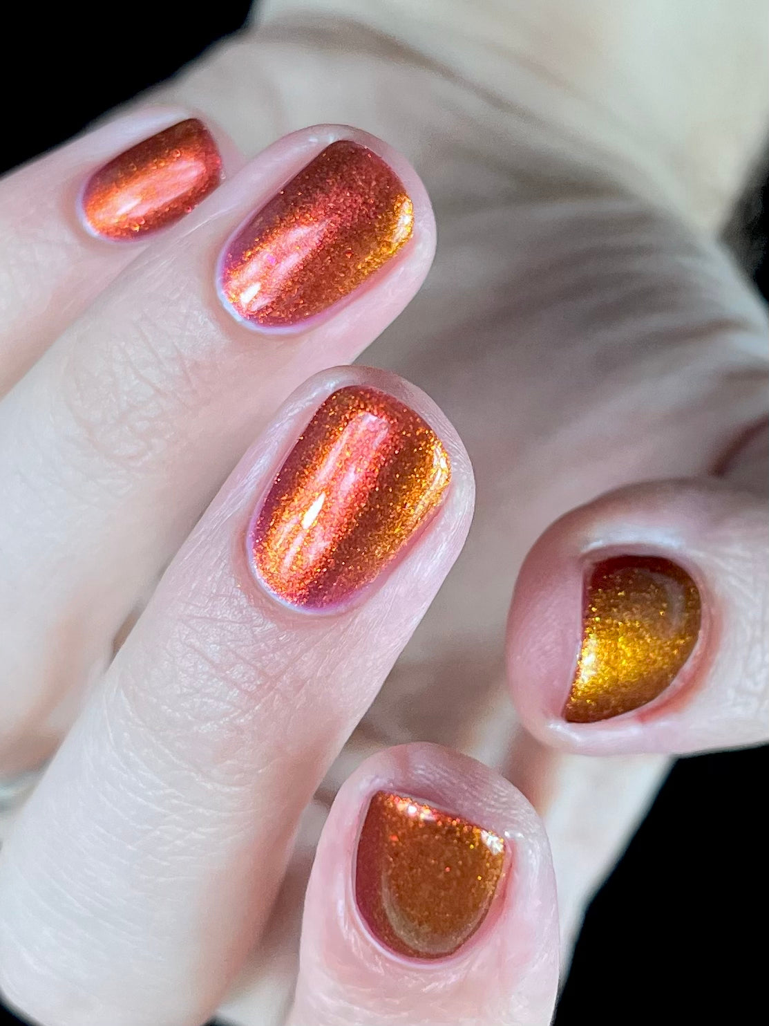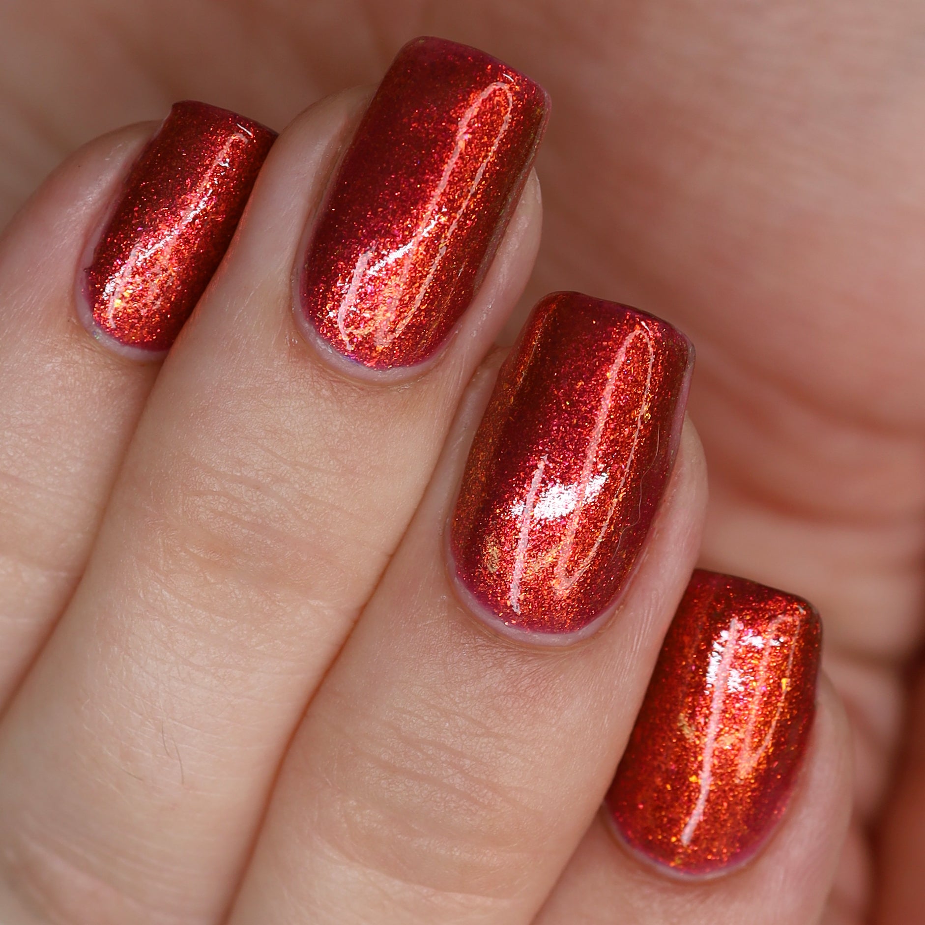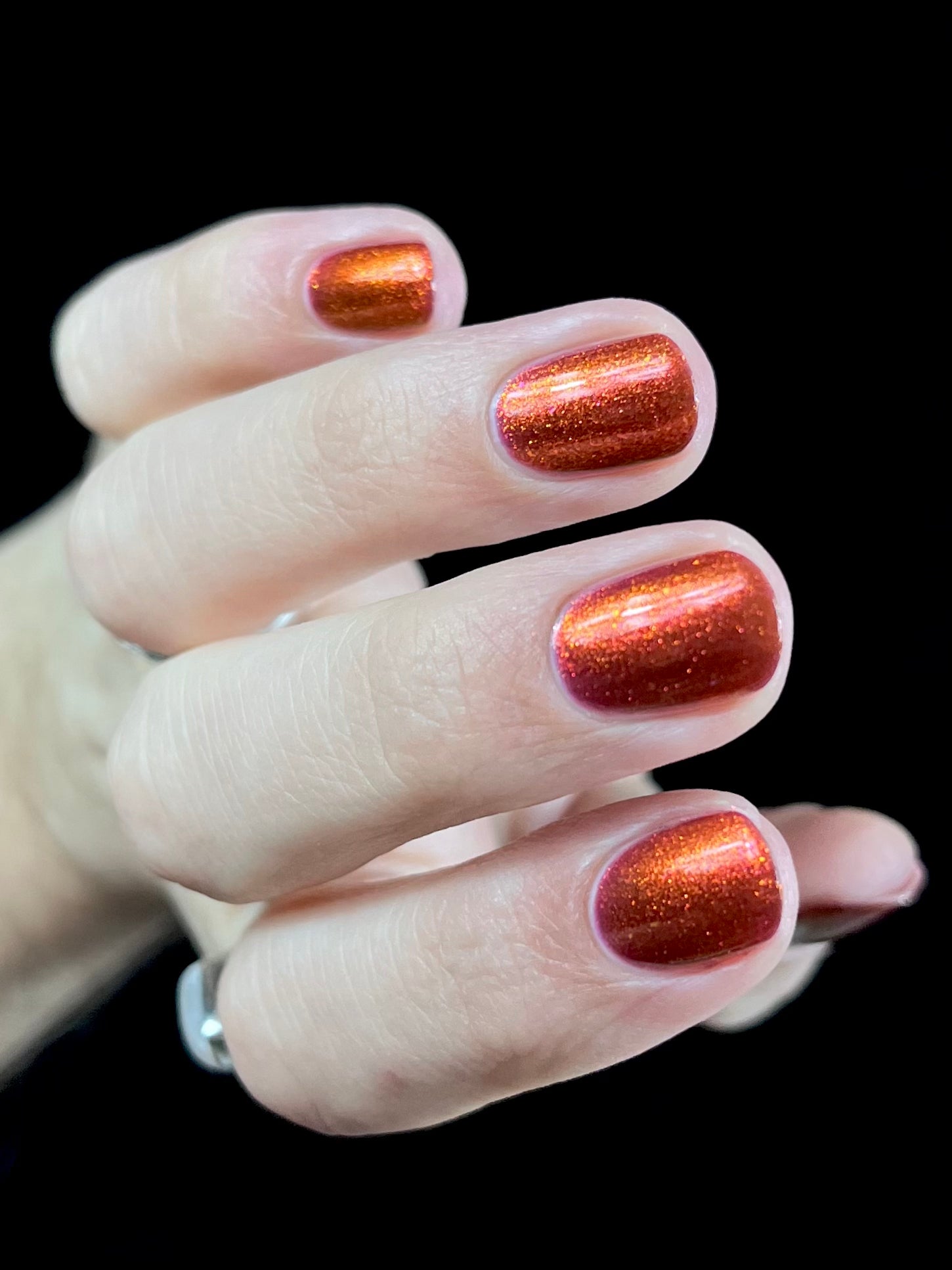 Lost Hope is a darkish red jelly base with strong orange to yellow shimmer.