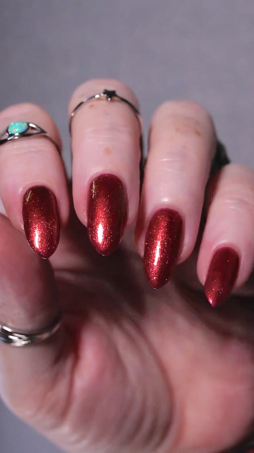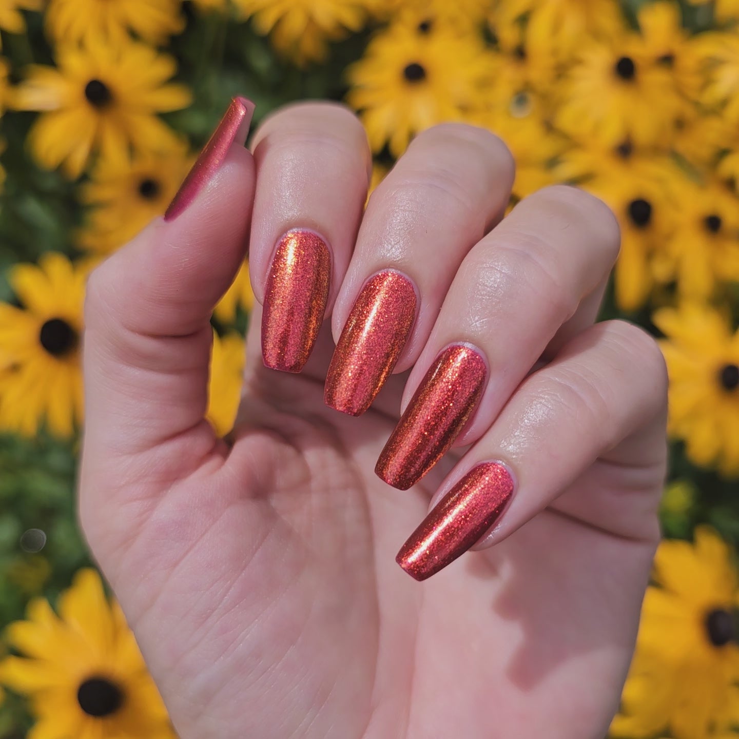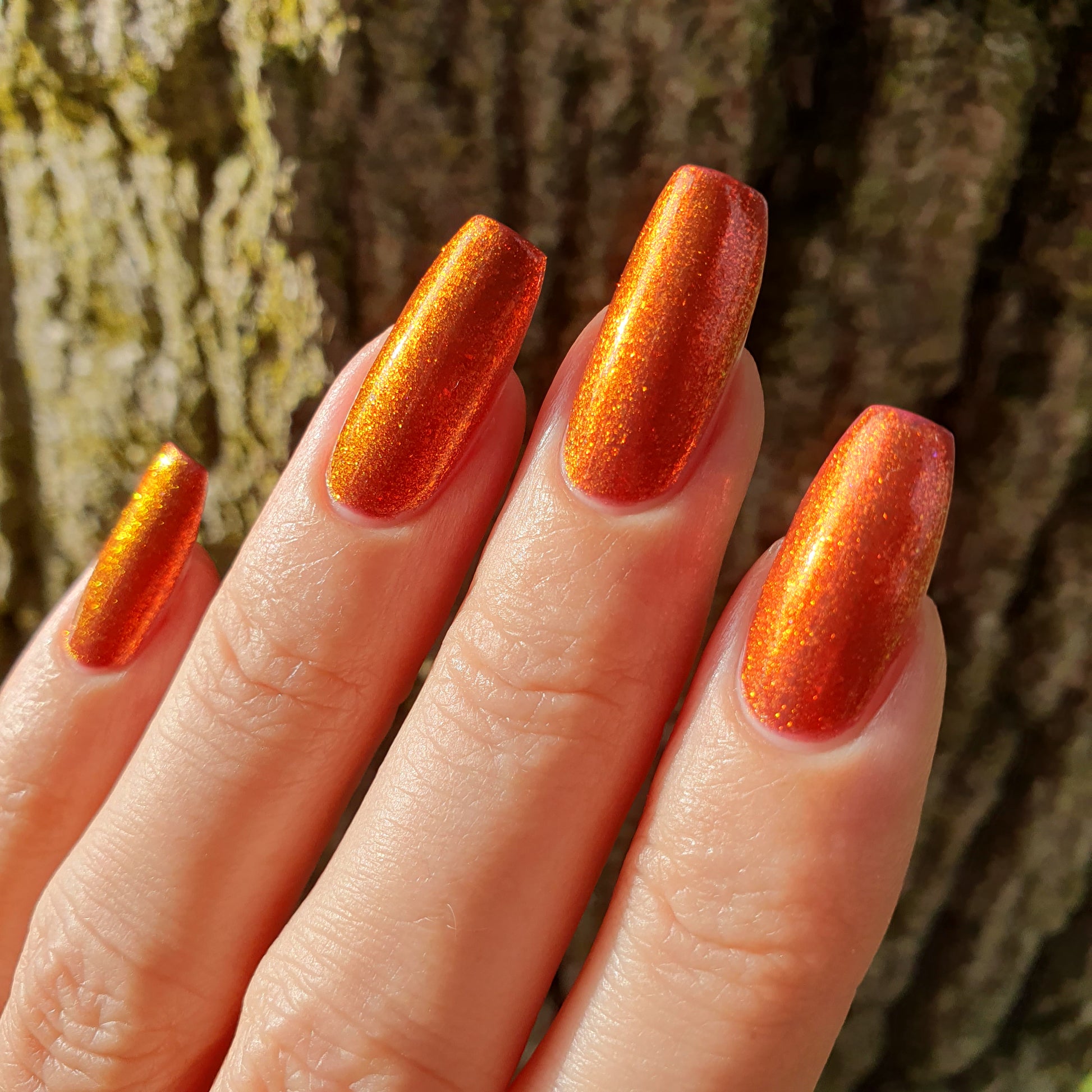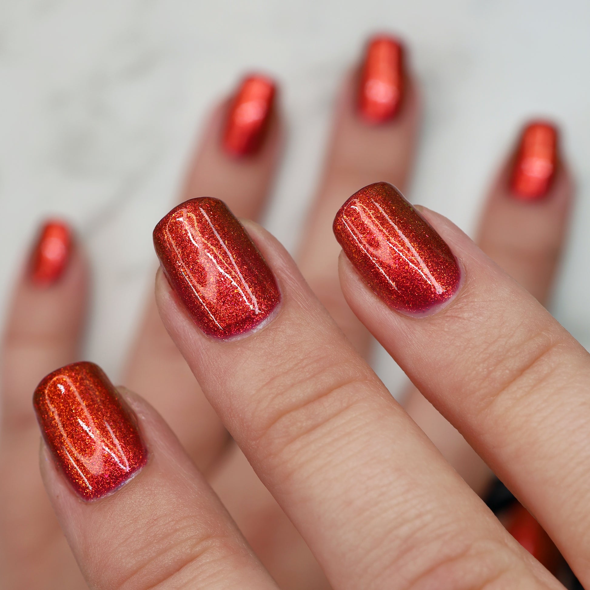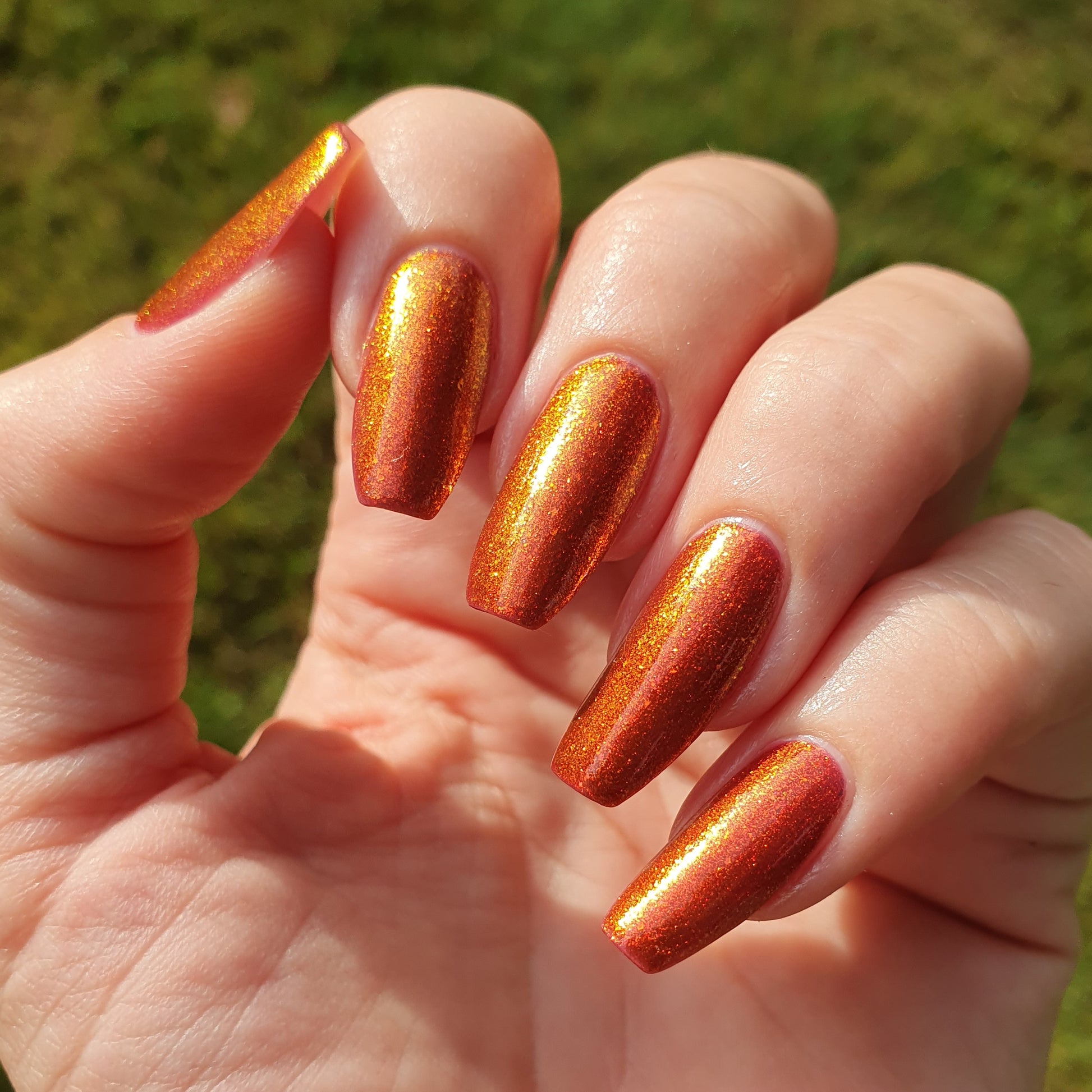 Lost Hope is a darkish red jelly base with strong orange to yellow shimmer.