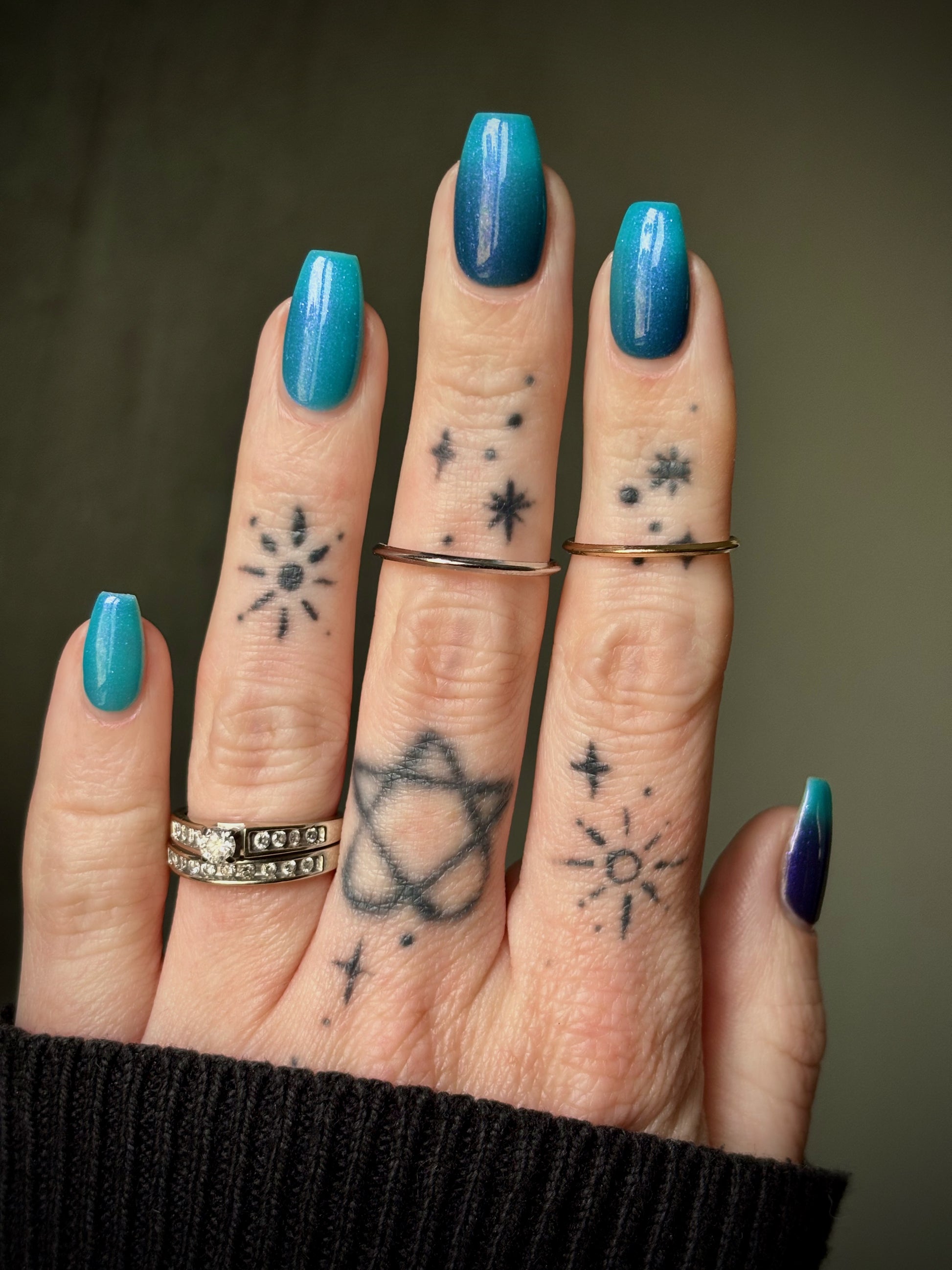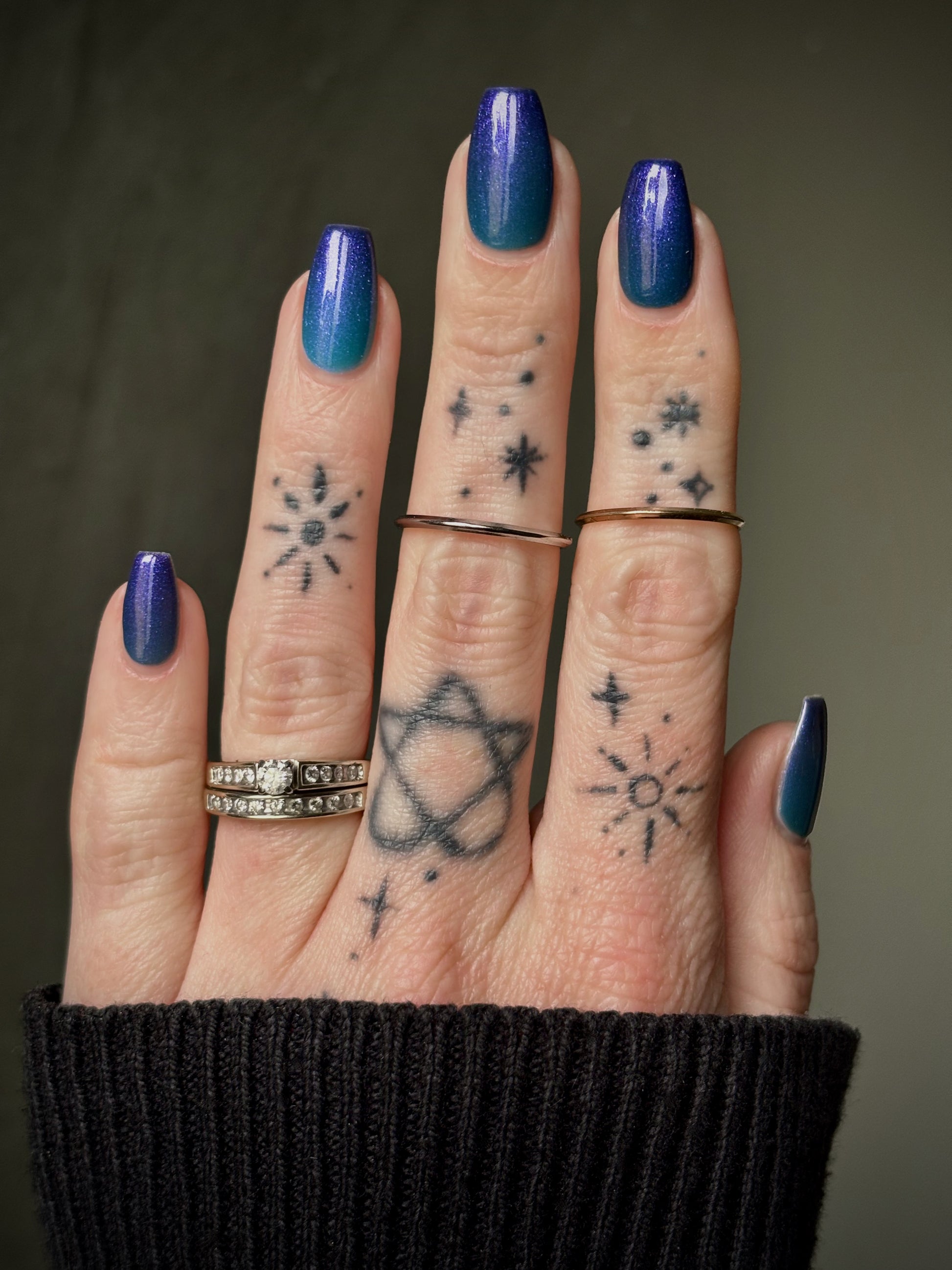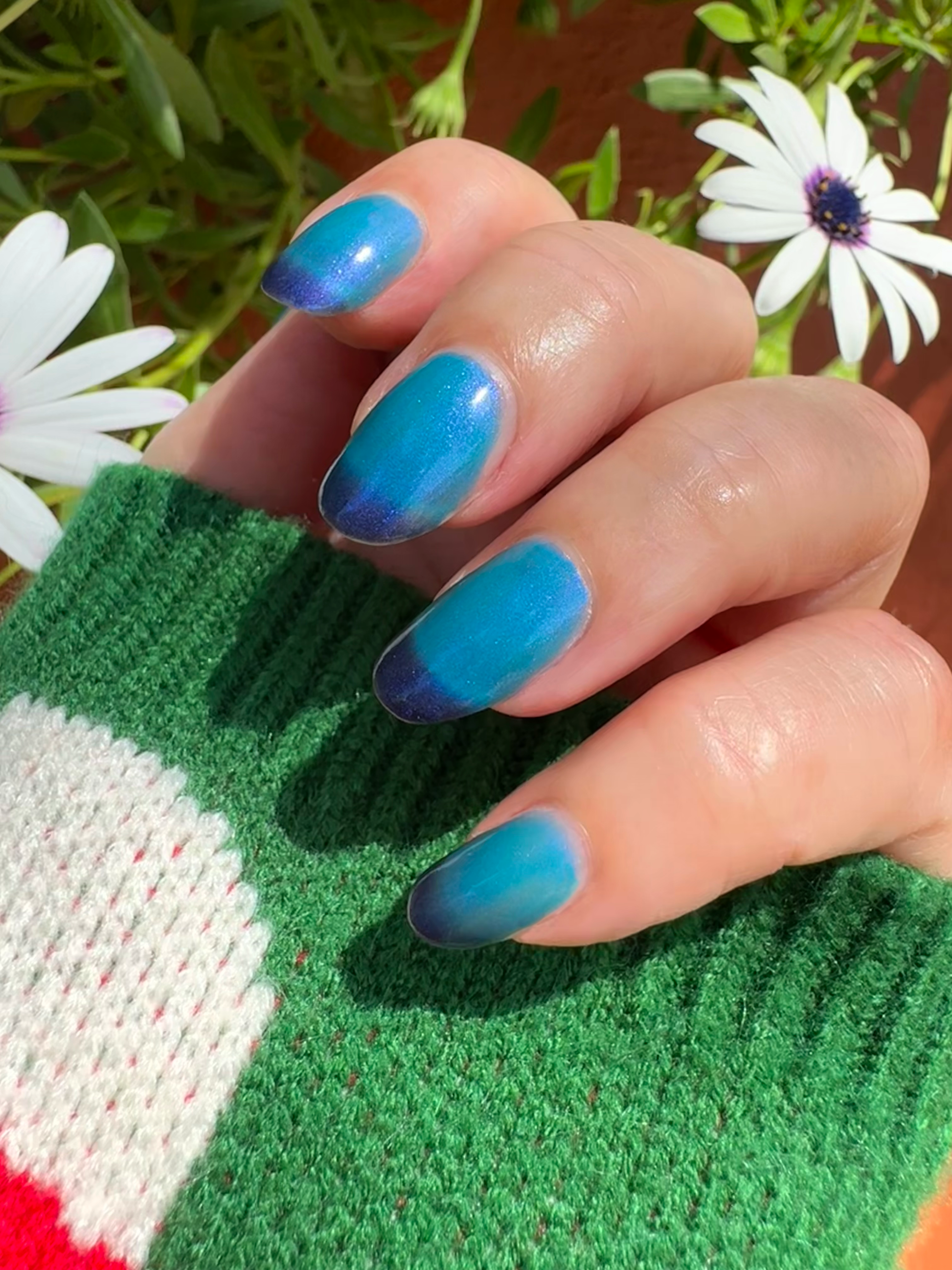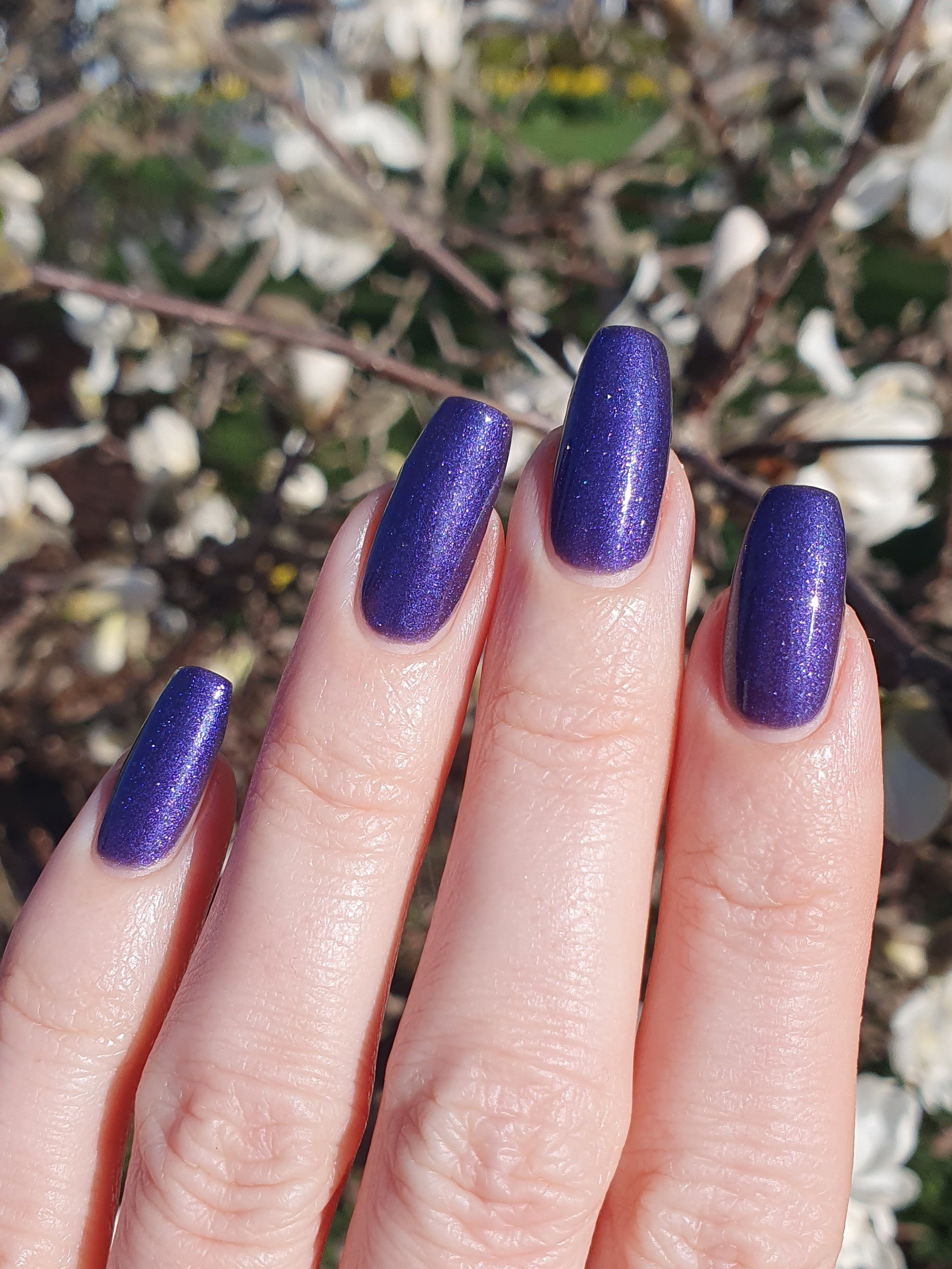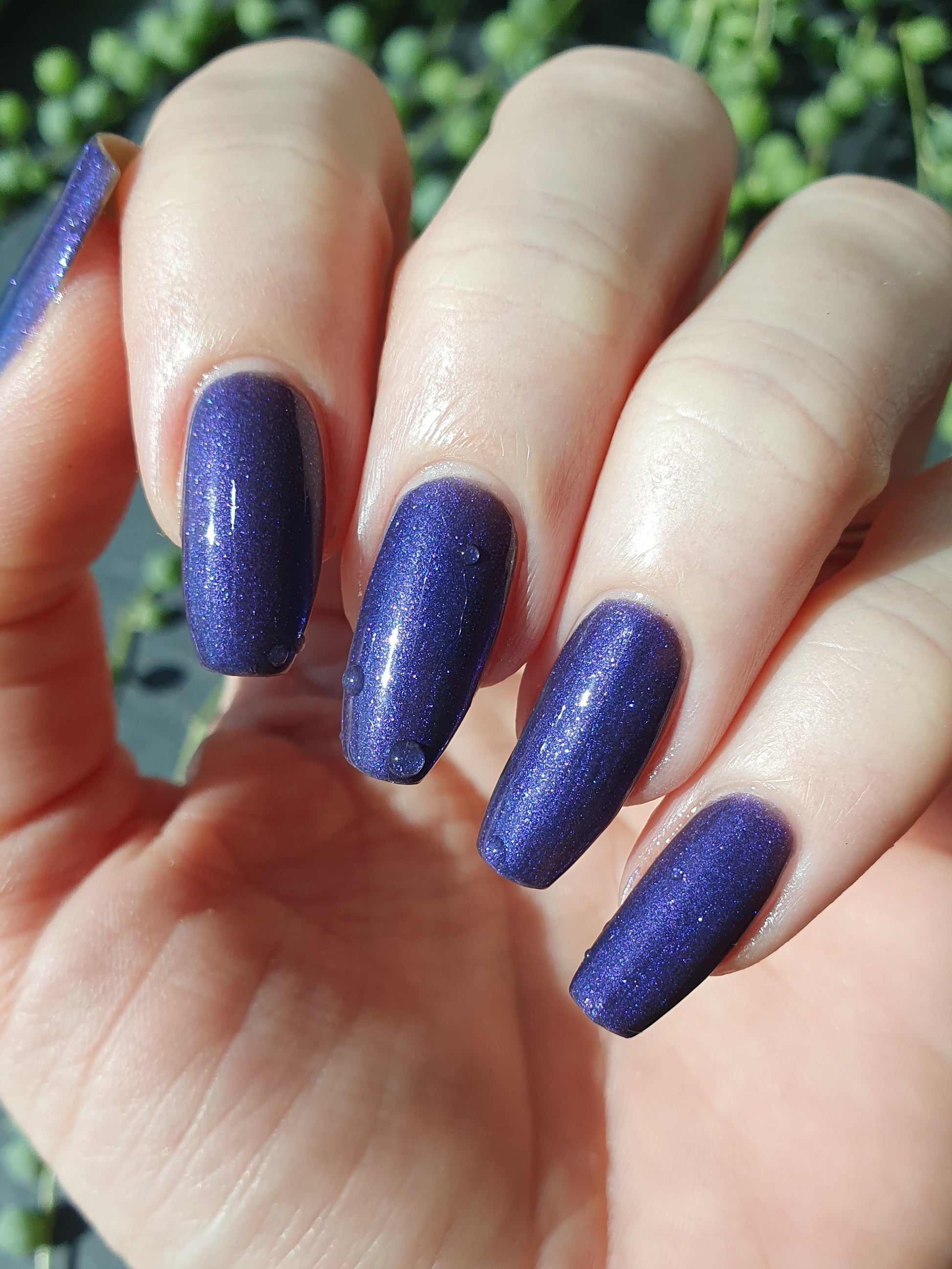 Mushroom-Lit Grotto is a sibling polish to Mushroom-Lit Cavern! This polish features a dark purple (cold) to light teal (warm) thermal with purple to blue shimmer.