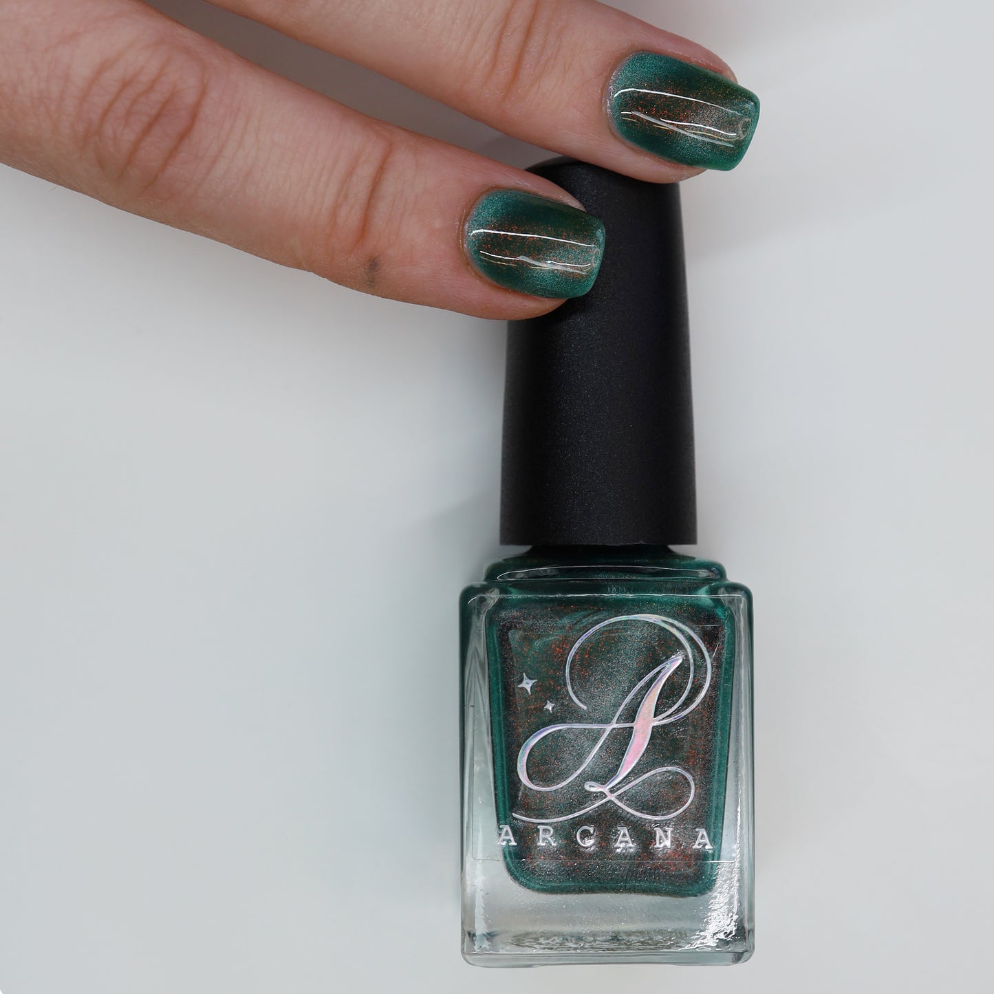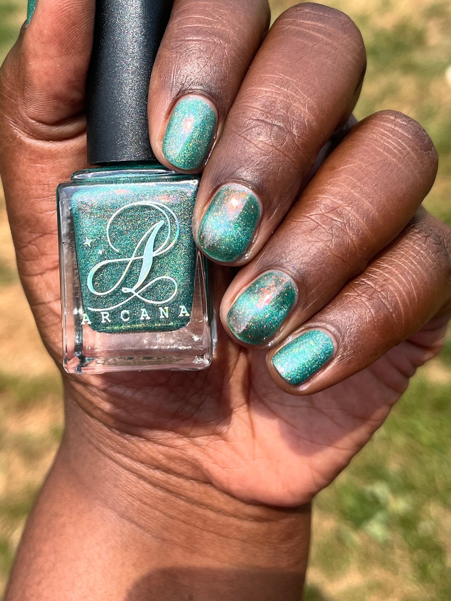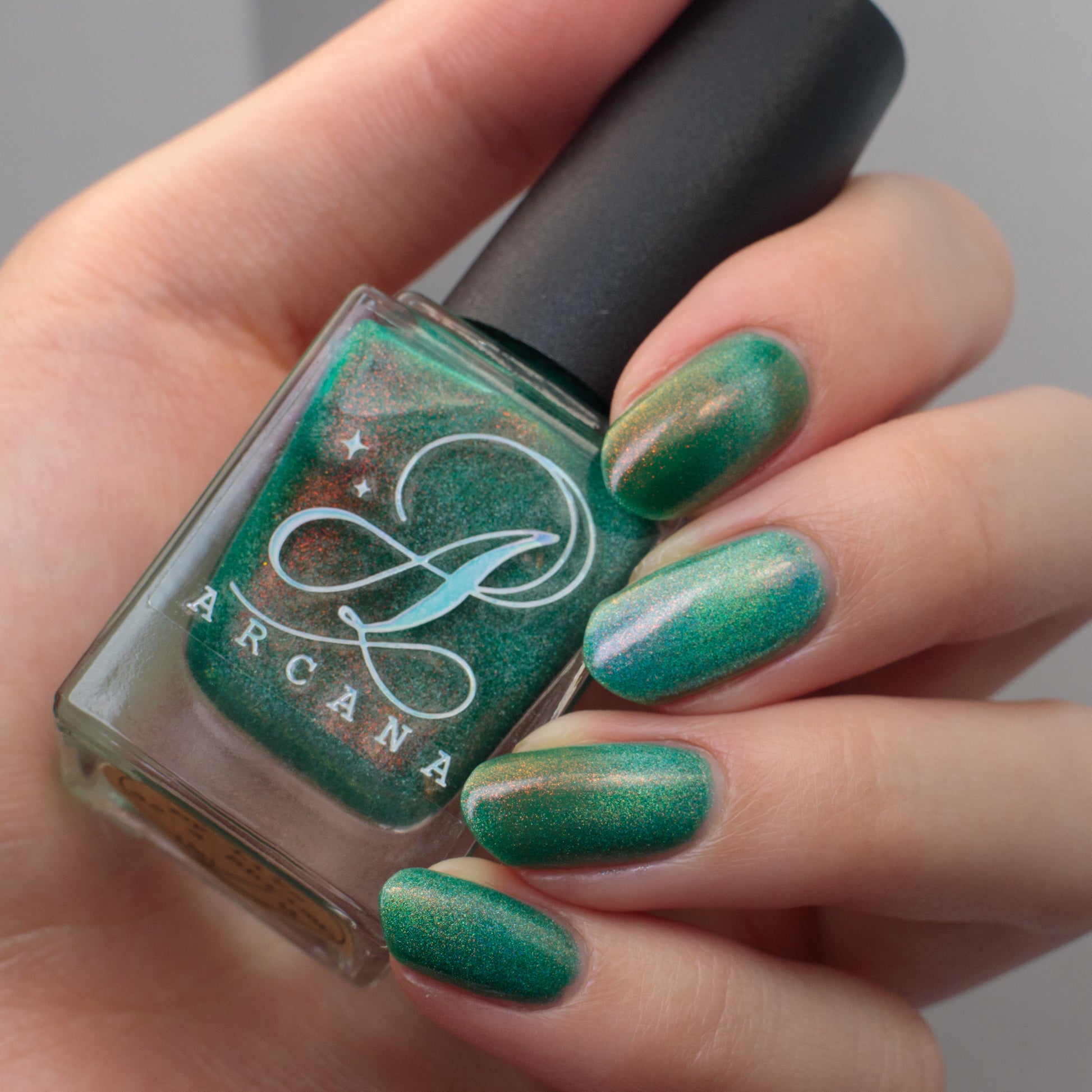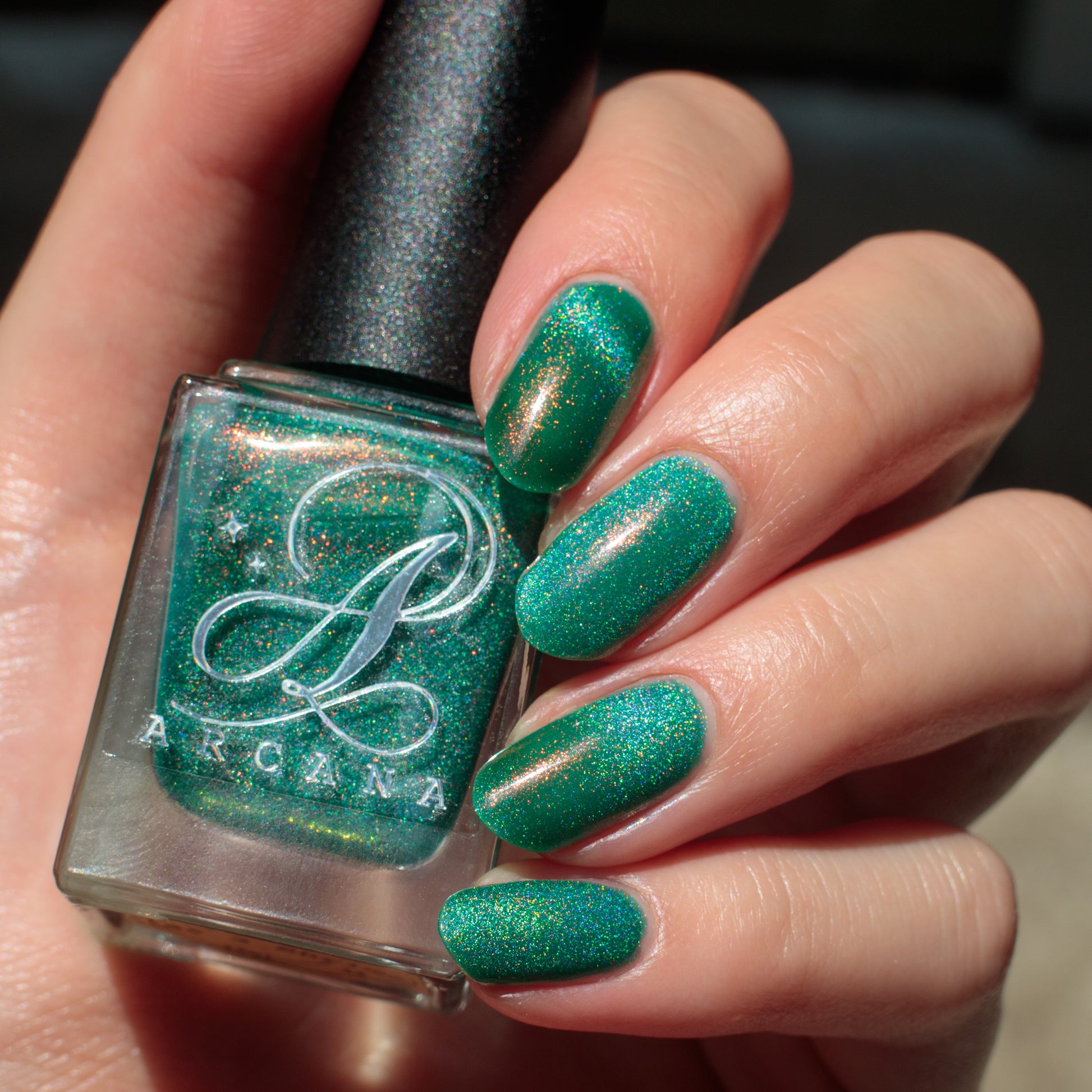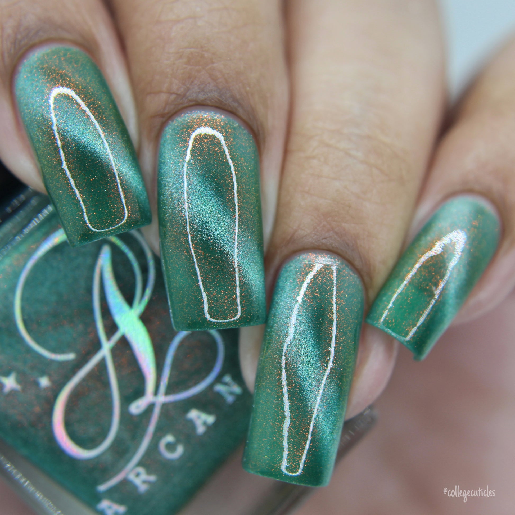My Life as a Shrimp has a blue-green jelly base and red-orange aurora along with magnetic holo pigment! The magnetic holo in this is mesmerizing. It holds very well with little diffusion in our experience!