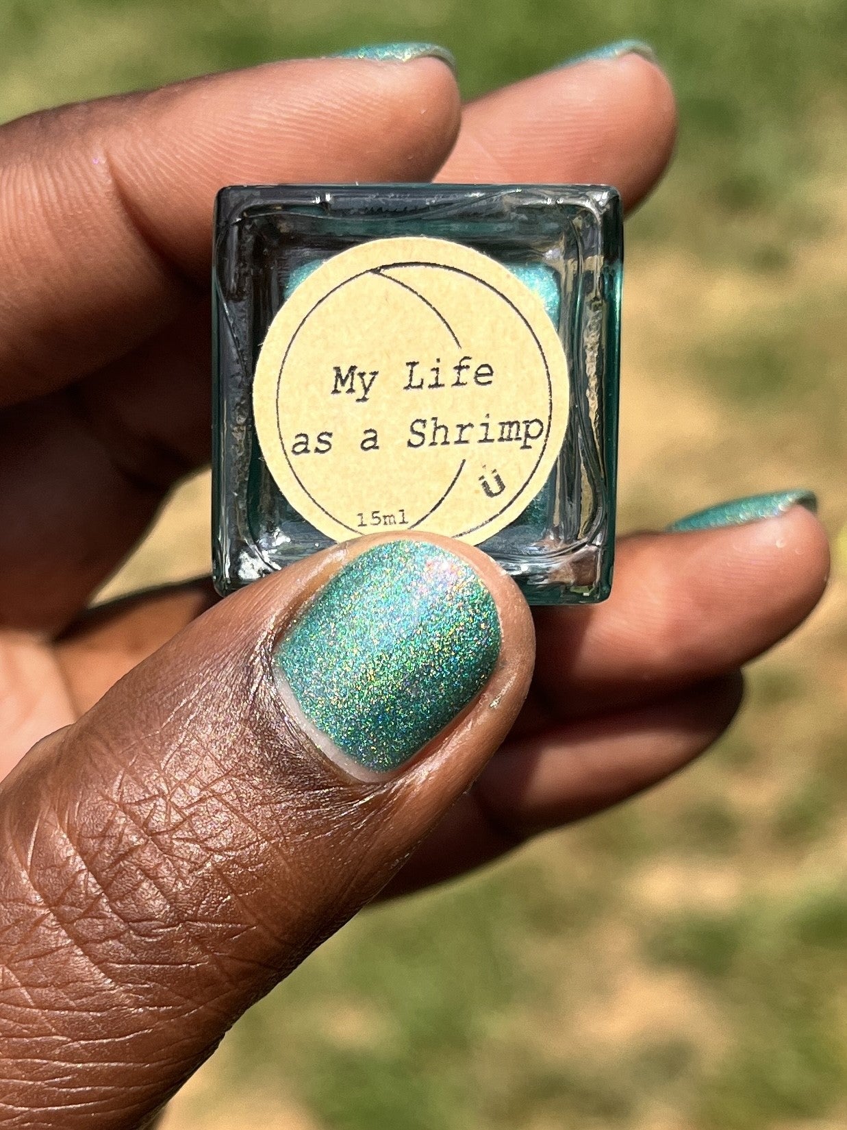My Life as a Shrimp is inspired by the colorful mantis shrimp! With the ability to see 12 color channels (all we get is 3) it only made sense to make this polish holographic!