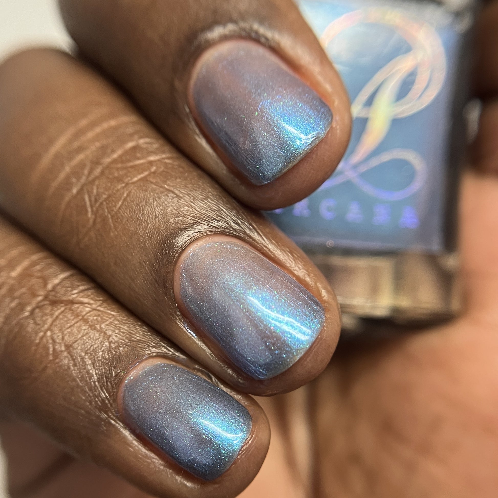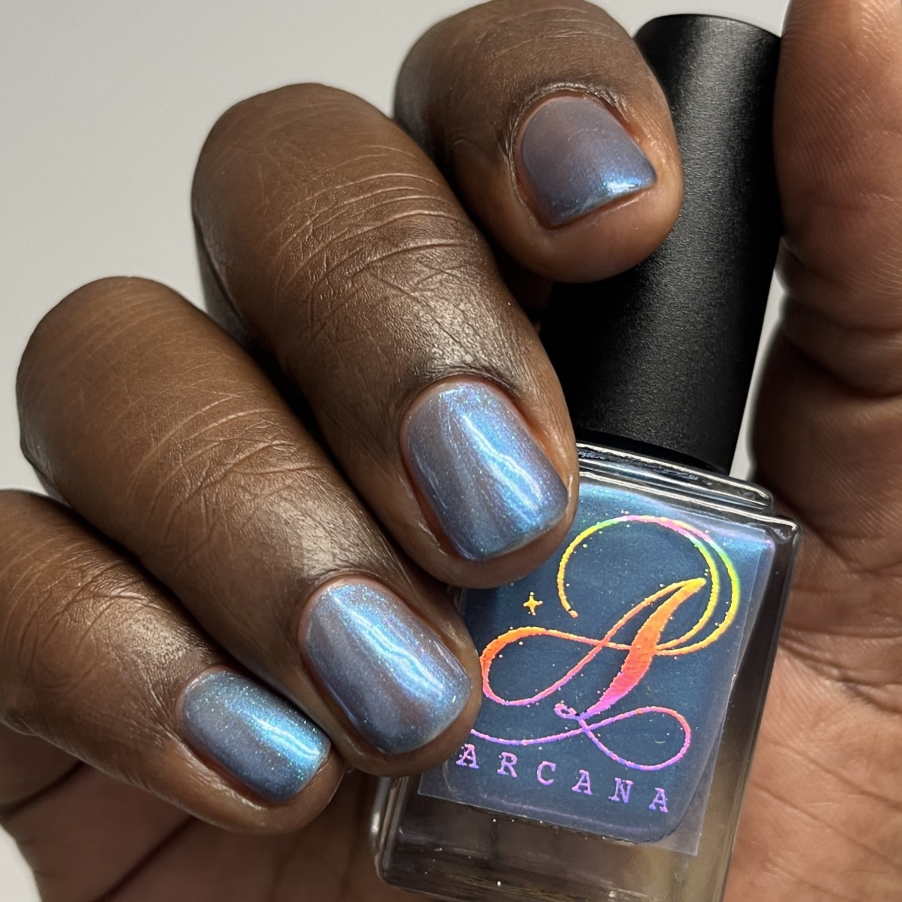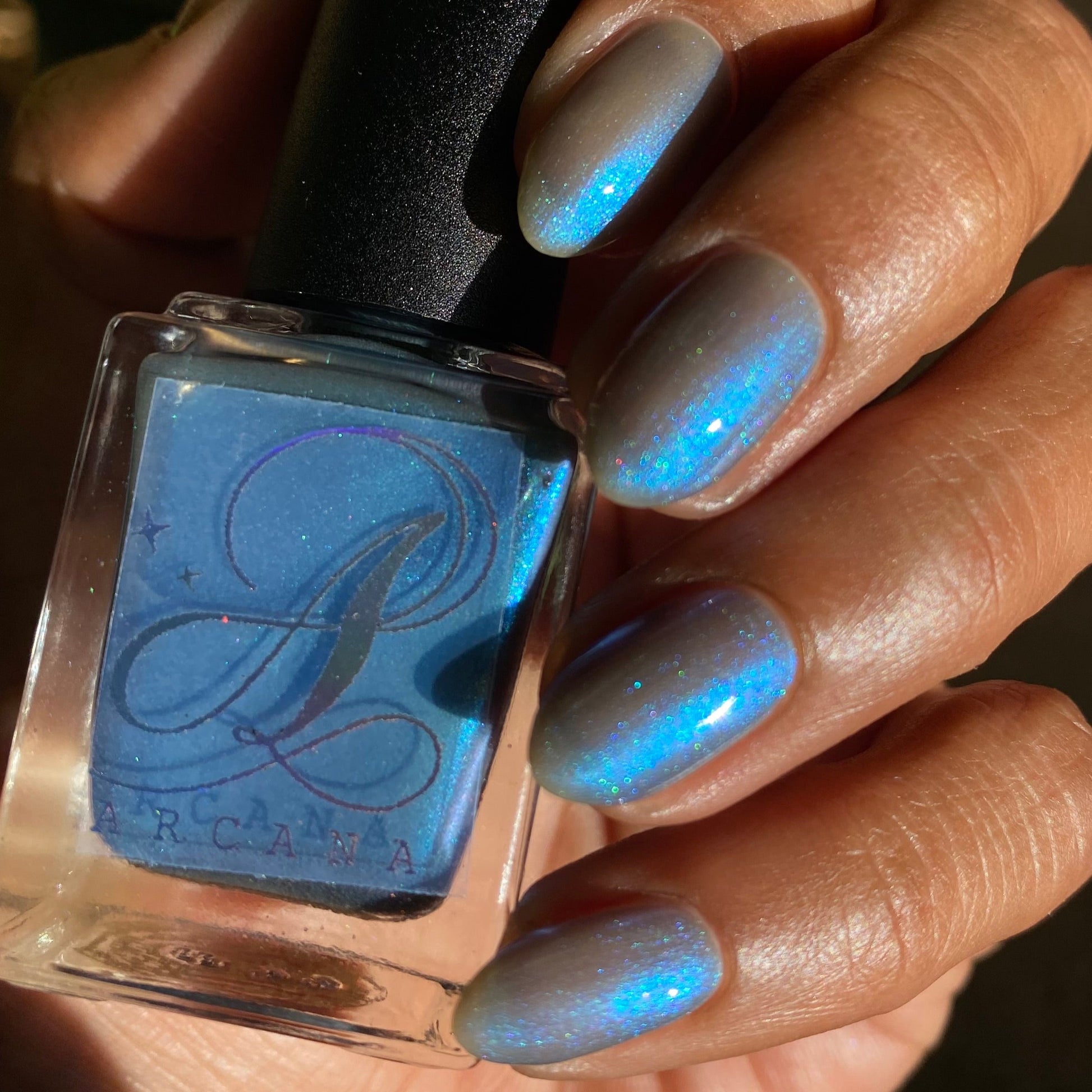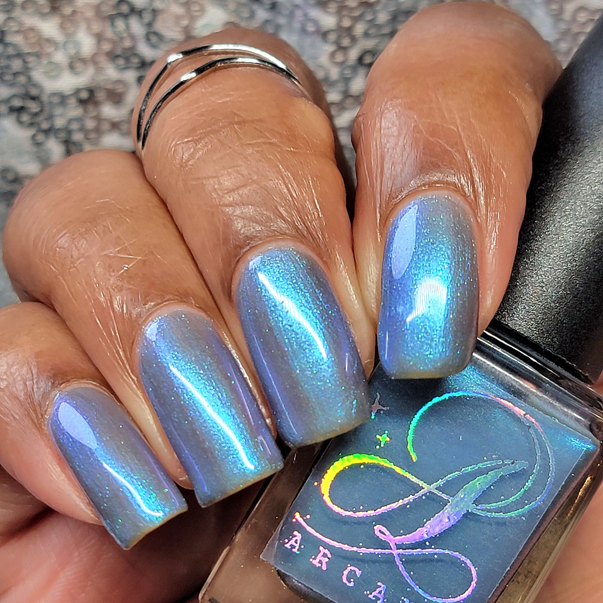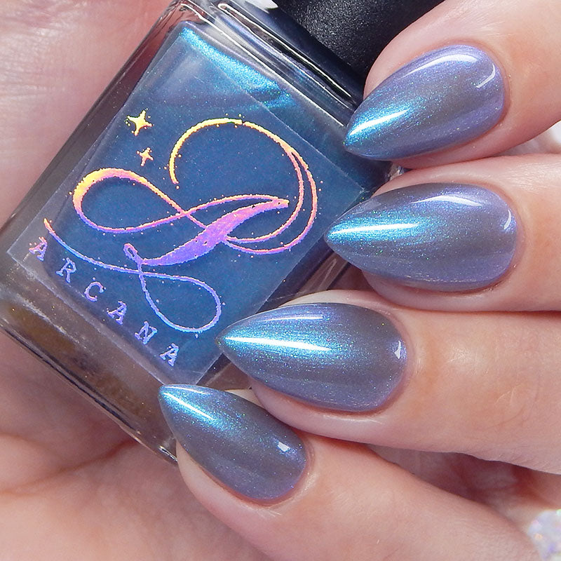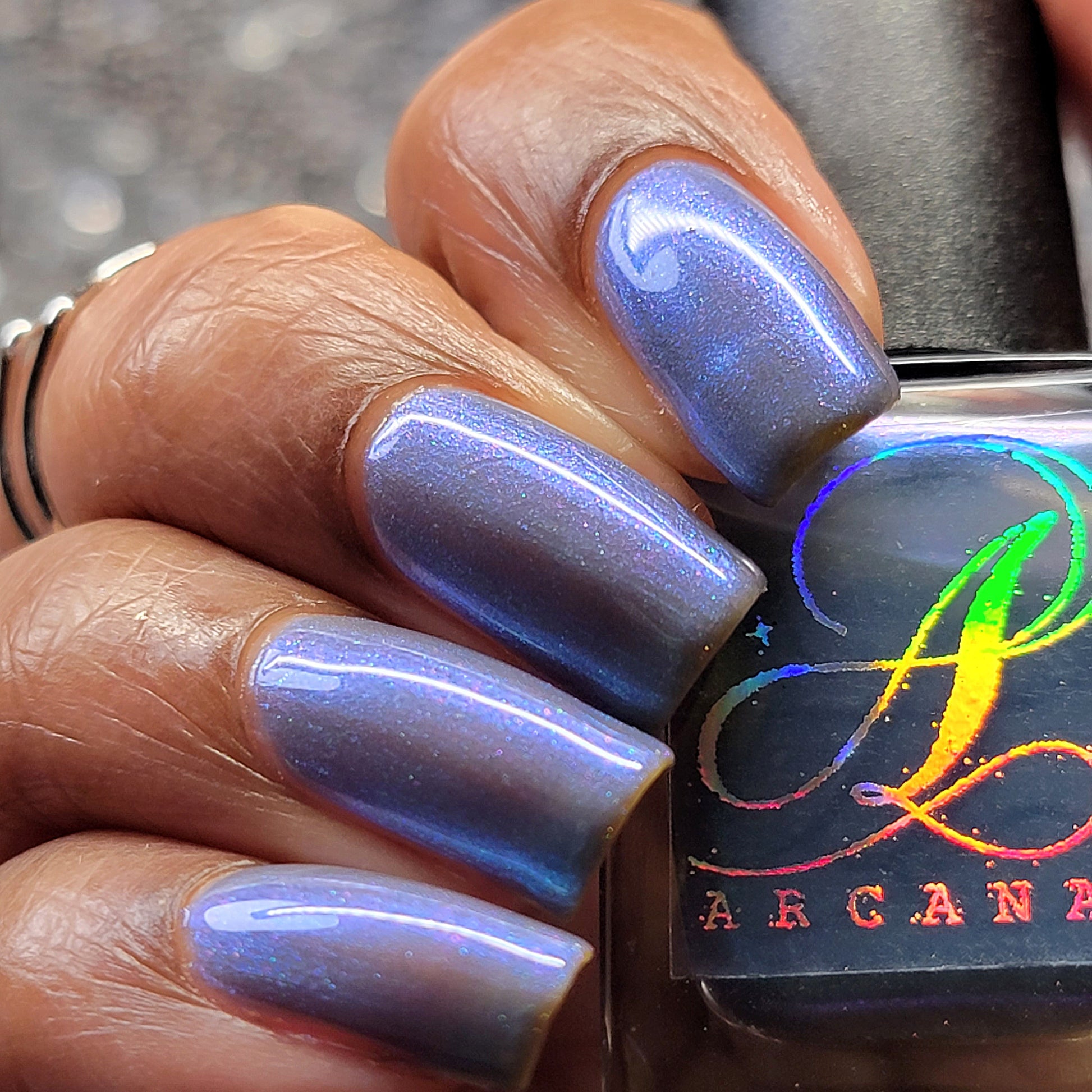 Midnight Mist has a gray jelly base with a shifty blue-purple pearl effect that glows bright blue in direct light.