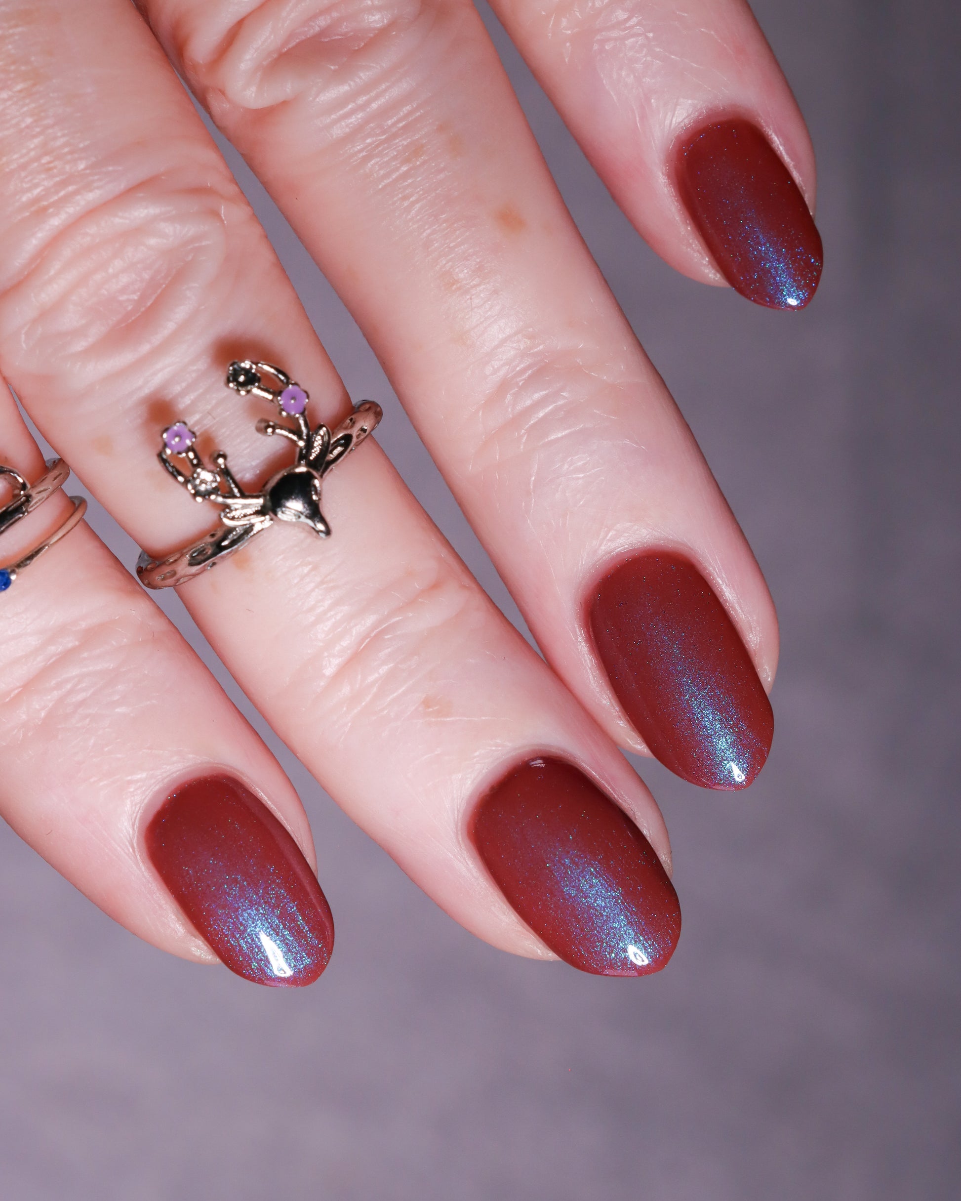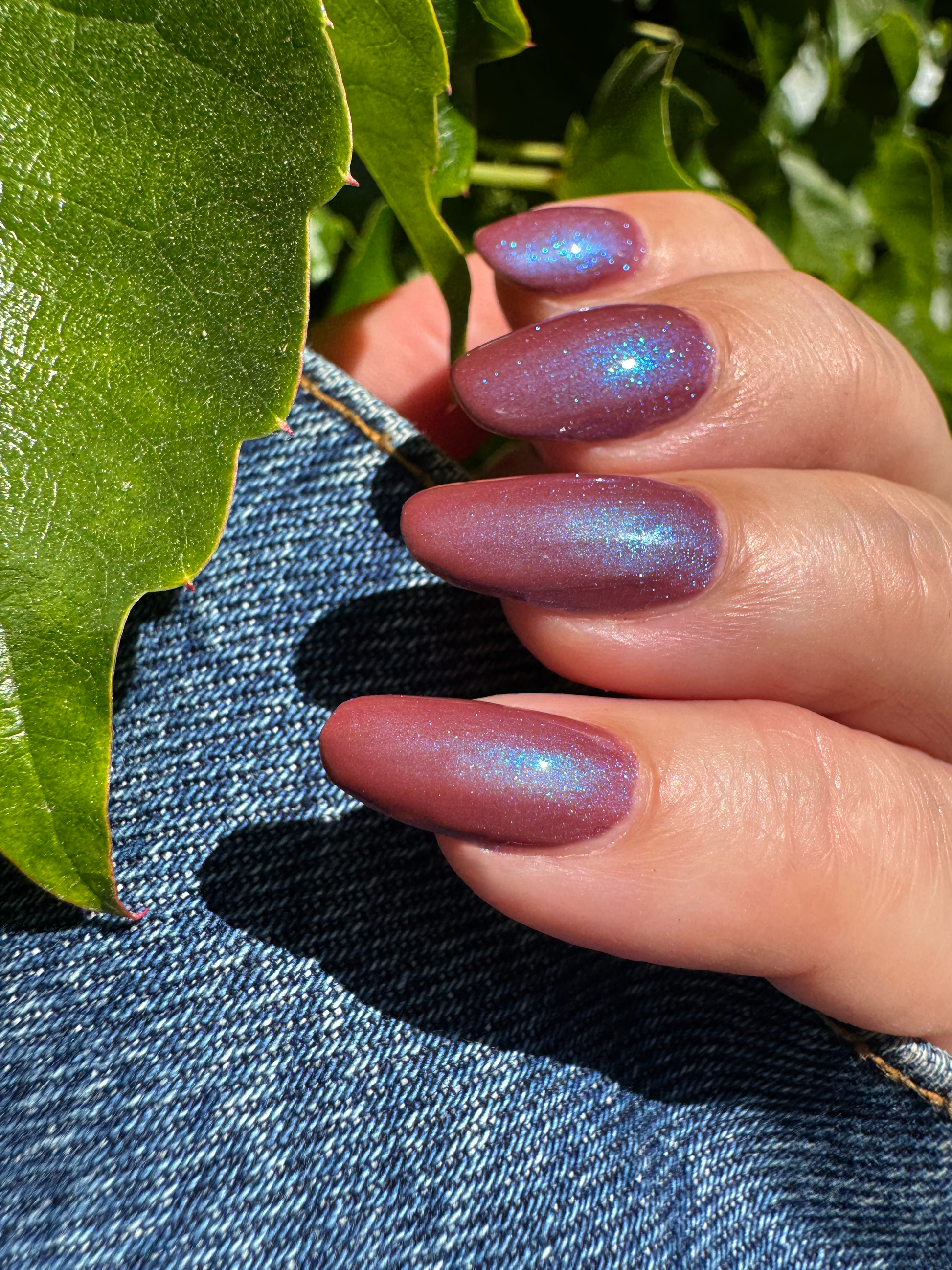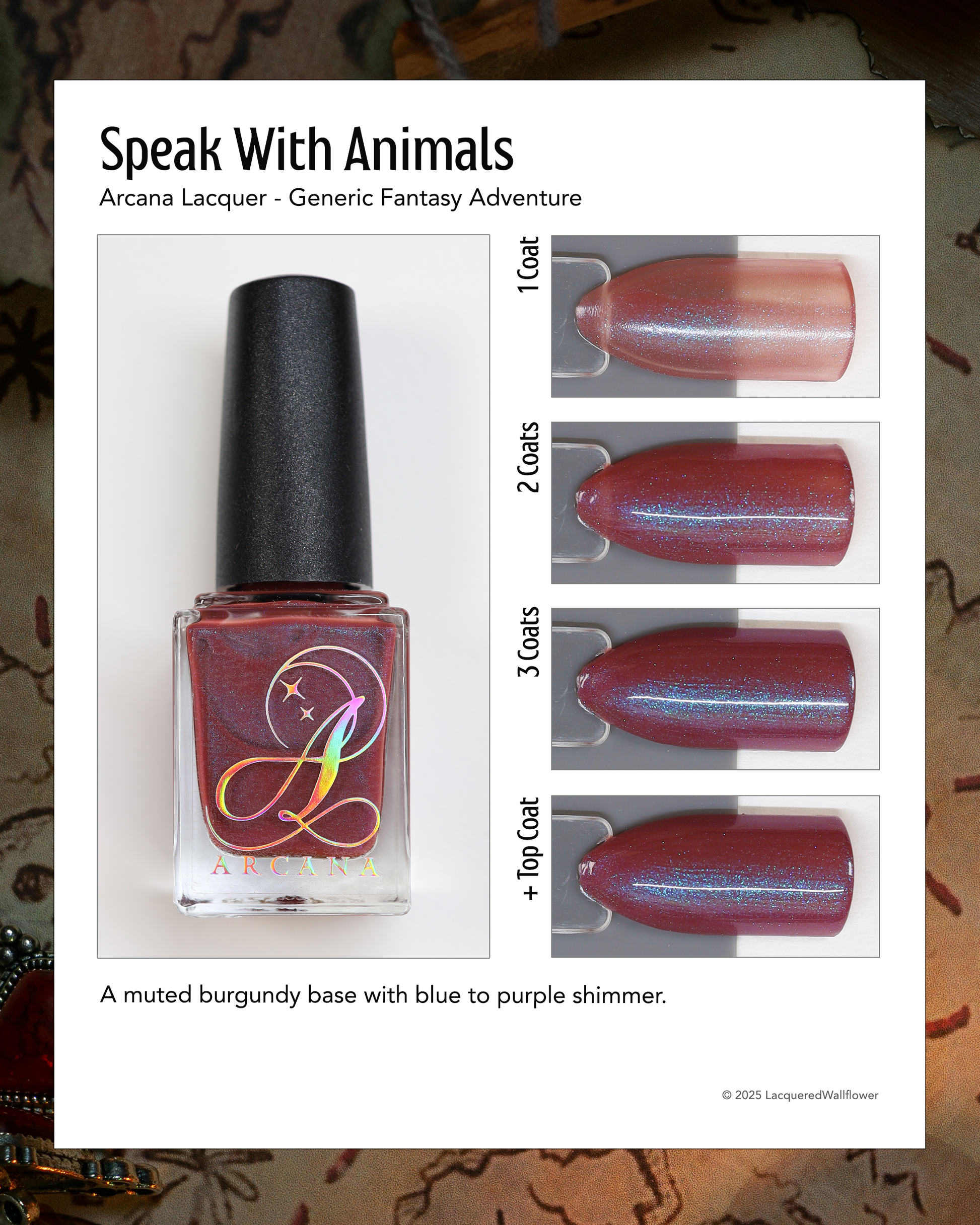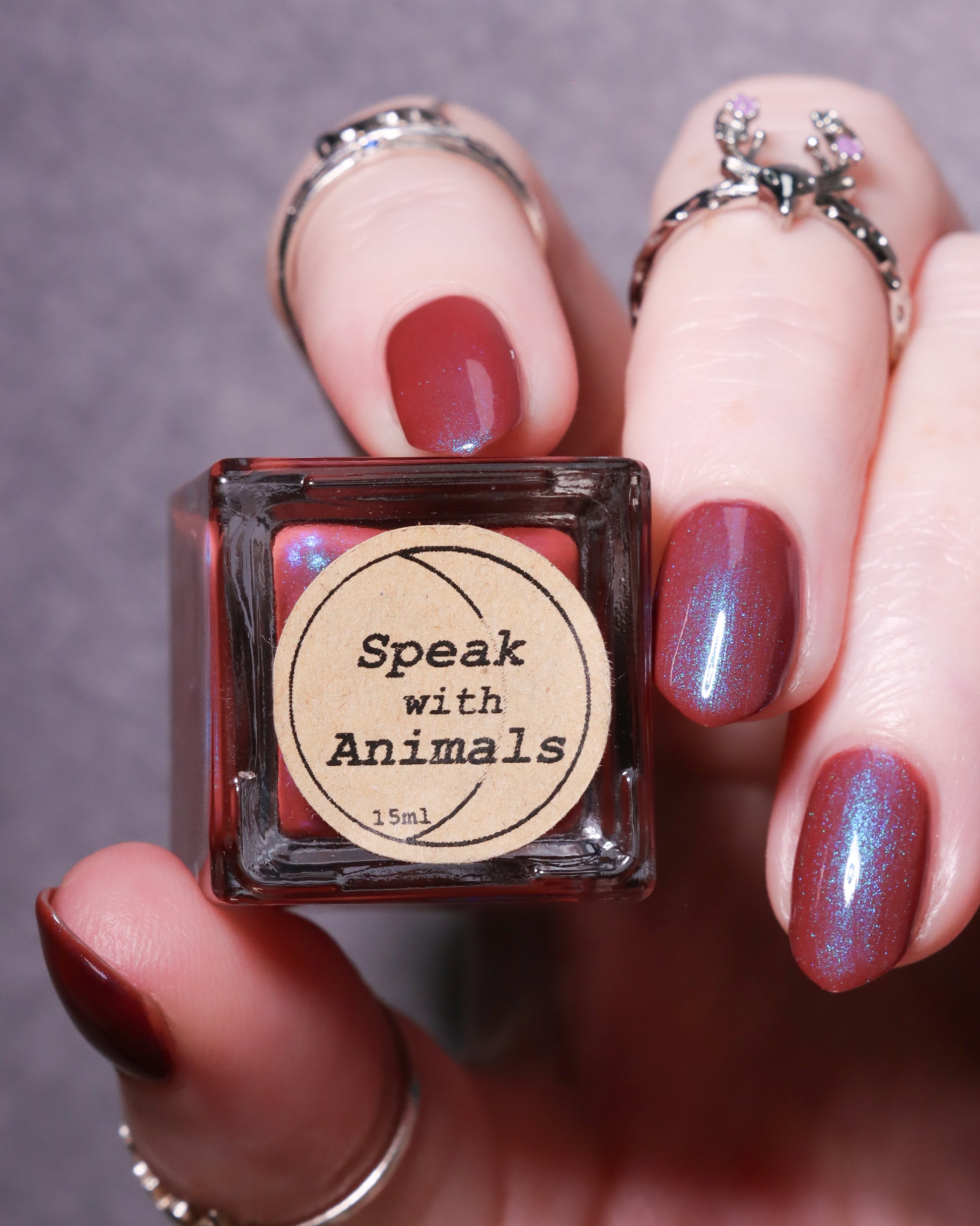 Speak with Animals has a warm burgundy base with blue to purple shimmer!
