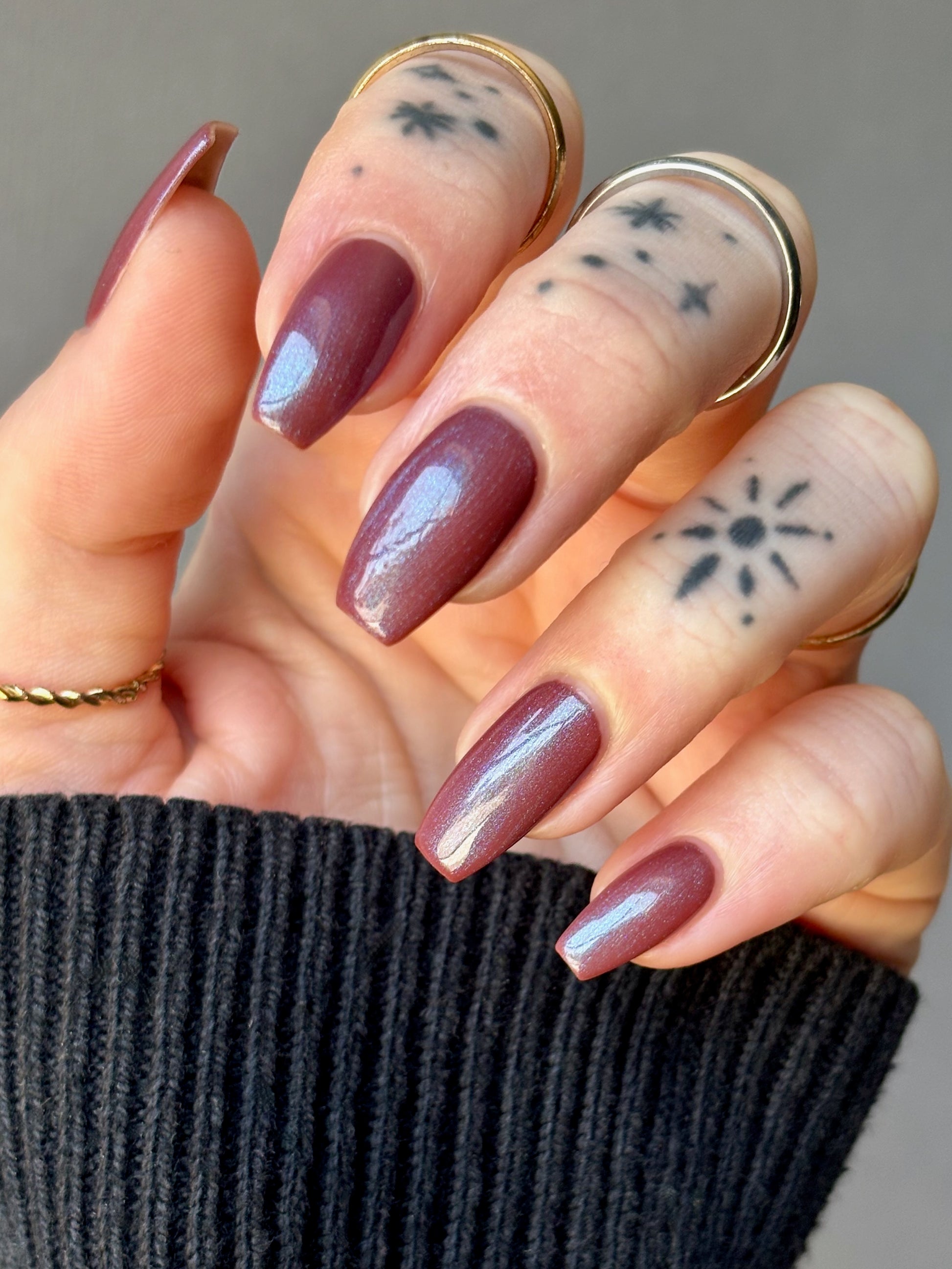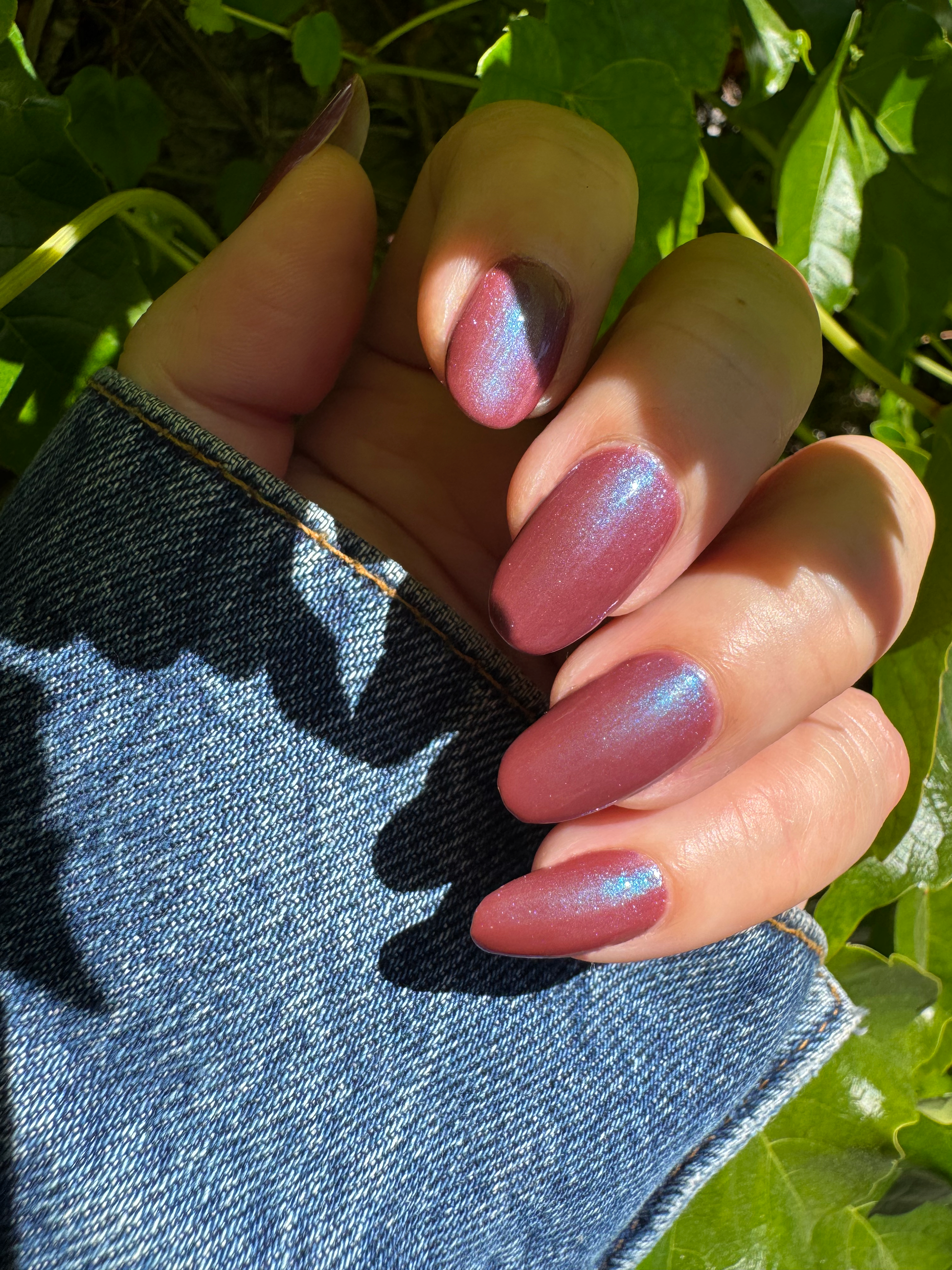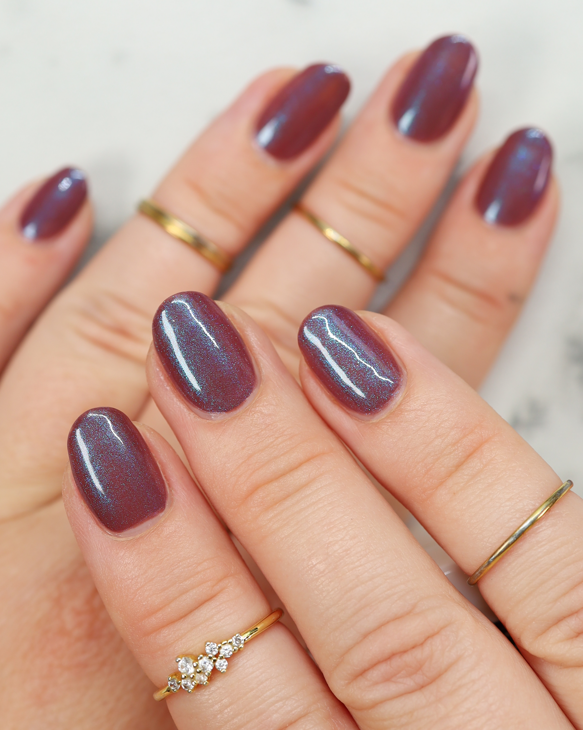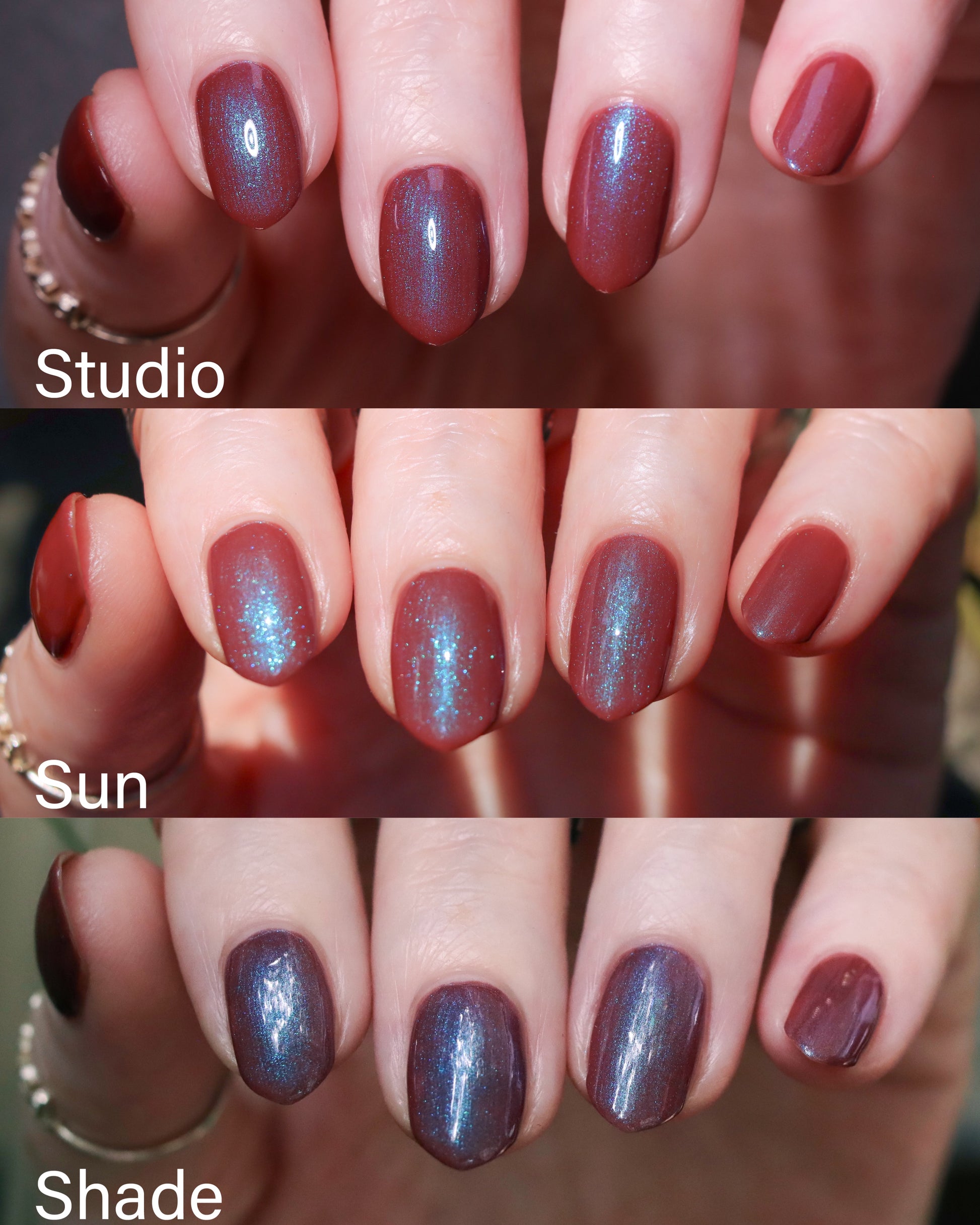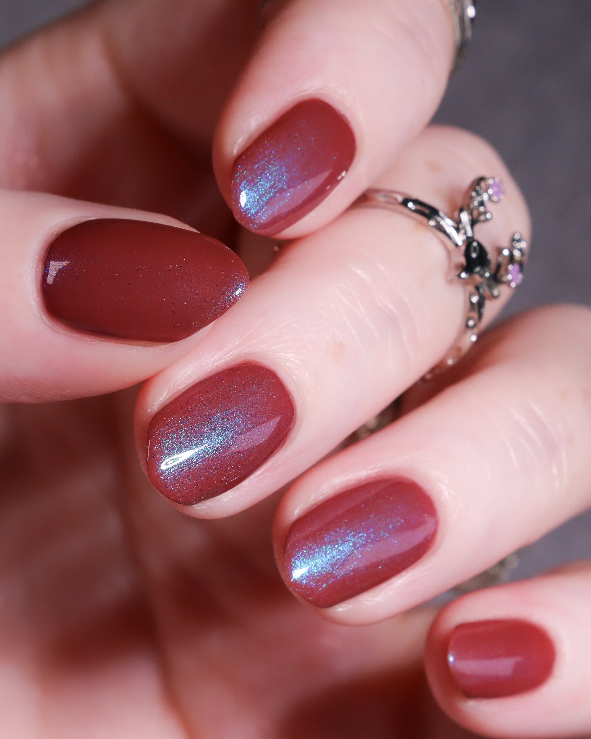 Speak with Animals has a warm burgundy base with blue to purple shimmer!