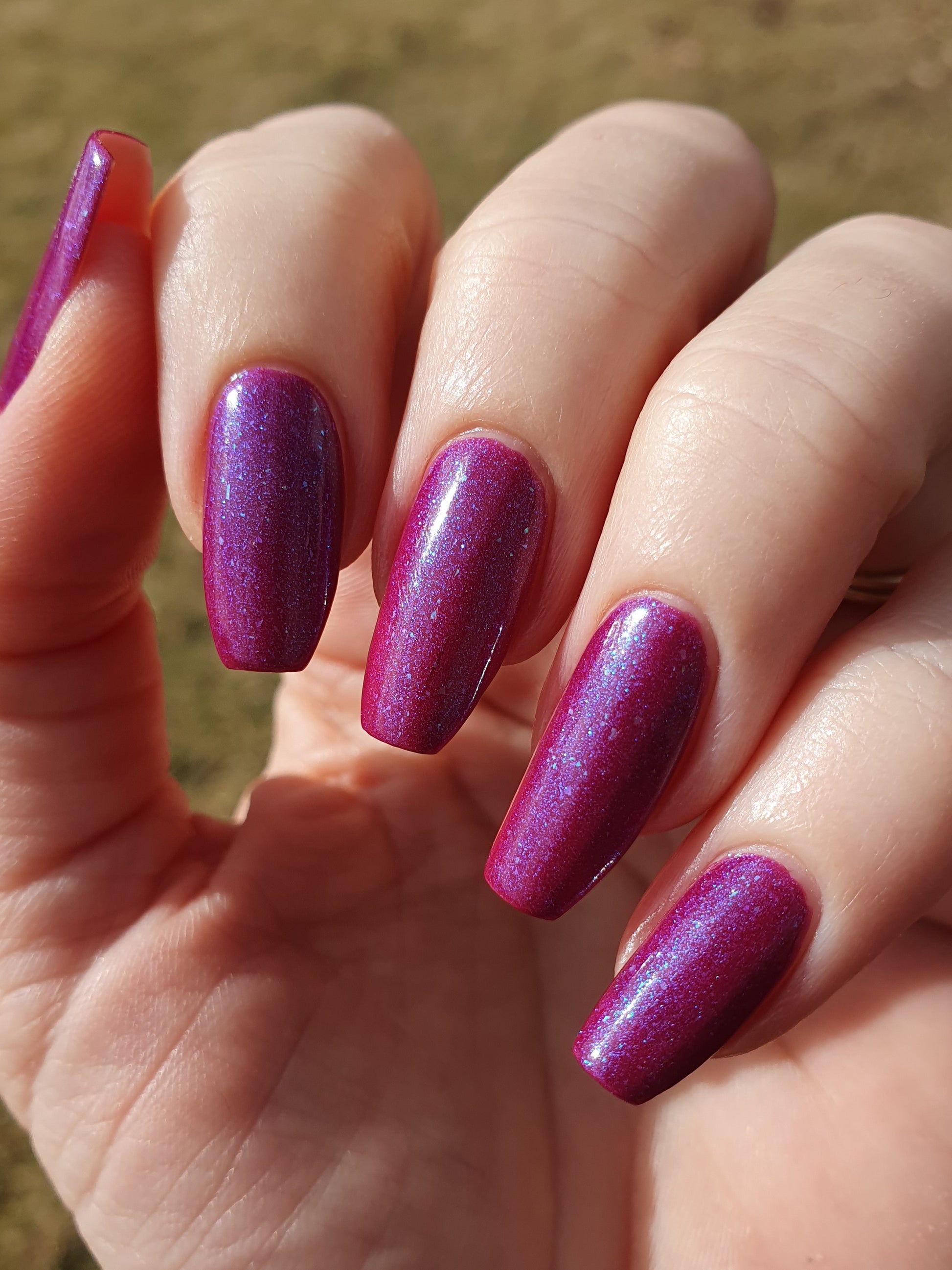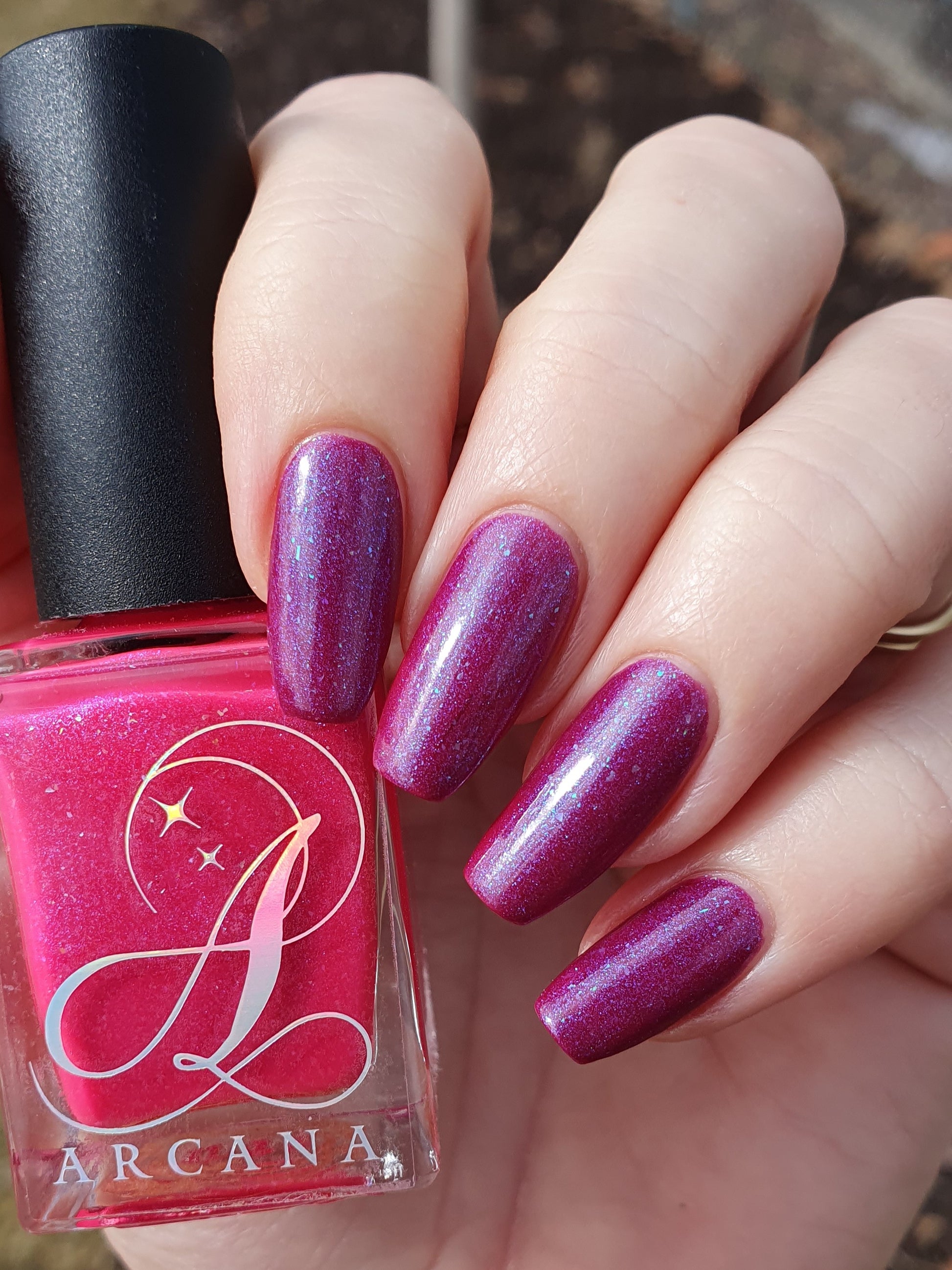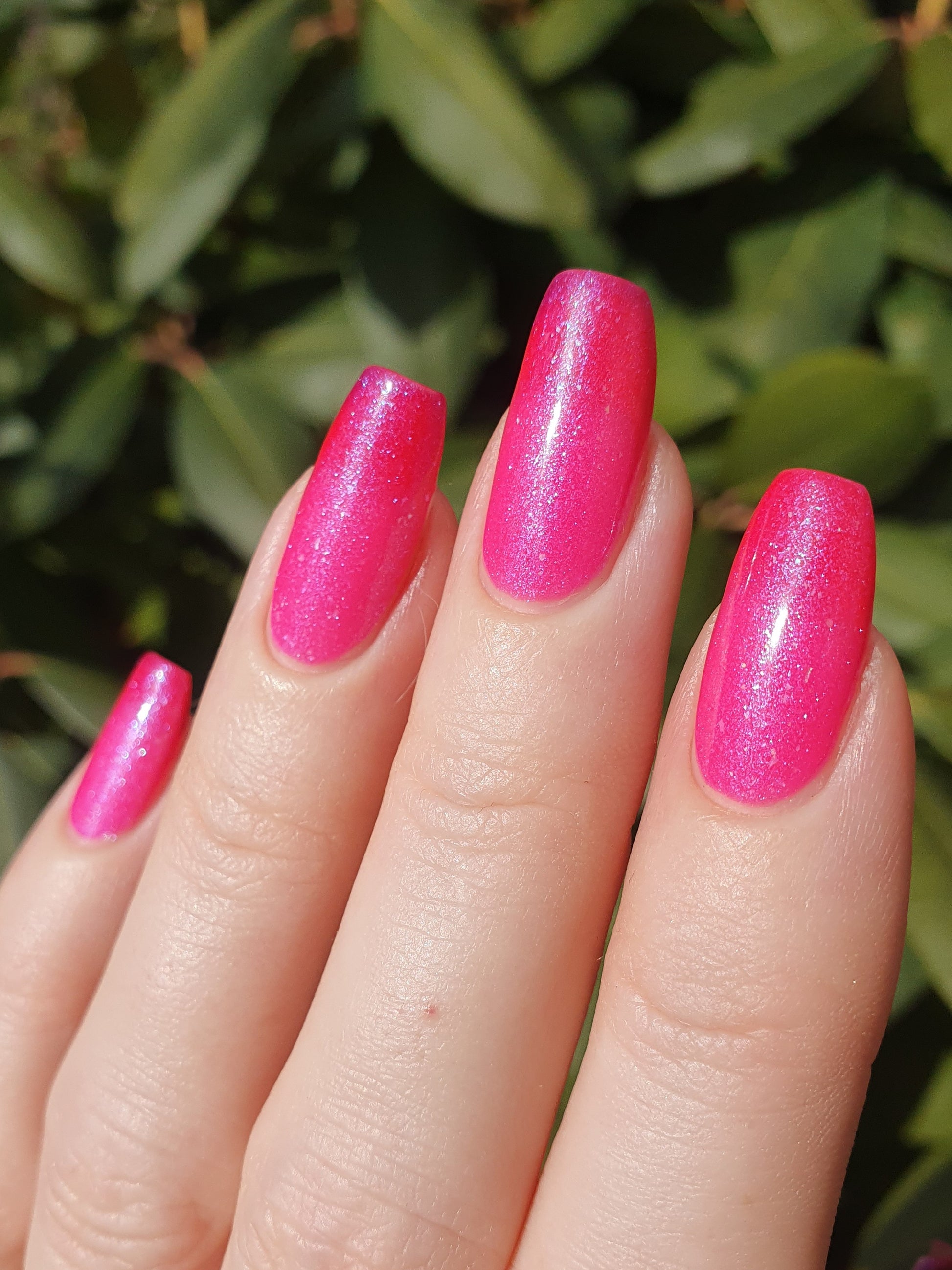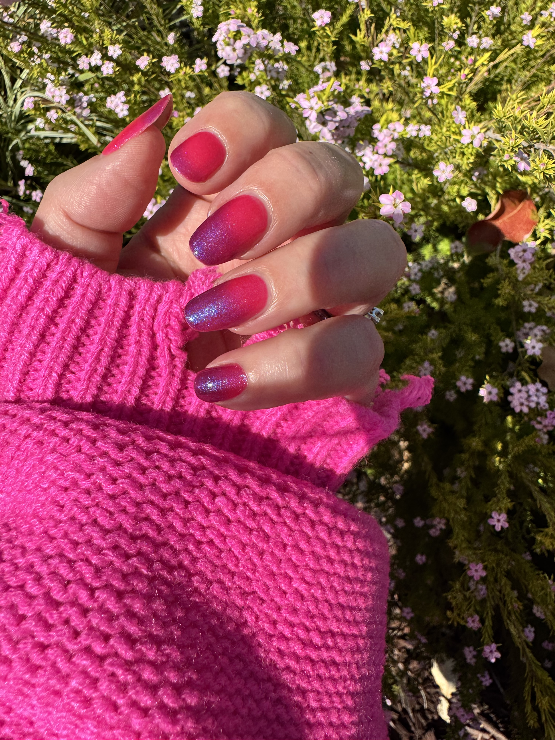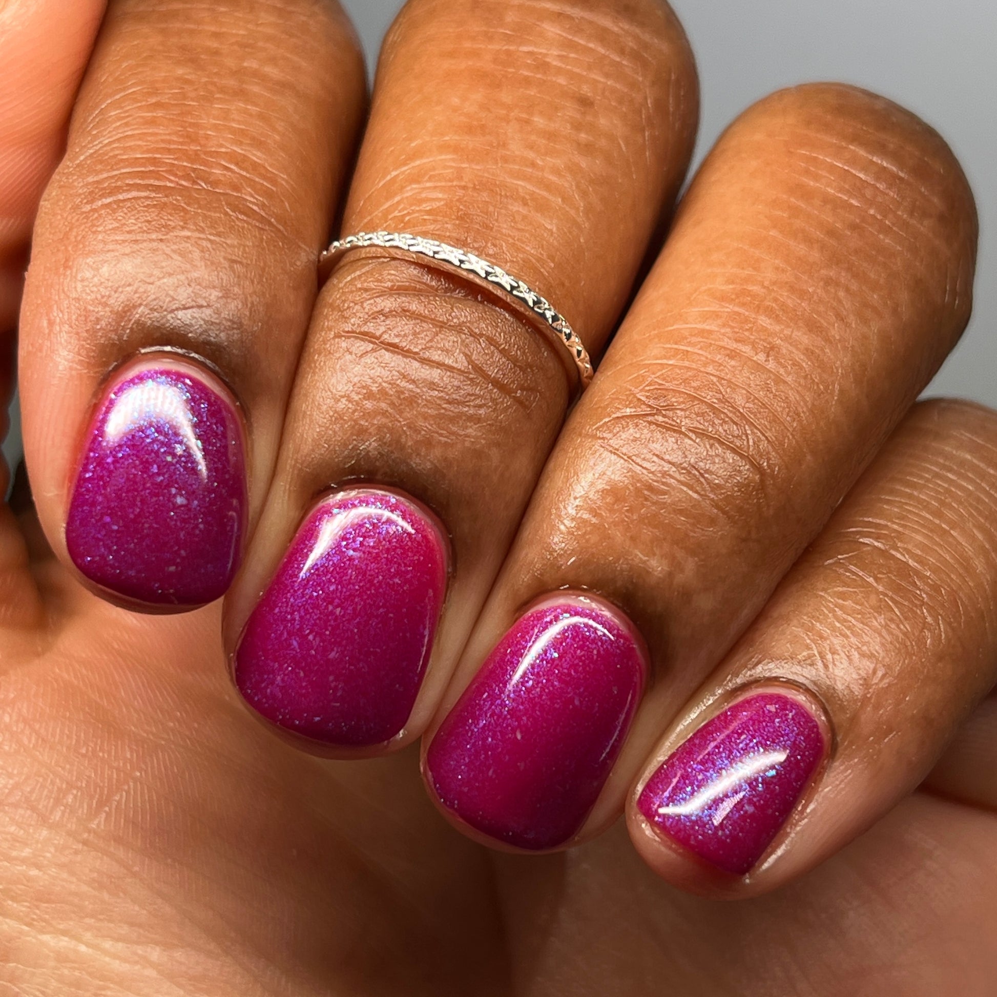 Sweeticorn is a bright pink (hot) to pinkish red (warm) to darkened magenta (cold) thermal base with blue to green shimmer and blue to green micro flakes.