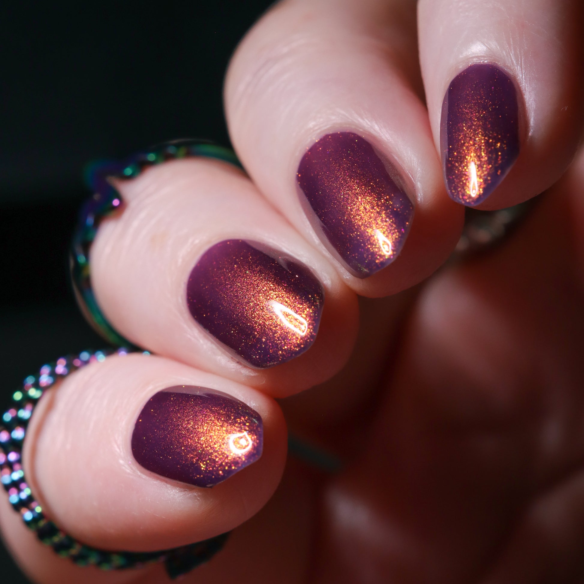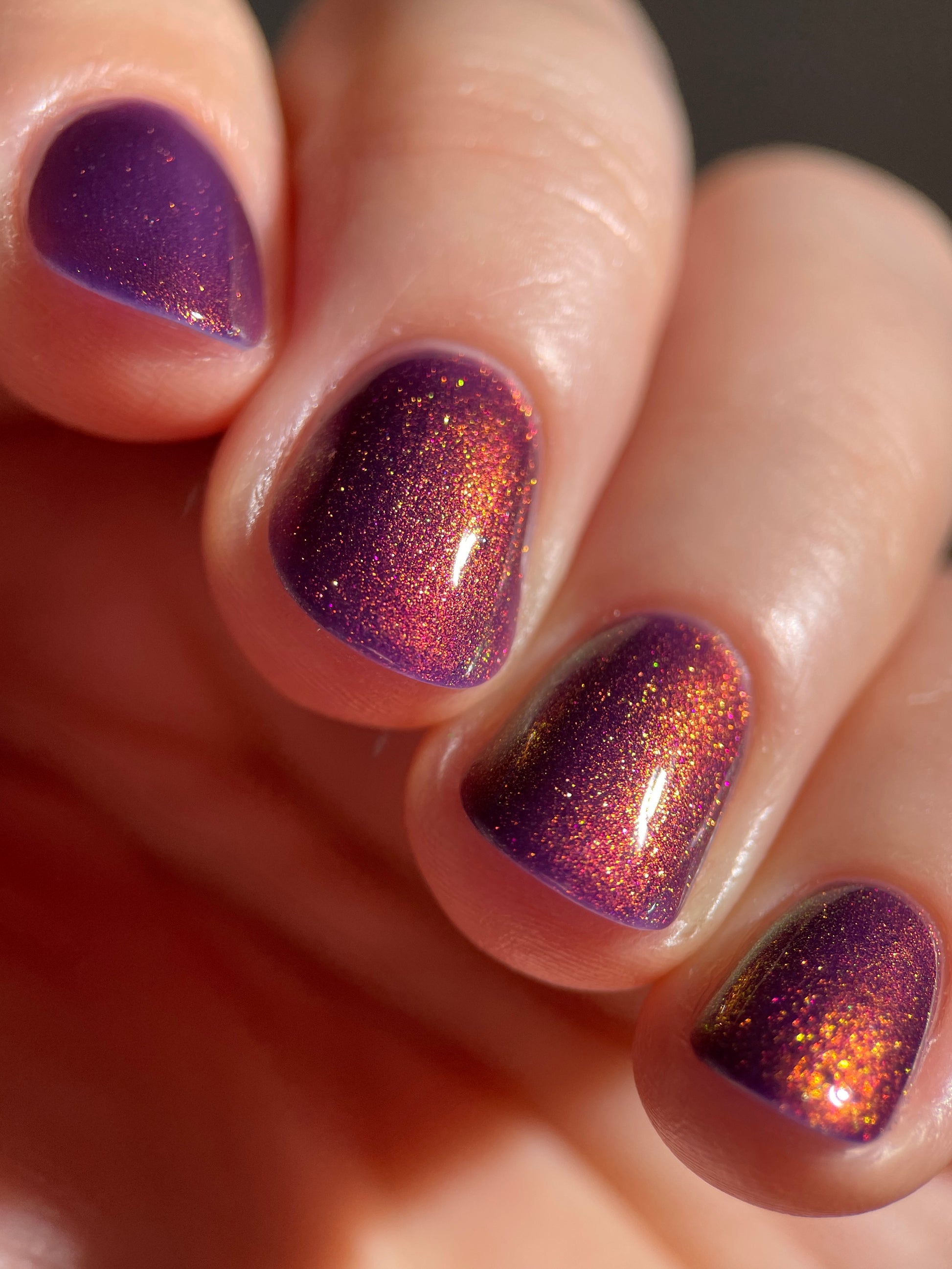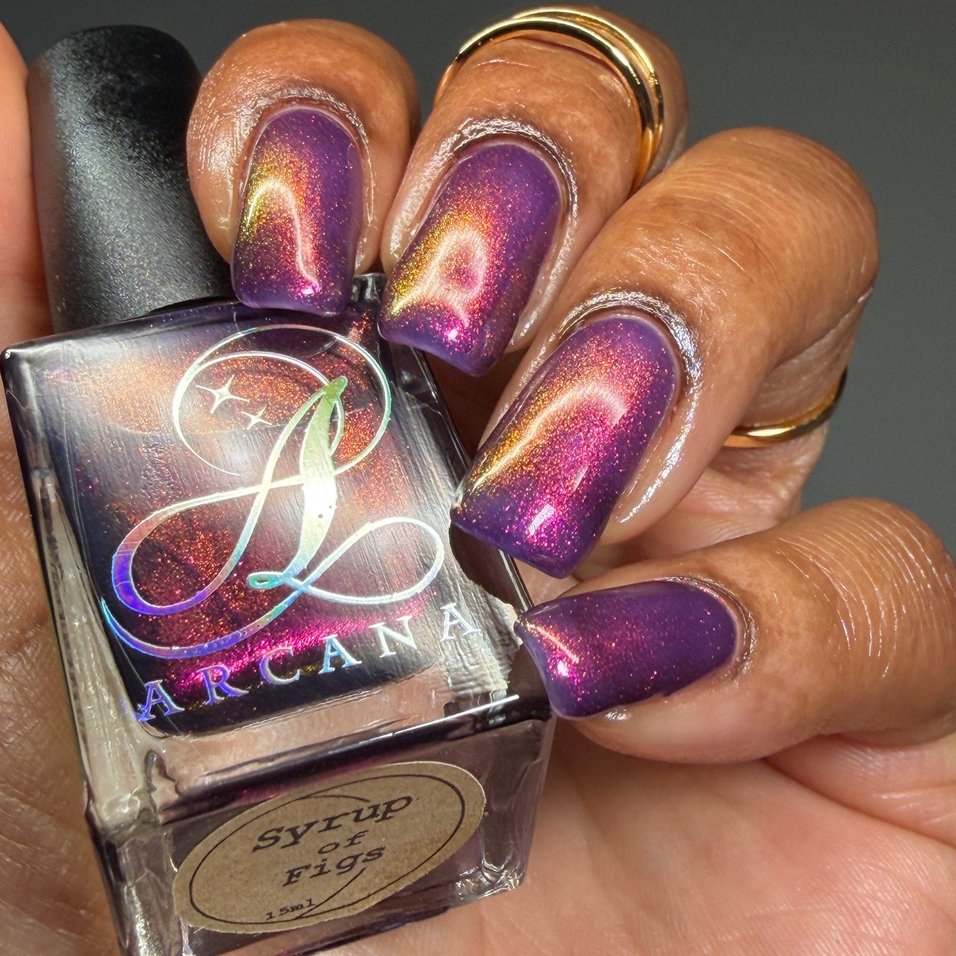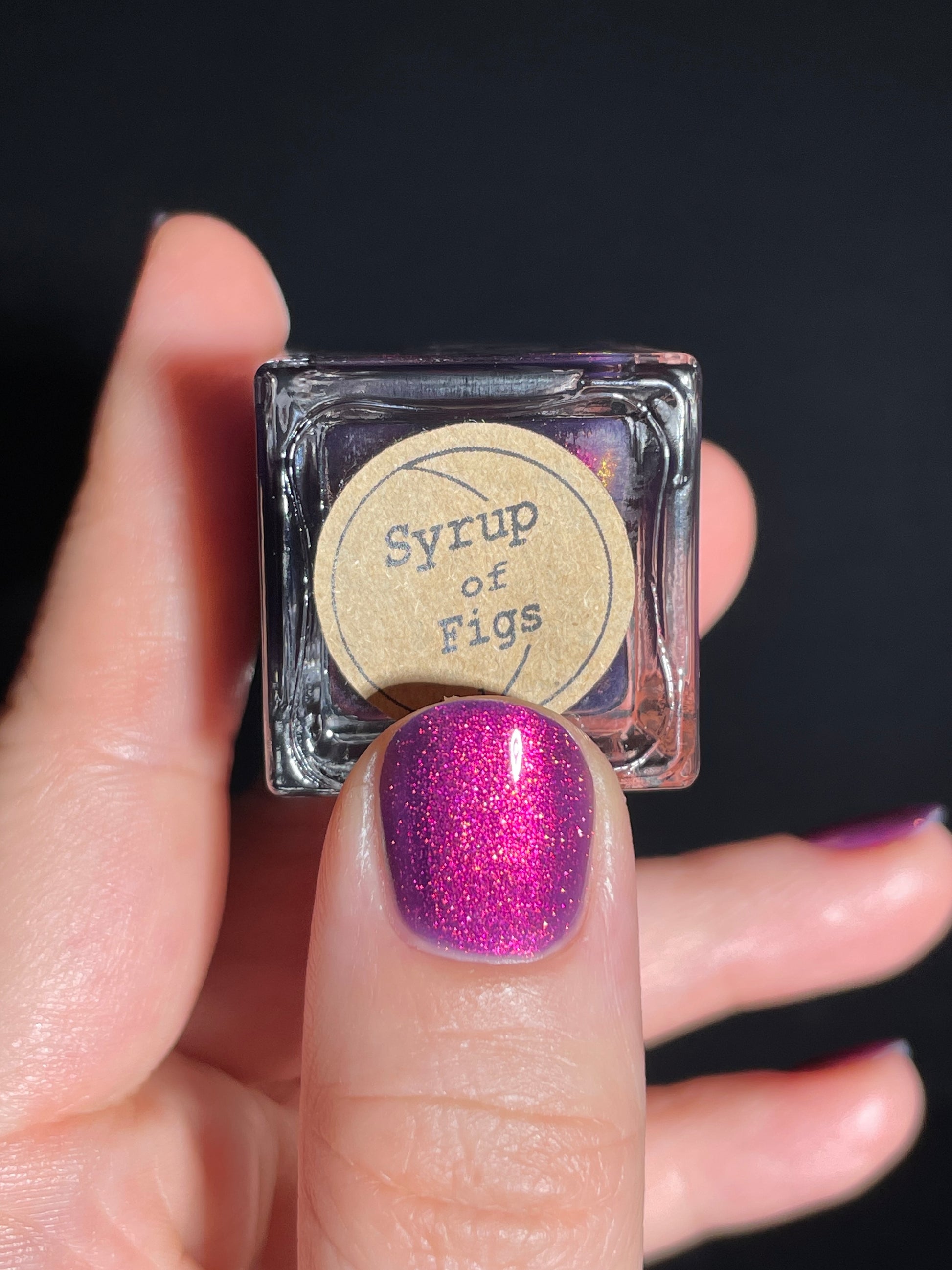 Syrup of Figs is a plum base with pink-orange-green shimmer.