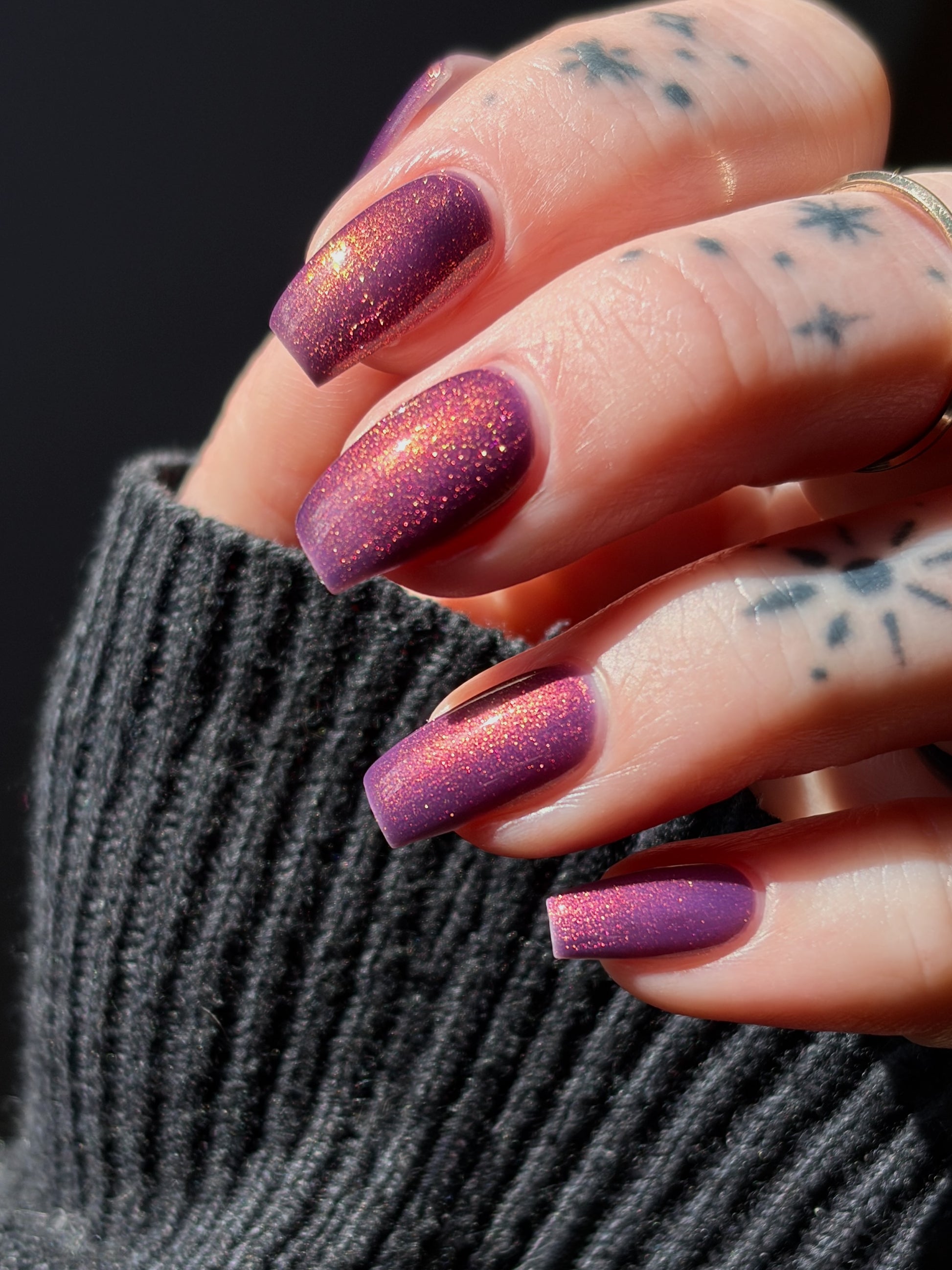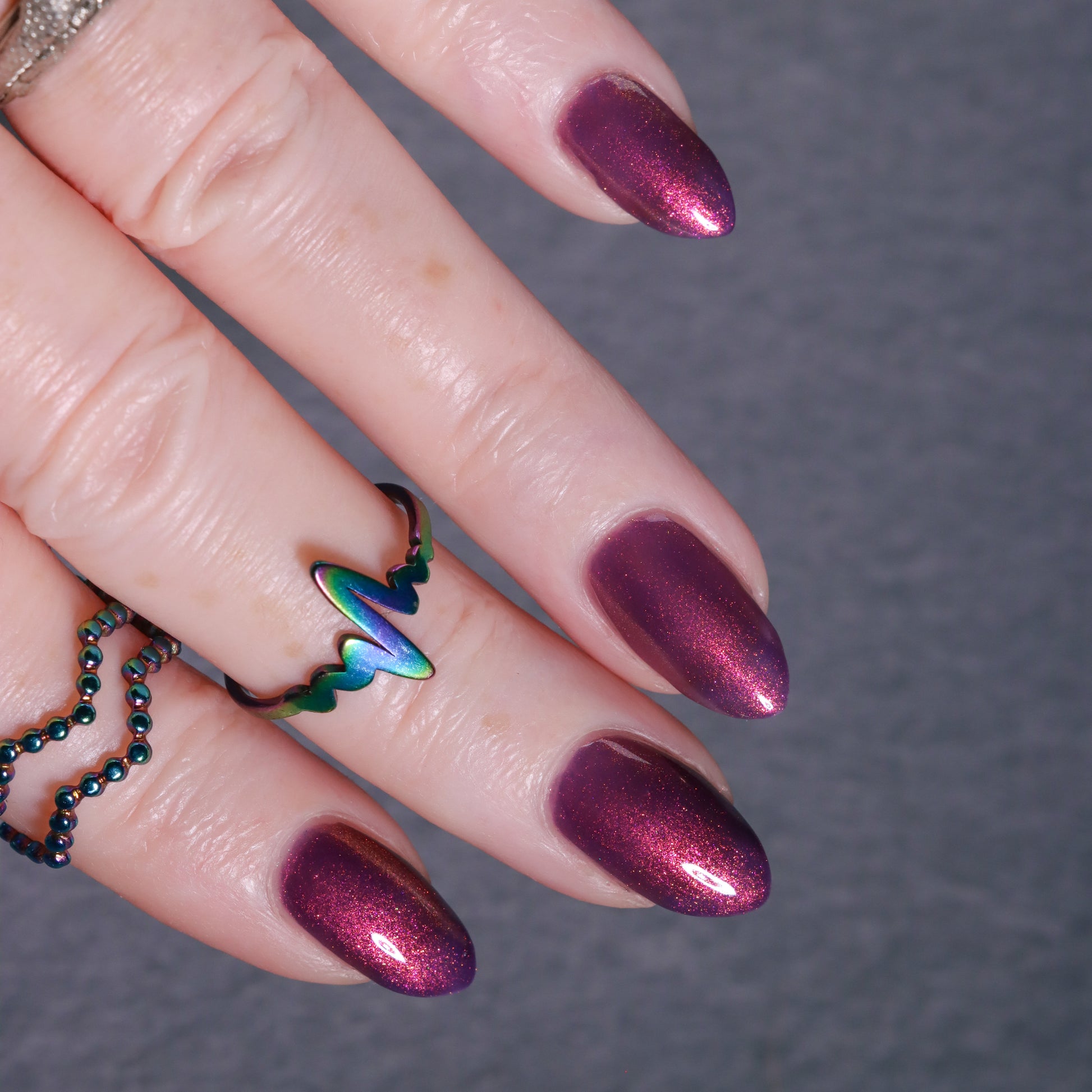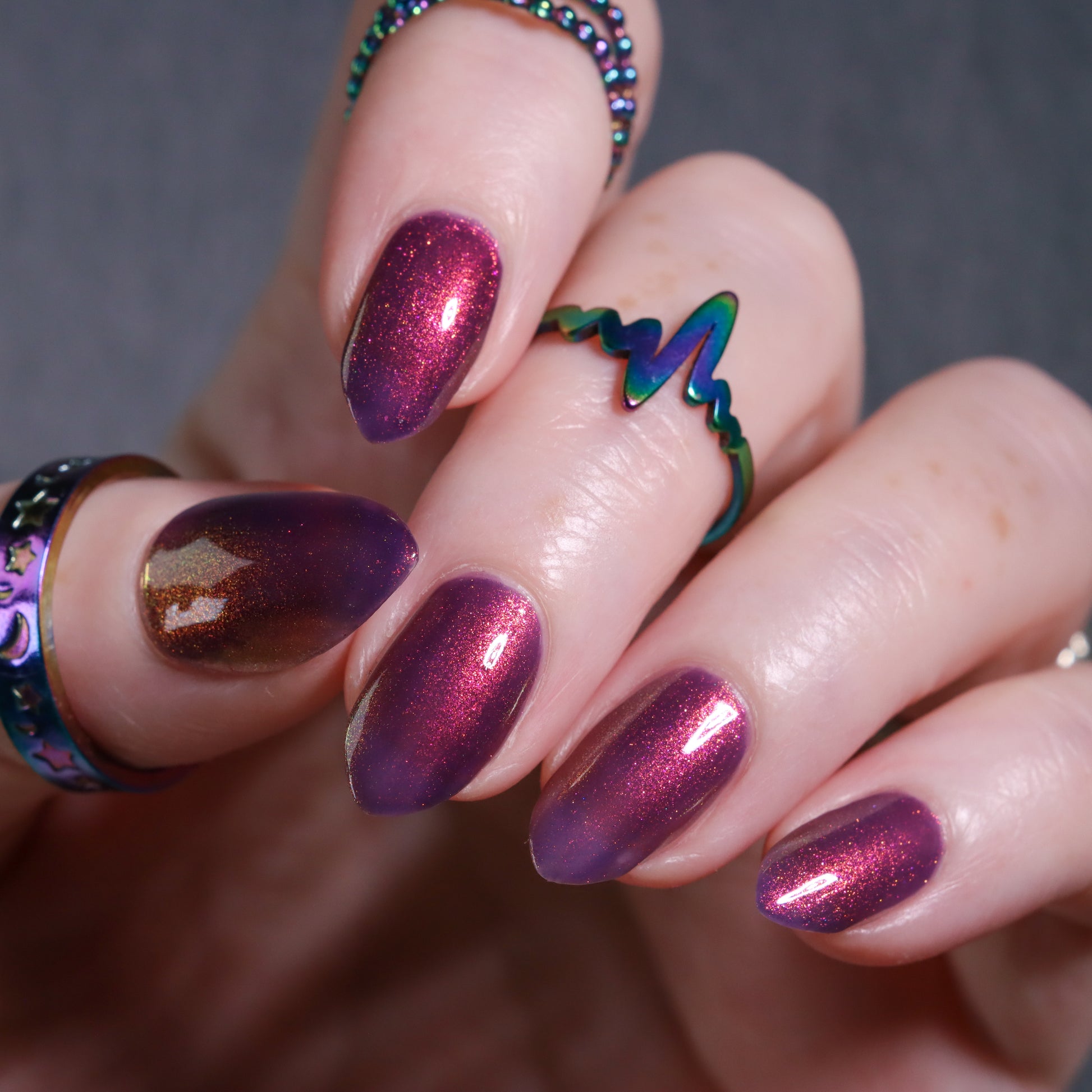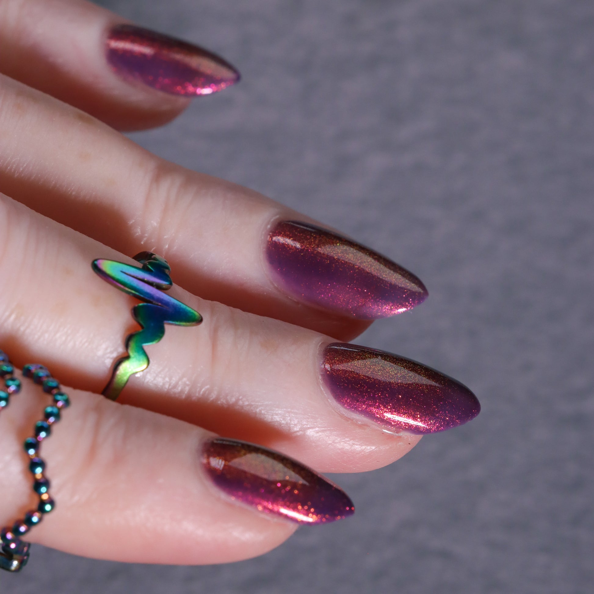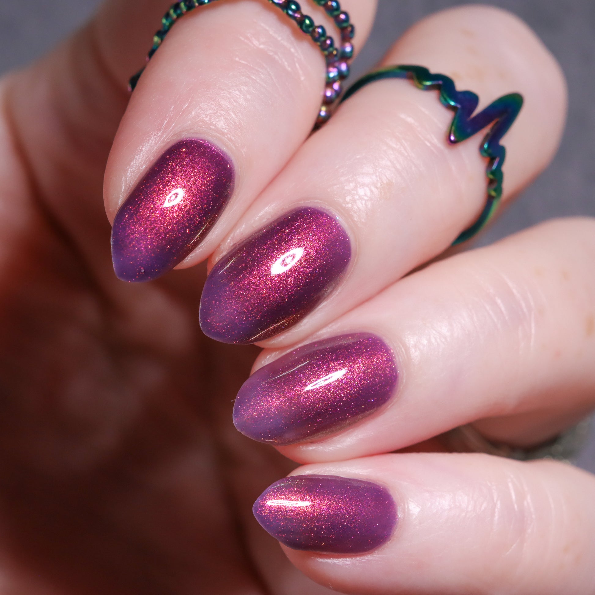 Syrup of Figs is a plum base with pink-orange-green shimmer.