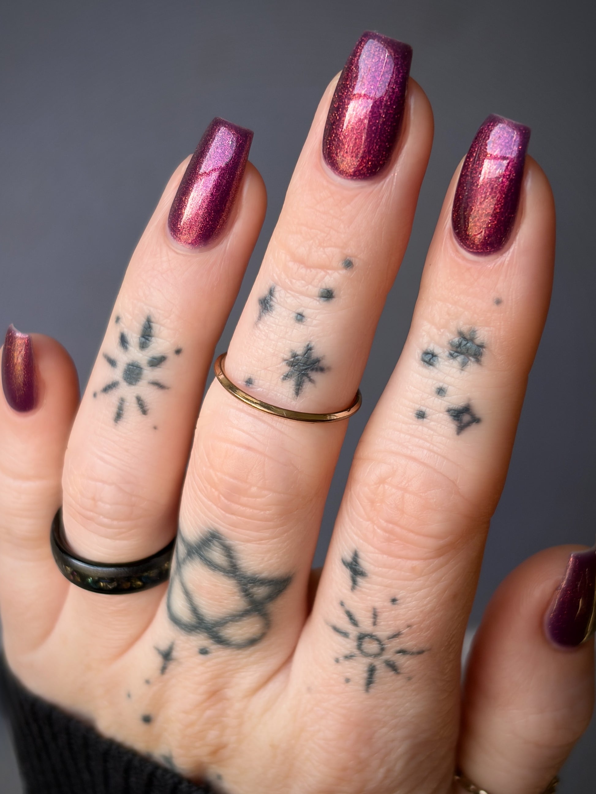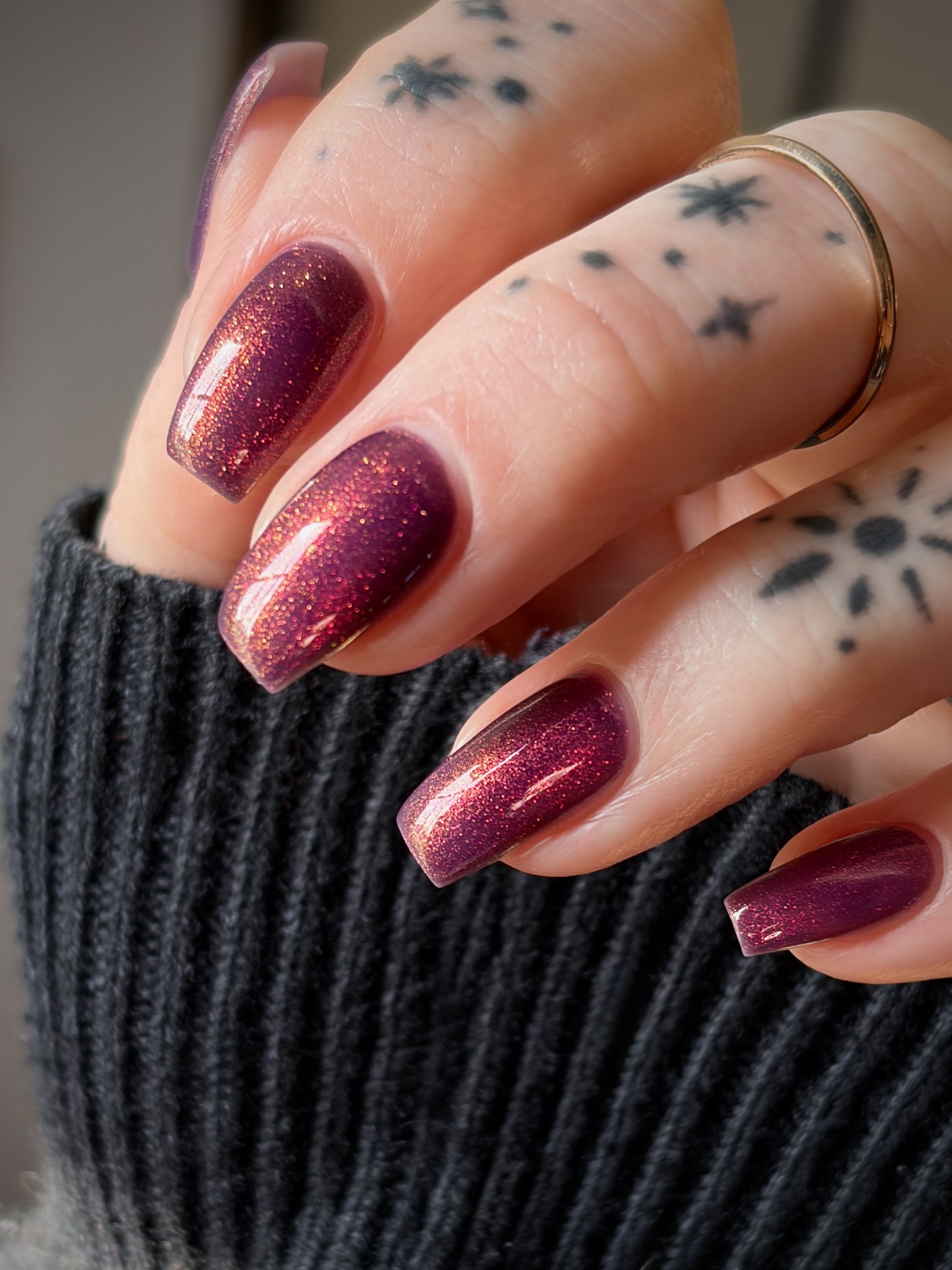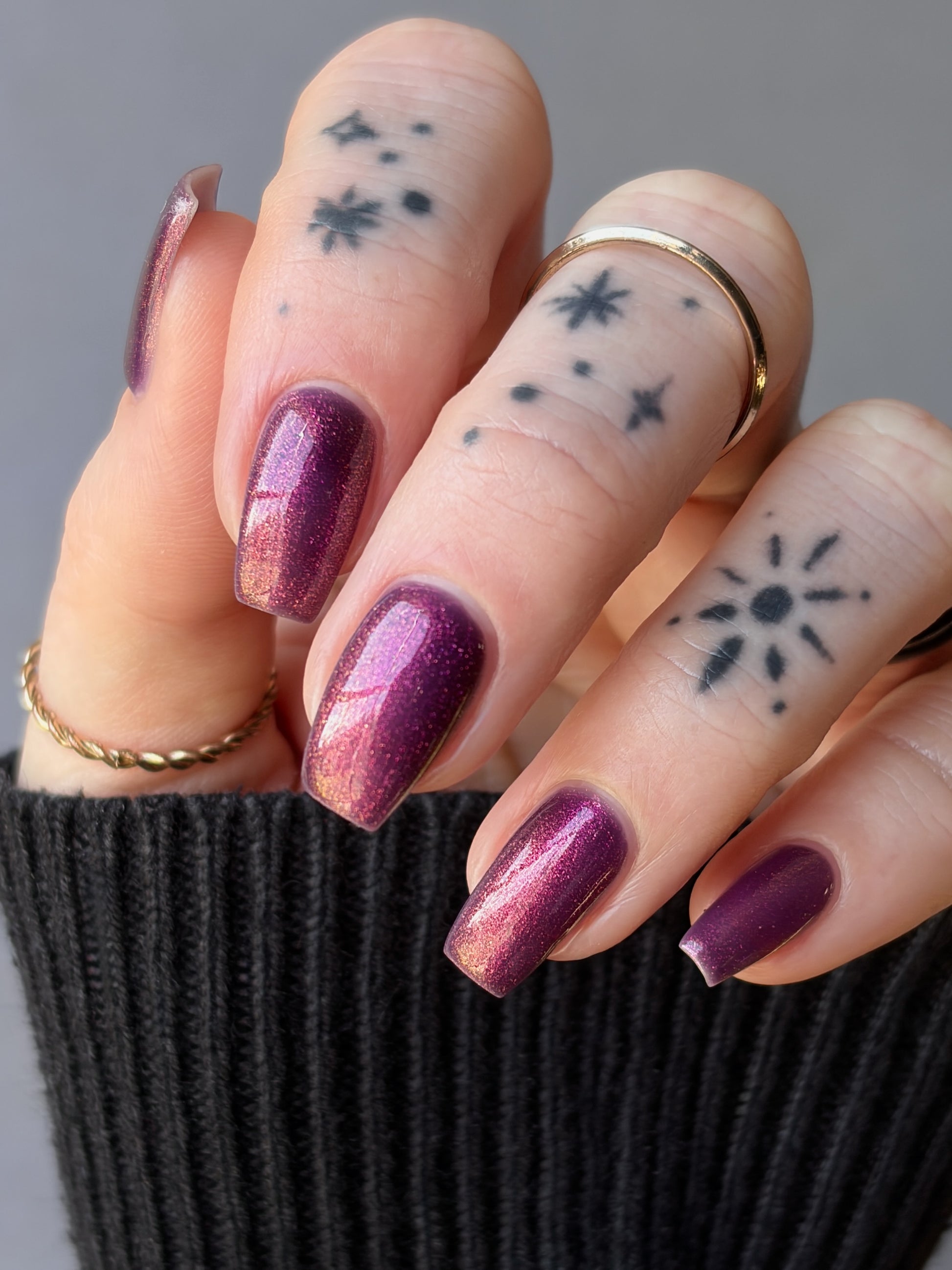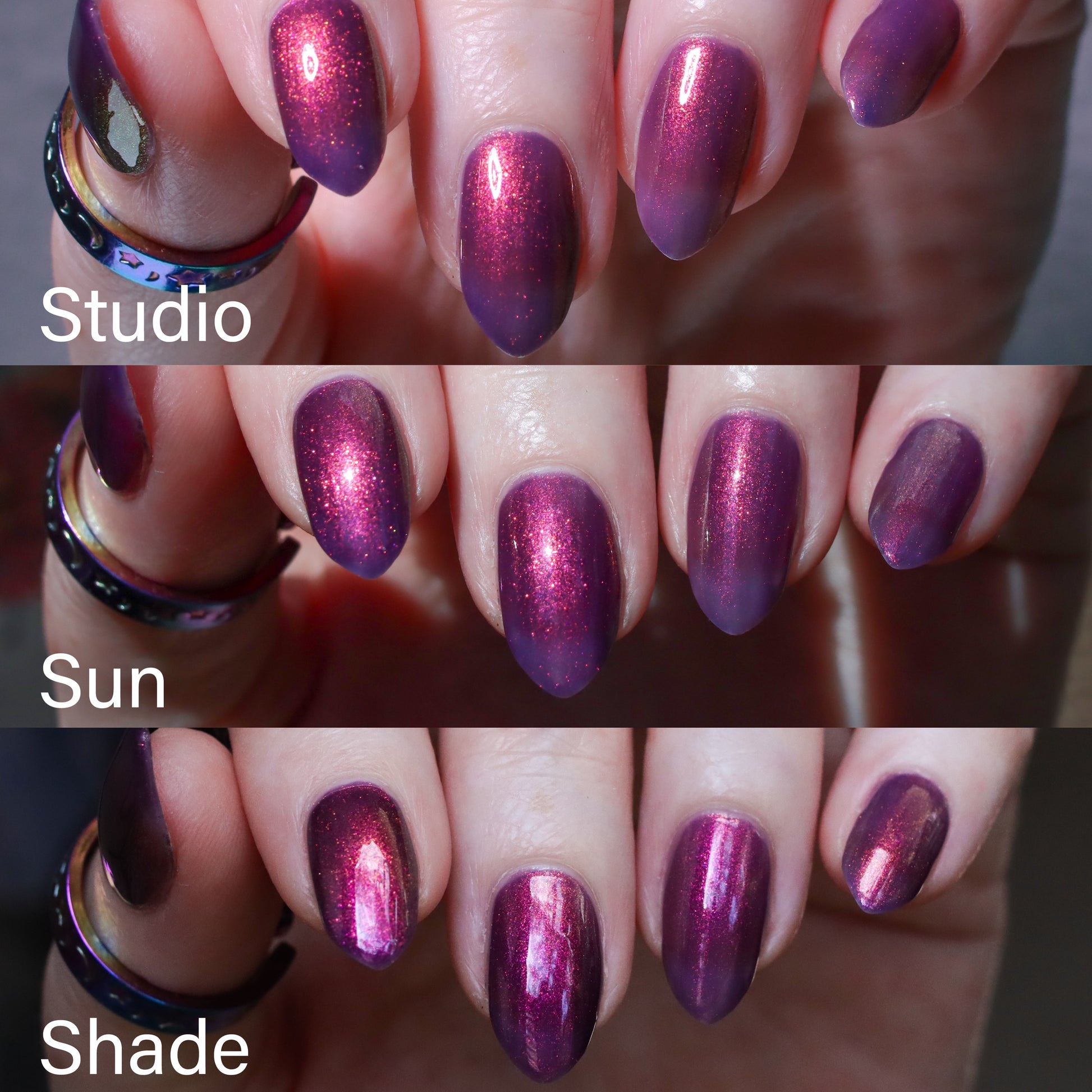 Syrup of Figs is a plum base with pink-orange-green shimmer.