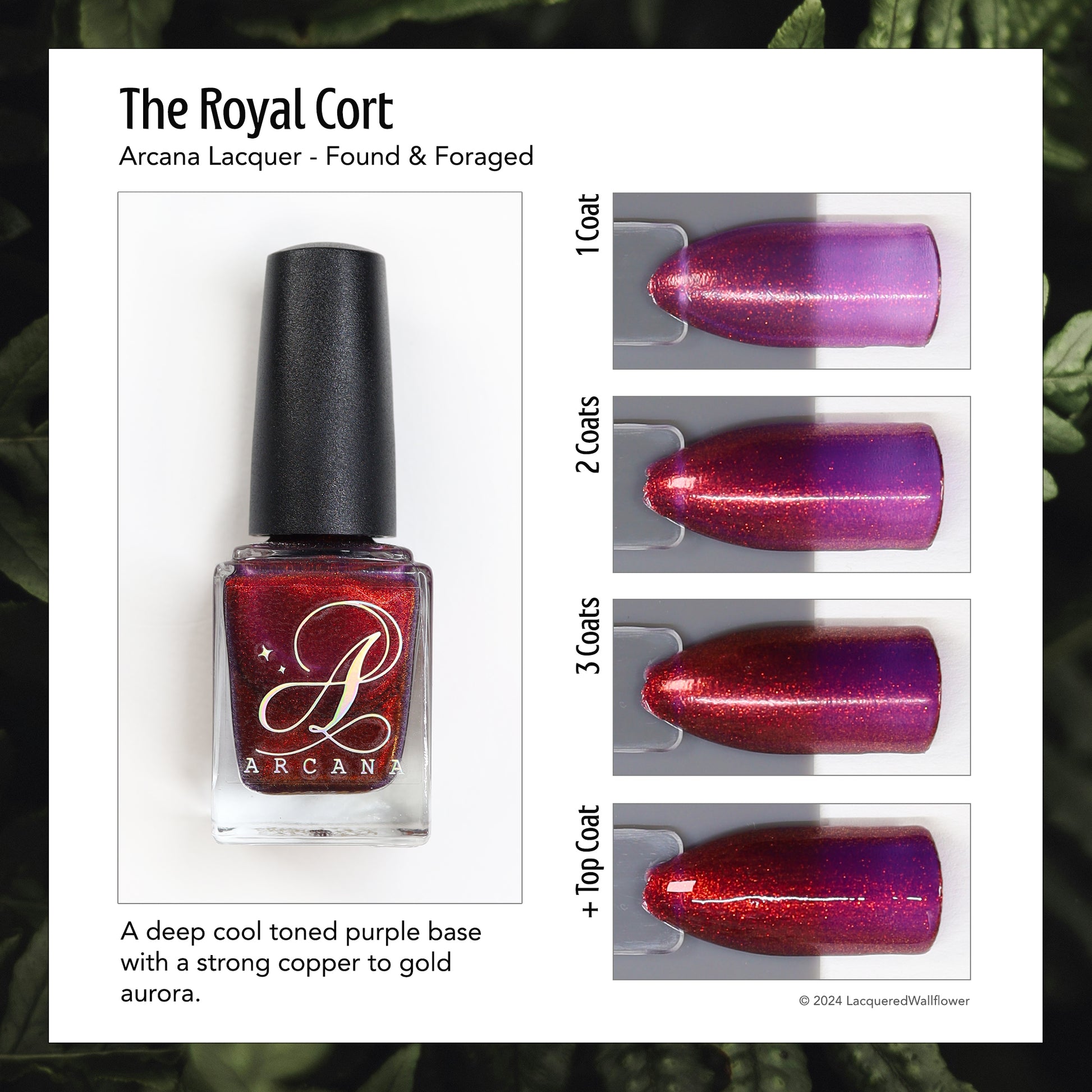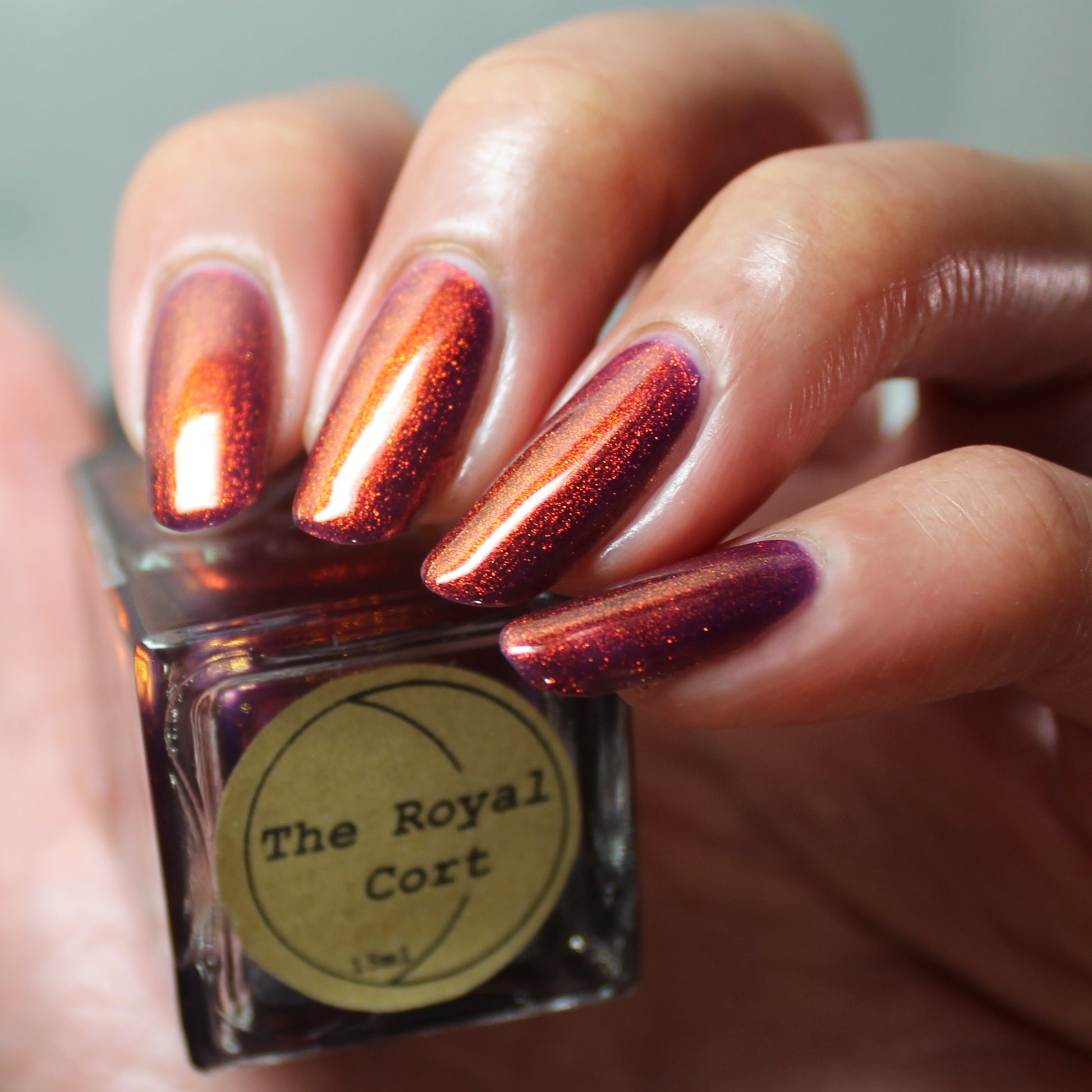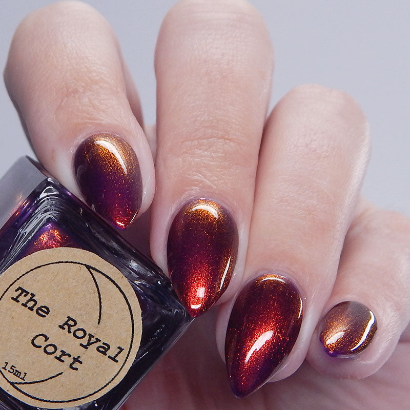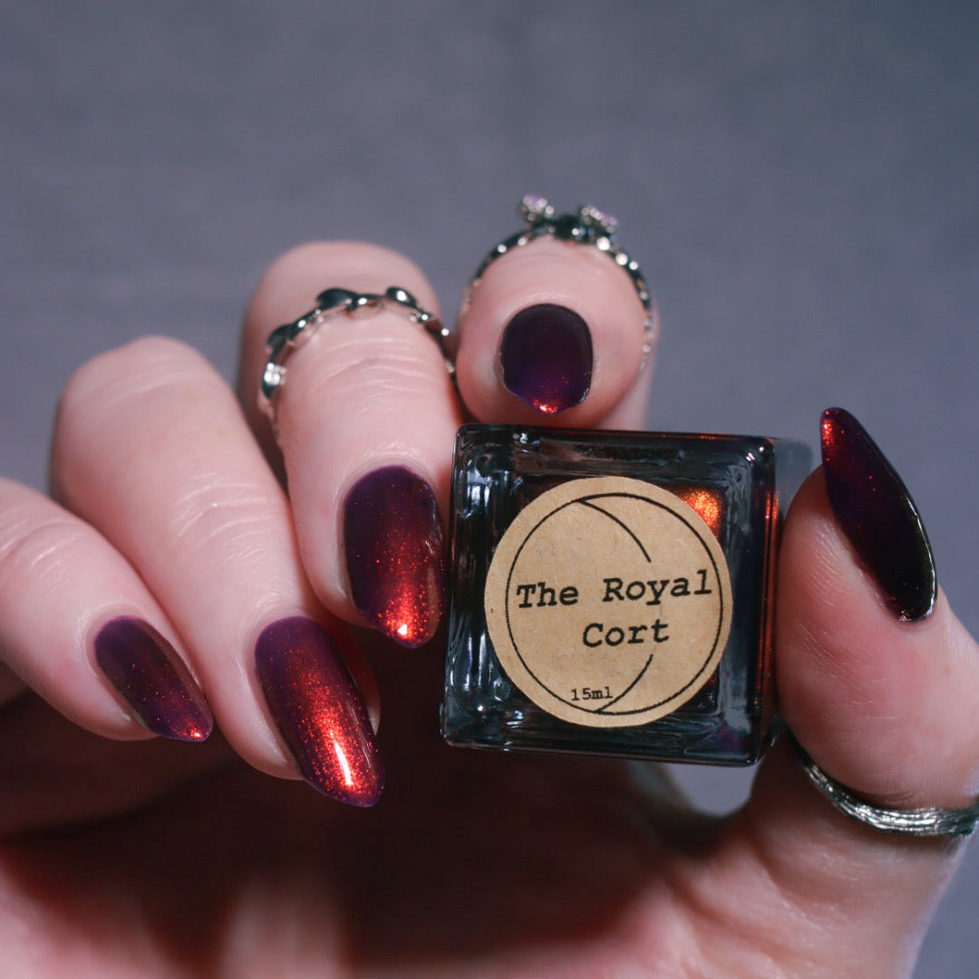 The Royal Cort is a deep cool toned purple base with a strong copper to gold aurora.🍄