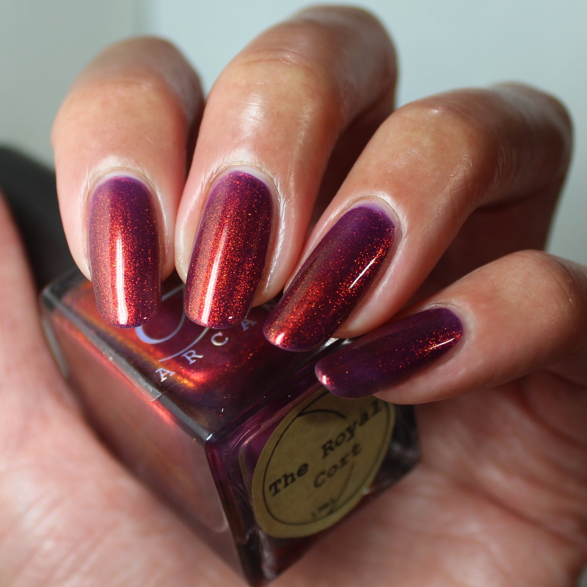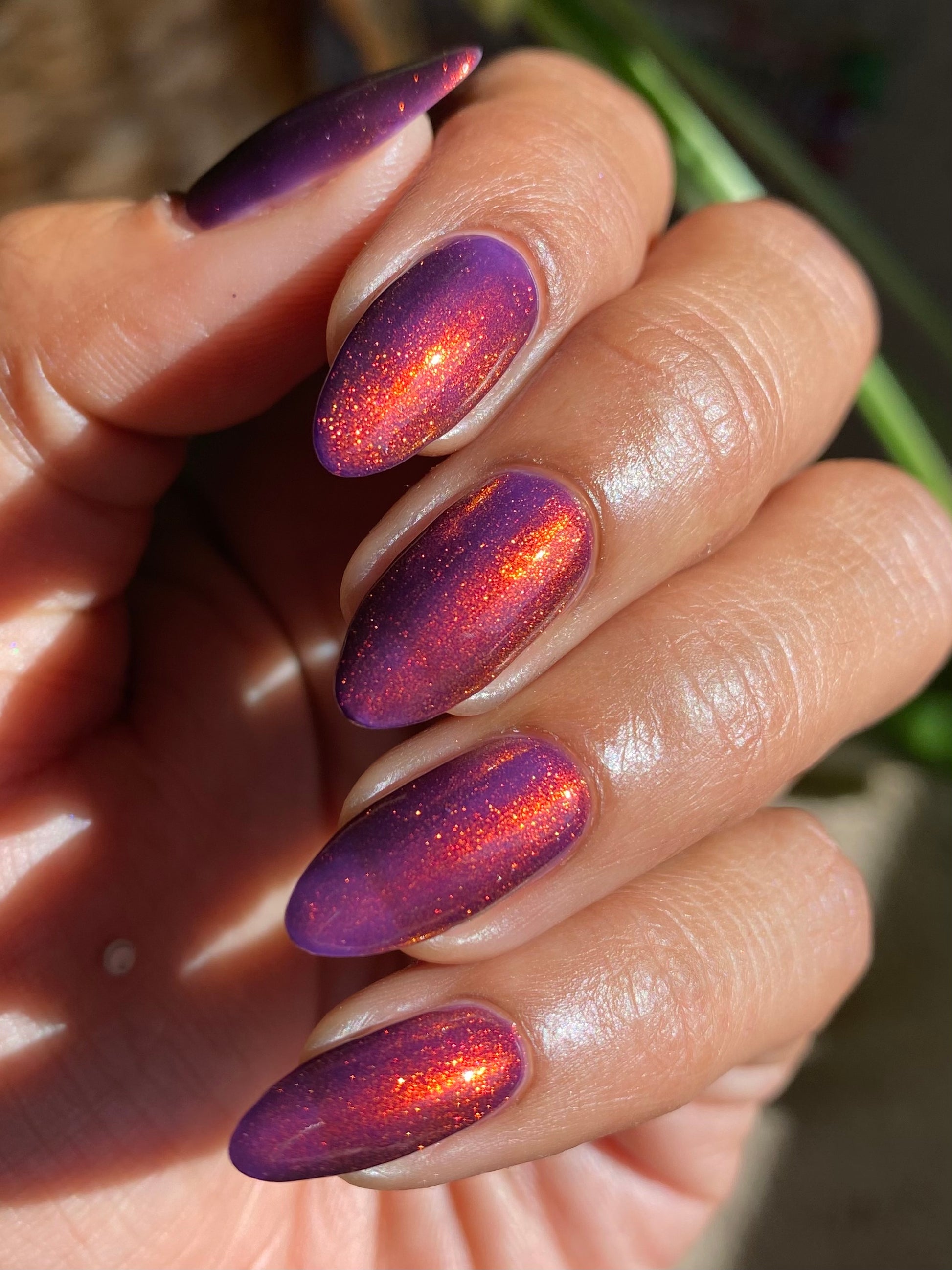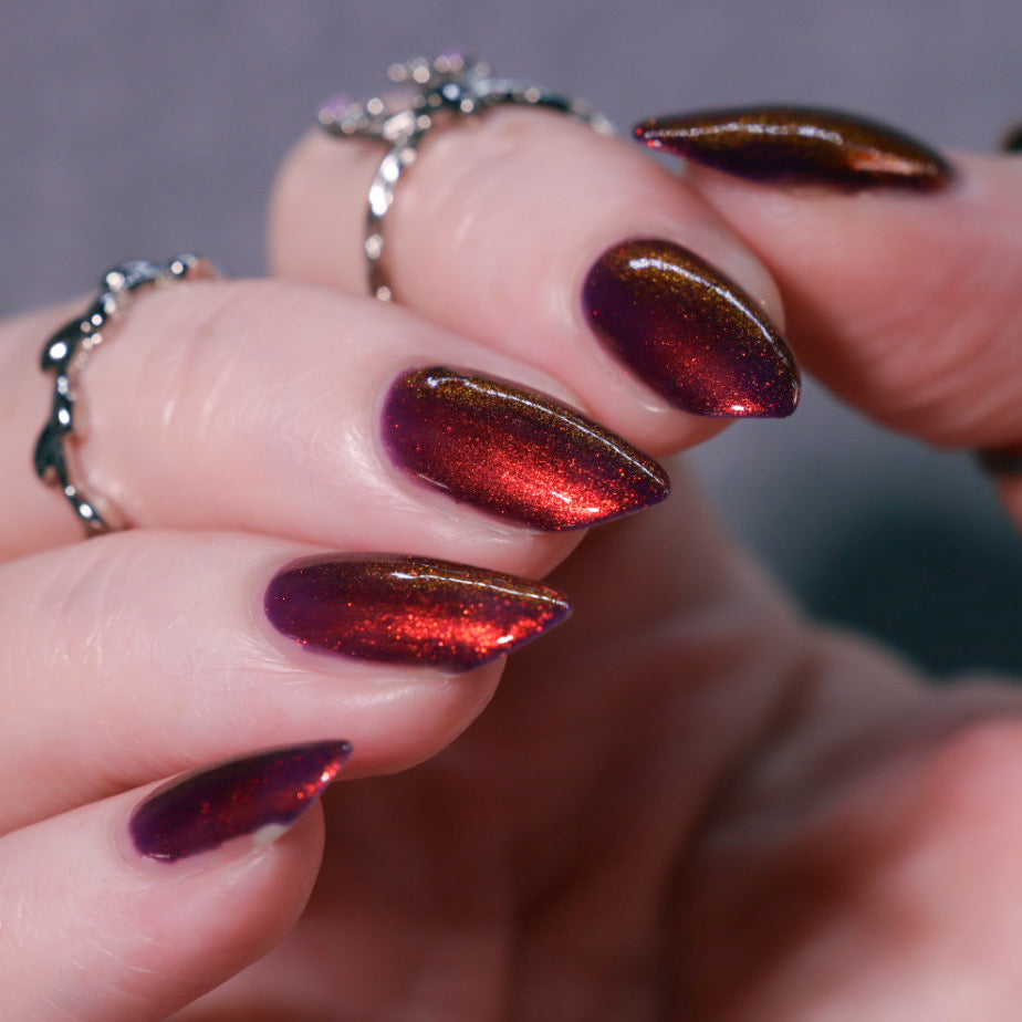 The Royal Cort is a deep cool toned purple base with a strong copper to gold aurora.🍄