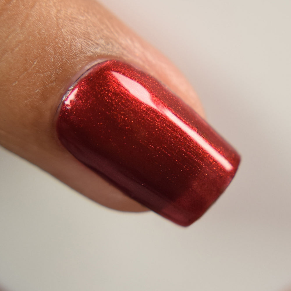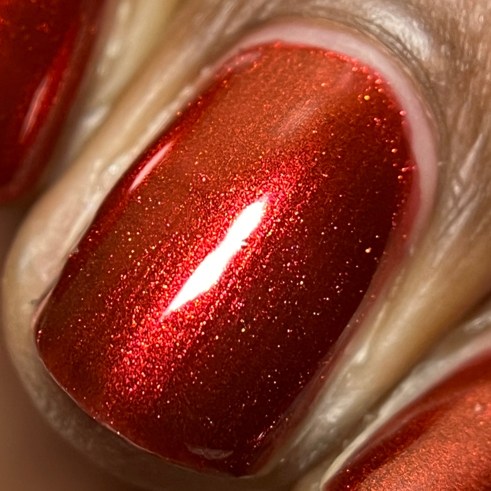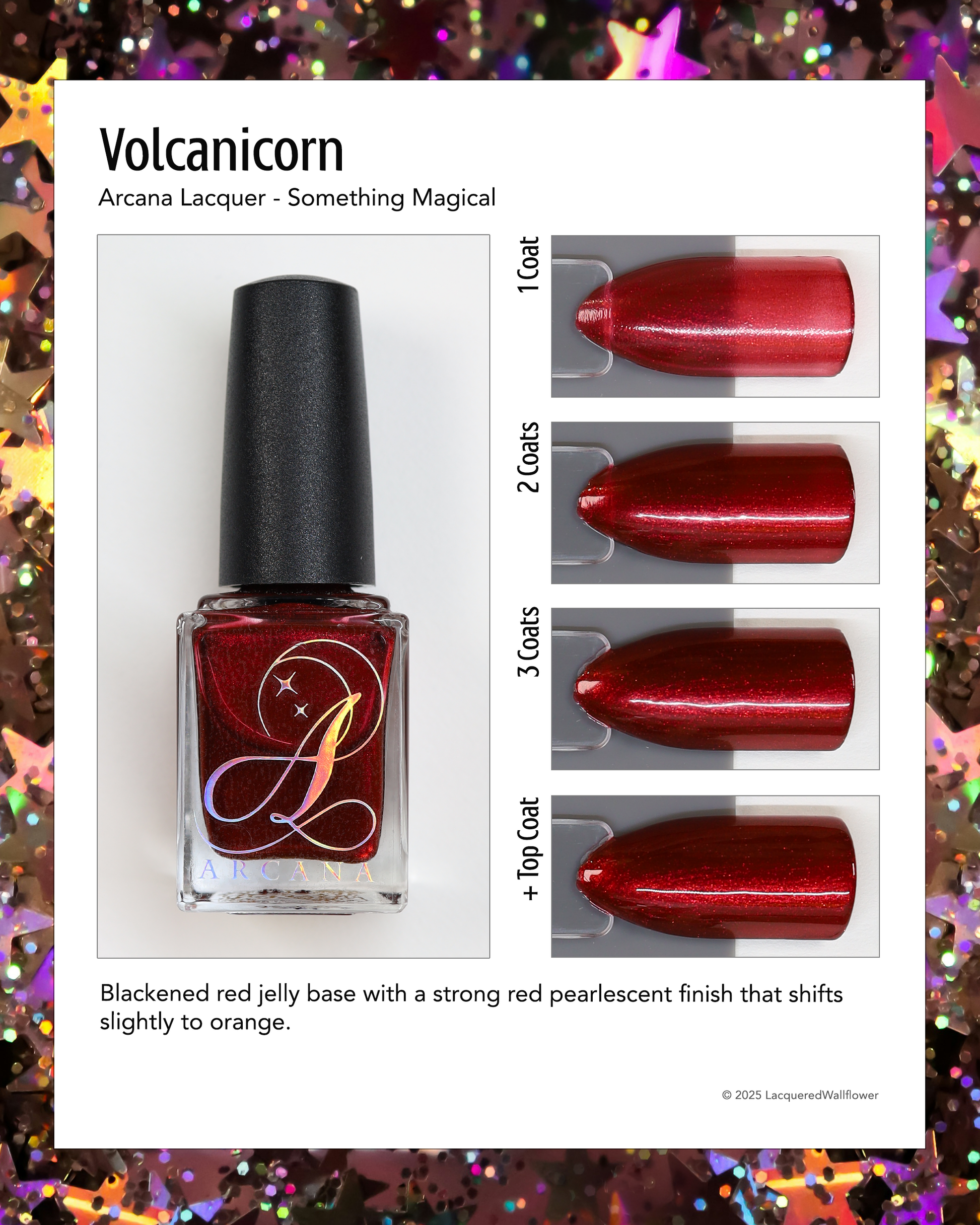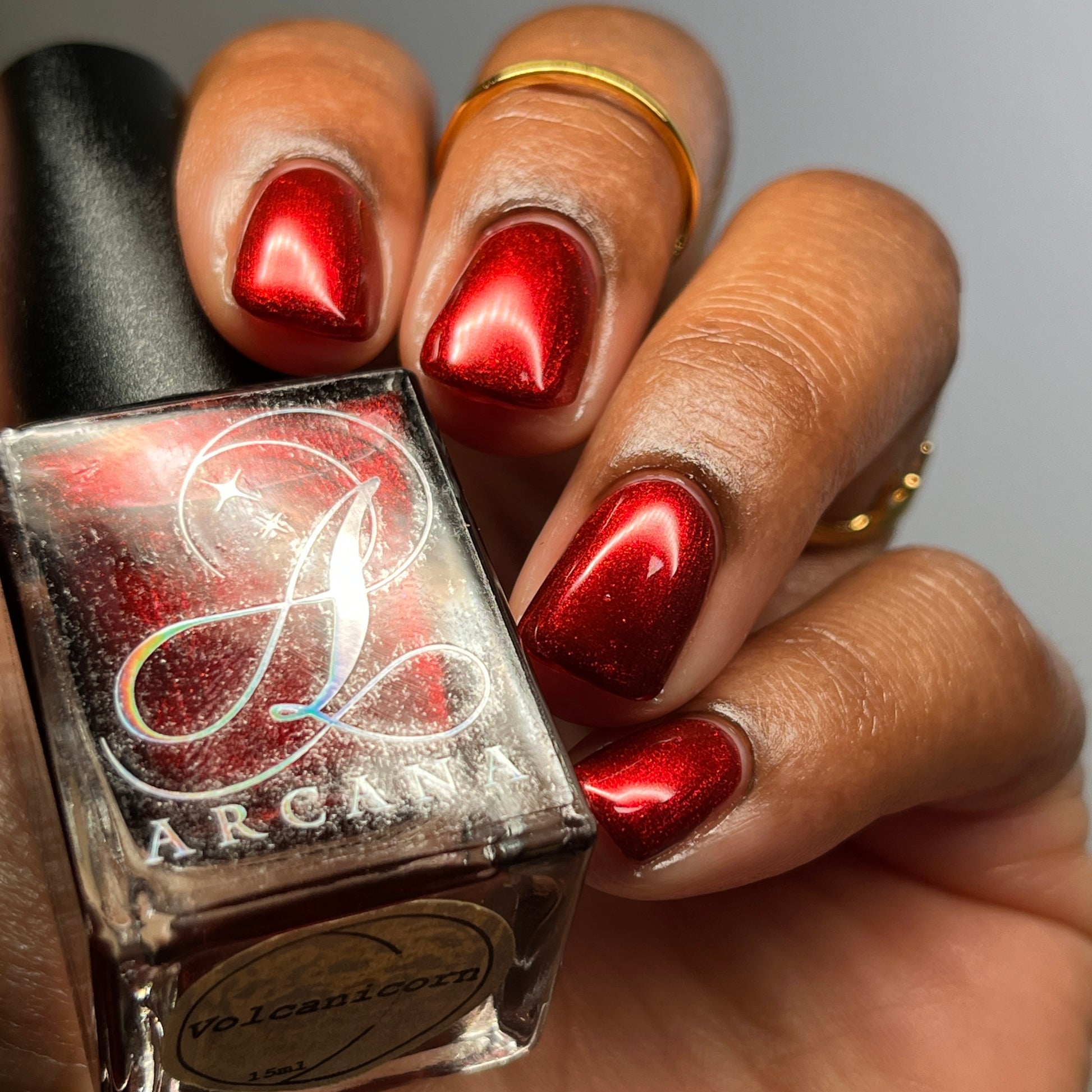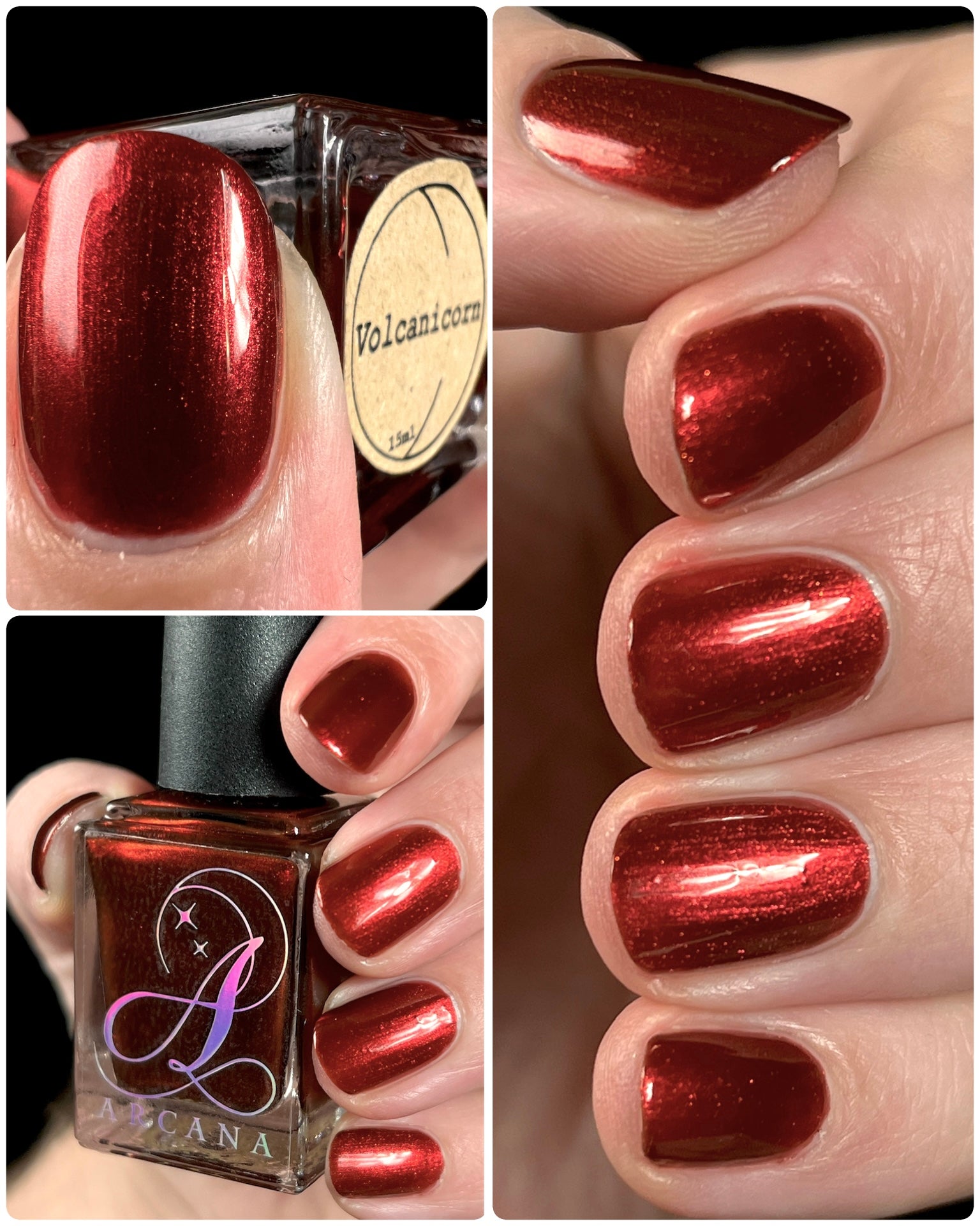 Volcanicorn has a dark red base with a red pearlescent shimmer!