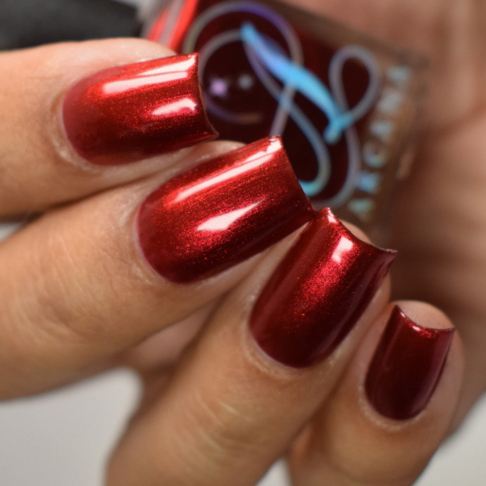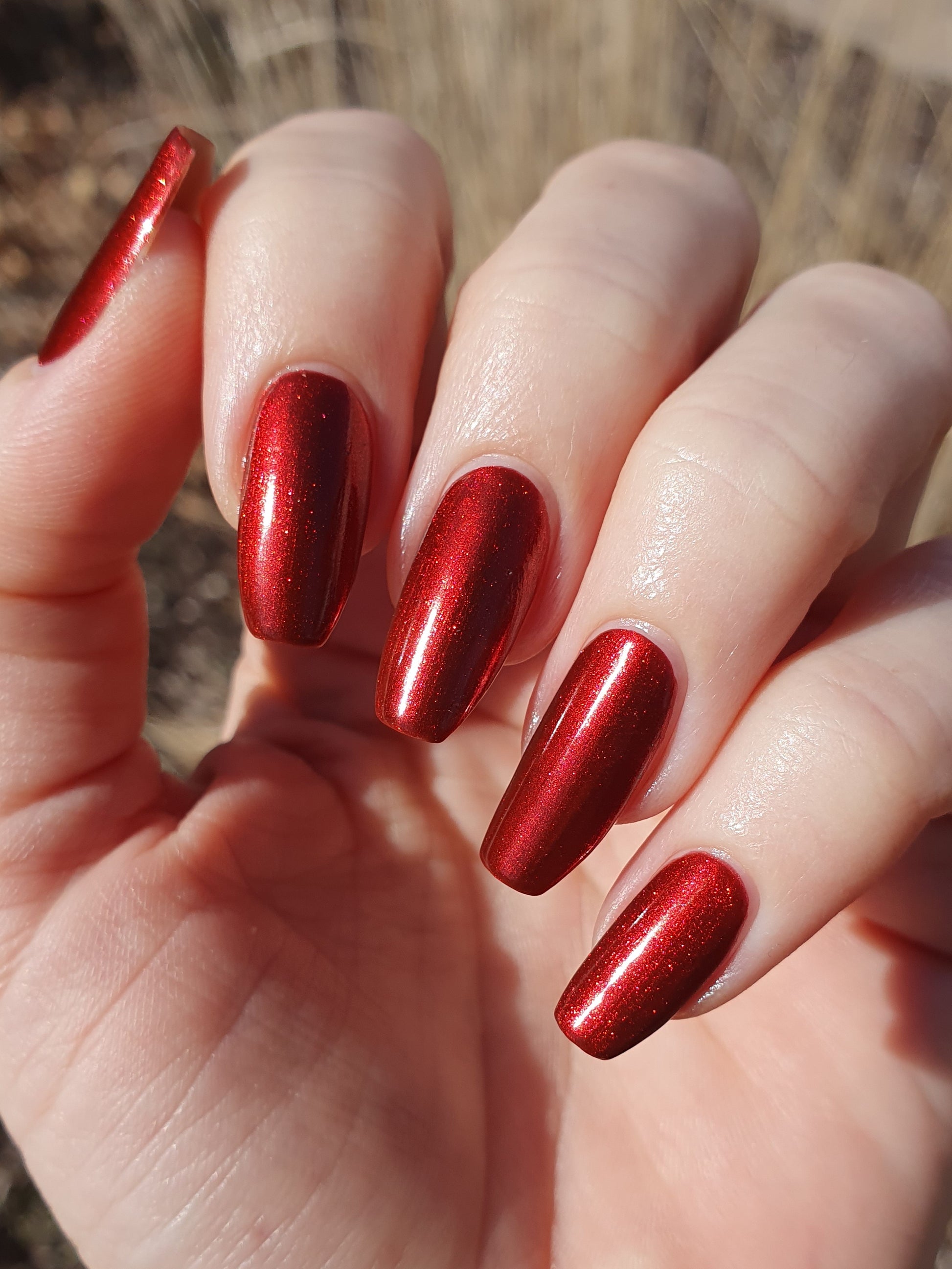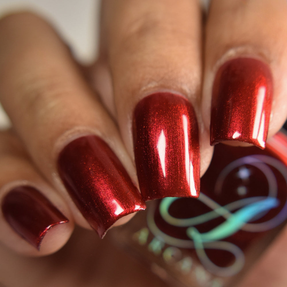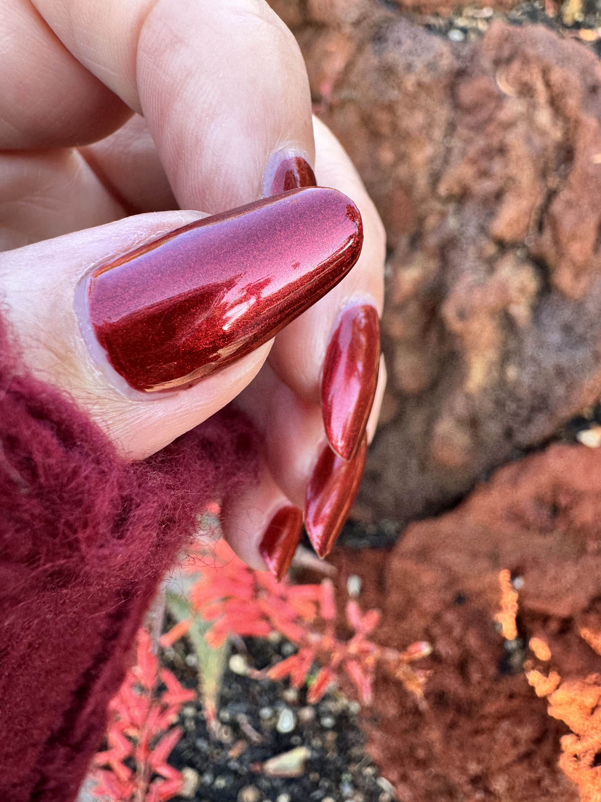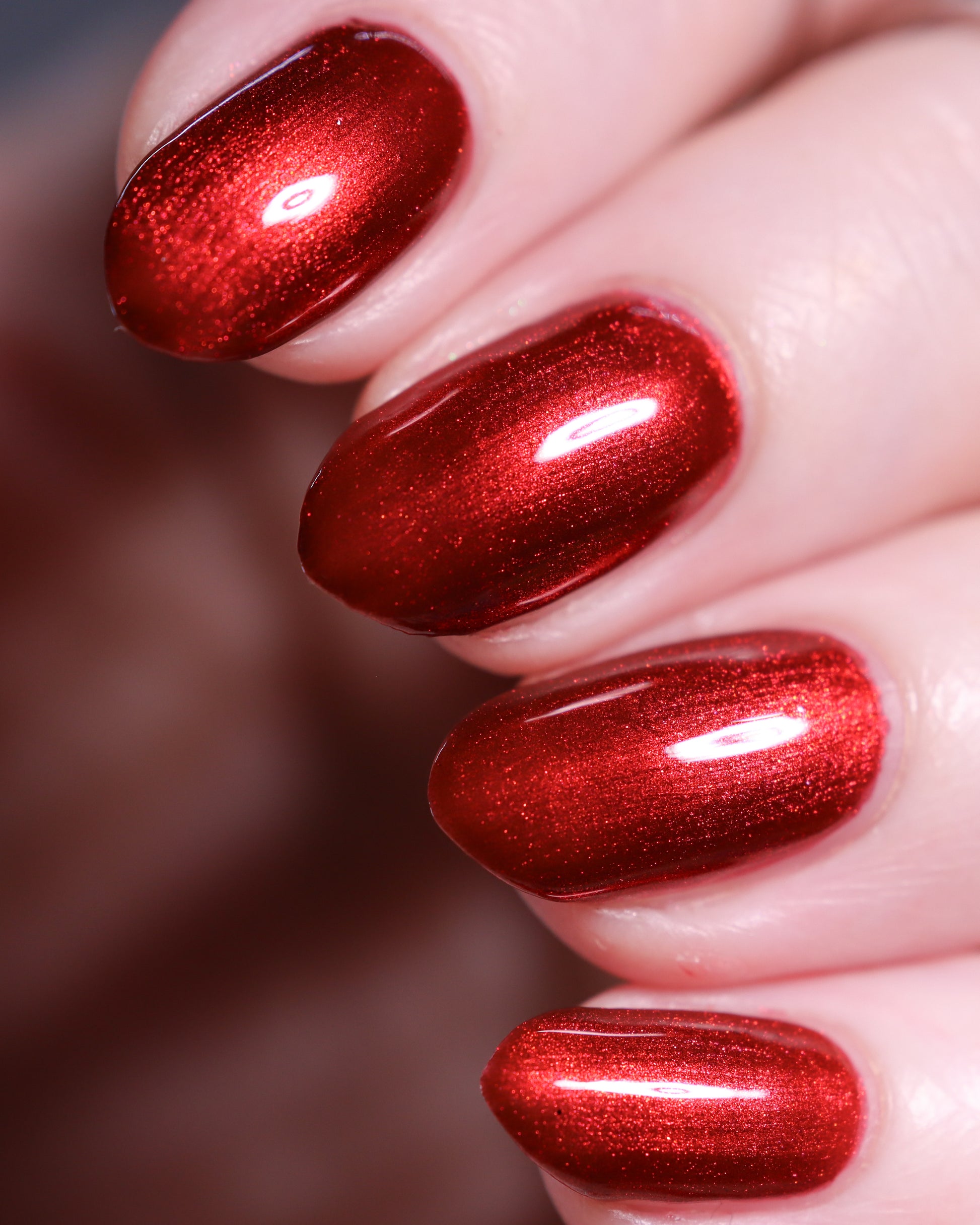 Volcanicorn has a dark red base with a red pearlescent shimmer!