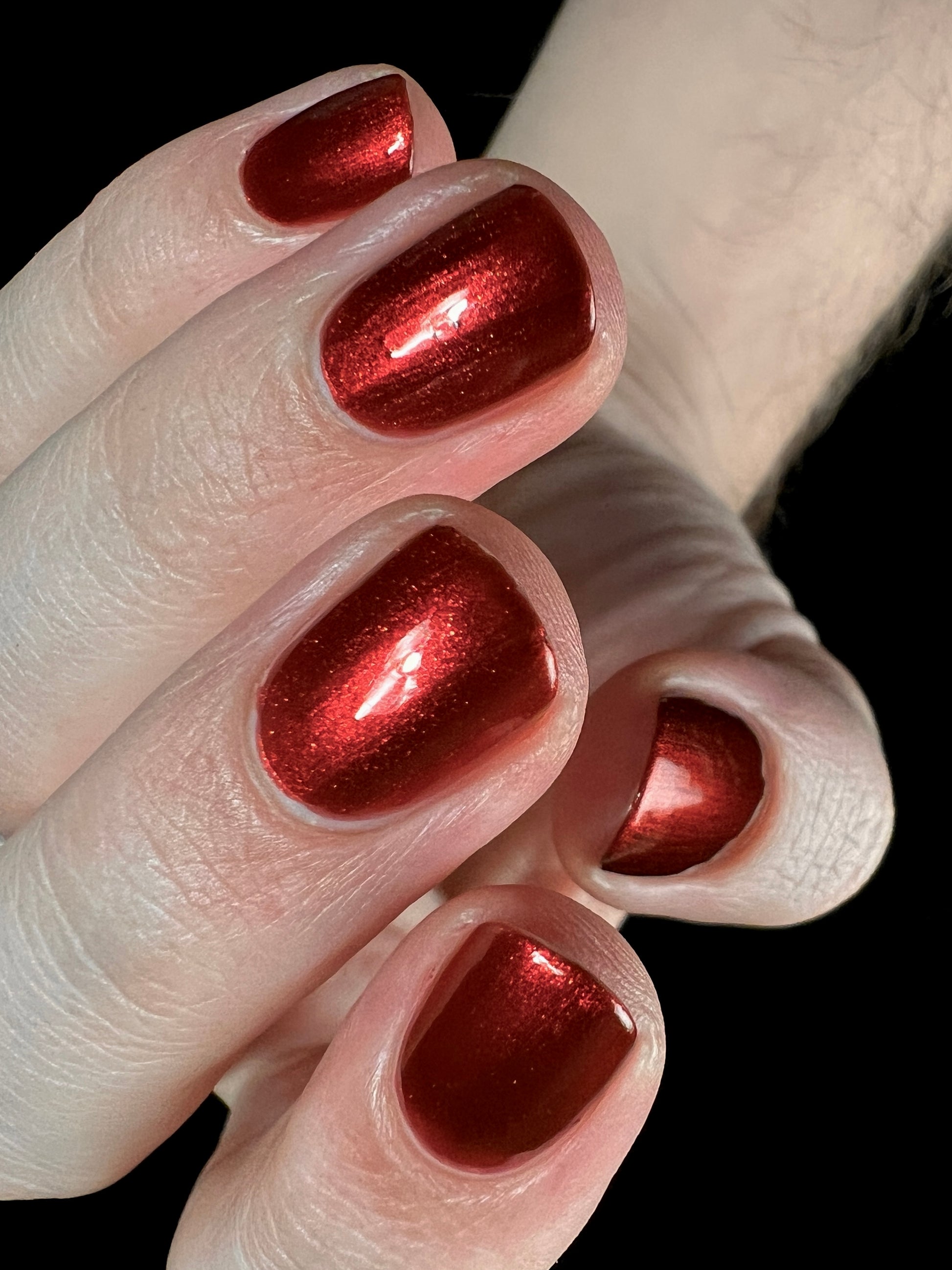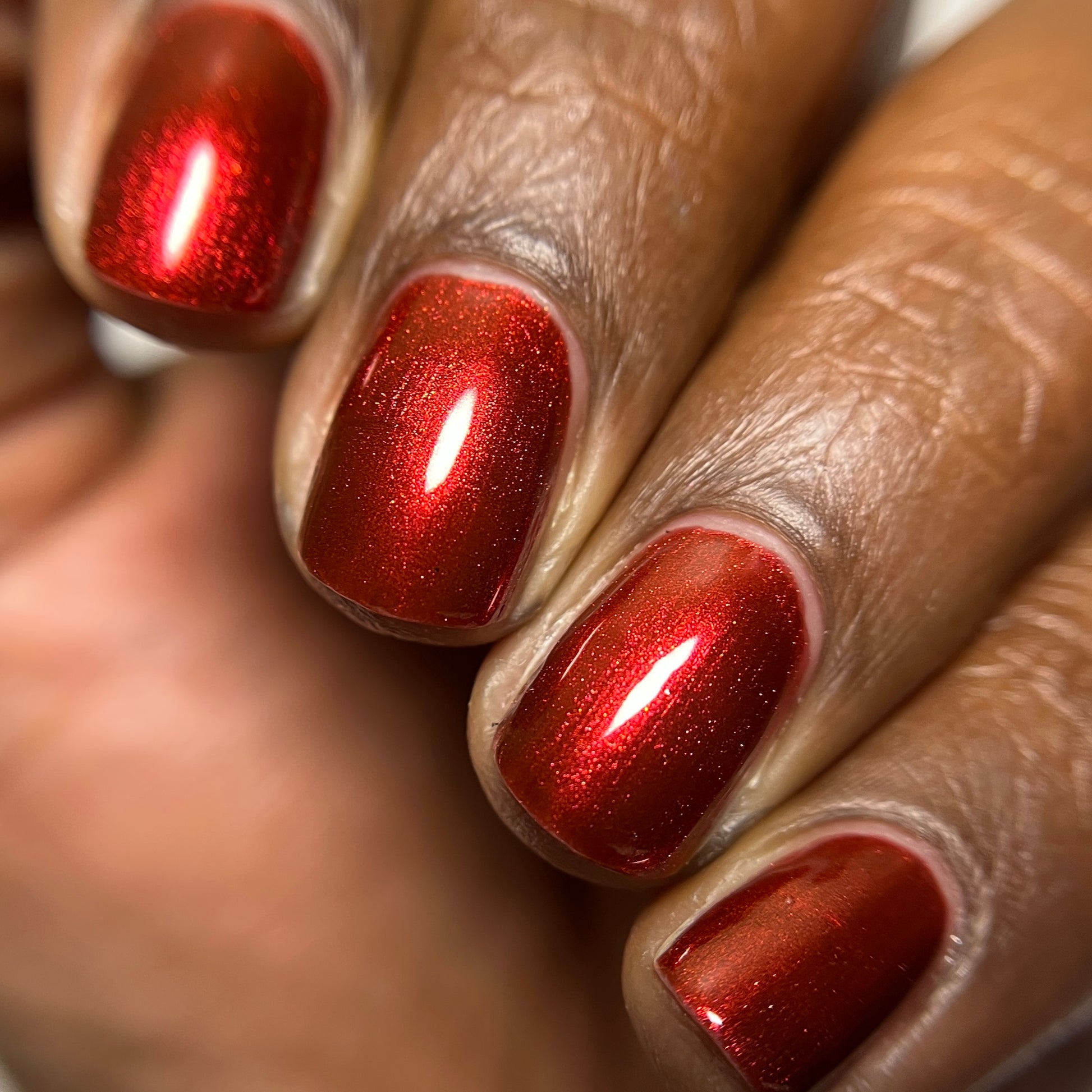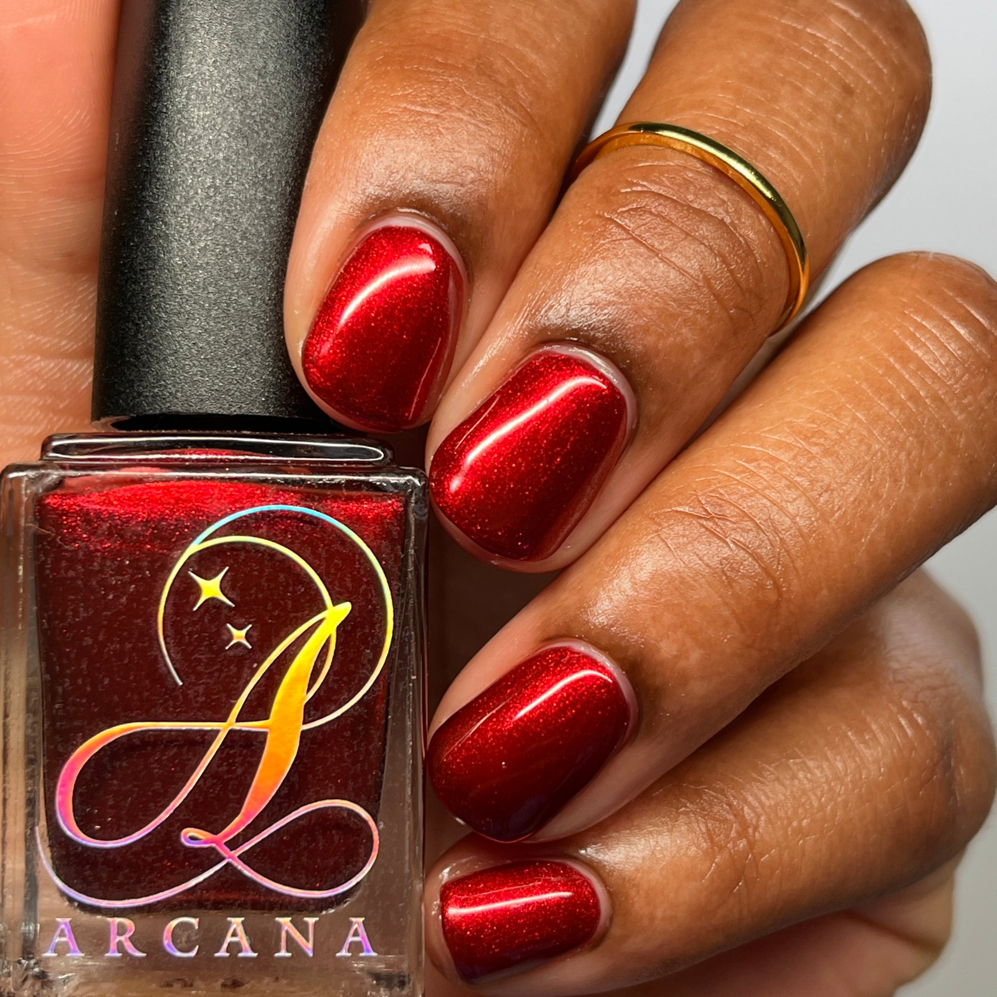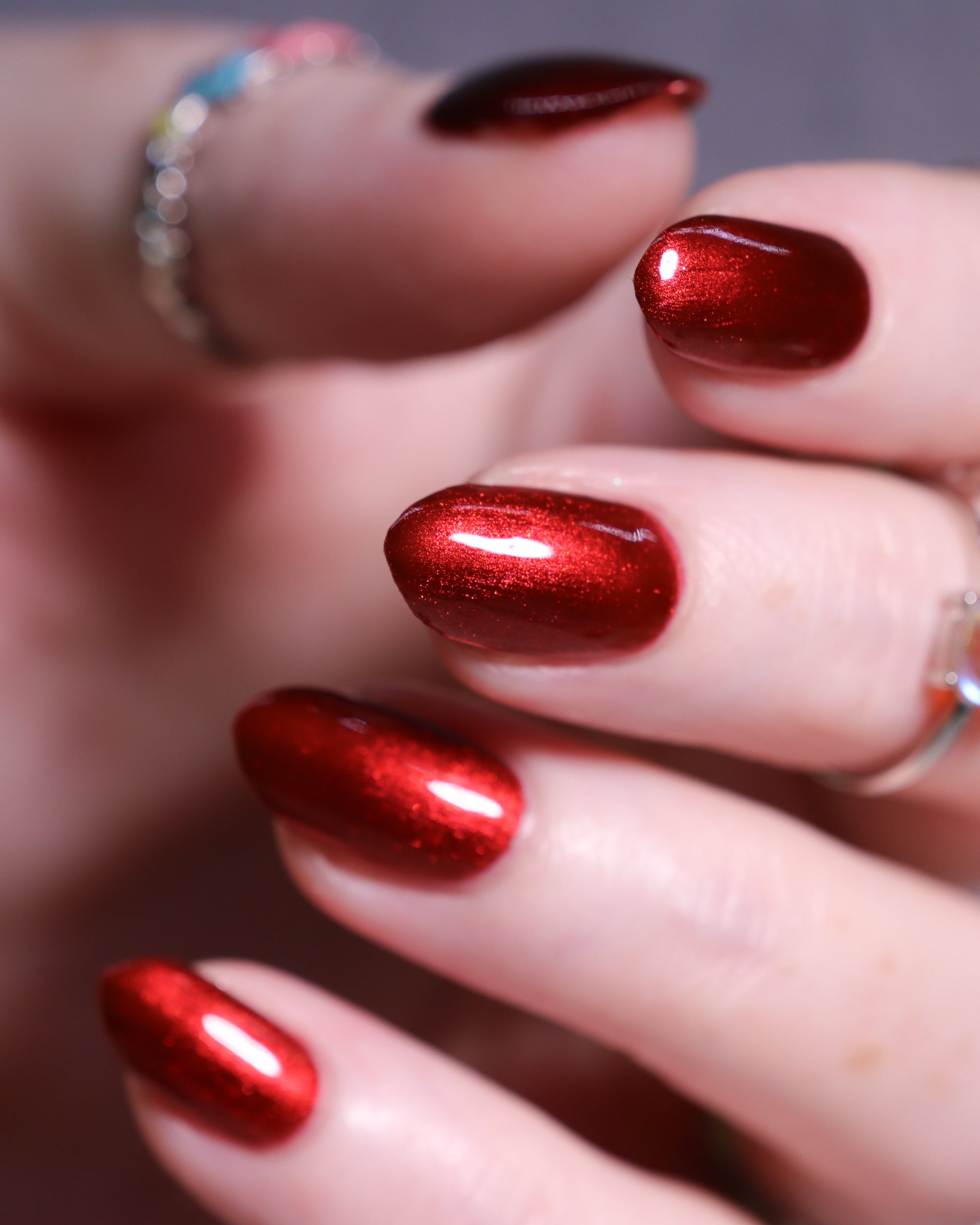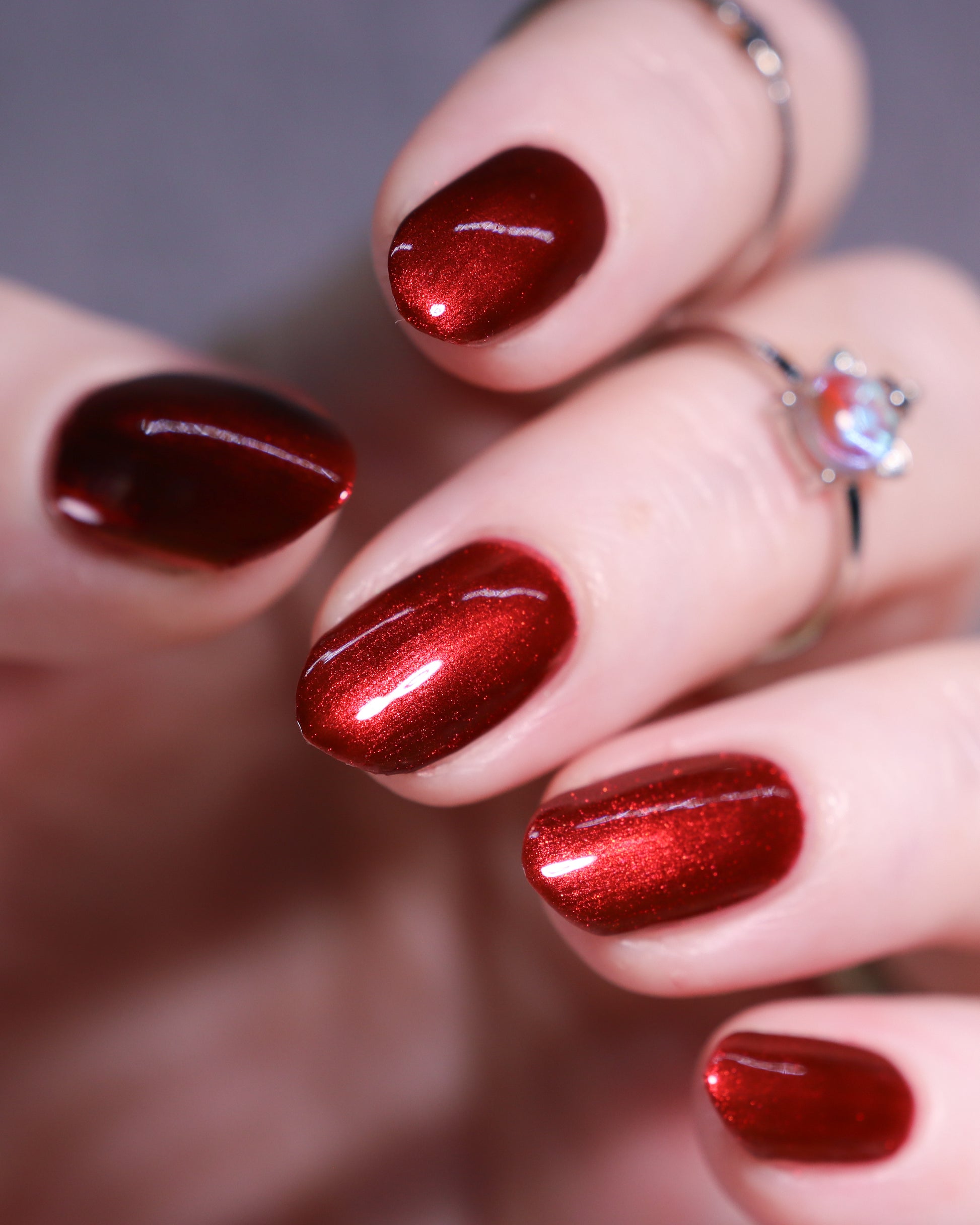 Volcanicorn has a dark red base with a red pearlescent shimmer!