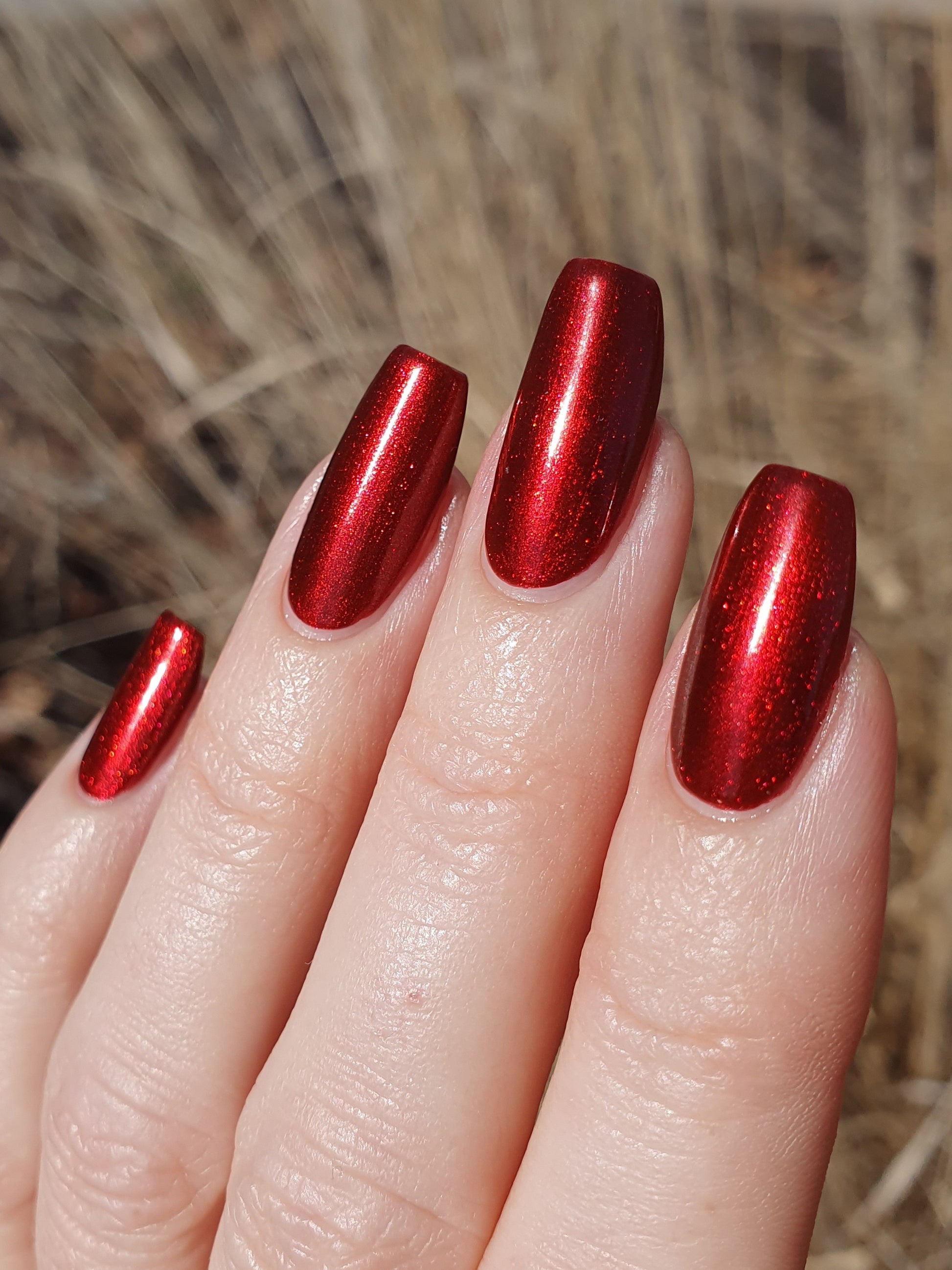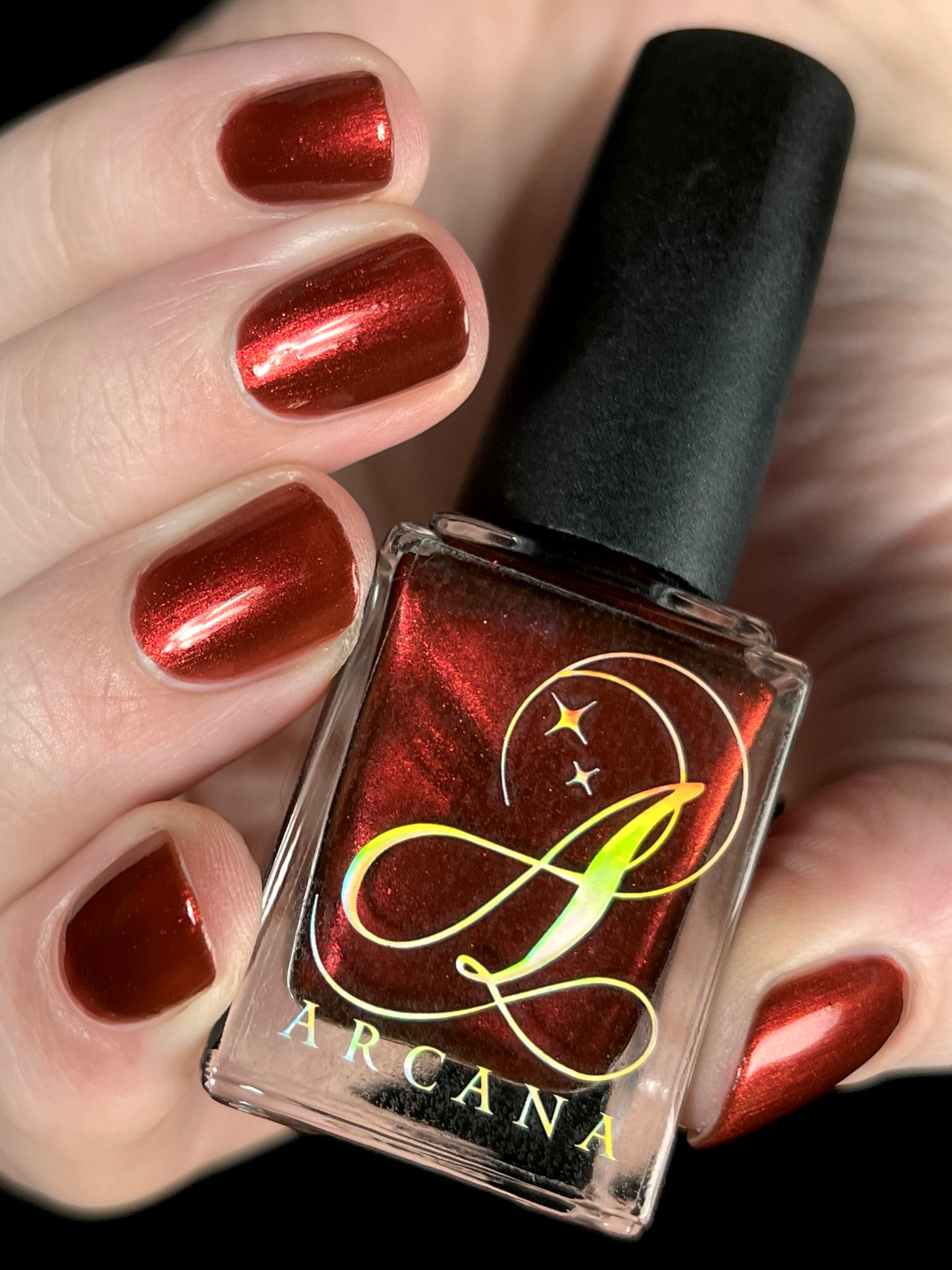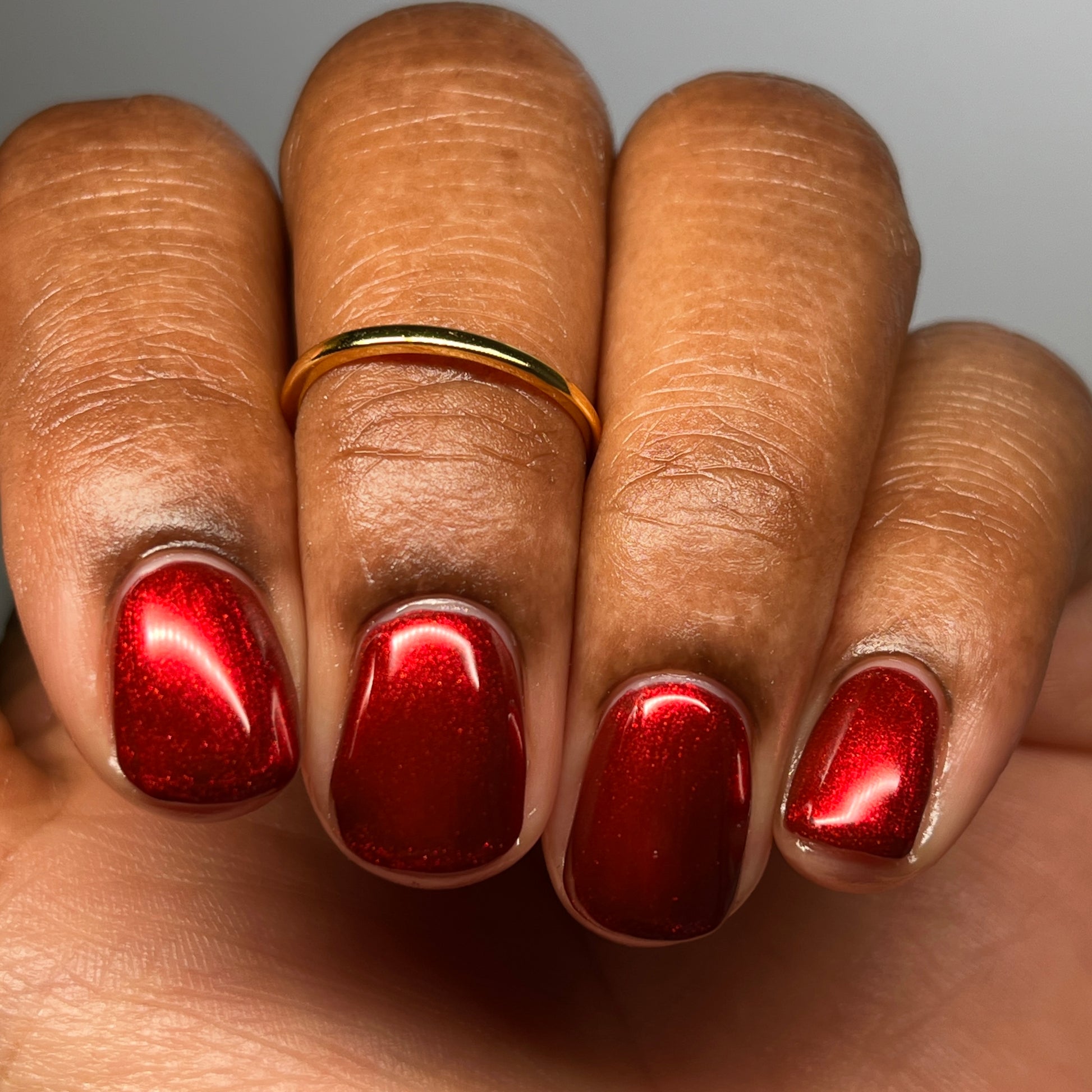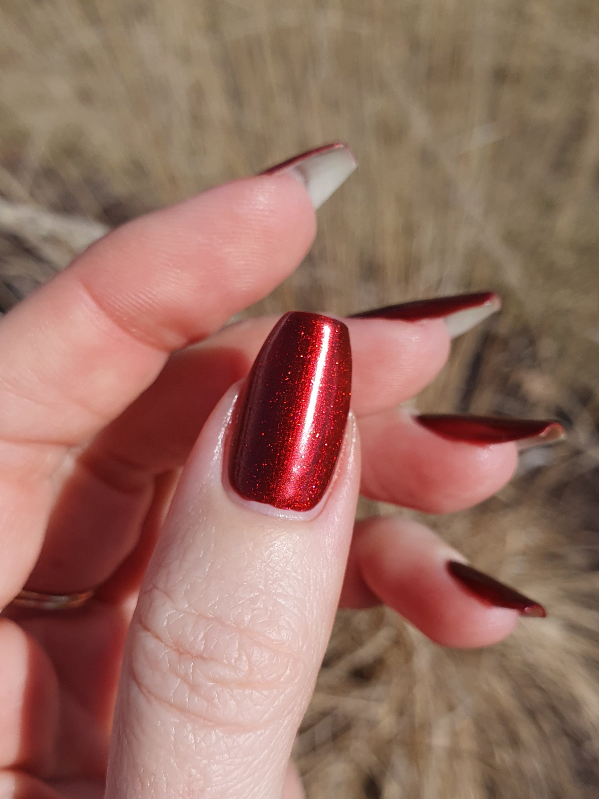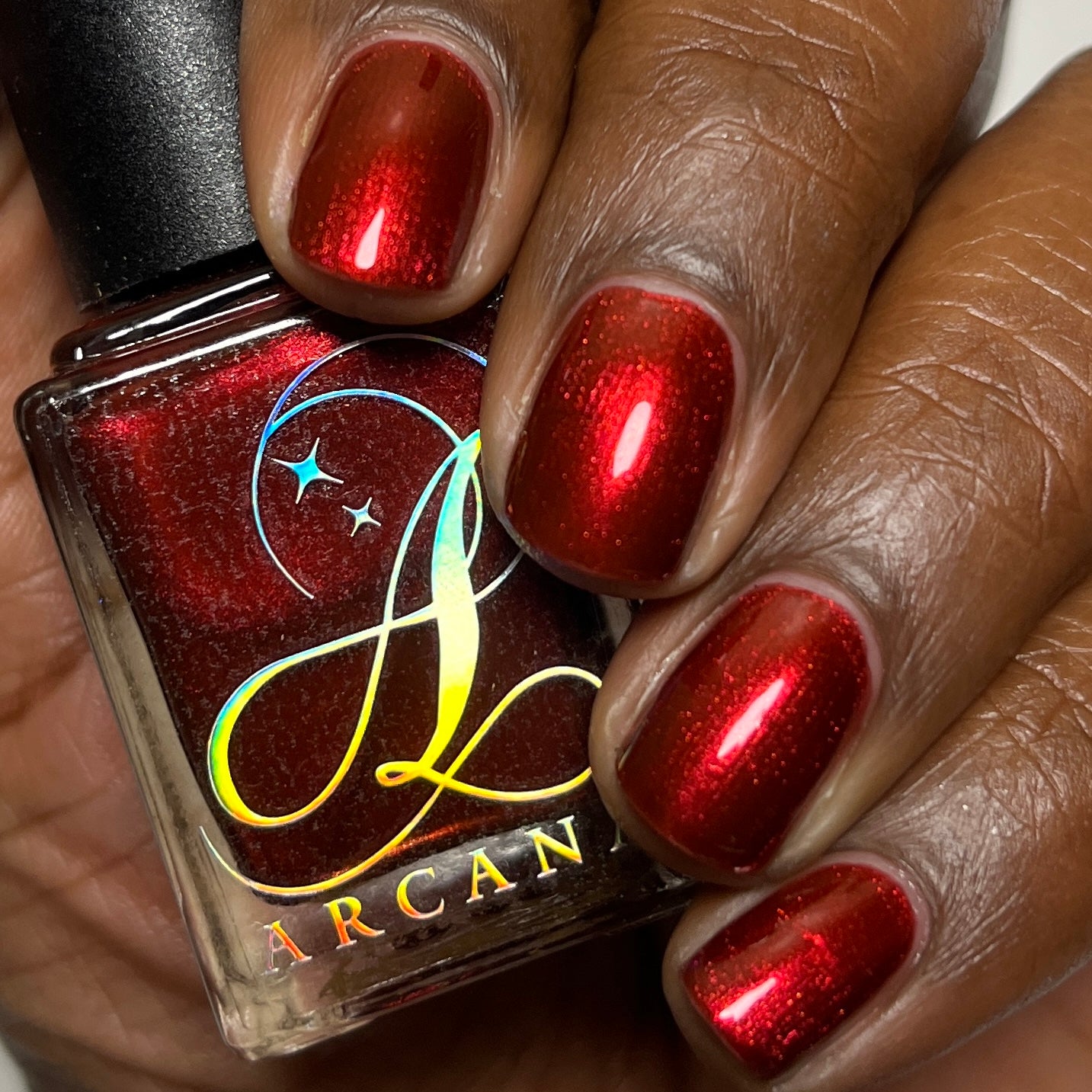 Volcanicorn has a dark red base with a red pearlescent shimmer!