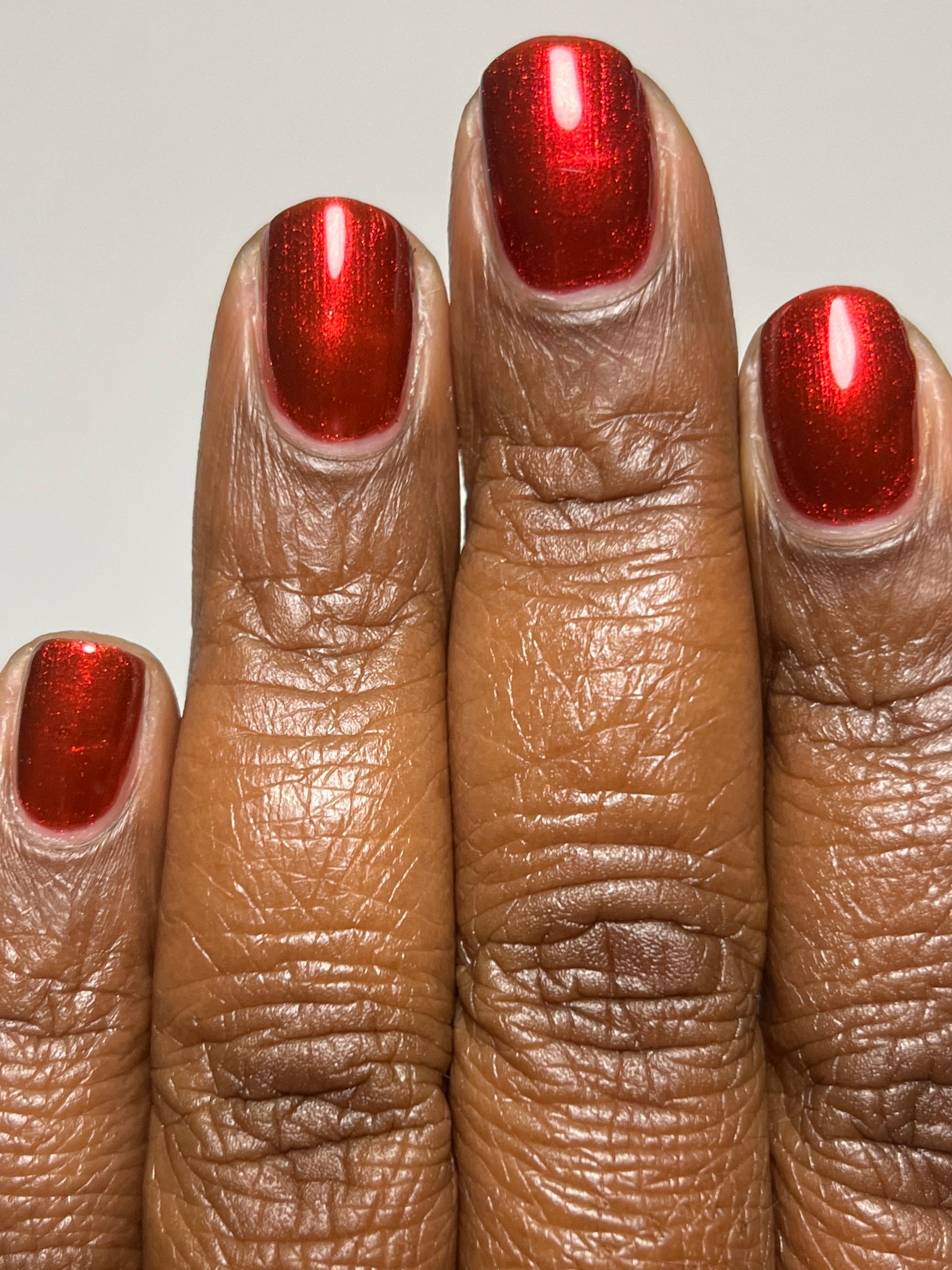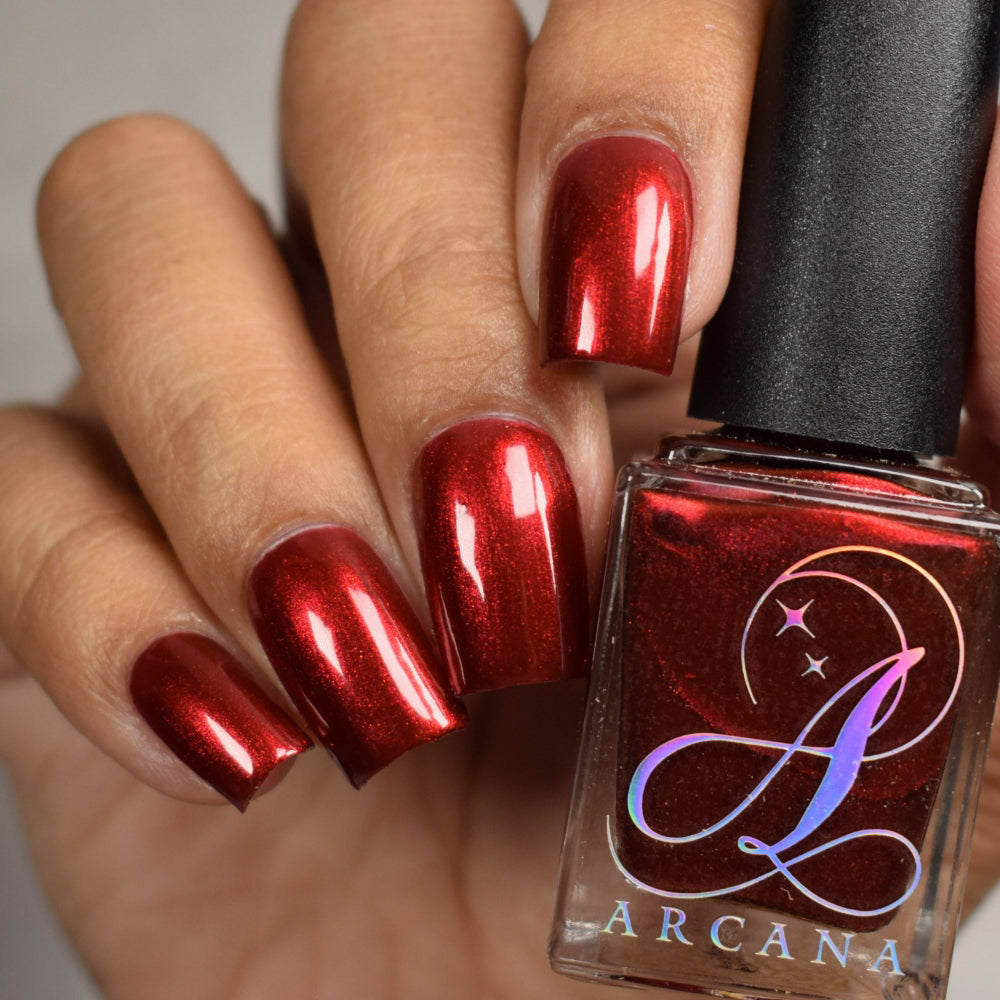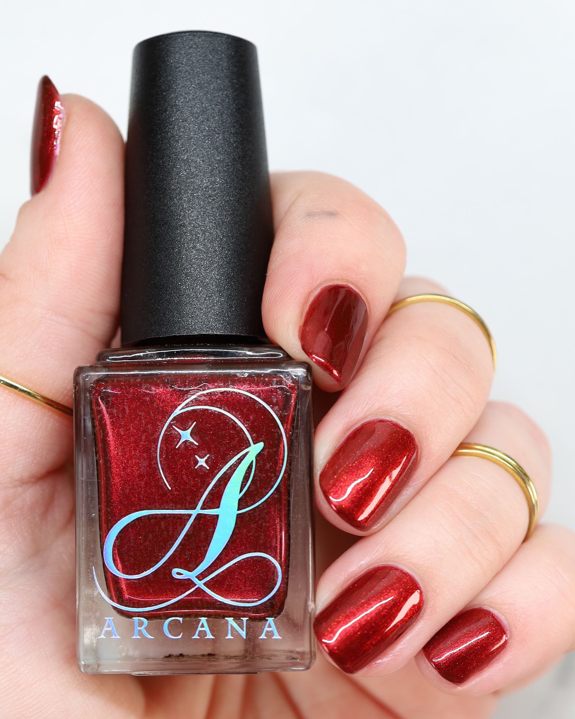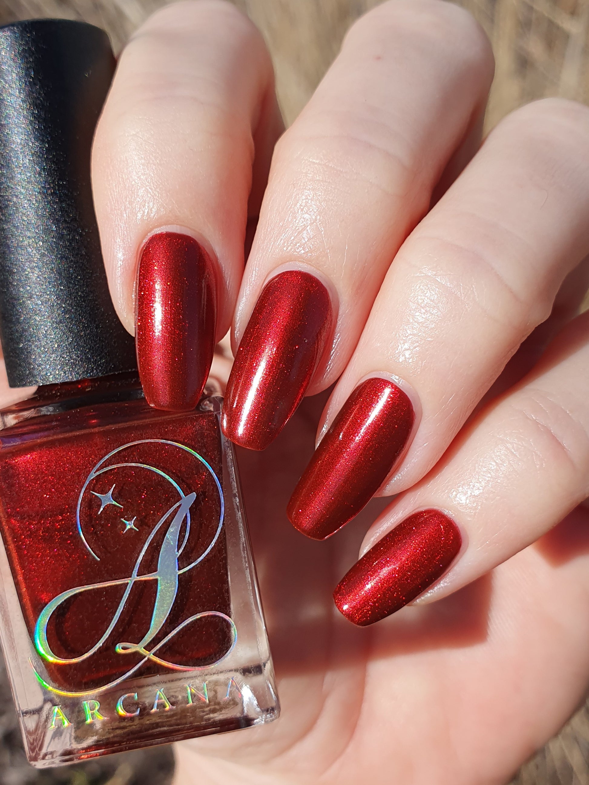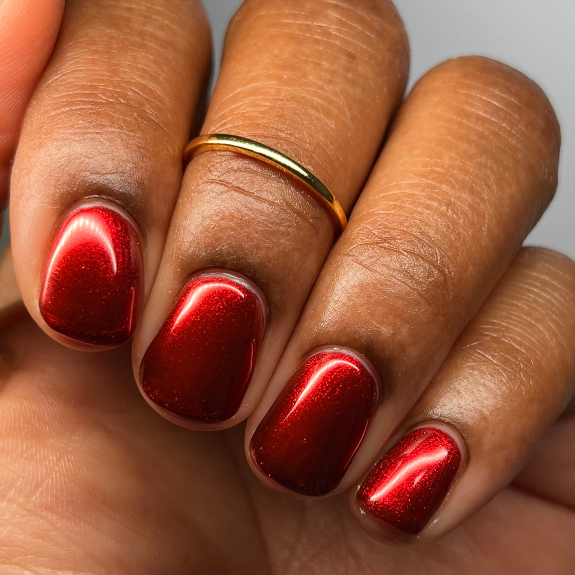 Volcanicorn has a dark red base with a red pearlescent shimmer!