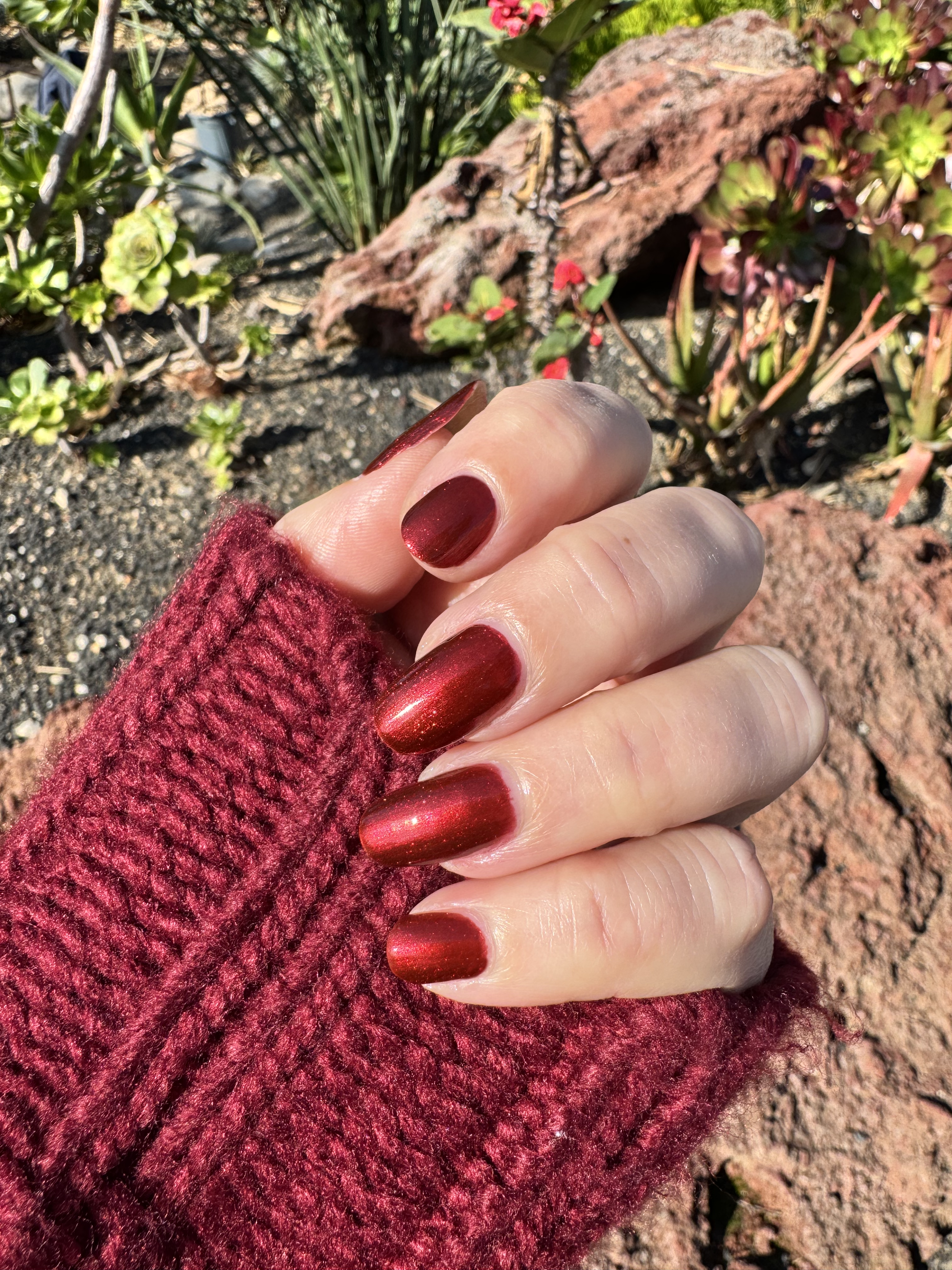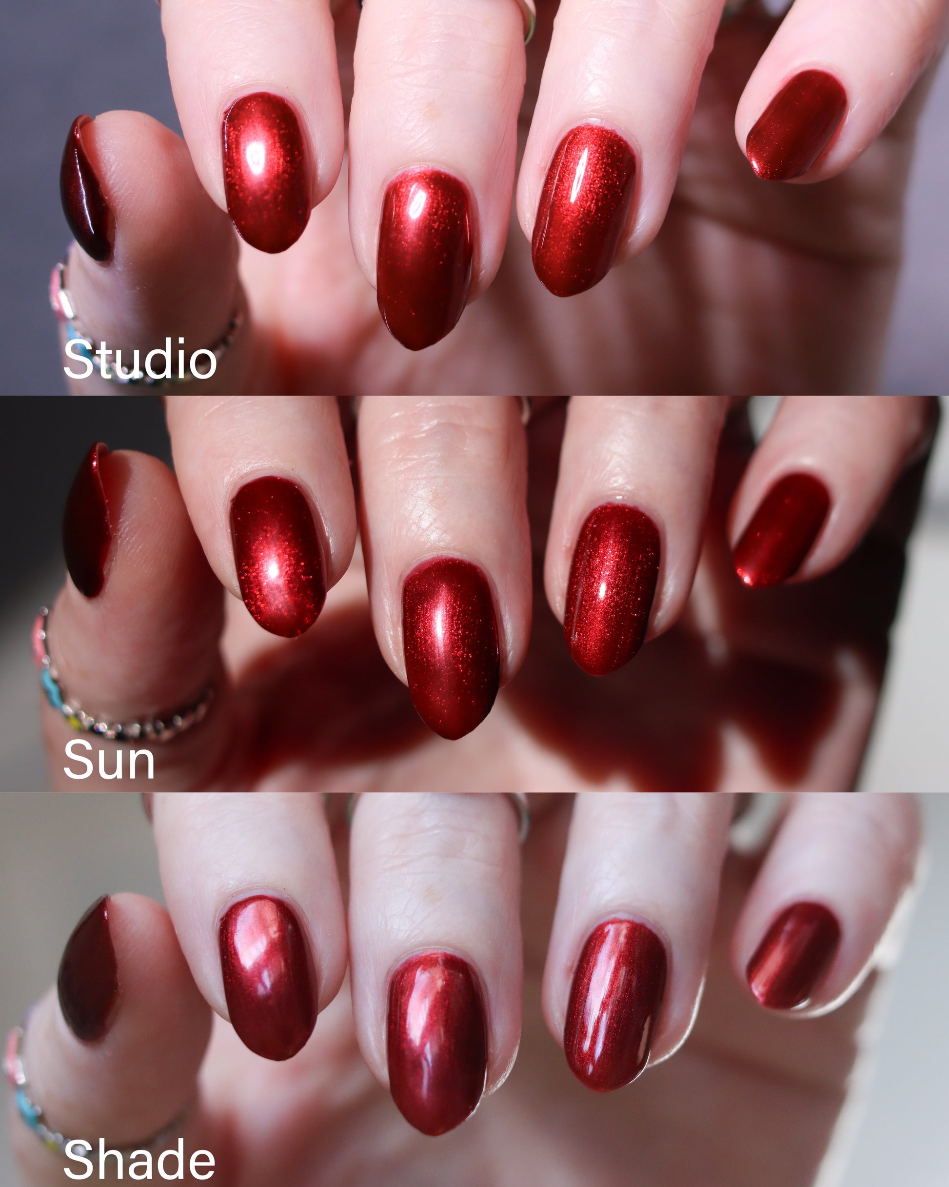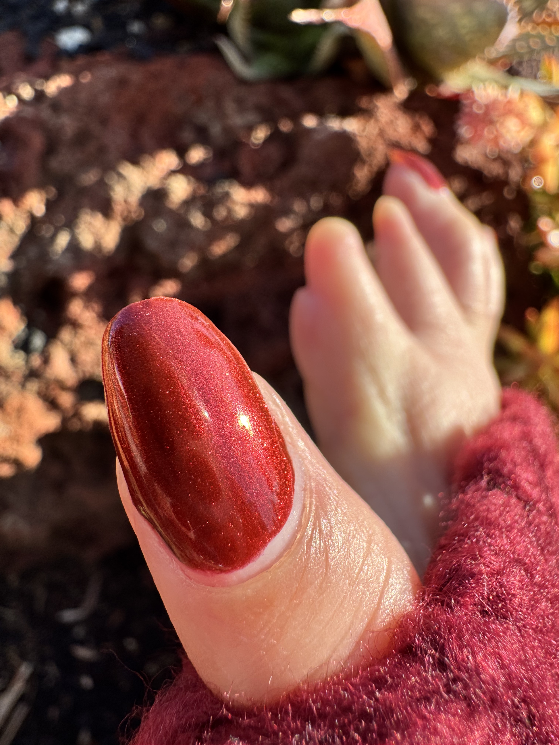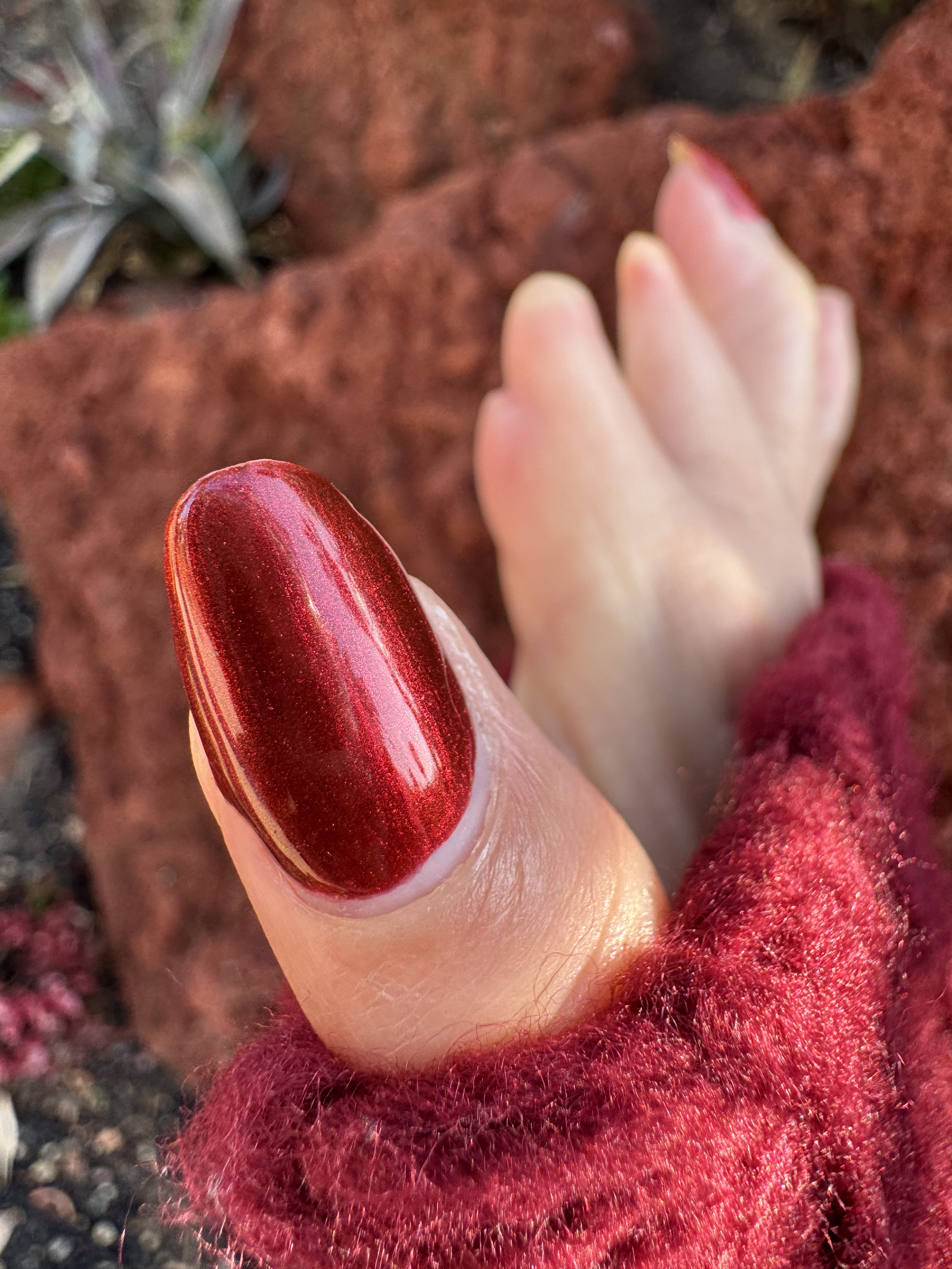 Volcanicorn has a dark red base with a red pearlescent shimmer!