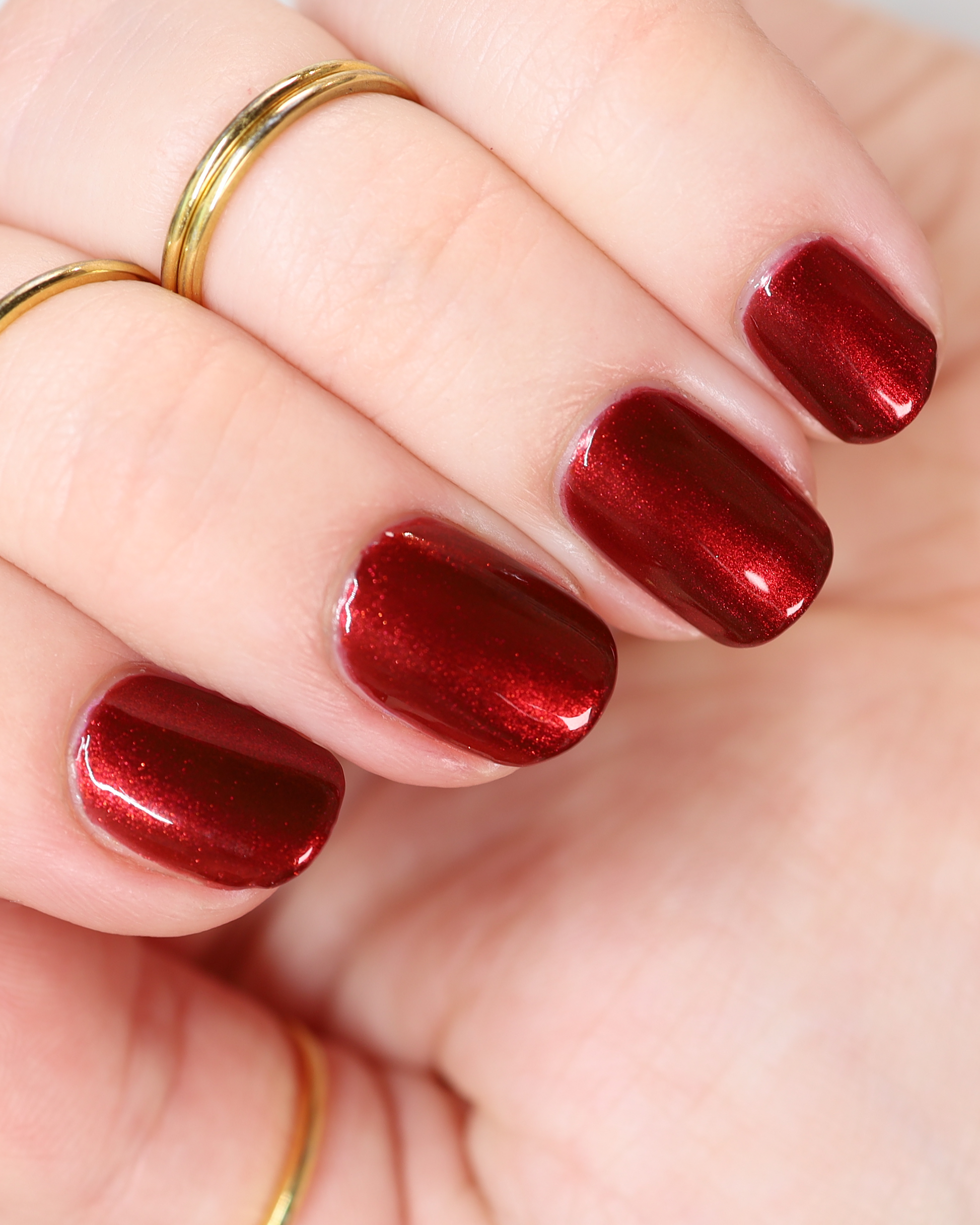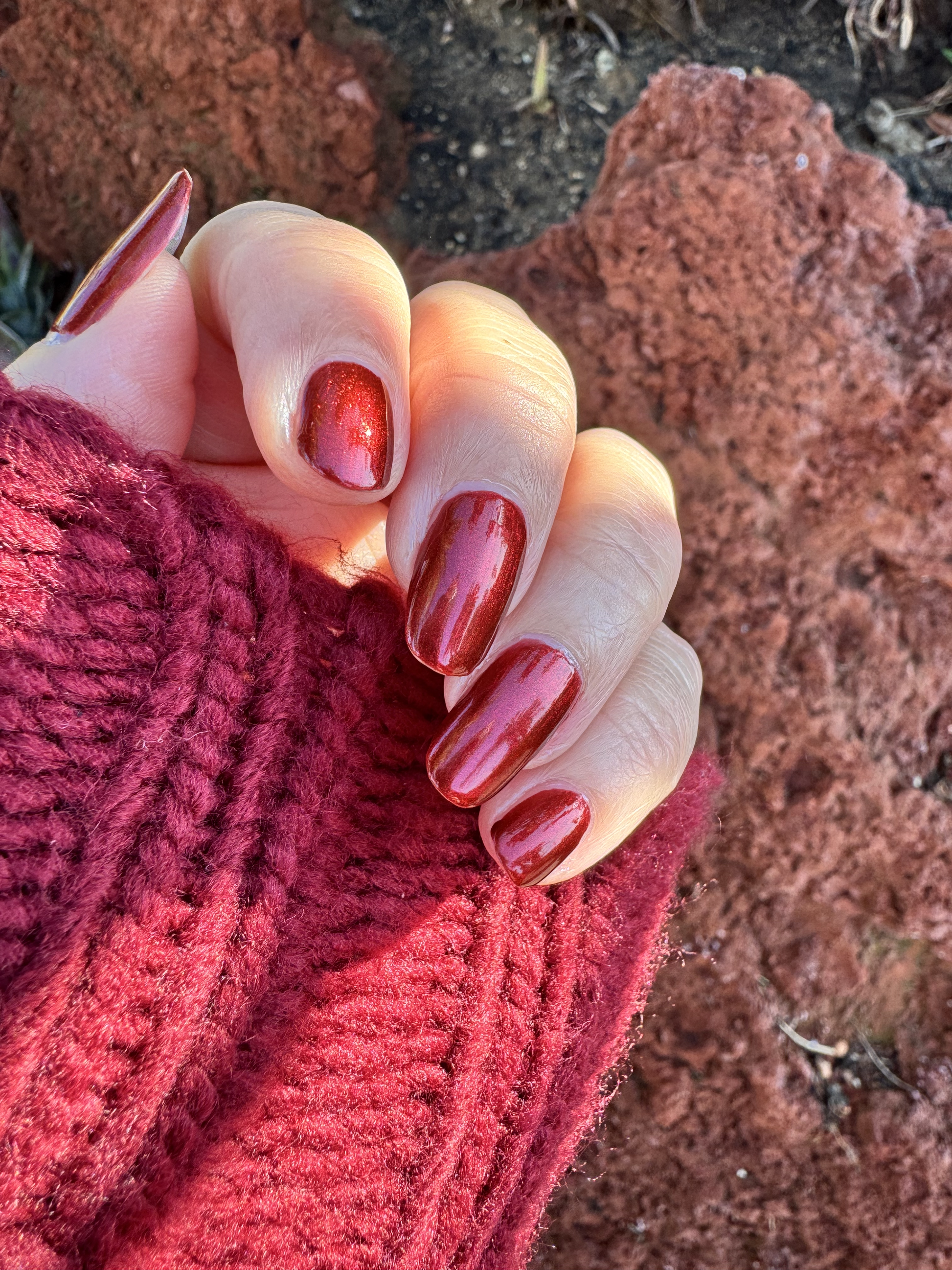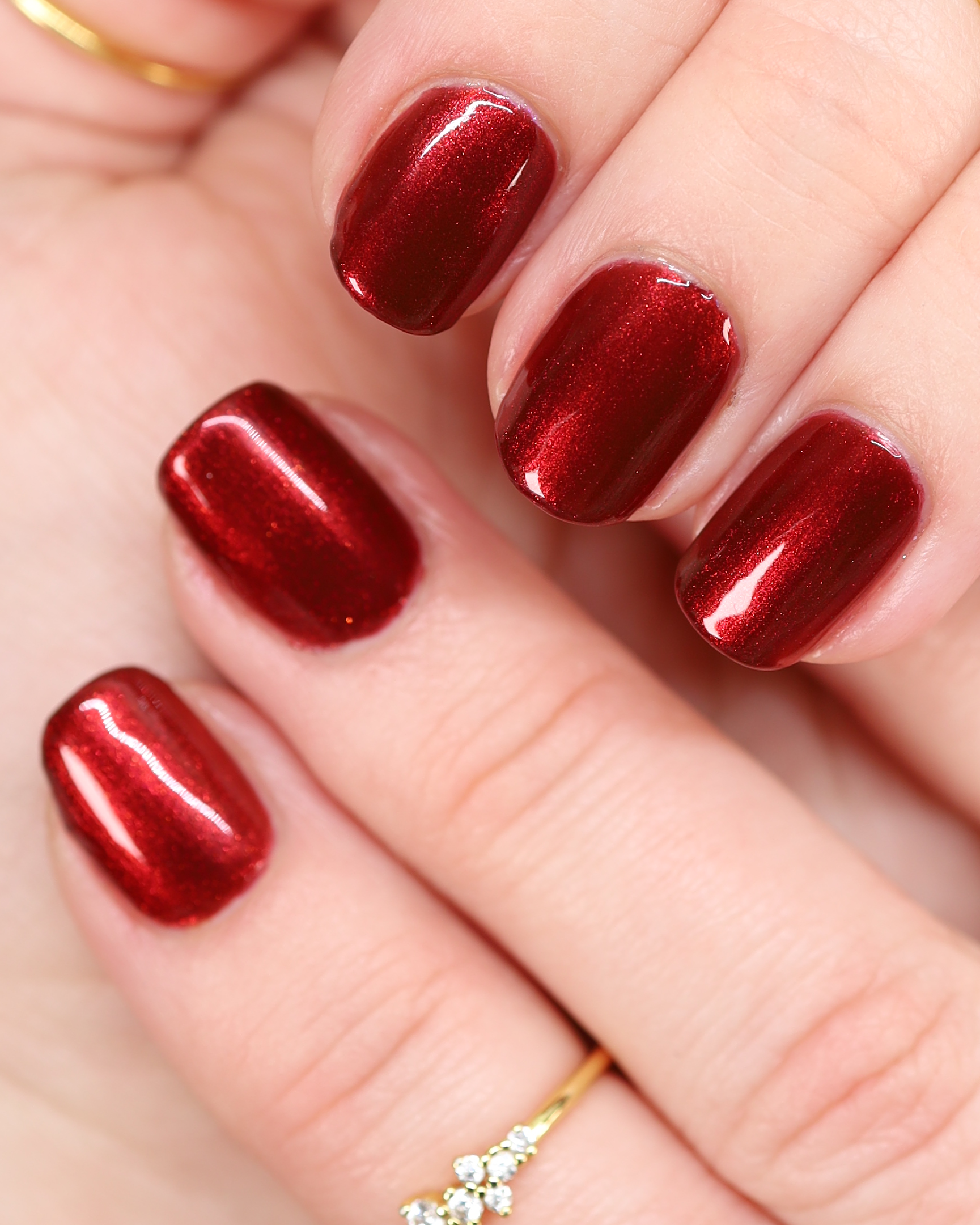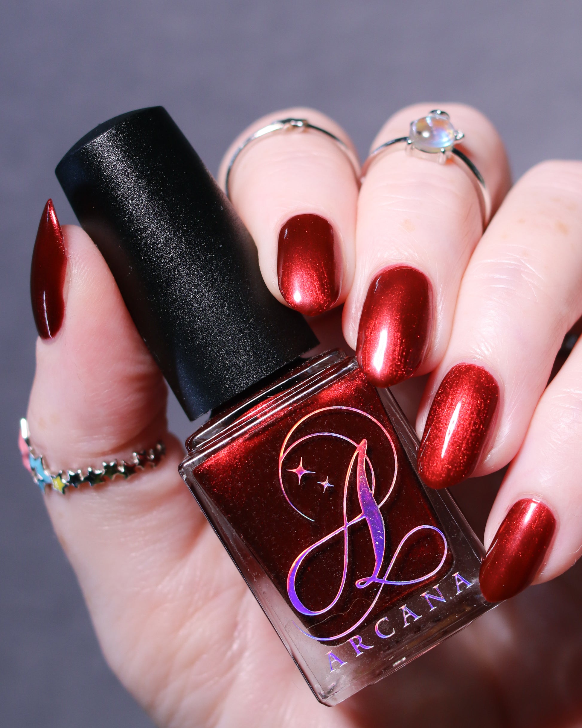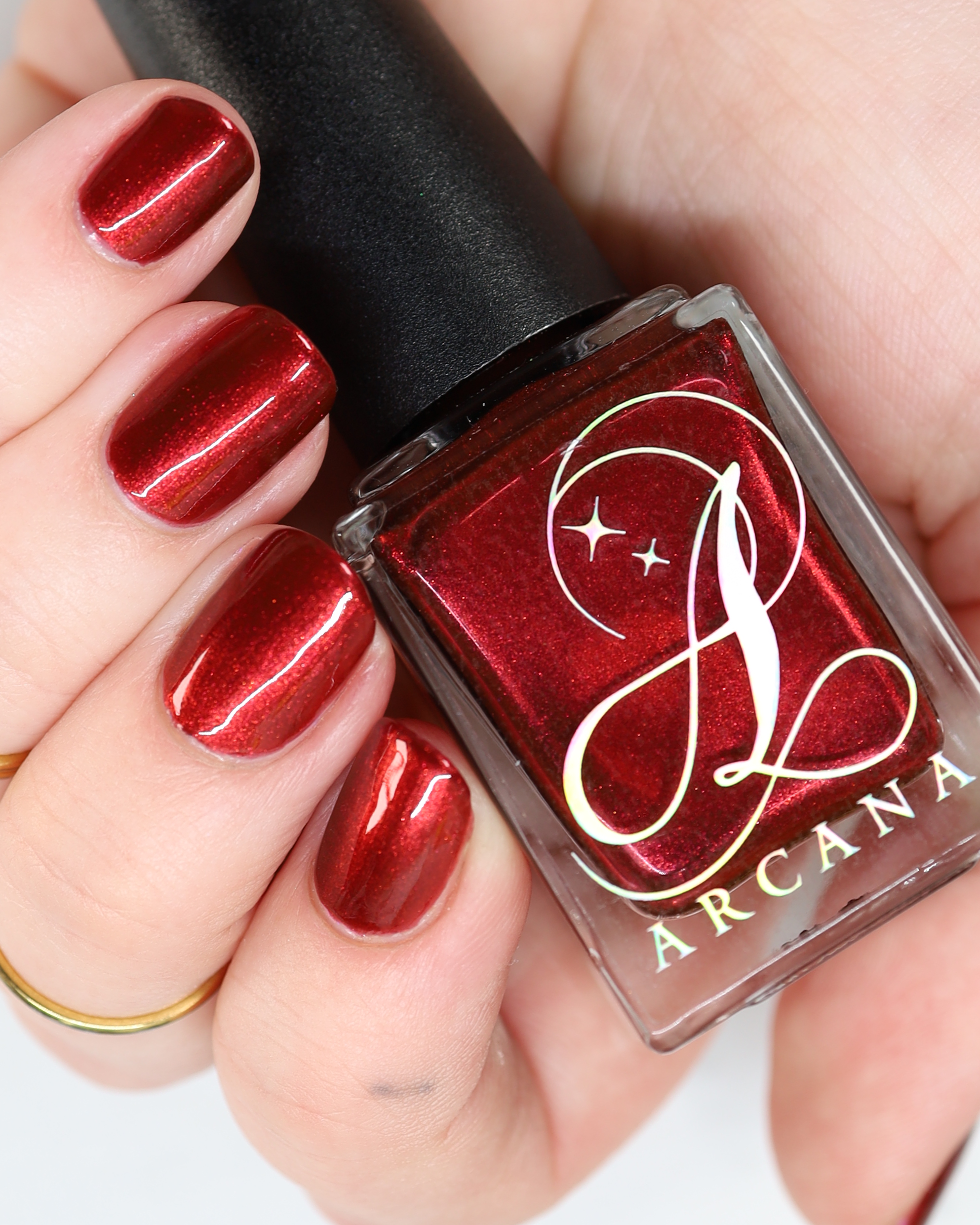 Volcanicorn has a dark red base with a red pearlescent shimmer!