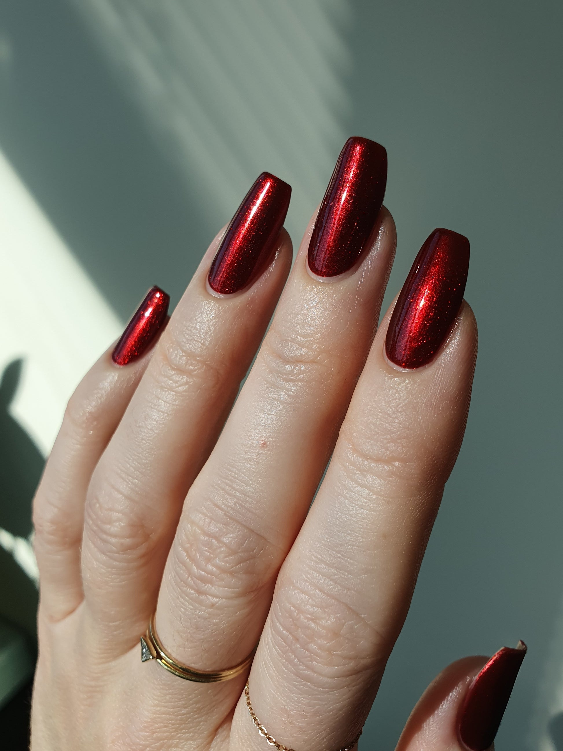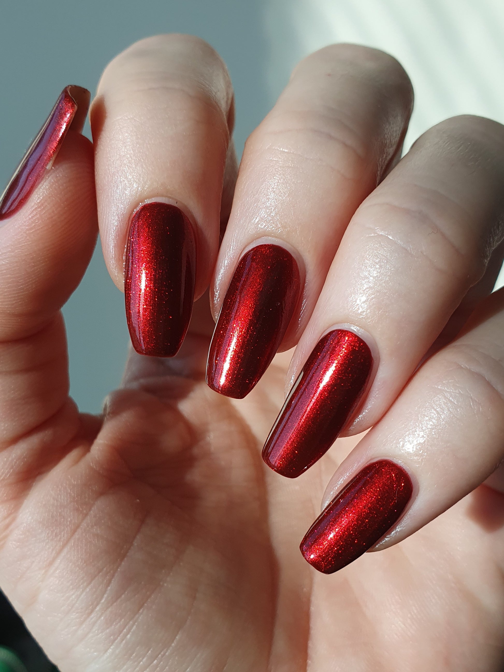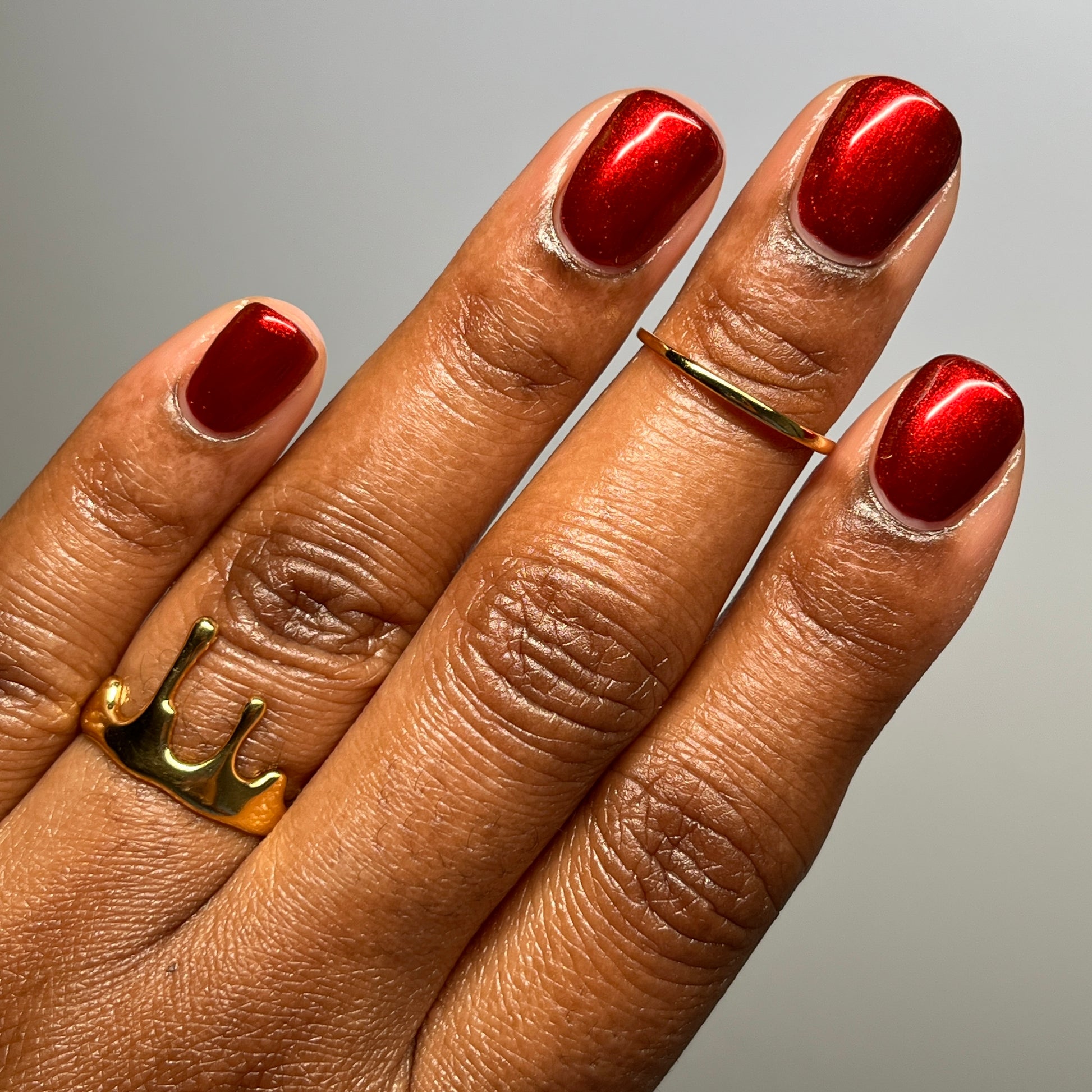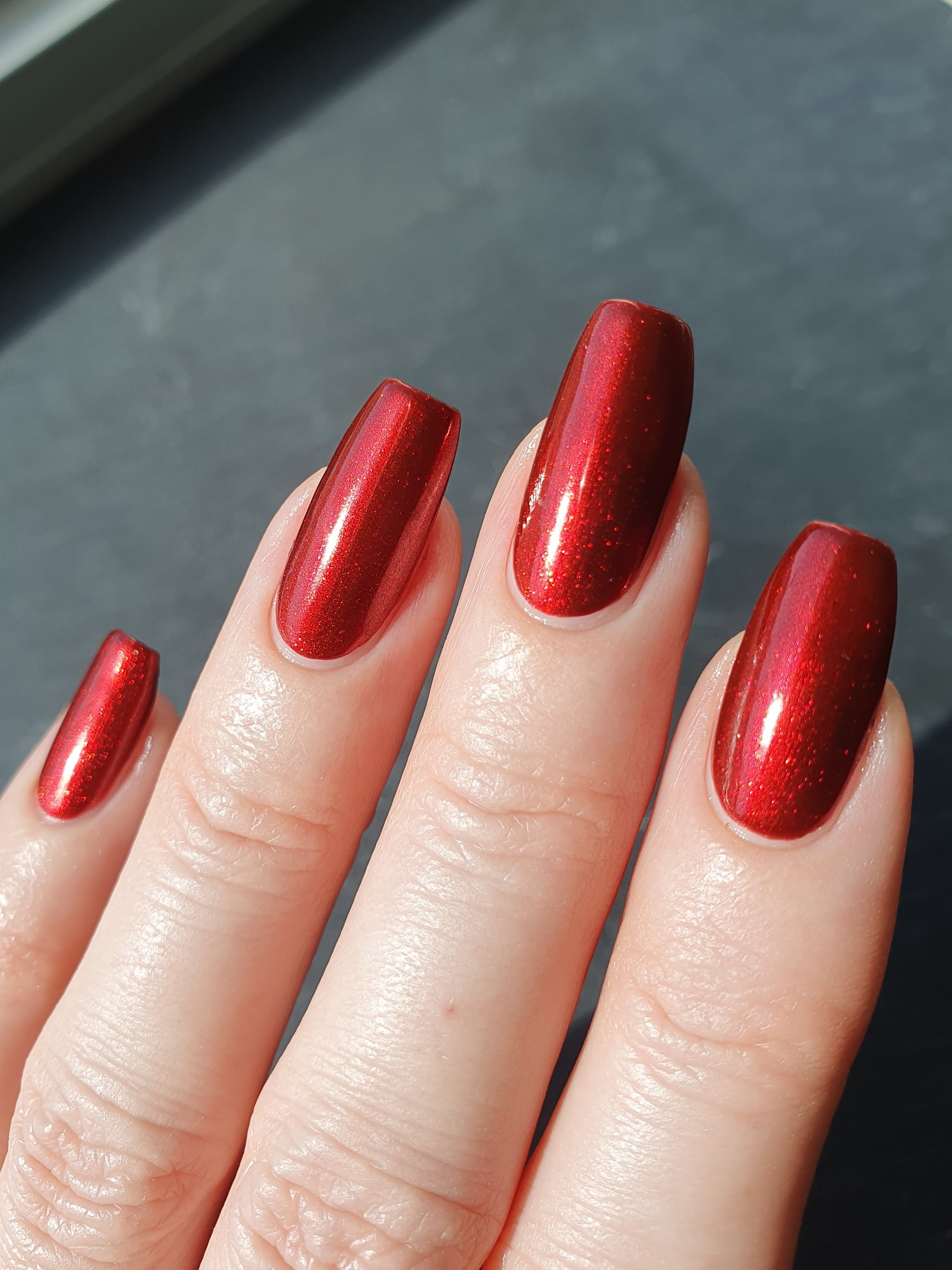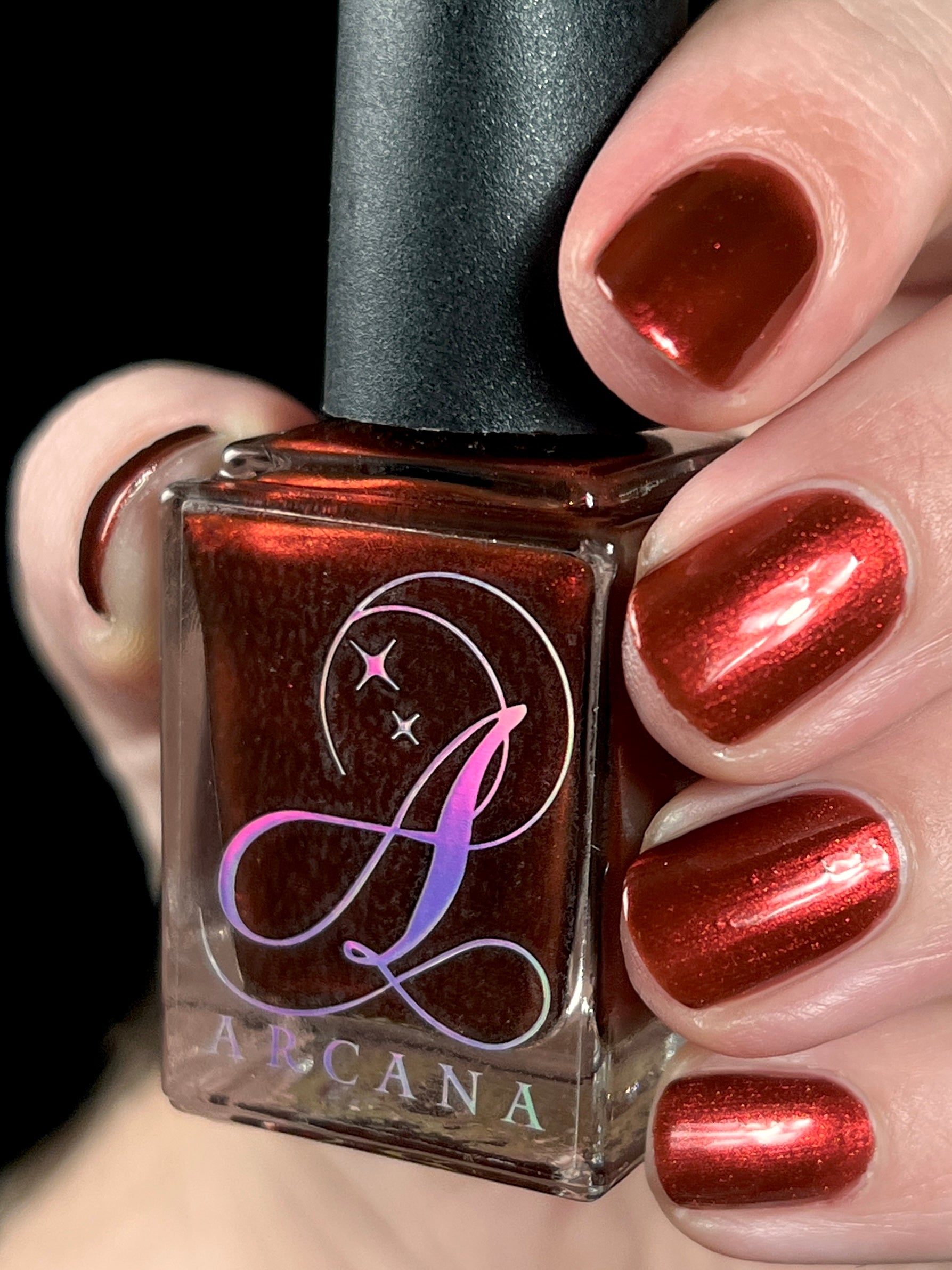 Volcanicorn has a dark red base with a red pearlescent shimmer!