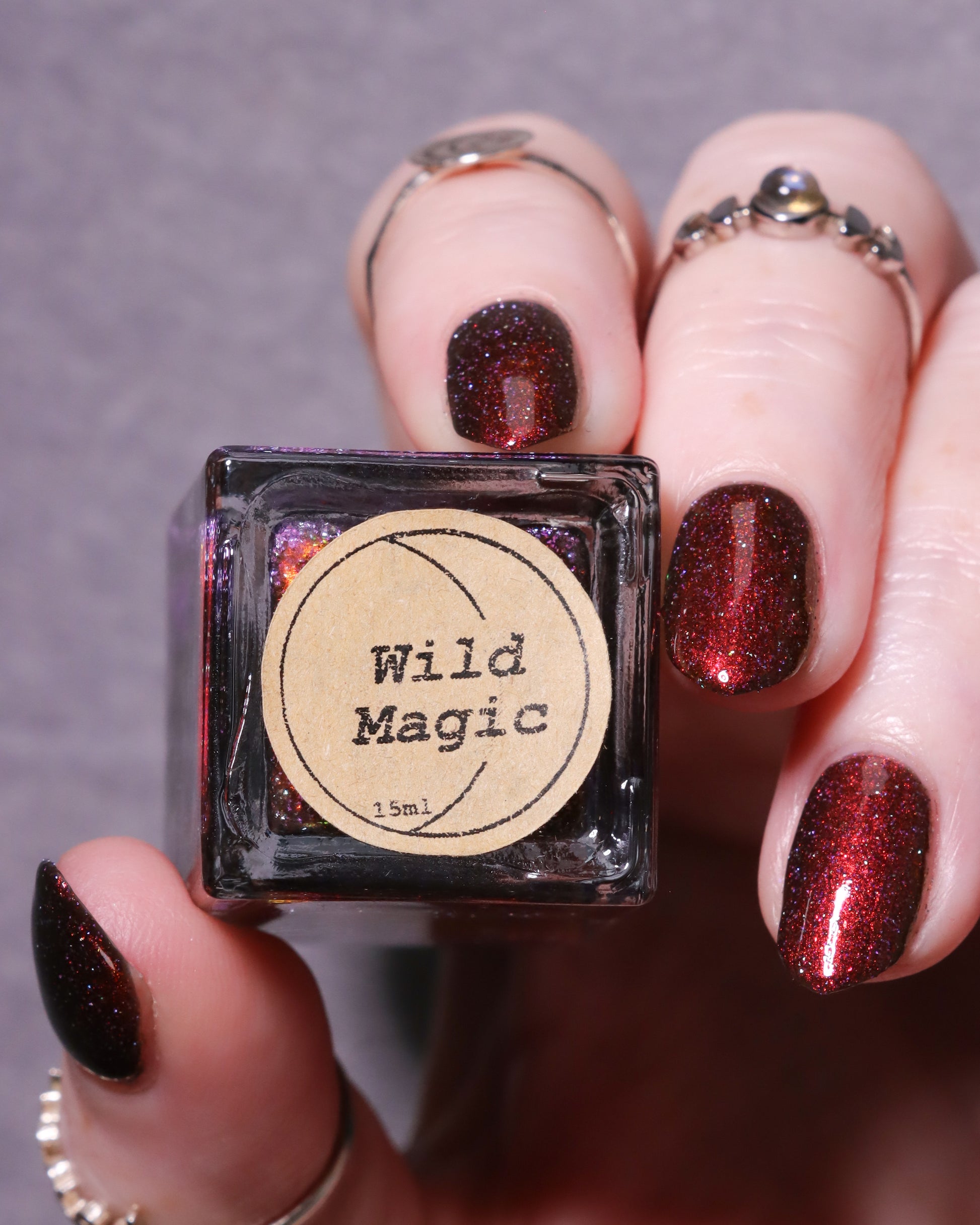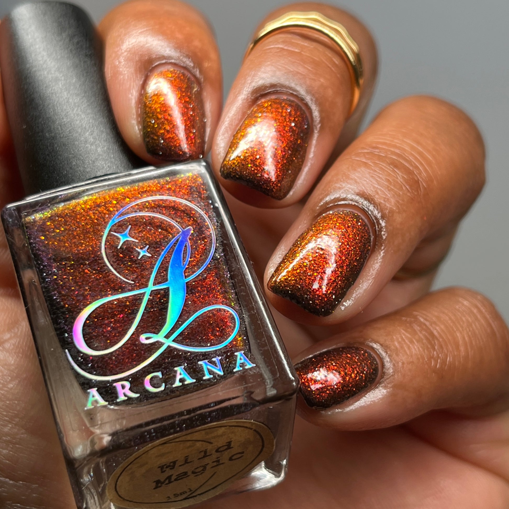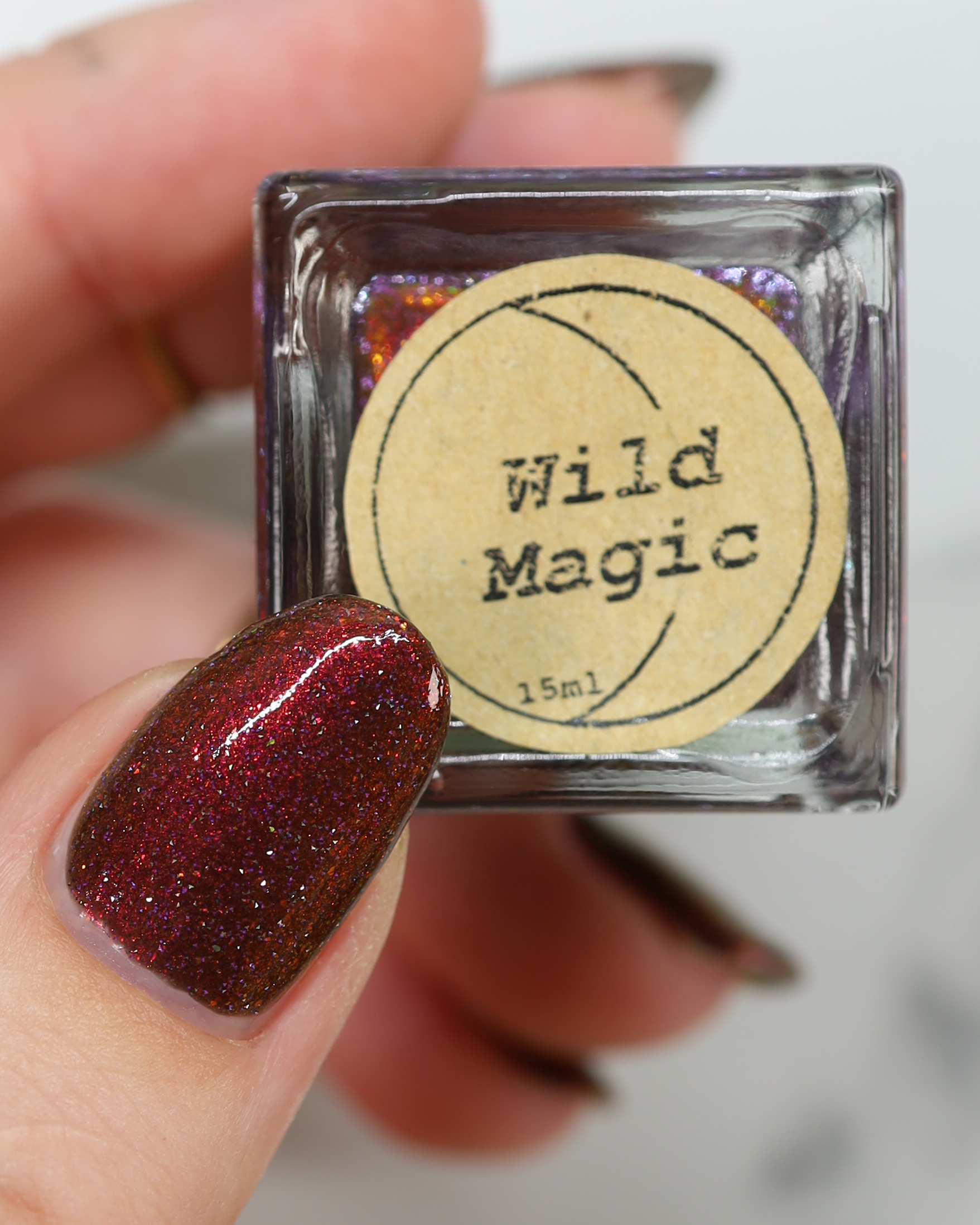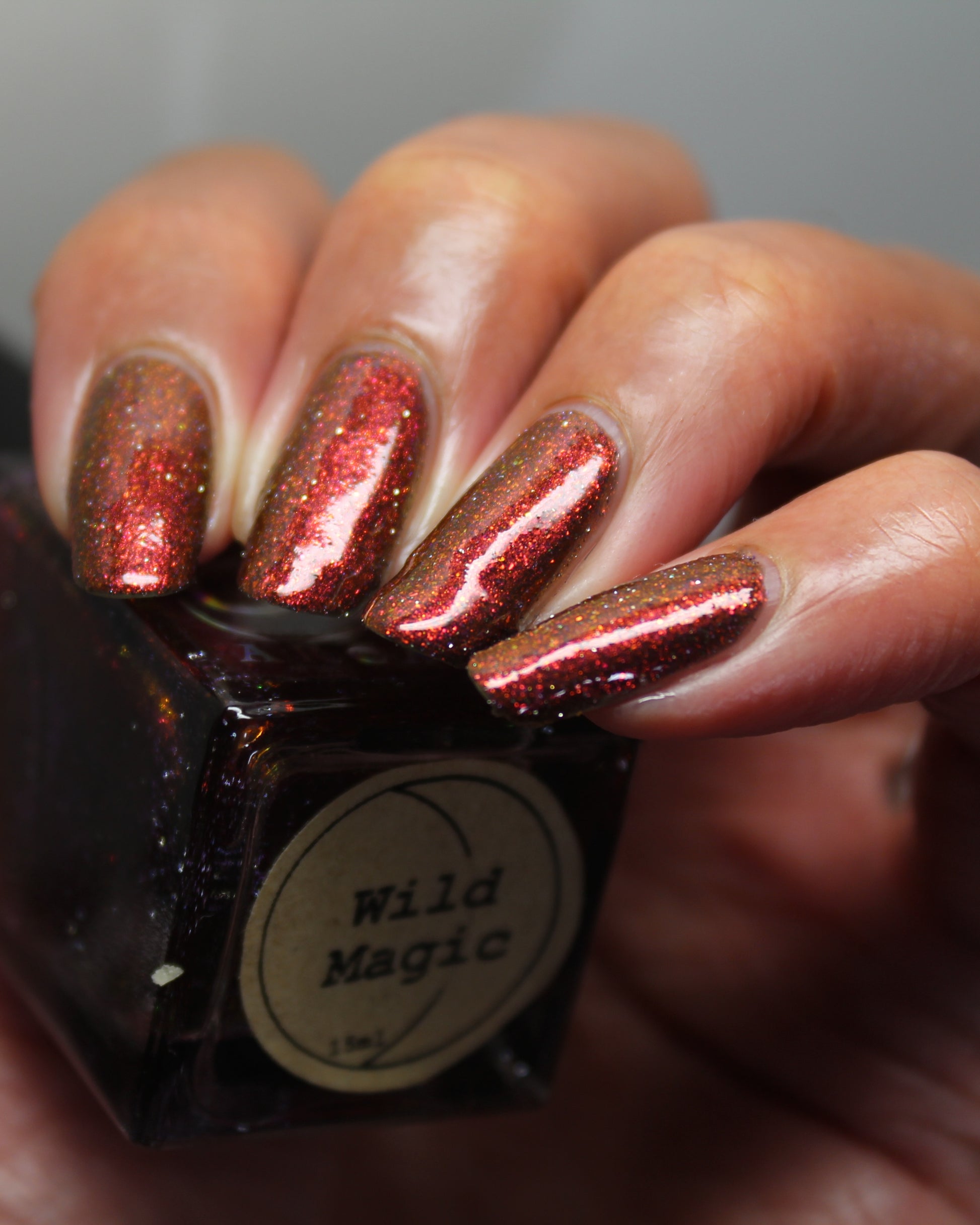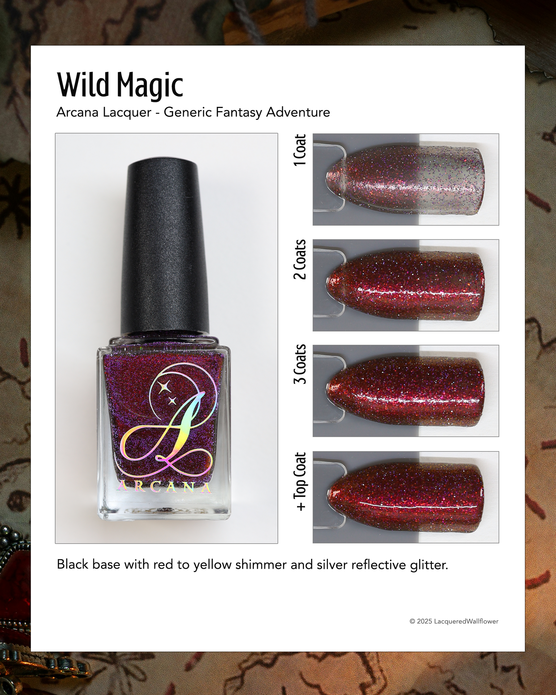 Wild Magic has a black base with red to yellow shimmer in various sizes and loaded with silver reflective glitter!