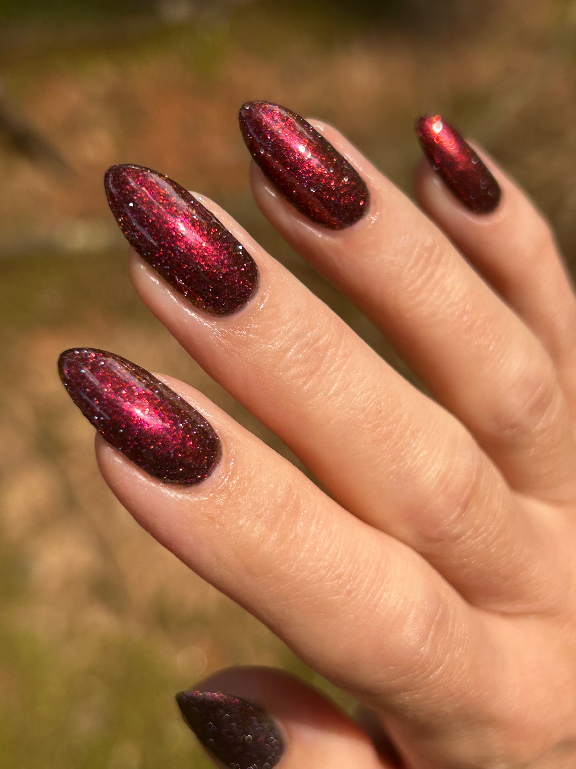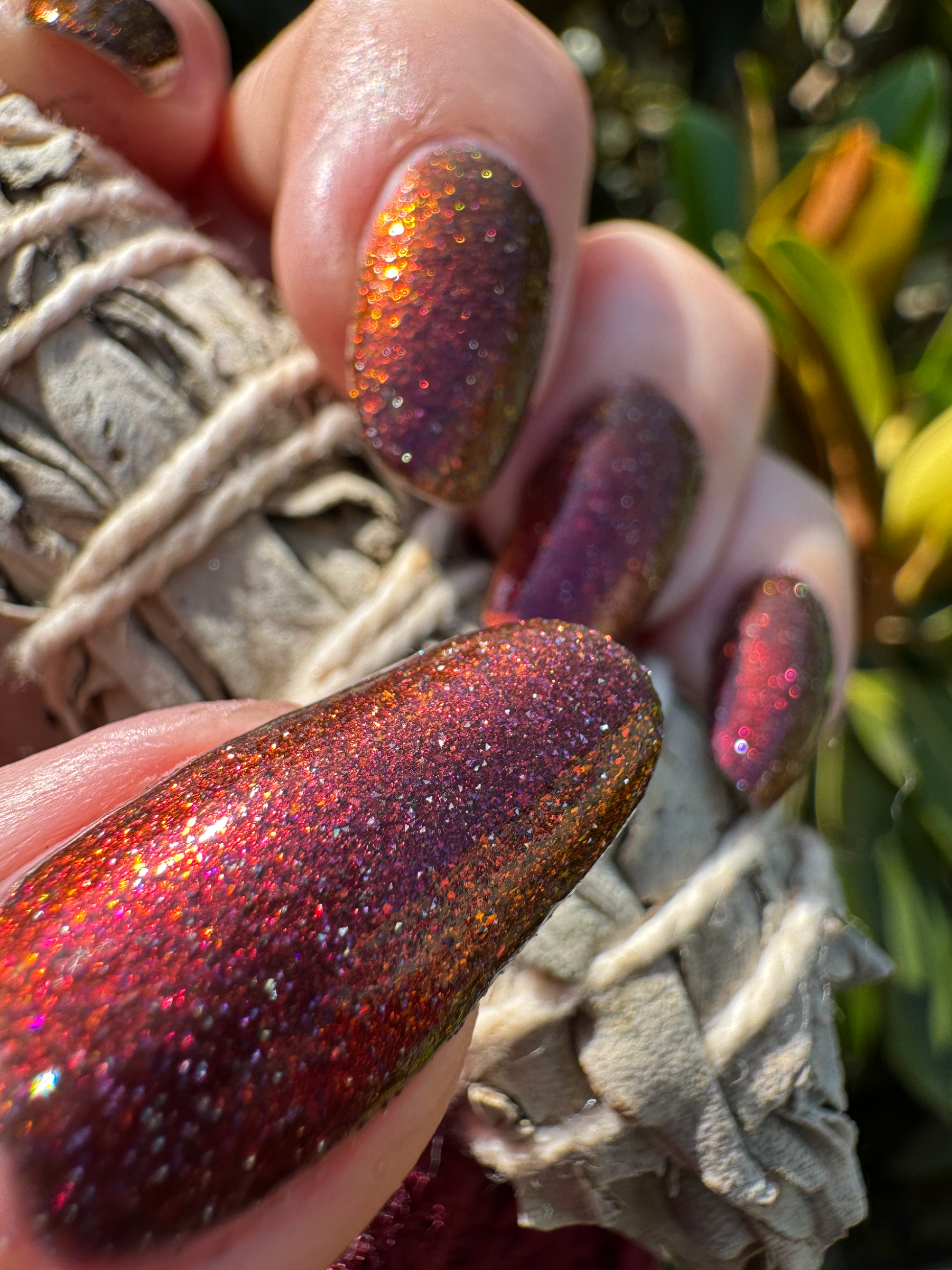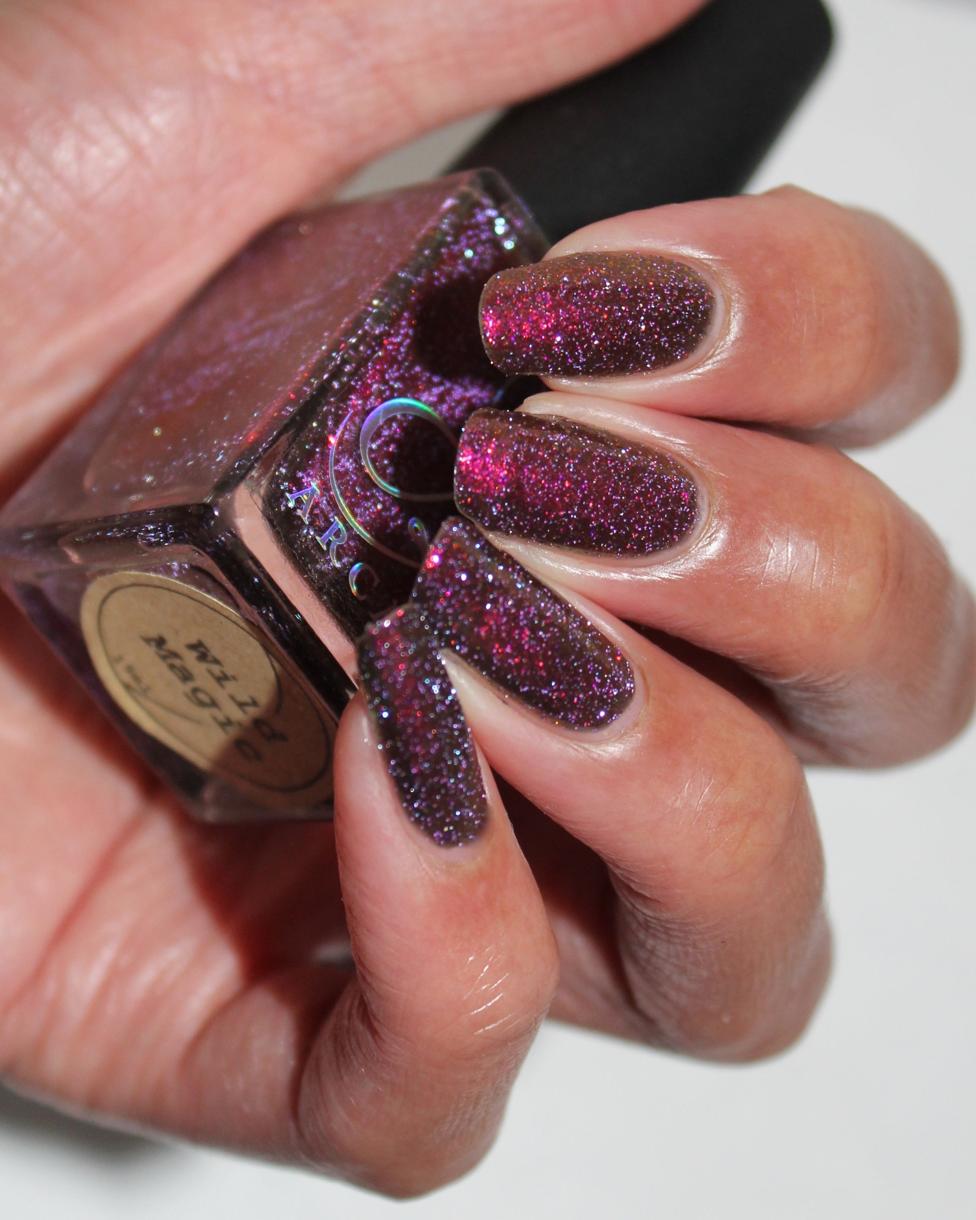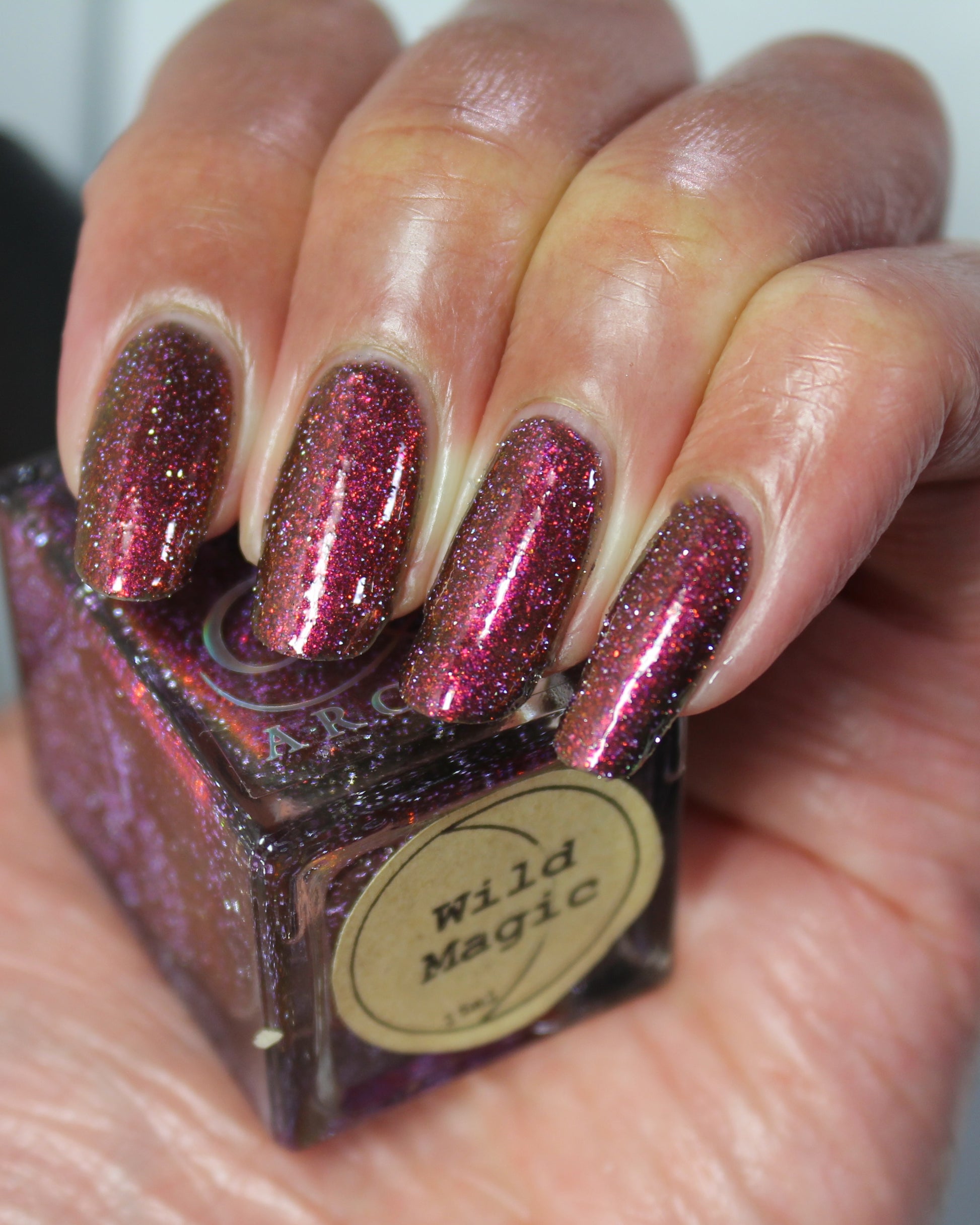Wild Magic has a black base with red to yellow shimmer in various sizes and loaded with silver reflective glitter!